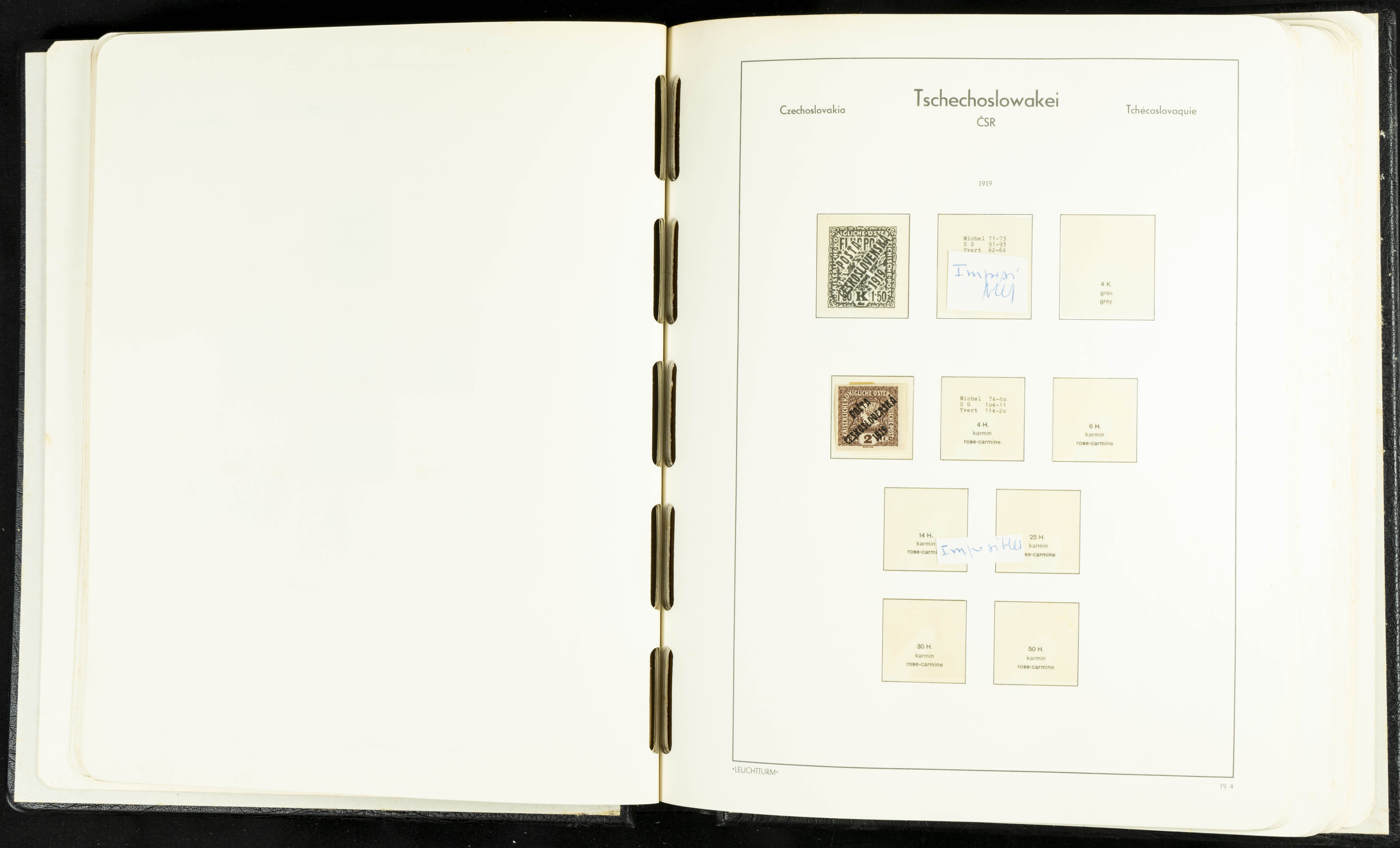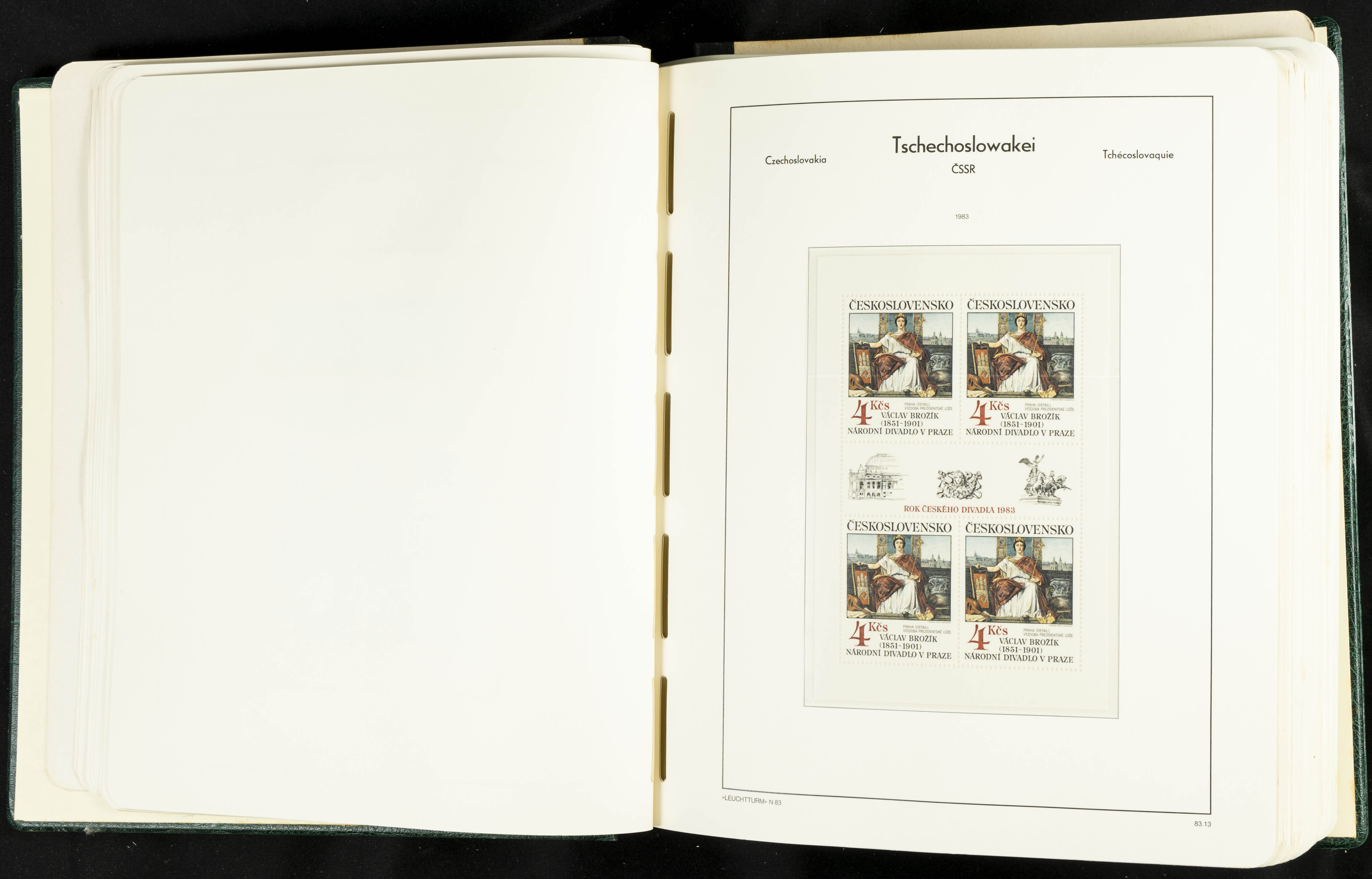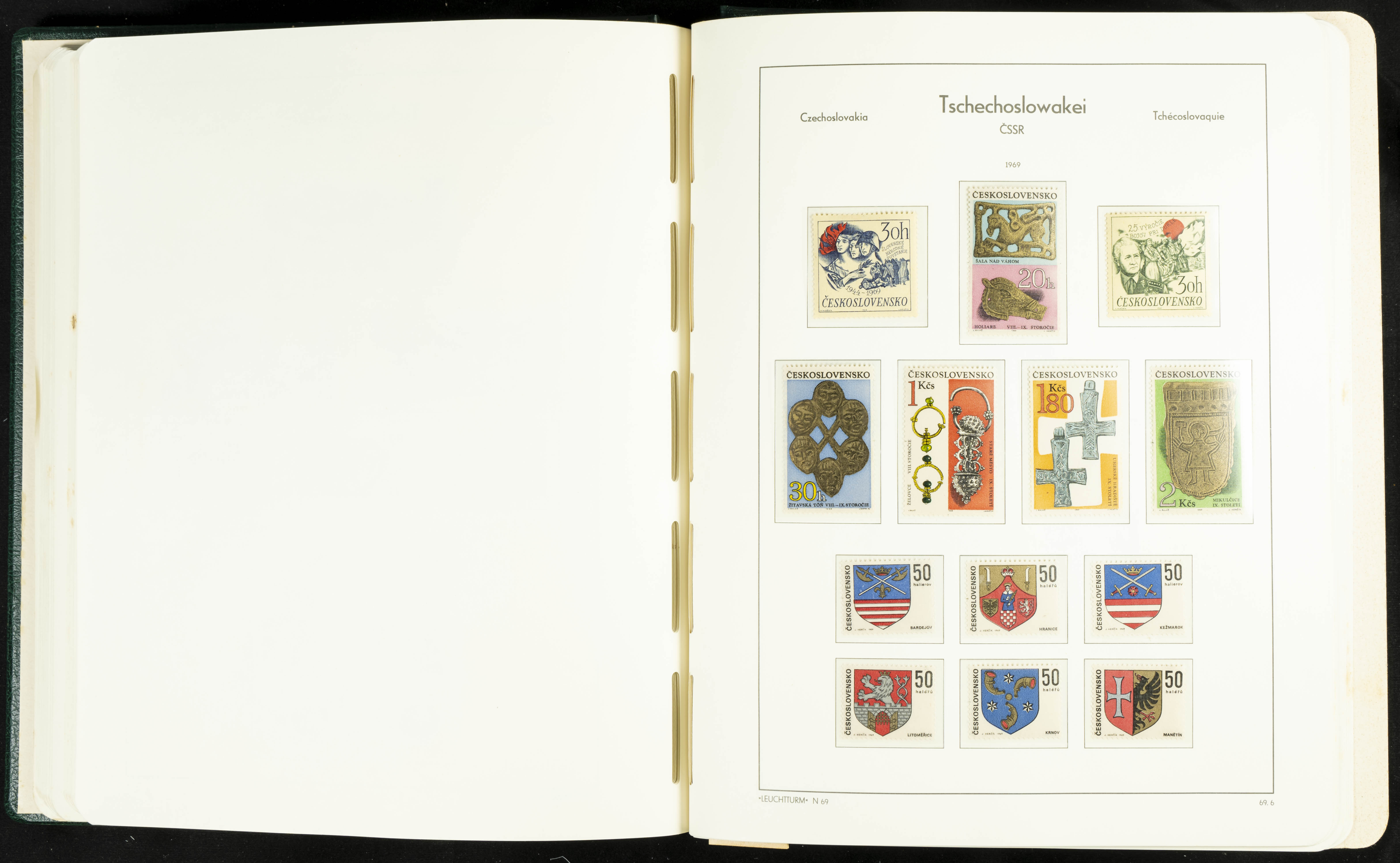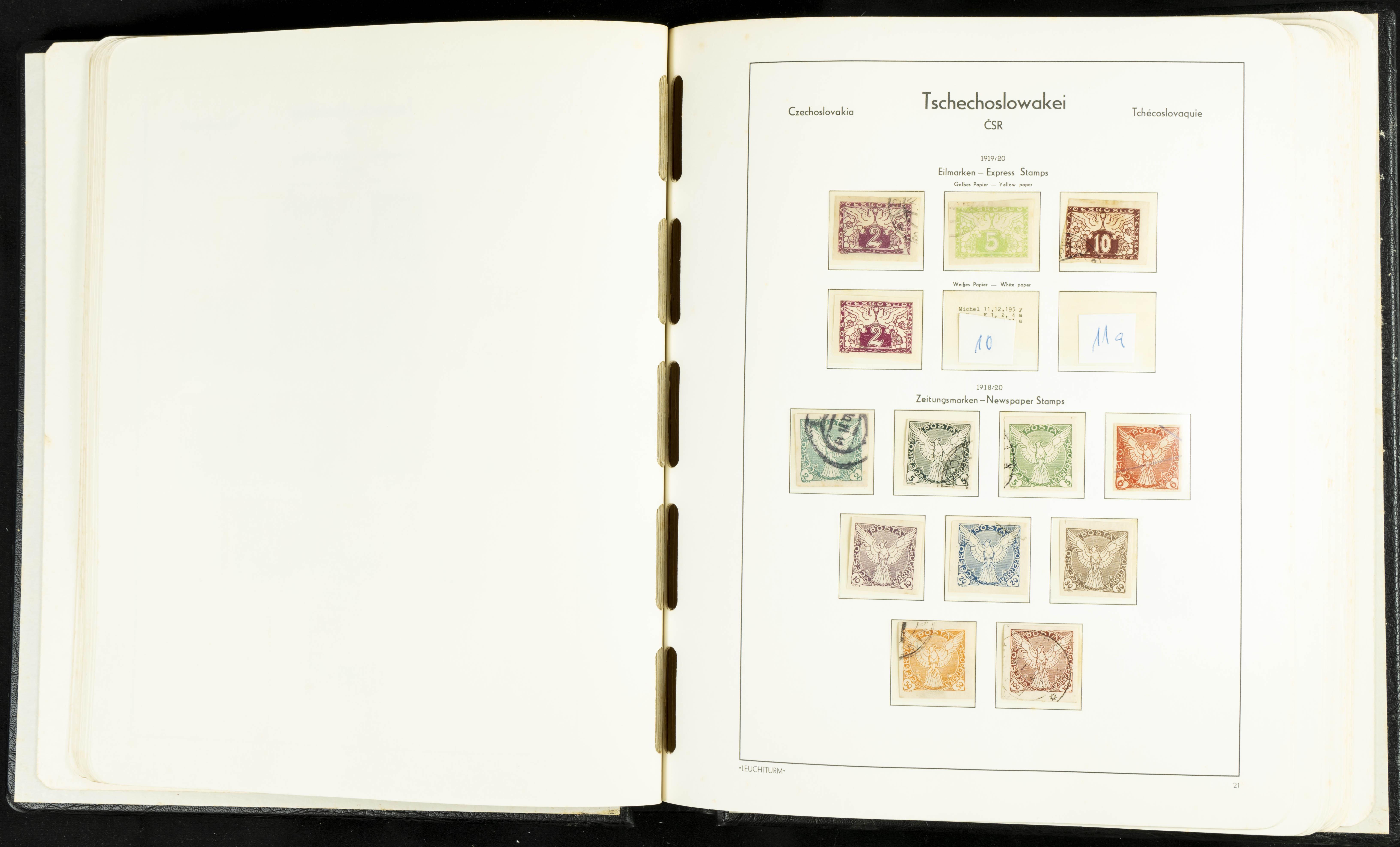 ★★/(1918ca). Interesting collection of Czechoslovakian stamps from 1918 to 1992. The older part, up to 1939, is mostly used, while the rest is practically complete, without hinges, including souvenir sheets (minor age spots mainly affecting the album pages). VERY HIGH CATALOG VALUE. TO BE EXAMINED.