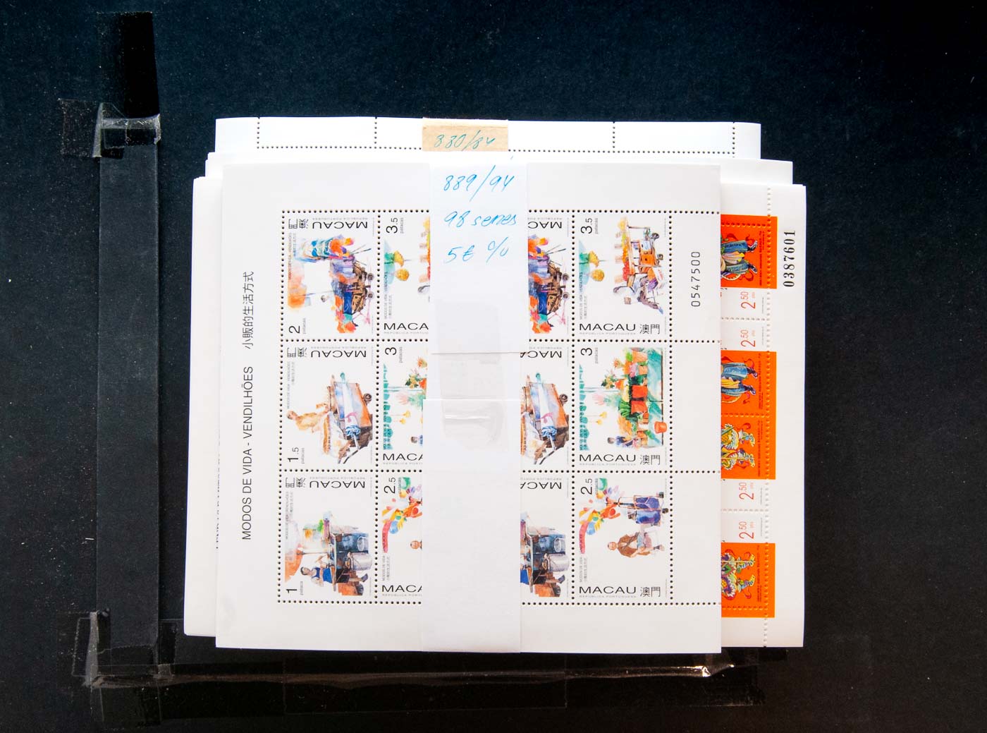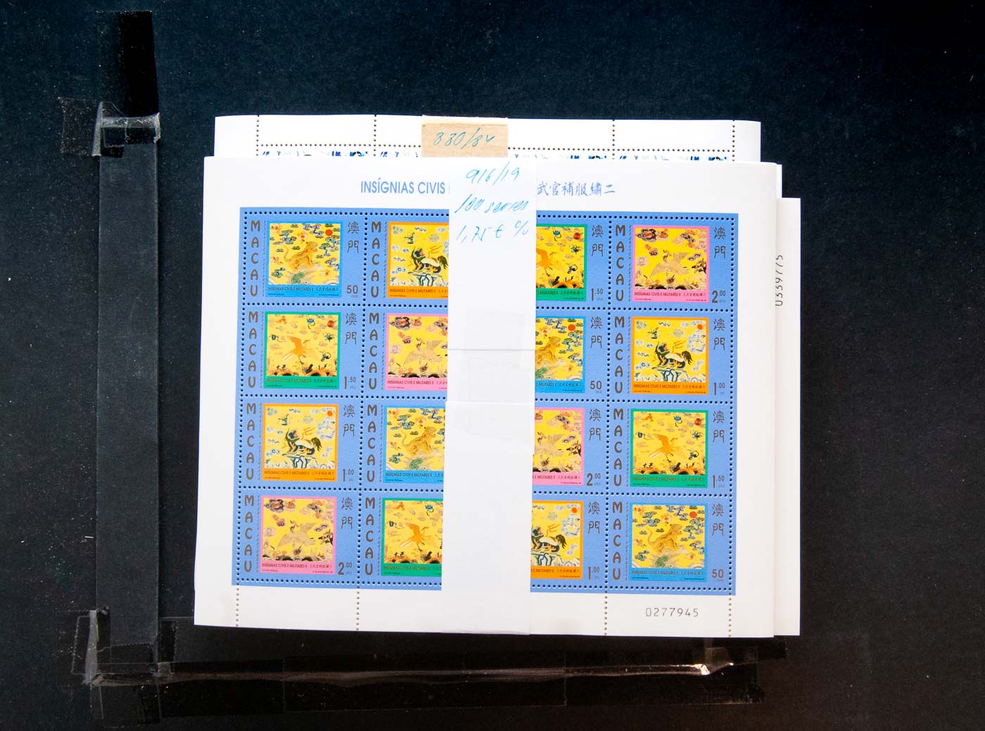 ★★(1997ca). Interesting collection of complete series and souvenir sheets from Macau, 1997-1999, in mint condition with repetitions of between fifty and one hundred of each (list attached: +37,100 Patacas, equivalent to +4,600 Euros). VERY HIGH FACE VALUE. TO BE EXAMINED. Yvert 2020: +16,000 Euros
