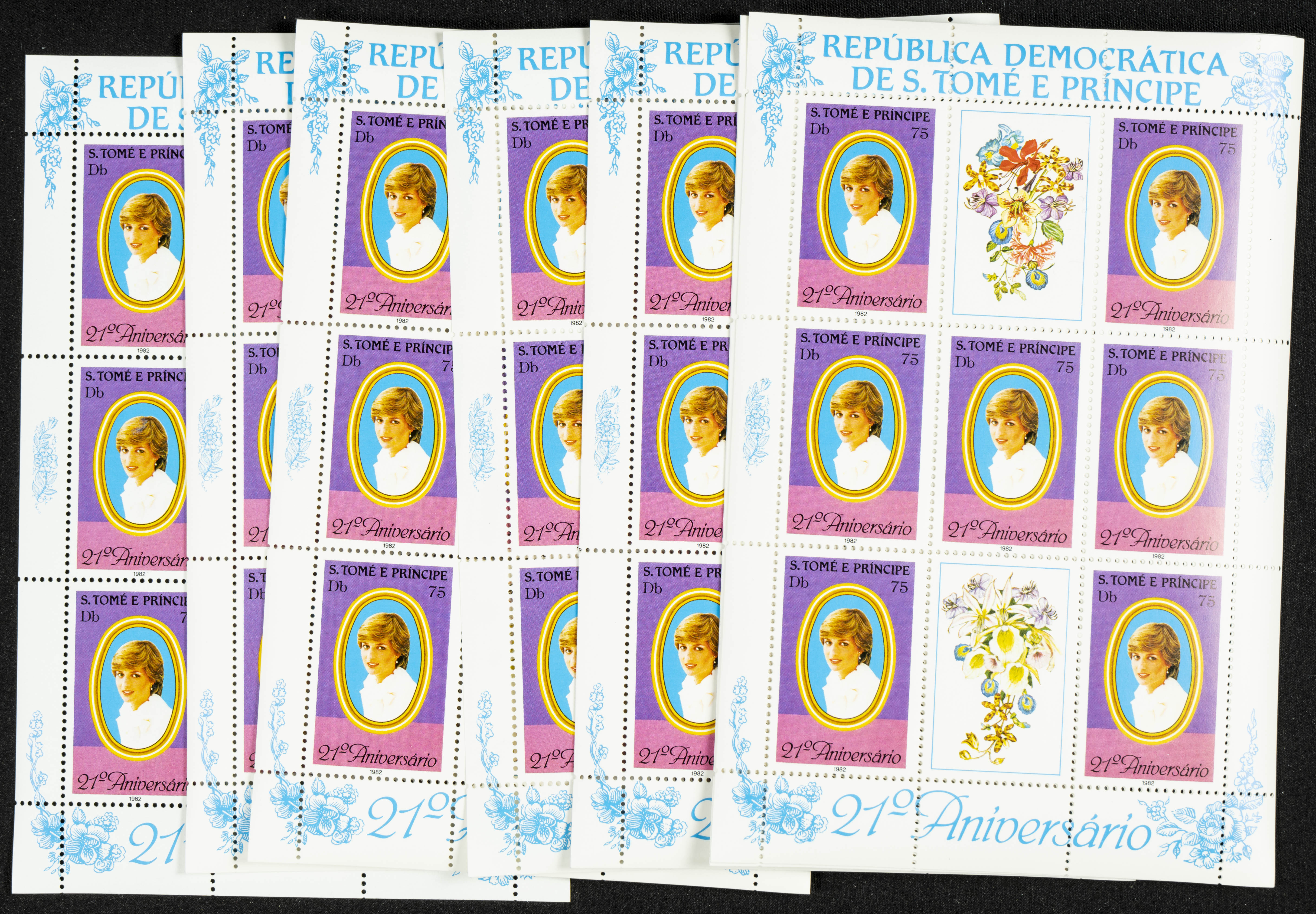 Yvert 690(175). 1982. Set of one hundred and seventy-five mini-sheet stamps PRINCESS DIANA from 1982 of Saint Thomas and Princes, in mint condition. TO BE EXAMINED. Yvert 2018: 1,400 Euros