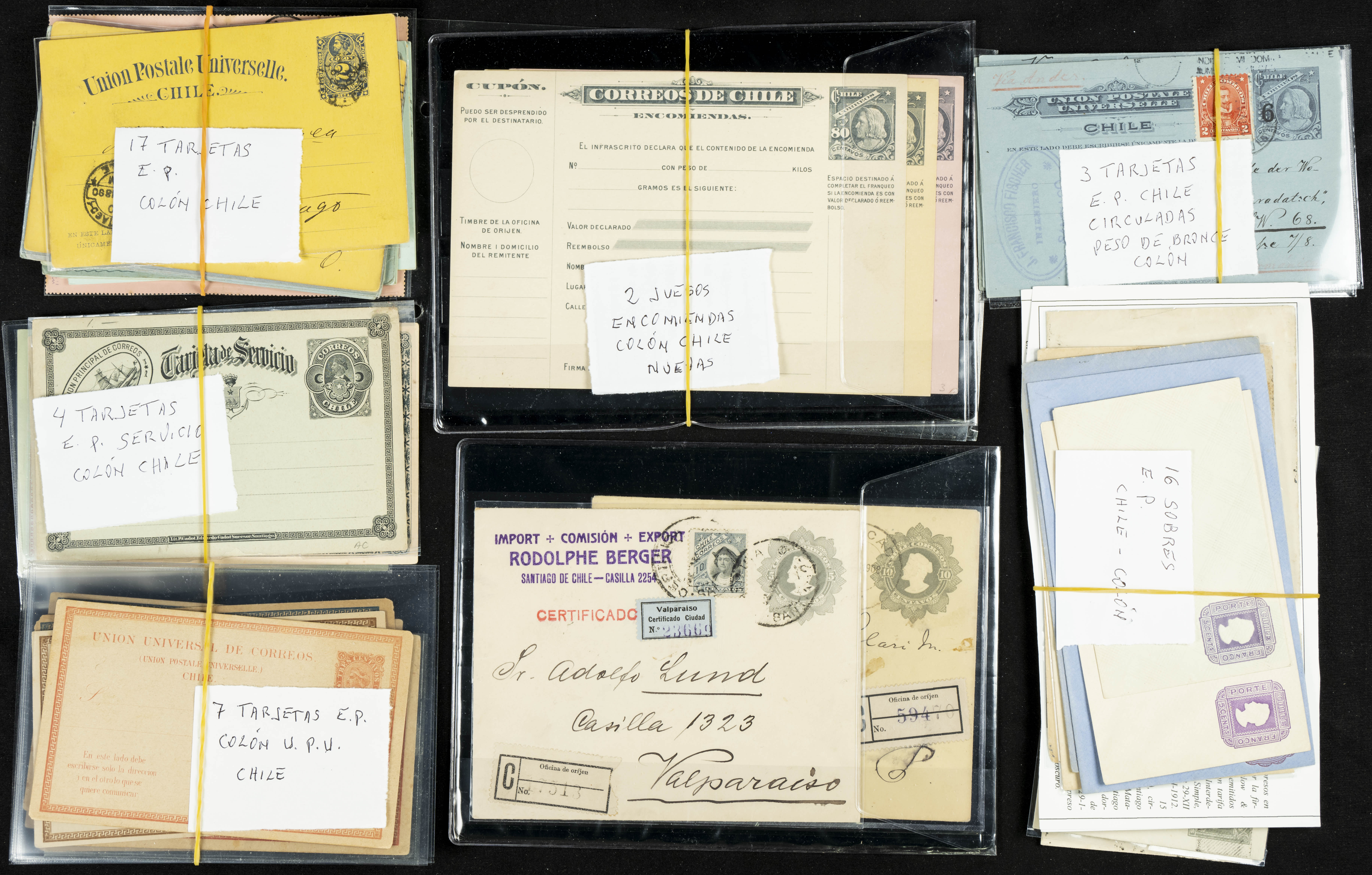 (★)(1890ca). Interesting collection of more than forty-five Chilean Postal Cards and Envelopes, mint and circulated, with the effigy of Christopher Columbus. TO BE EXAMINED.