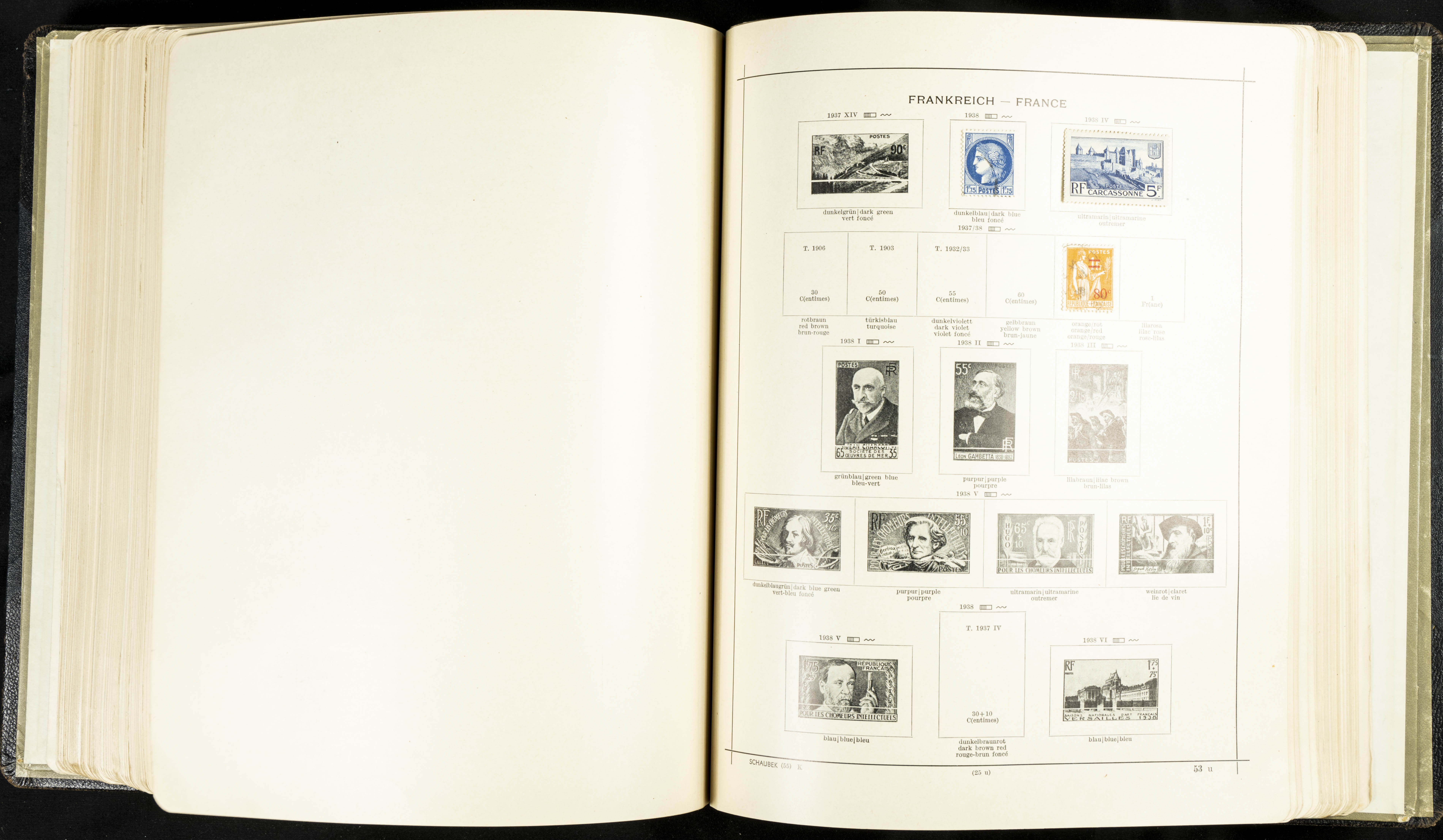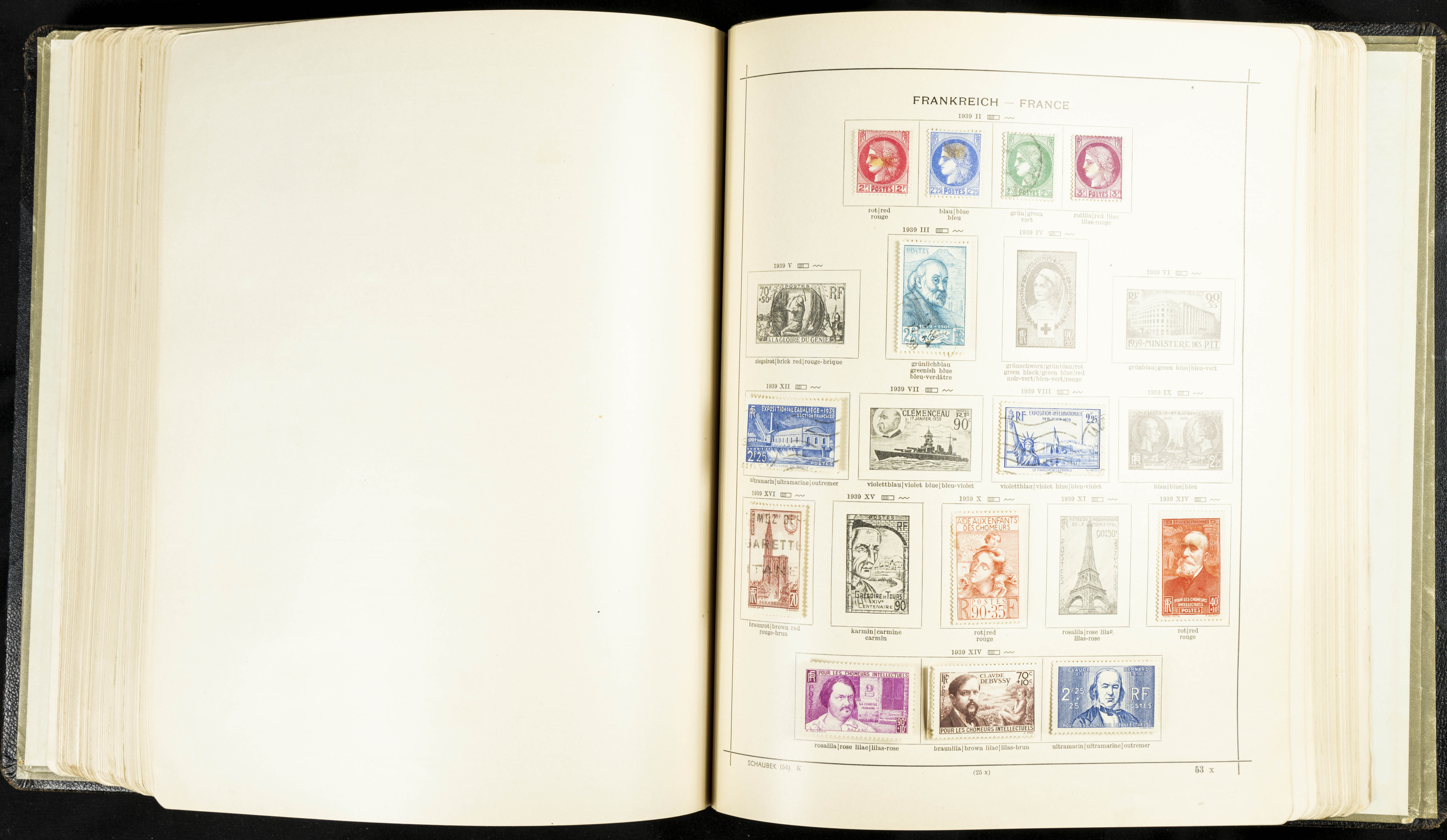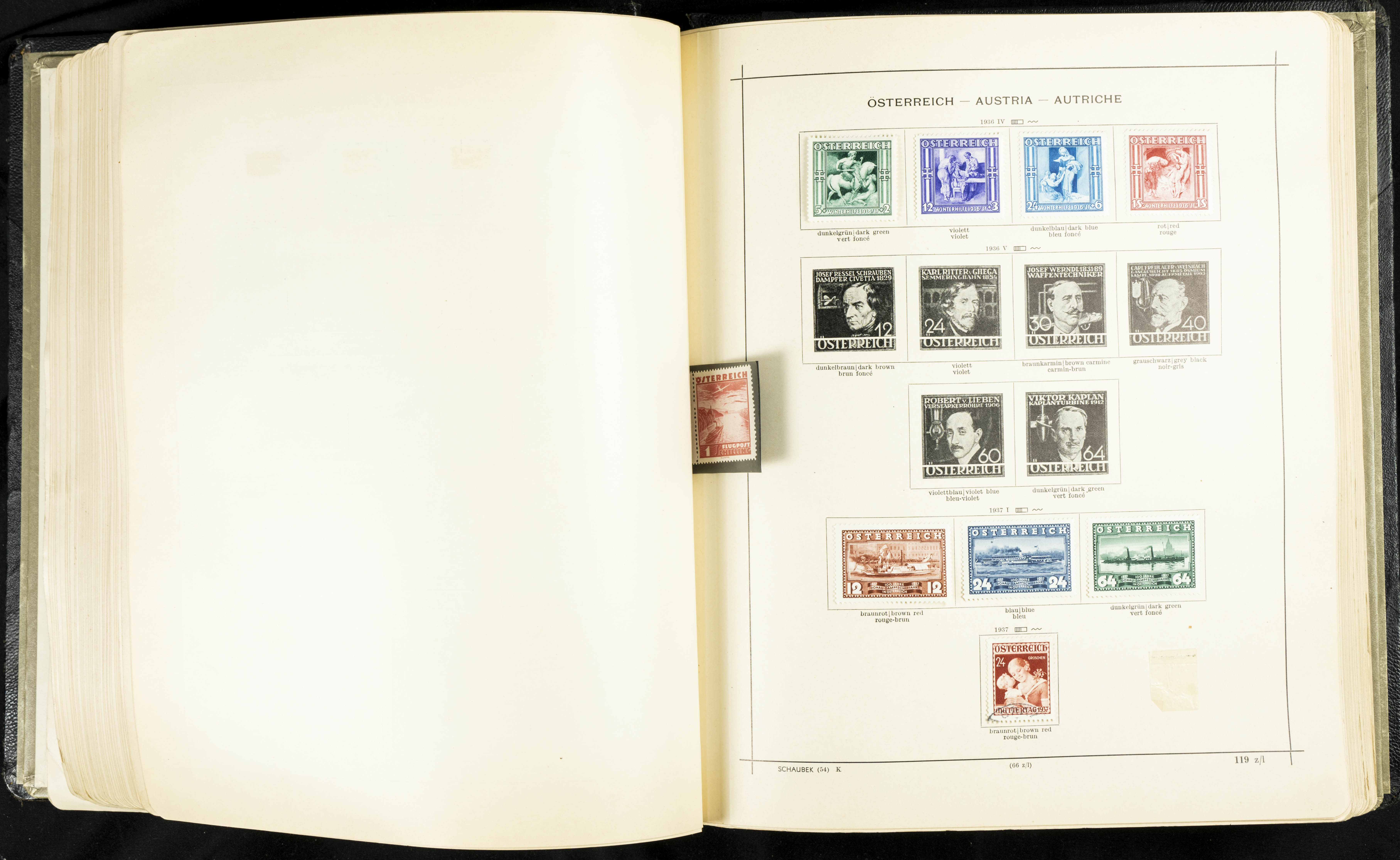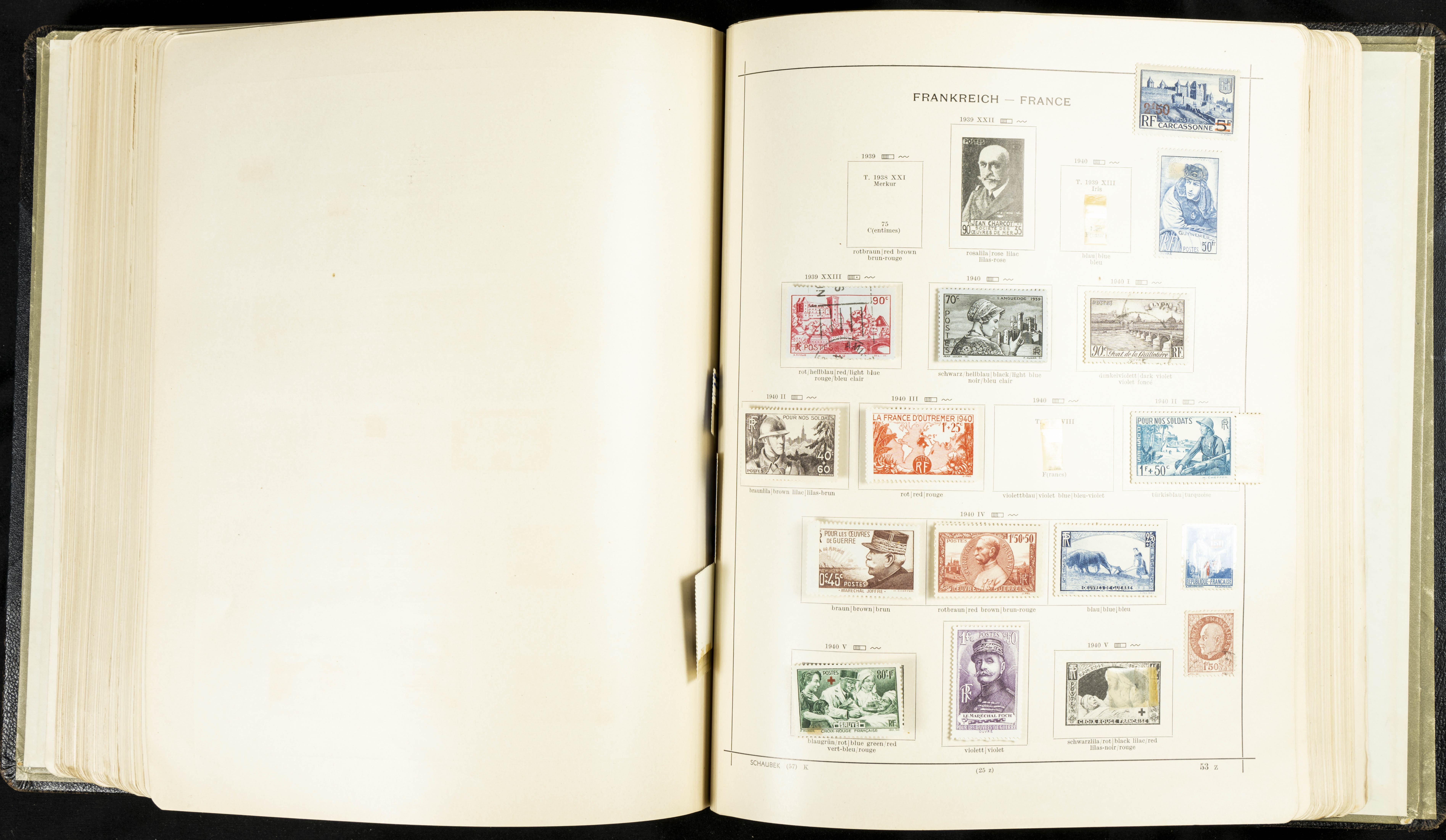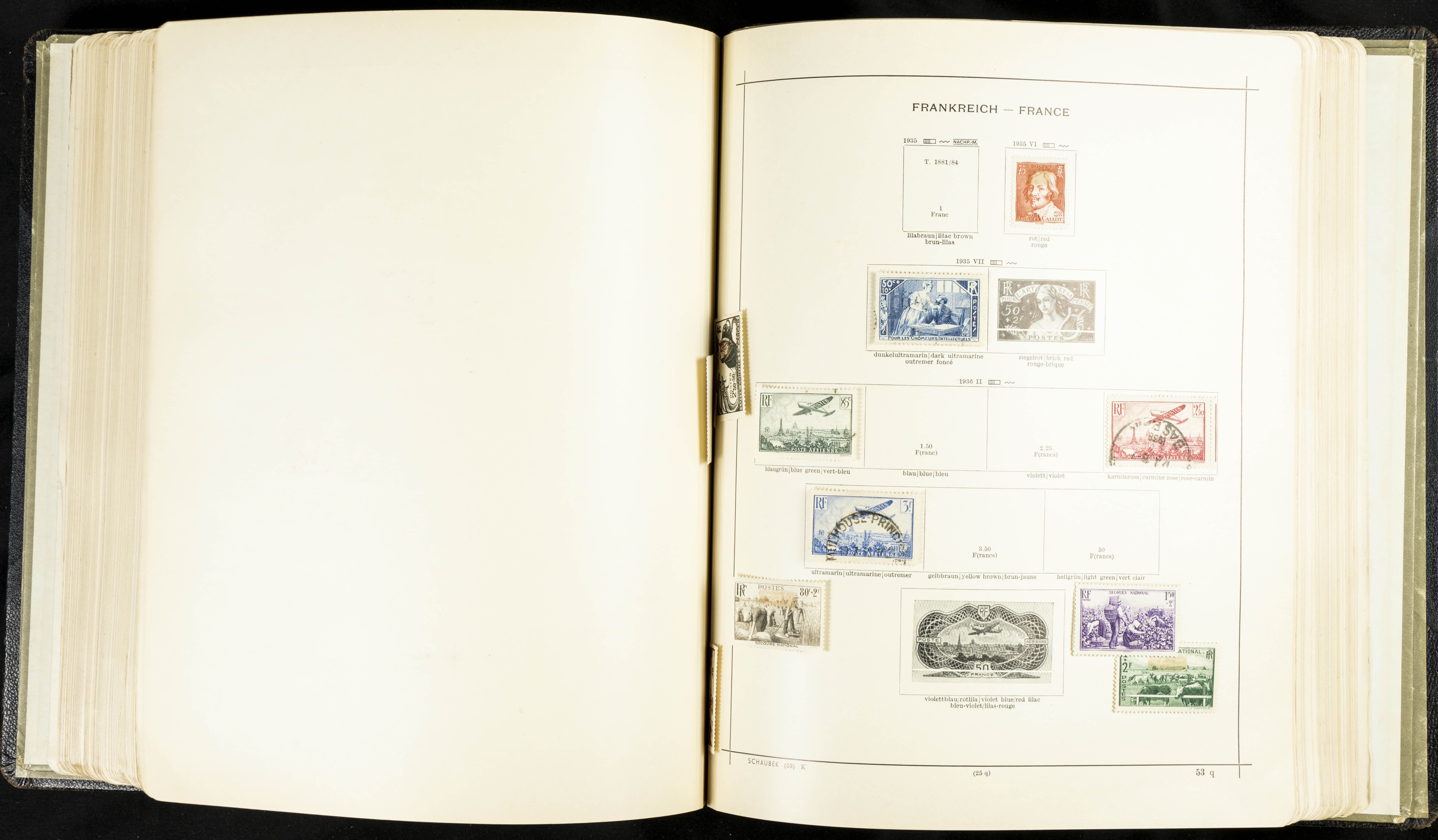 ★/(1849ca). Interesting collection of thousands of individual stamps and complete series from various countries, mostly dating from 1849 to 1940, in mint and used condition, with numerous medium-value stamps (mounted in antique Schaubeck and Borek albums). HIGH CATALOG VALUE. TO BE EXAMINED.