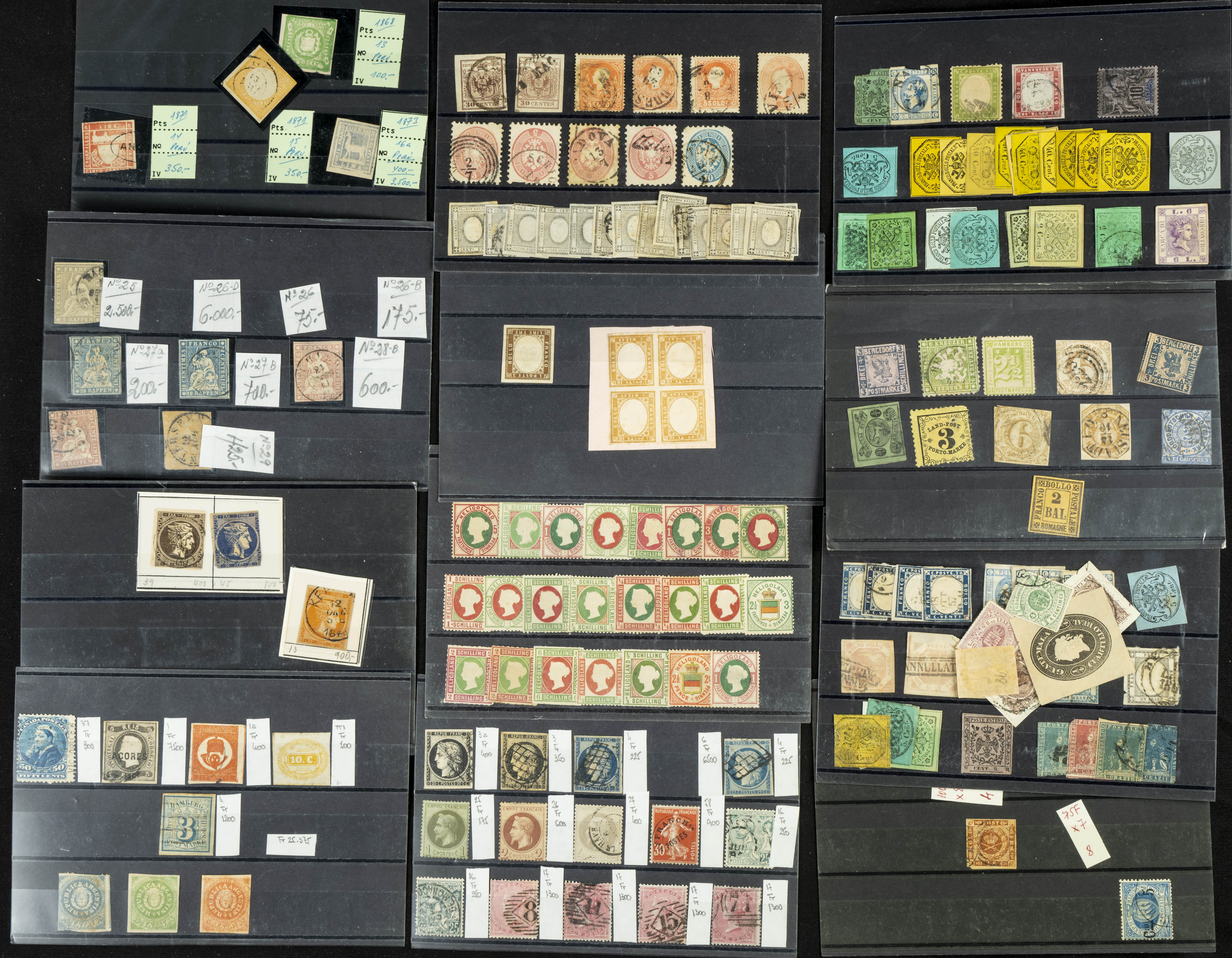 (★)/(circa 1850). Interesting collection of hundreds of classic stamps from various countries, both mint and used (a large portion on tokens and including some forgeries). EXTREMELY HIGH CATALOG VALUE. EXAMINATION IS ESSENTIAL.