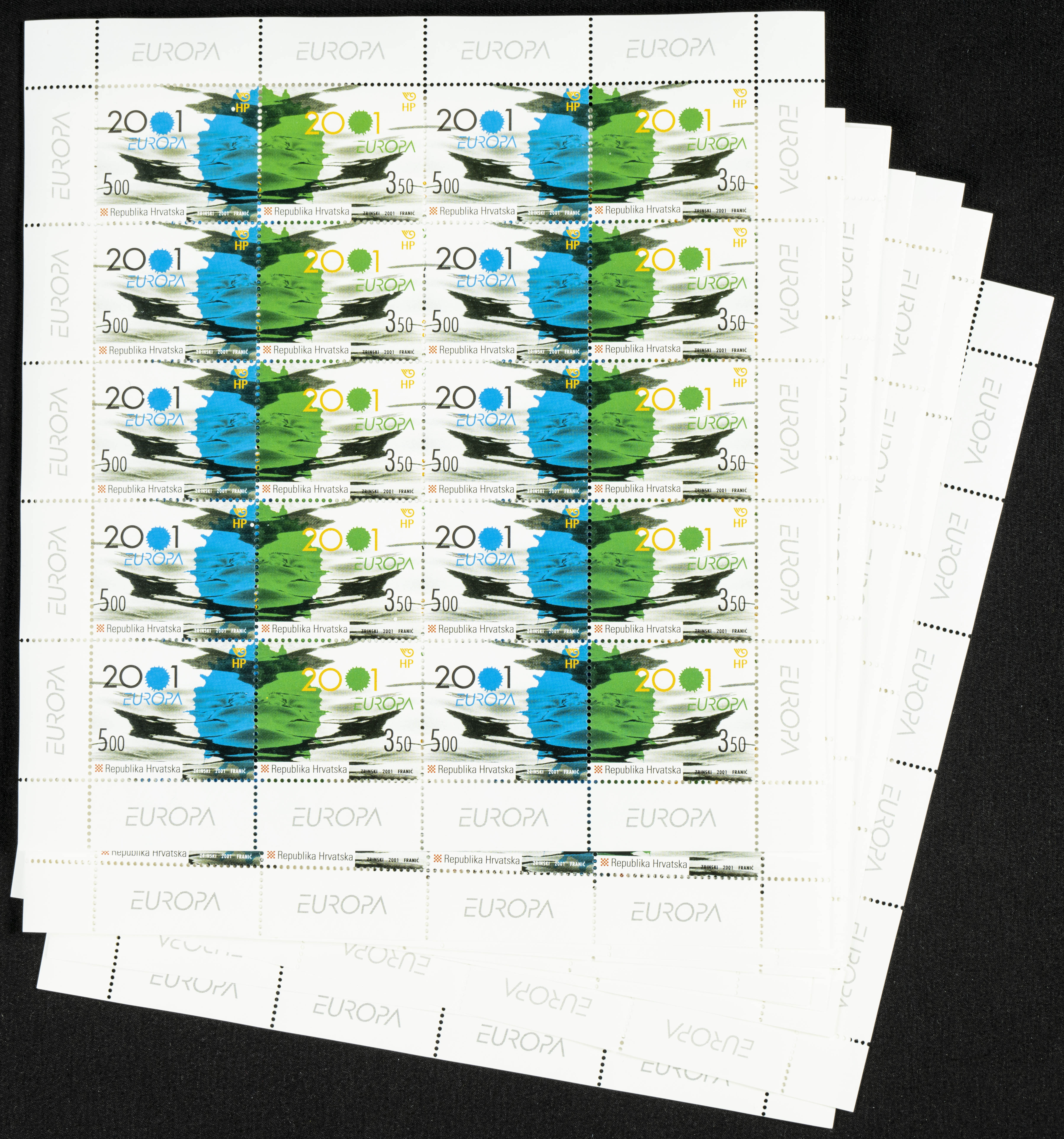 Yvert 537/38(200). 2001. Set of two hundred complete series from Croatia EUROPA 2001, mint and in miniature sheets. TO BE EXAMINED. Yvert 2025: 600 Euros