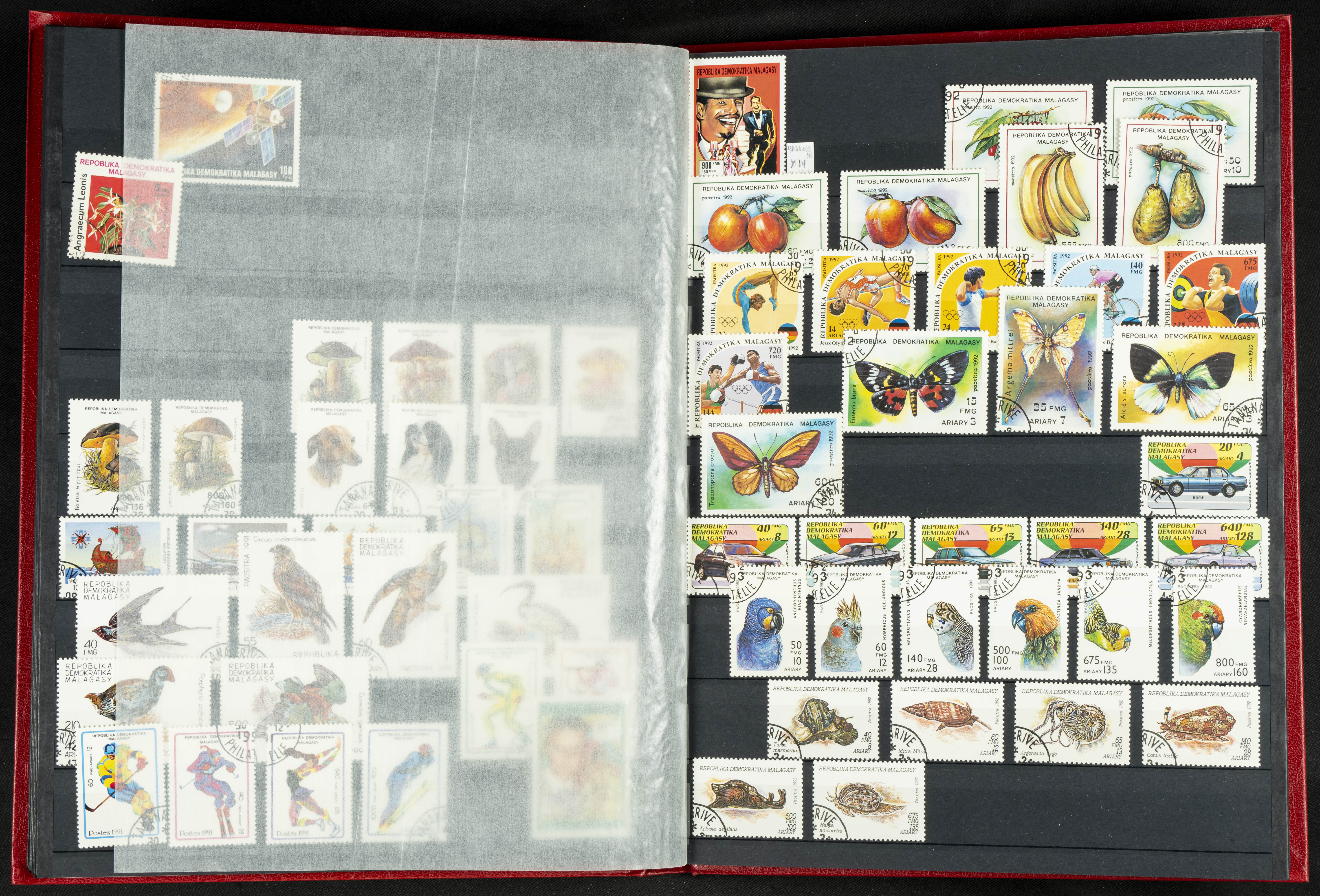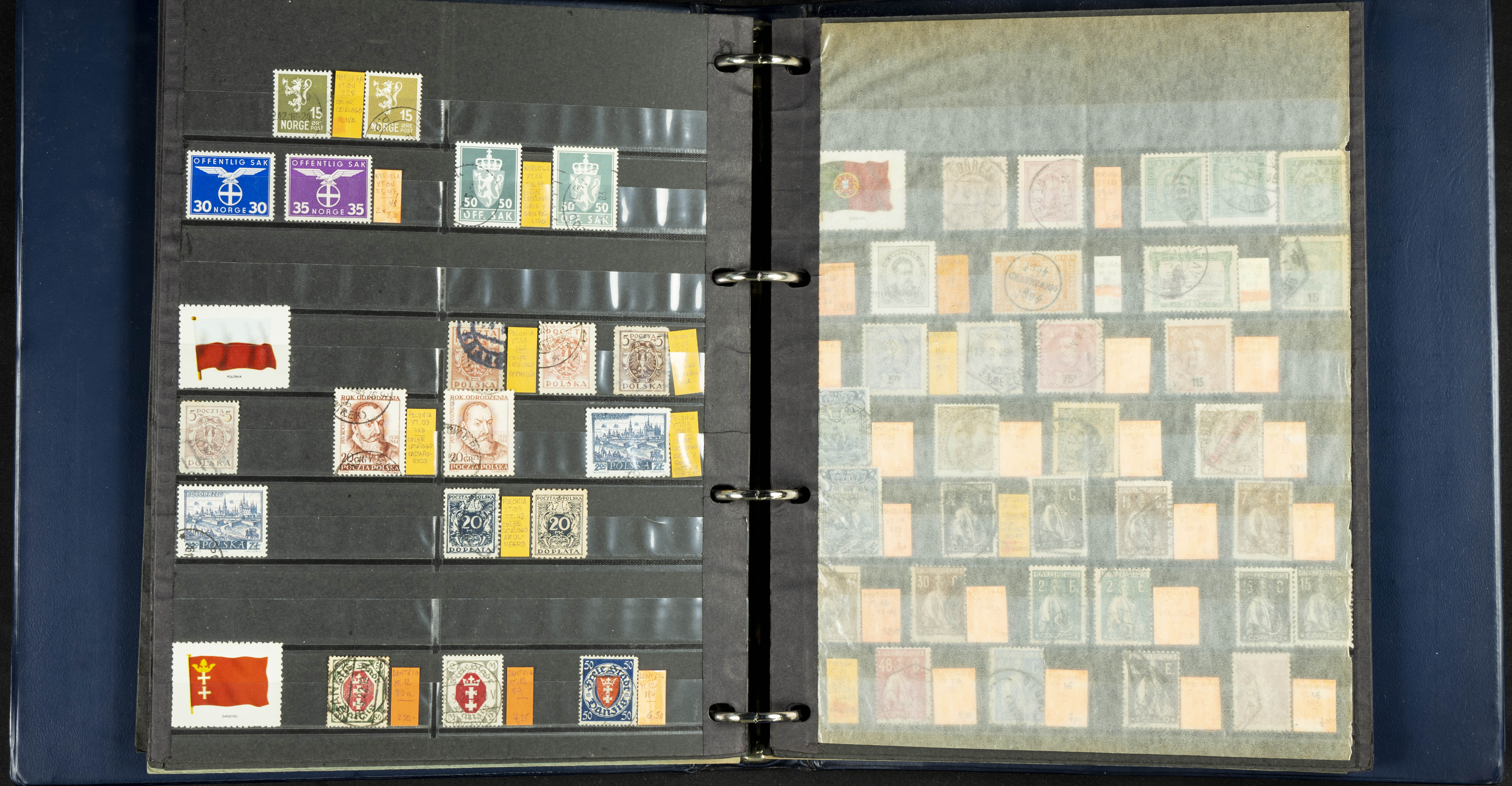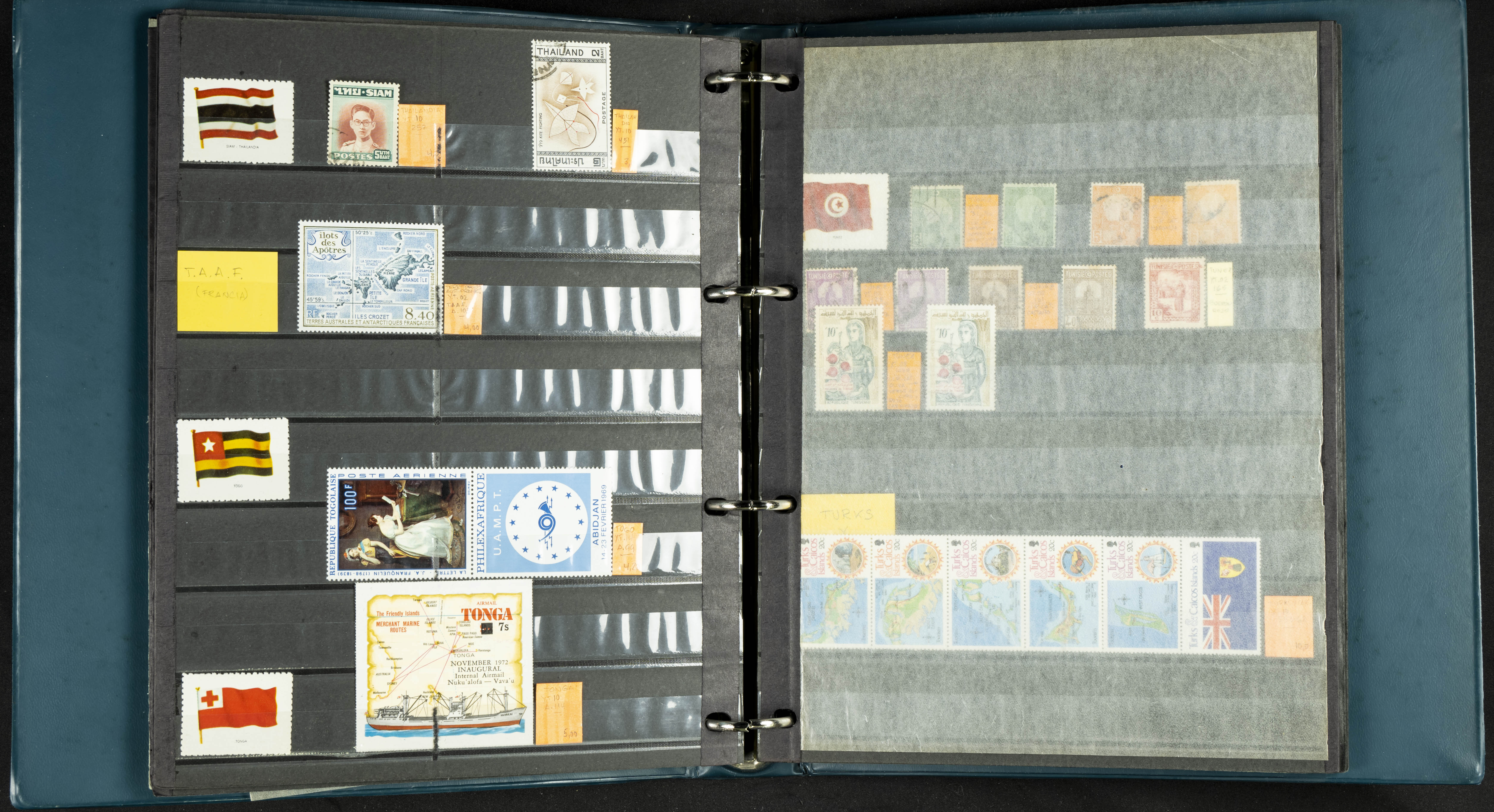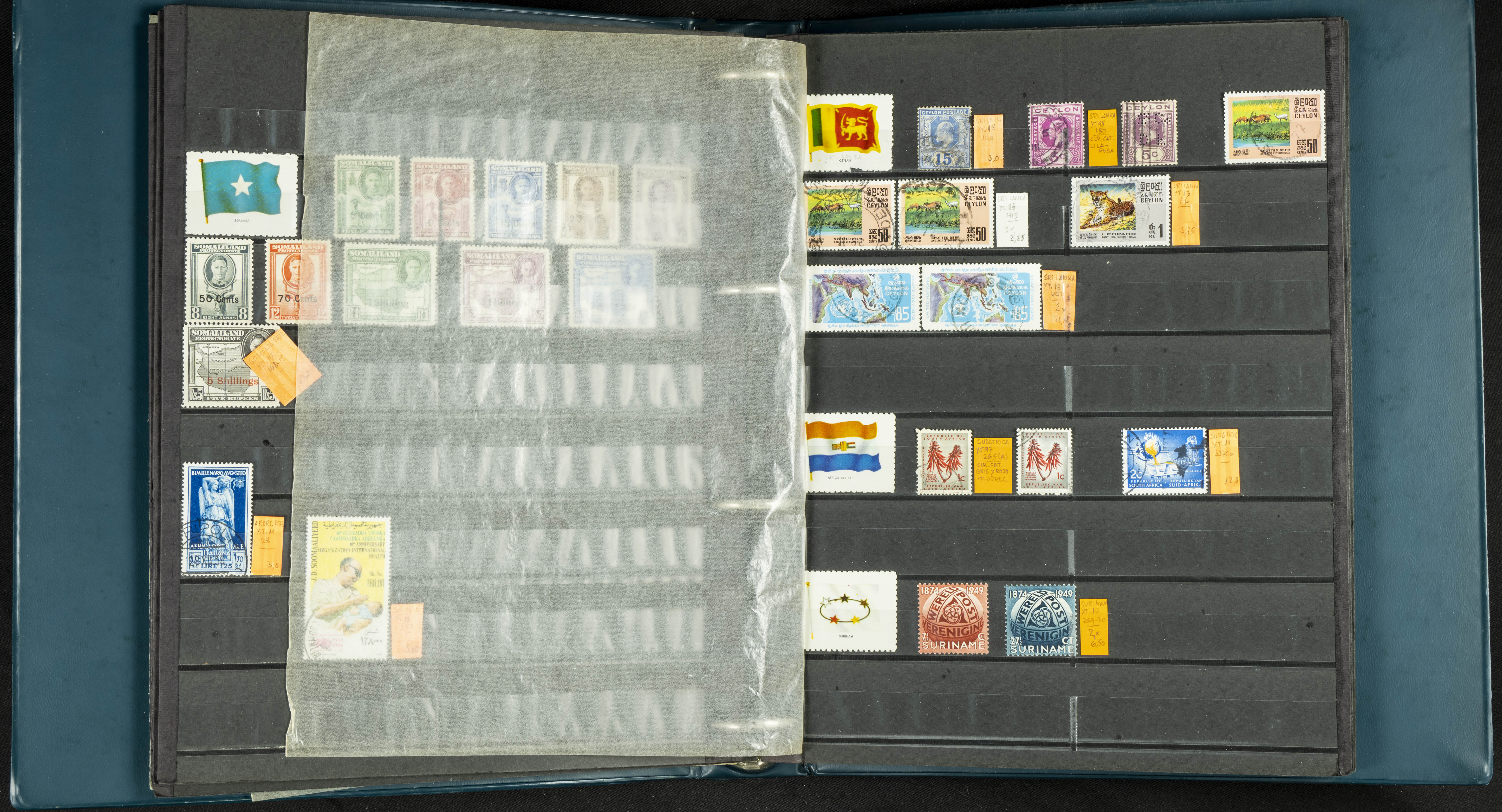 English (circa 1870). An interesting collection of tens of thousands of used stamps (some mint) from around the world, mostly dating from 1870 to 1980 and organized by country (mounted in binders). Extremely high catalog value. Worth examining.