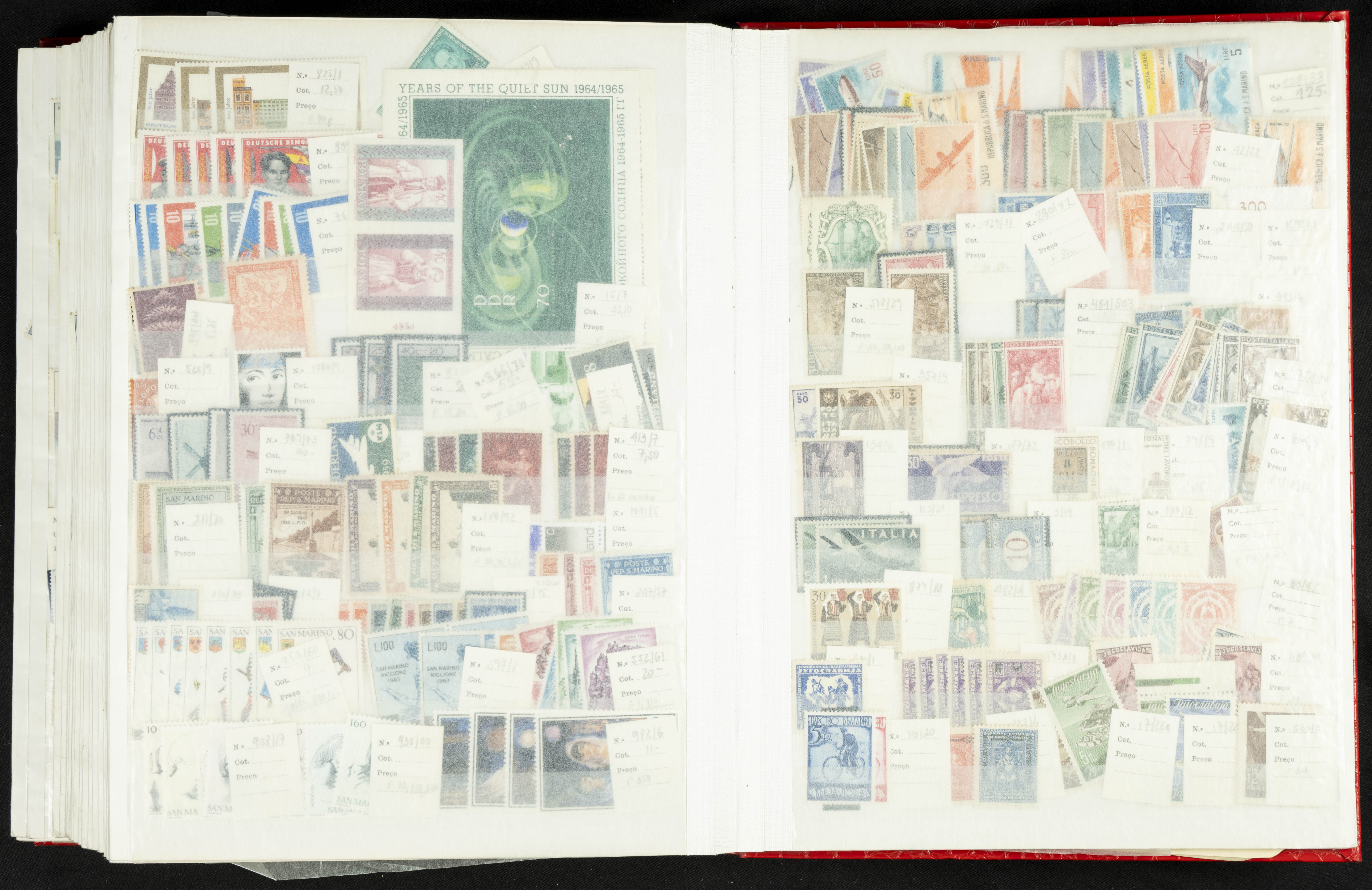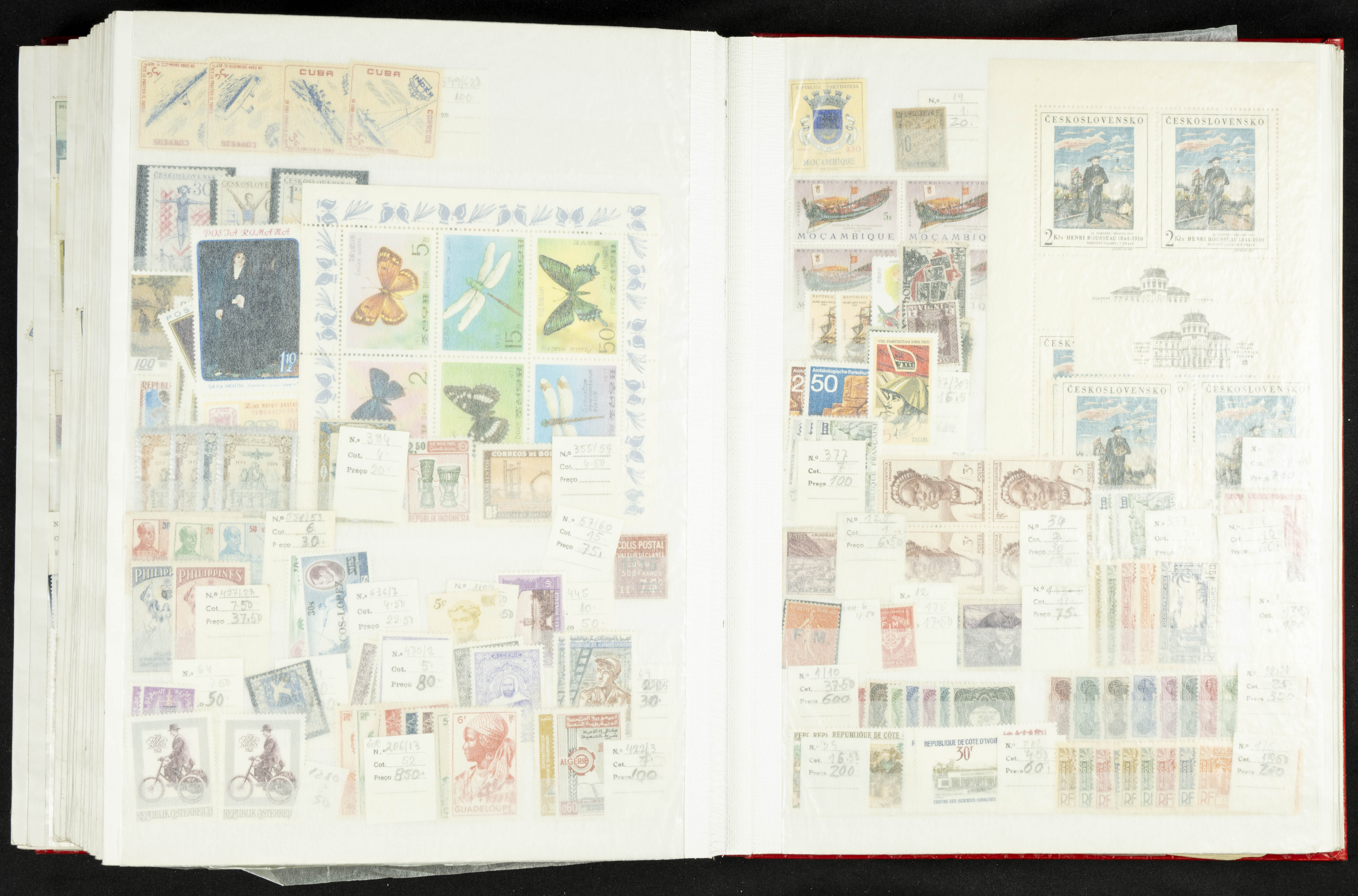★/(1900ca). Interesting collection of thousands of individual stamps and complete series from various countries, mostly dating from 1900 to 1980, mint (most) and used (mounted in albums, a large portion labeled). HIGH CATALOG VALUE. TO BE EXAMINED.