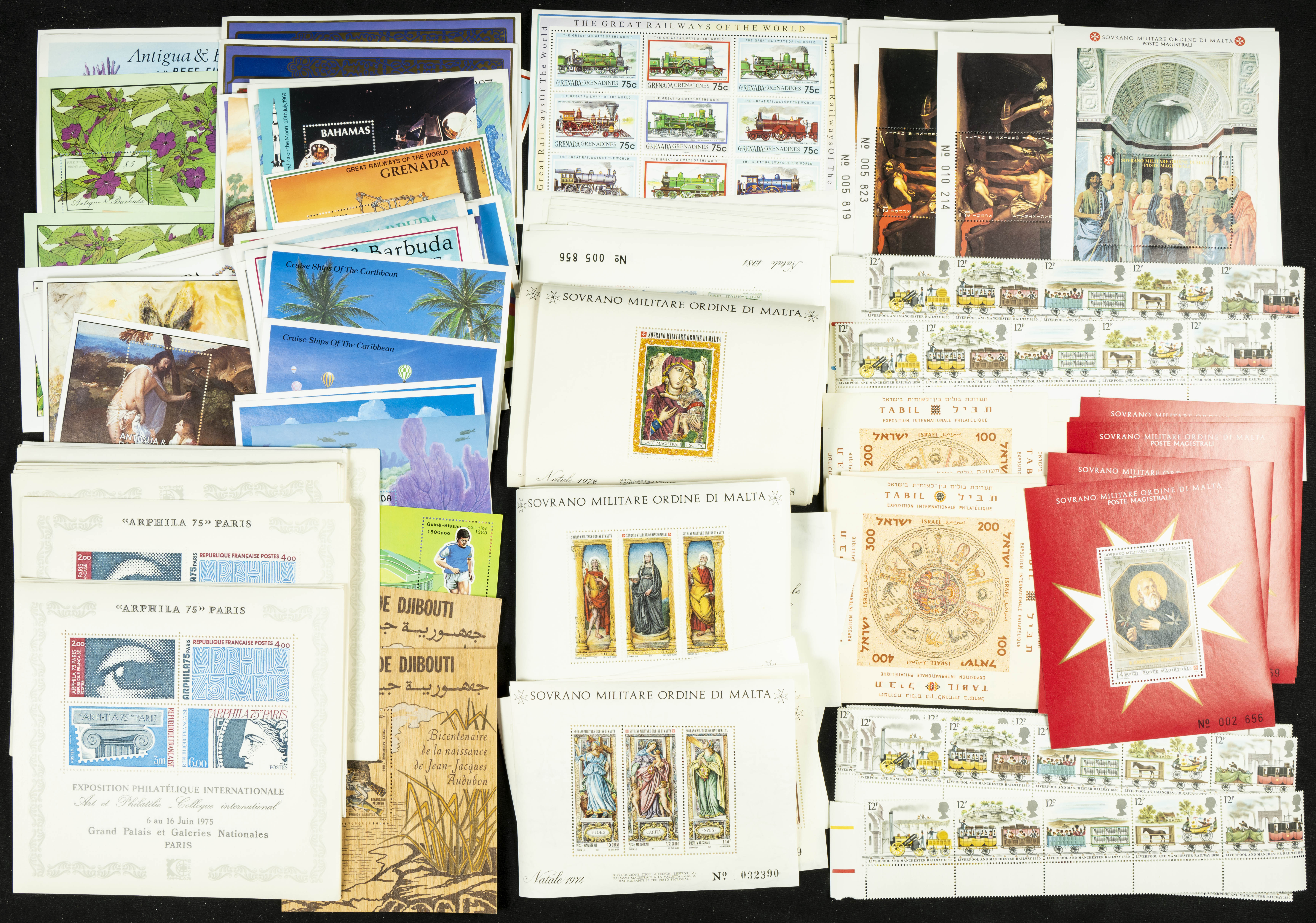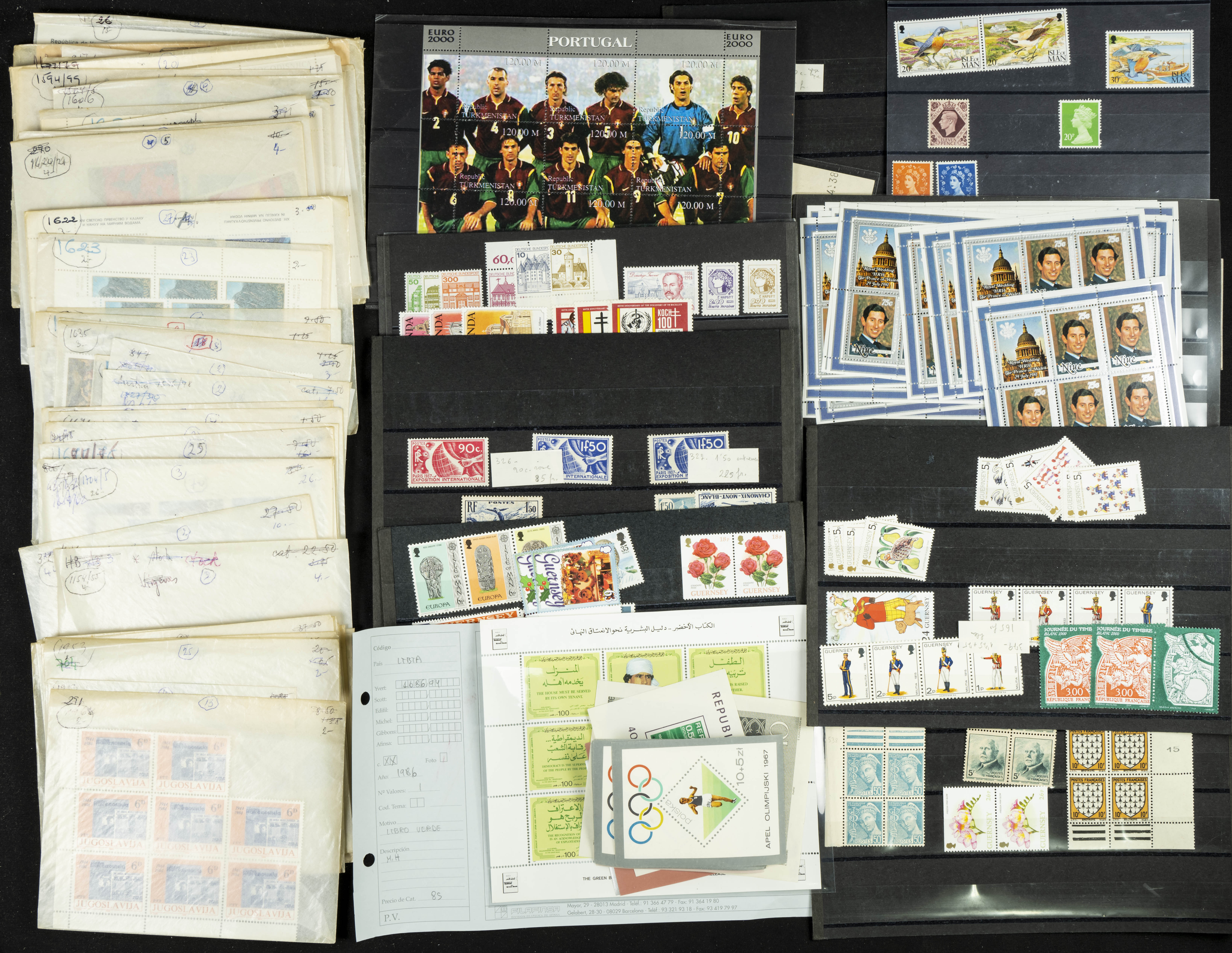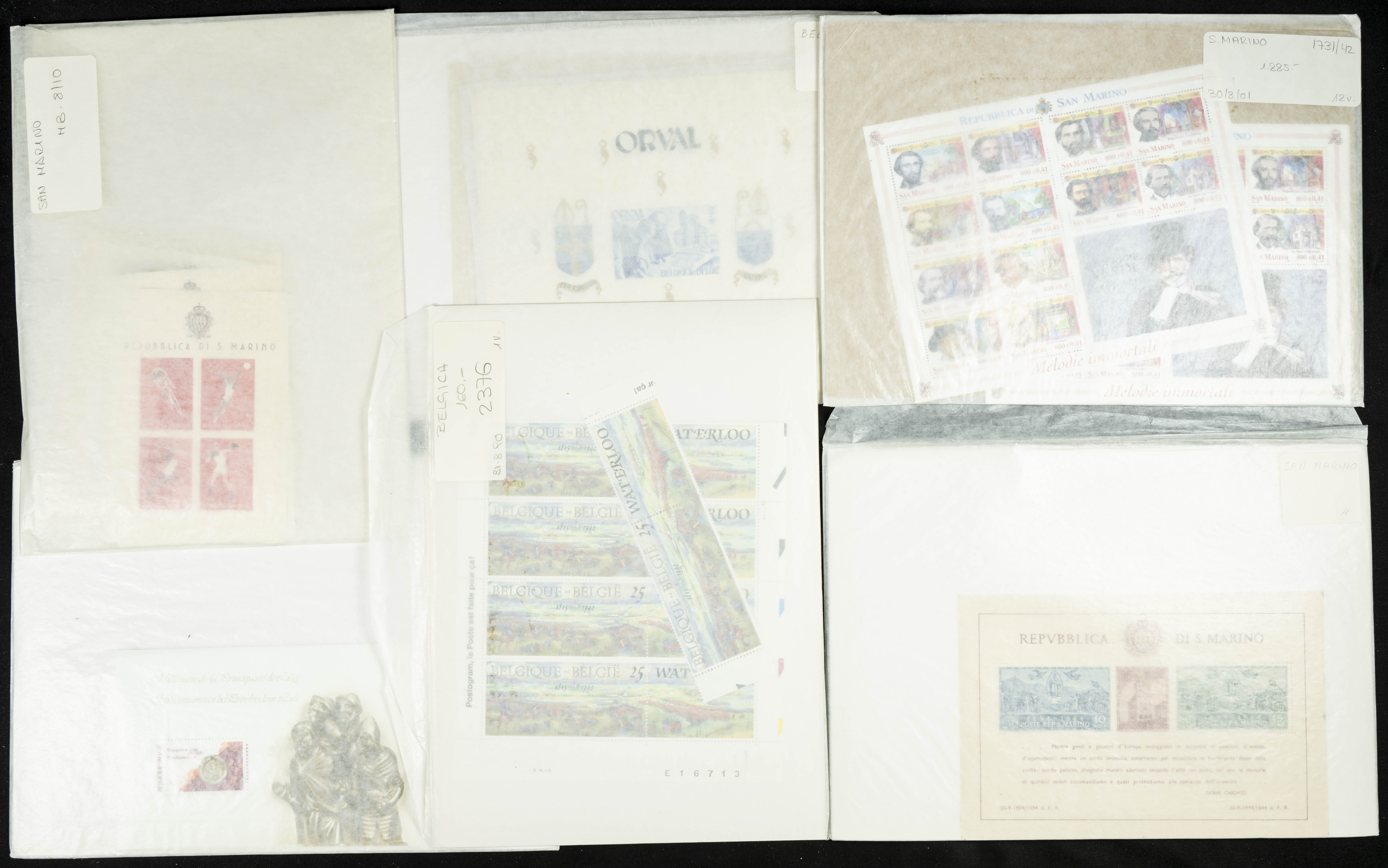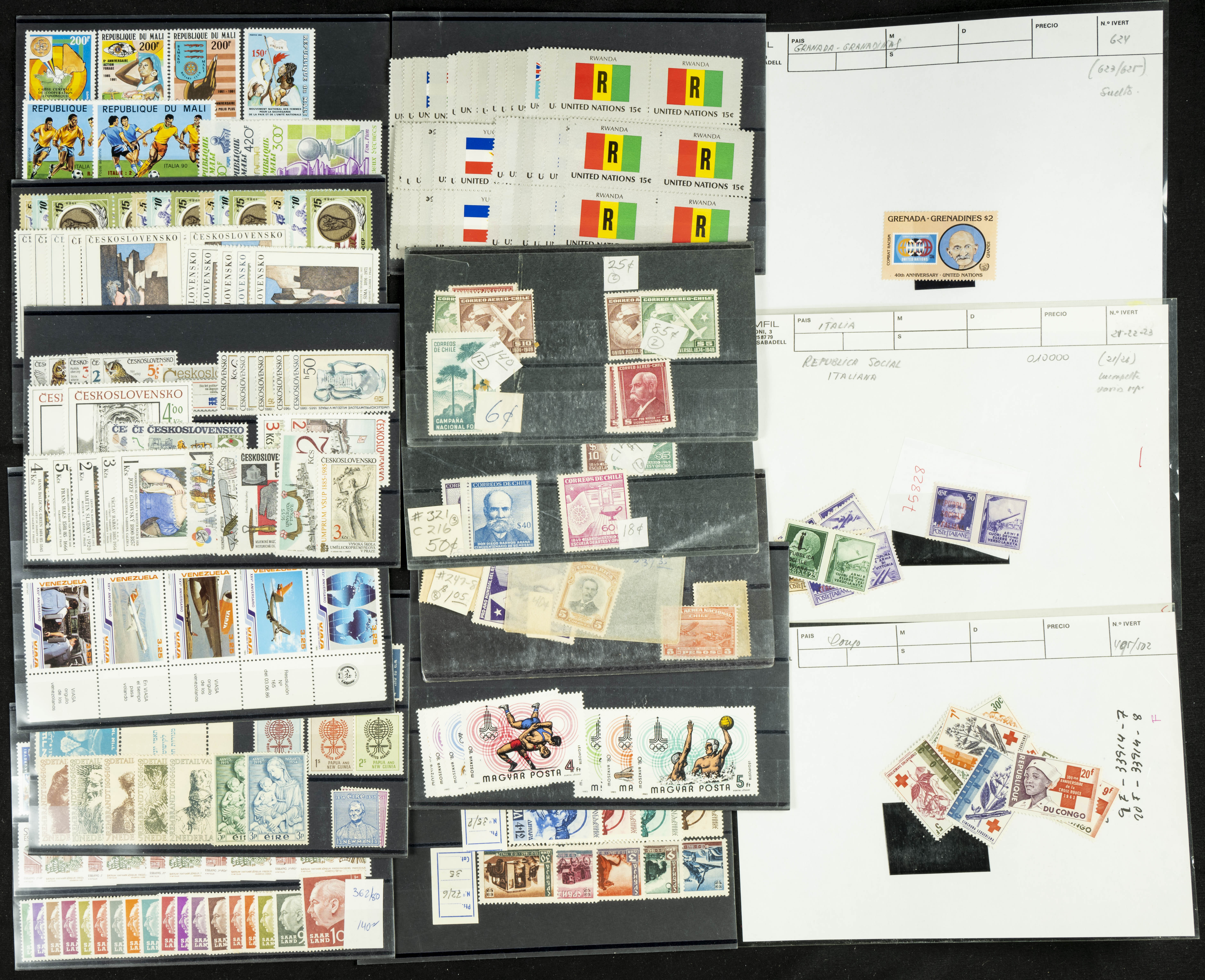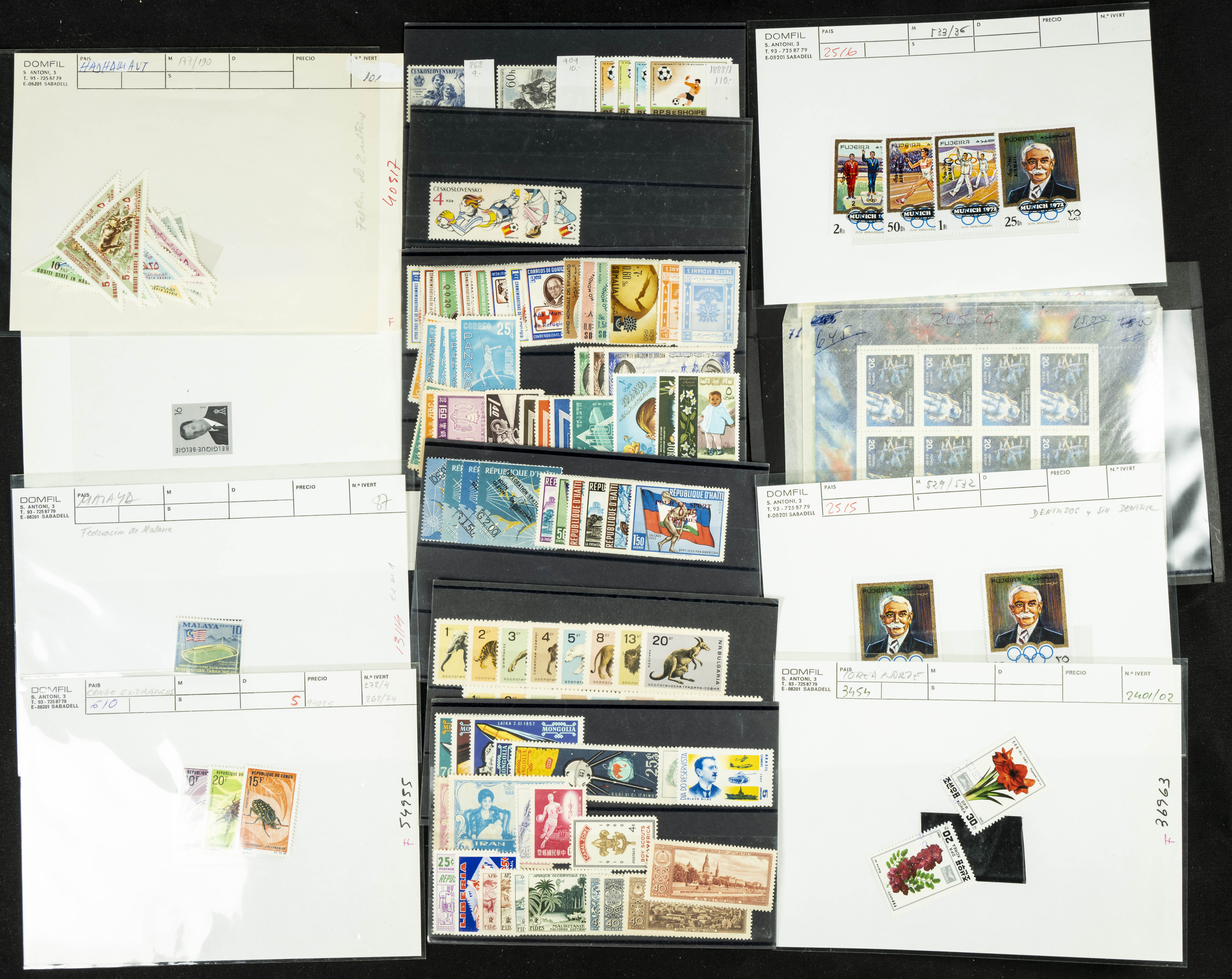 ★★/★(1950ca). An interesting collection of thousands of individual stamps, complete series, and souvenir sheets from various countries, generally dating from 1950 to 1990 and including numerous thematic series. Most are mint, and a large portion are organized in envelopes or on cards. Extremely high catalog value. For examination.