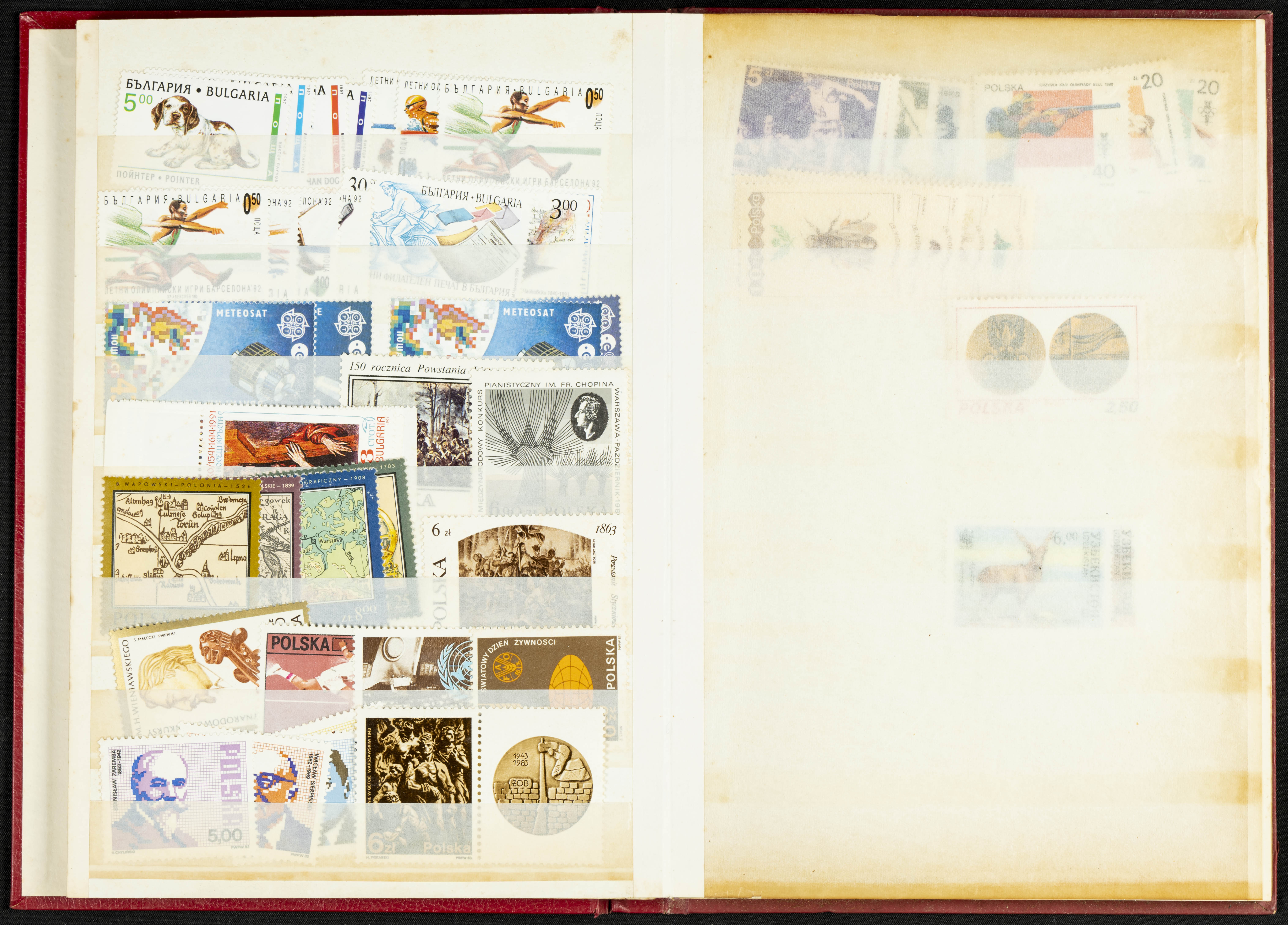 ★★/(1940ca). Conjunto de sellos sueltos, series completas y hojas bloque de diversos países de Europa Oriental (Bulgaria, Rumanía, Rusia, Yugoslavia, Polonia y Checoslovaquia) la mayoría comprendidos entre 1940 y 1995, en nuevo y usado y por lo general la parte moderna en nuevo con algunas repeticiones (el noventa por ciento de los sellos están montados en clasificadores y con polvo de talco para reducir la humedad). ALTO VALOR DE CATALOGO. A EXAMINAR.