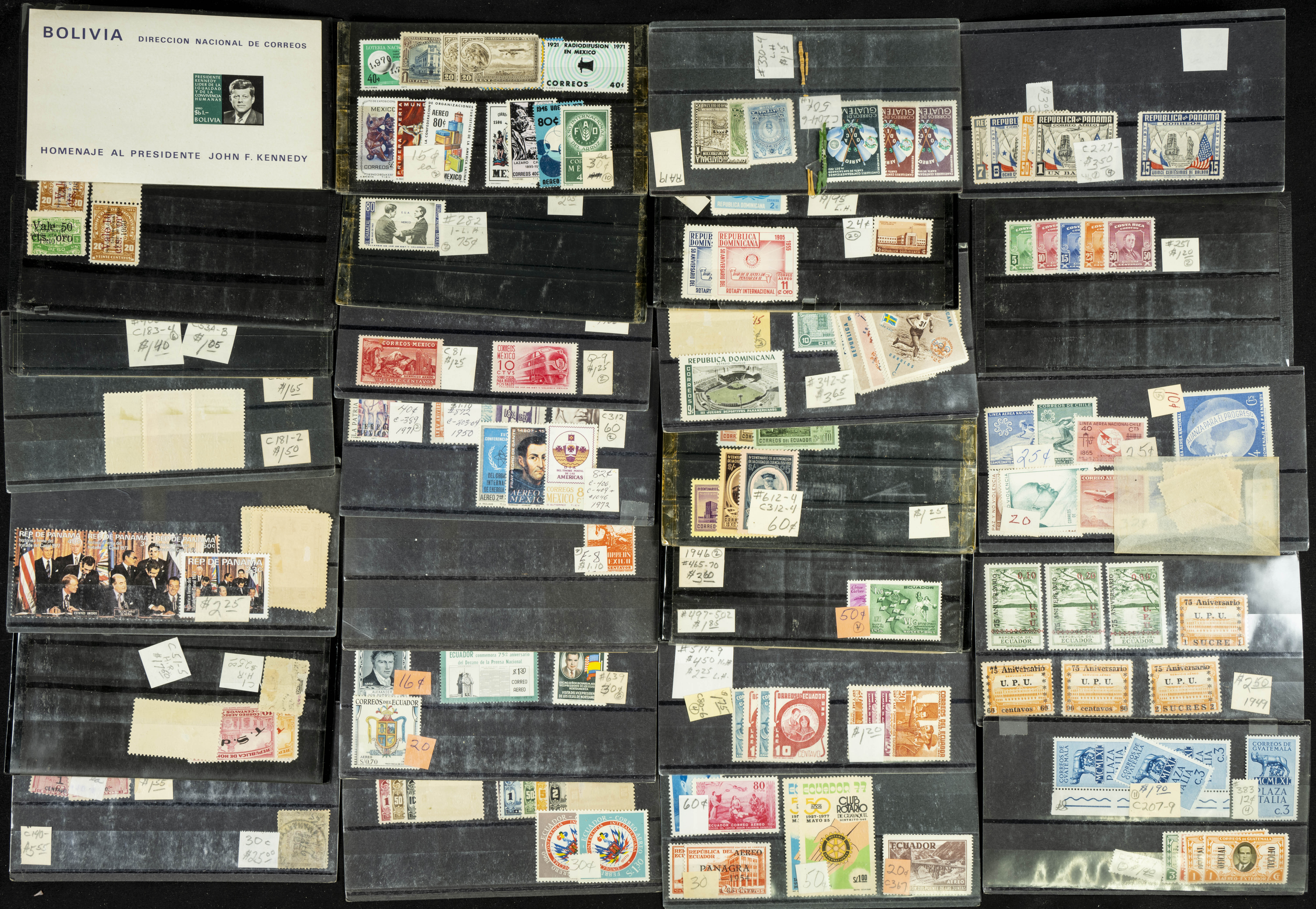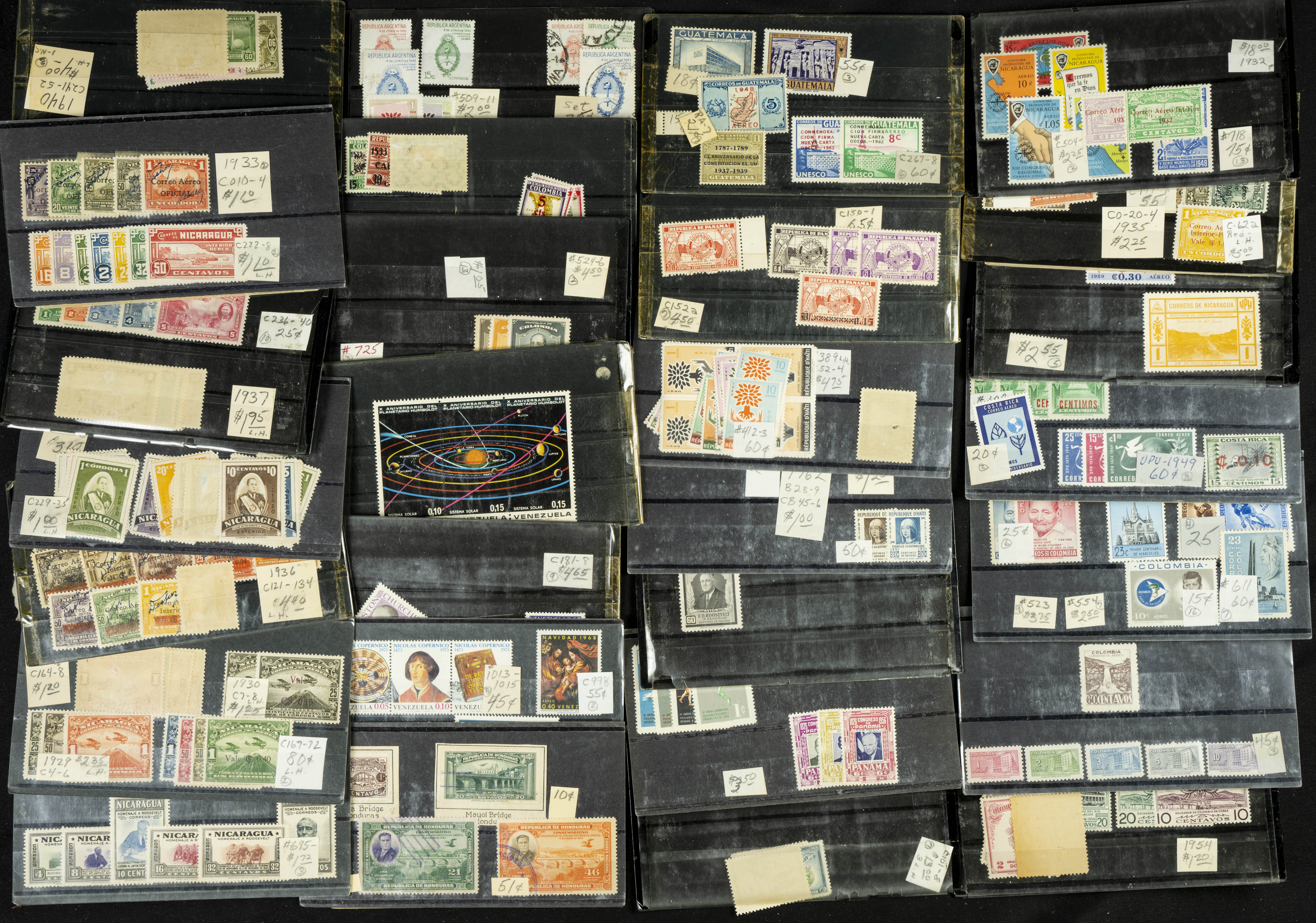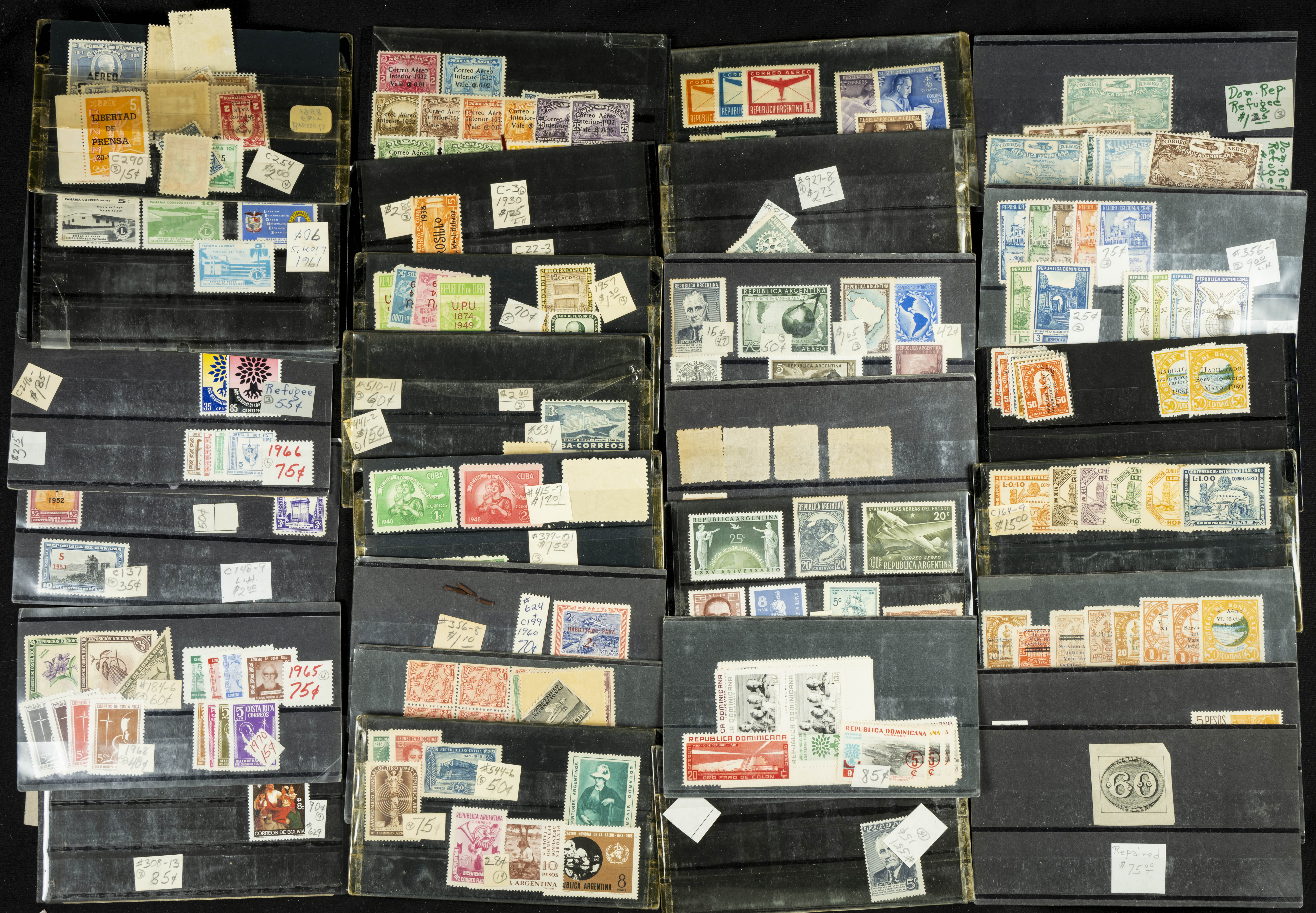 ★/(1930ca). Interesting collection of hundreds of complete series and individual stamps from various countries, many from Latin America, mostly dating from 1930 to 1980, in mint condition (some used stamps) (mounted in cards or glass envelopes). HIGH CATALOG VALUE. TO BE EXAMINED.