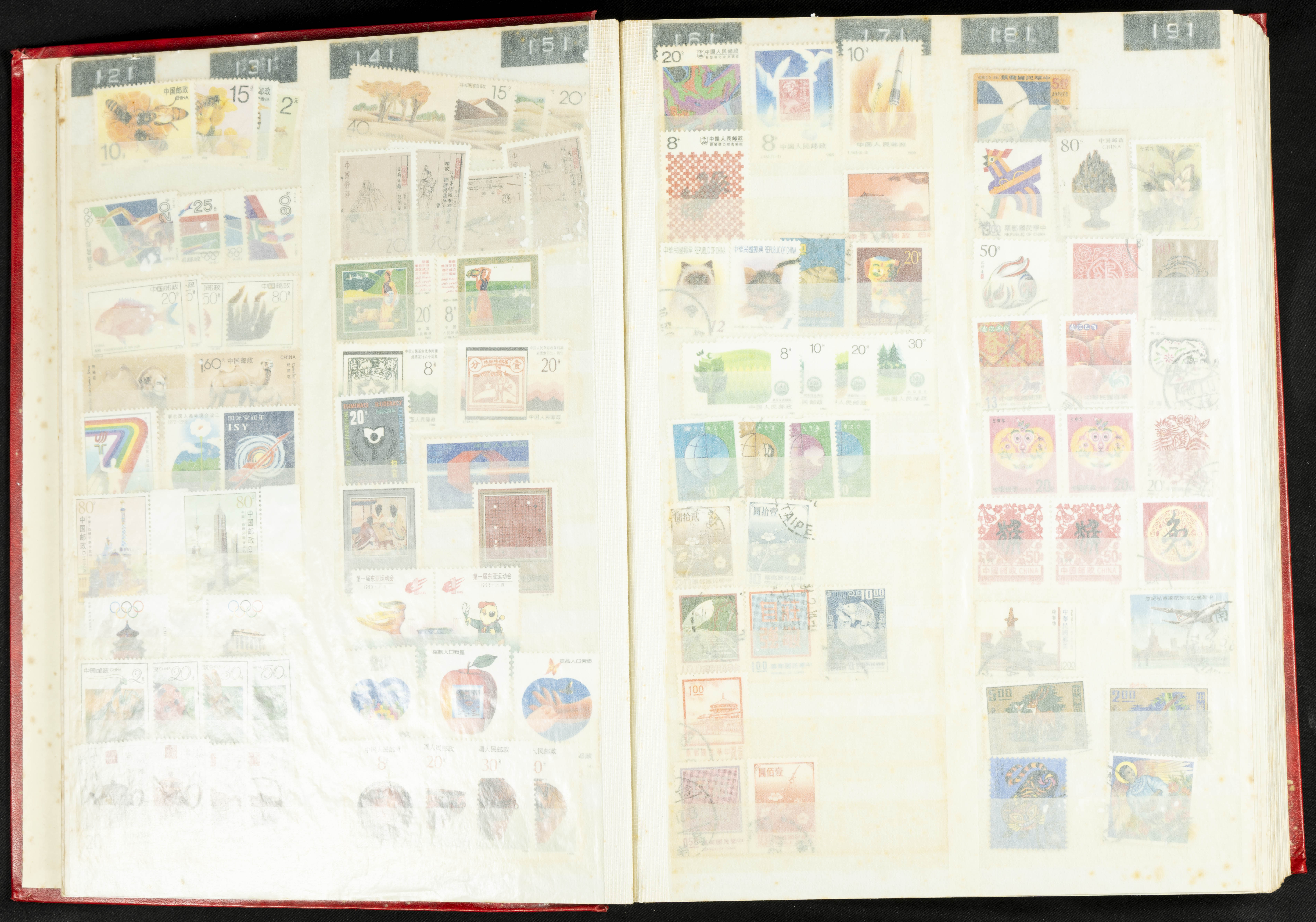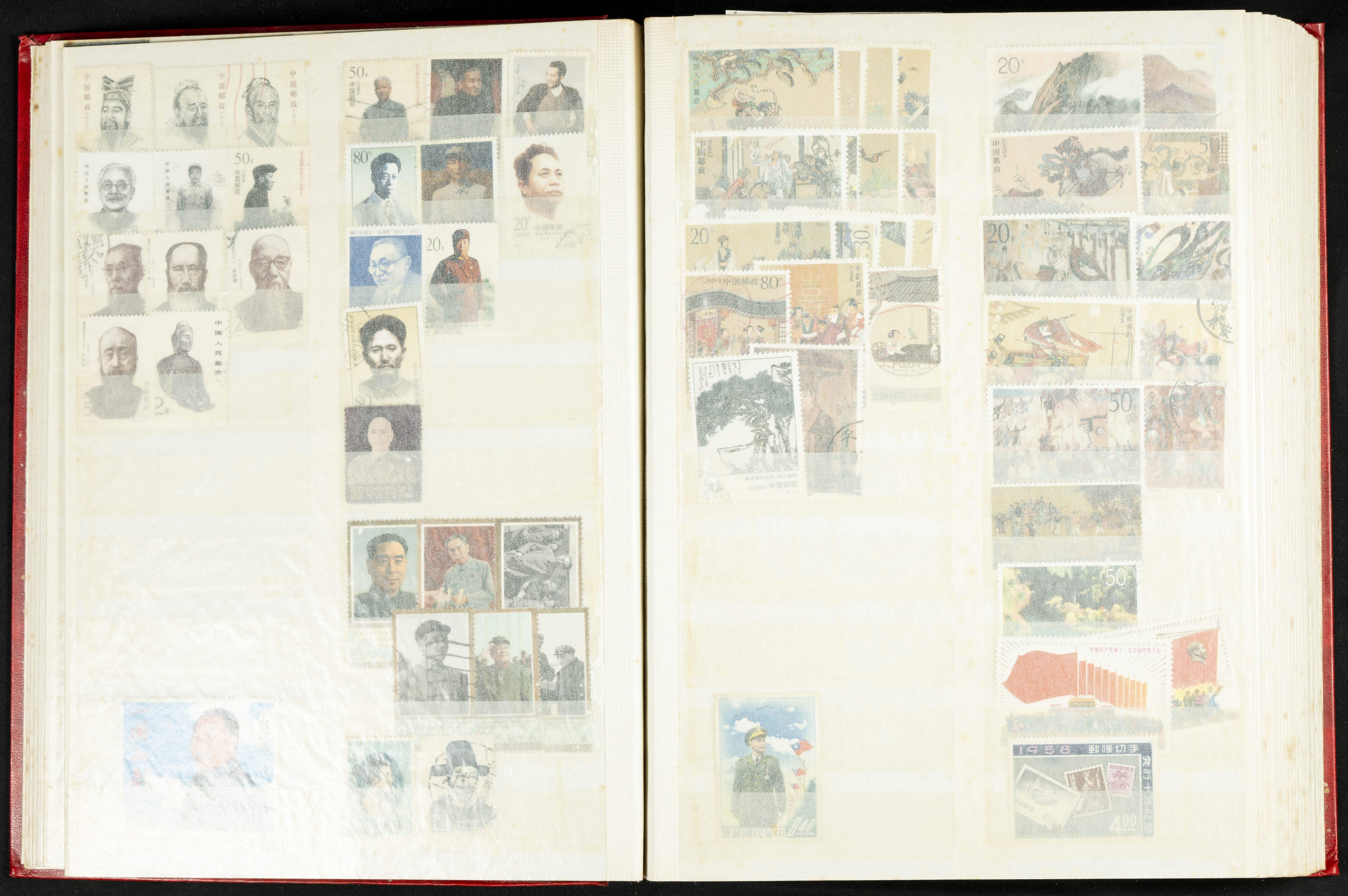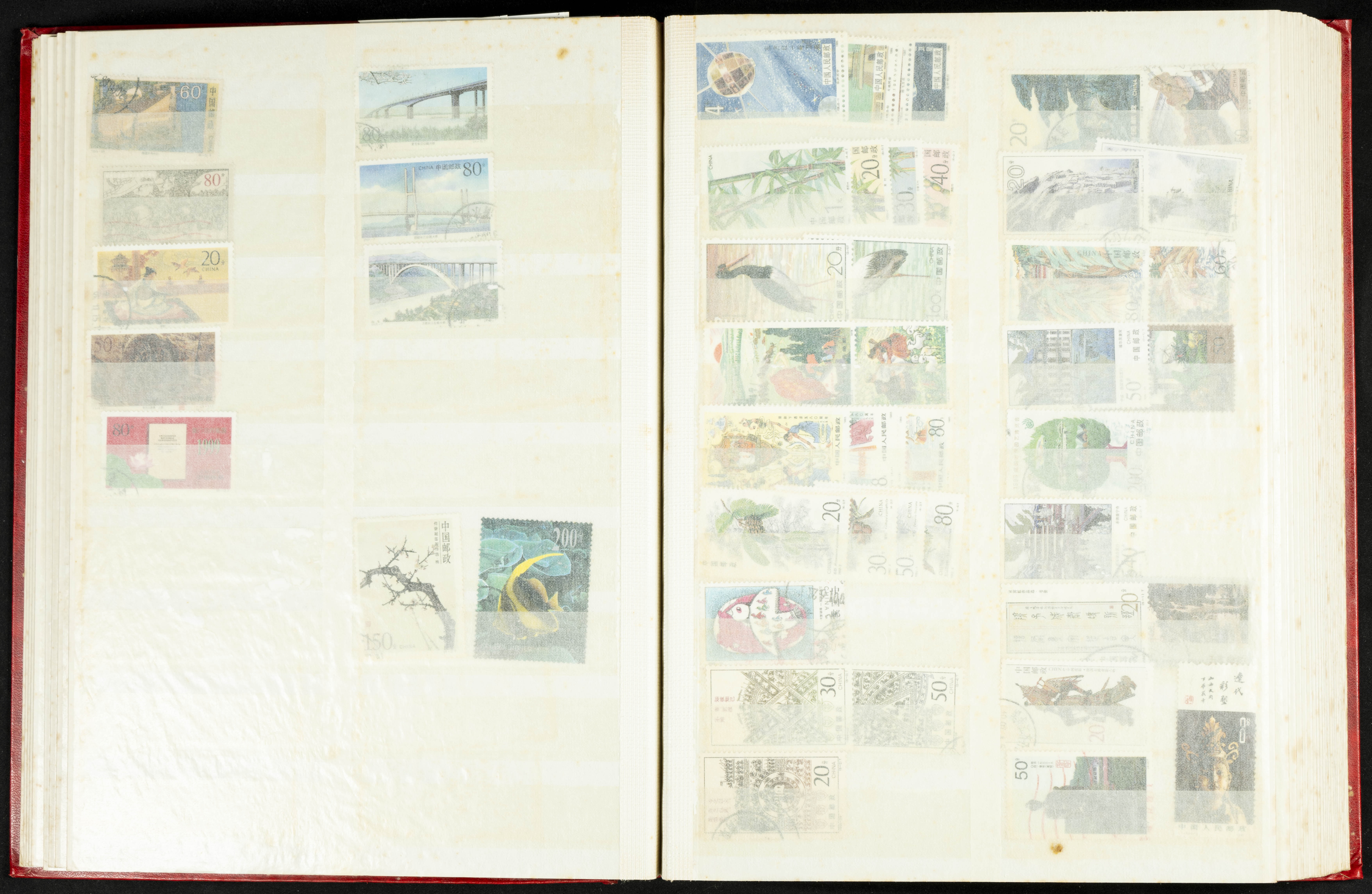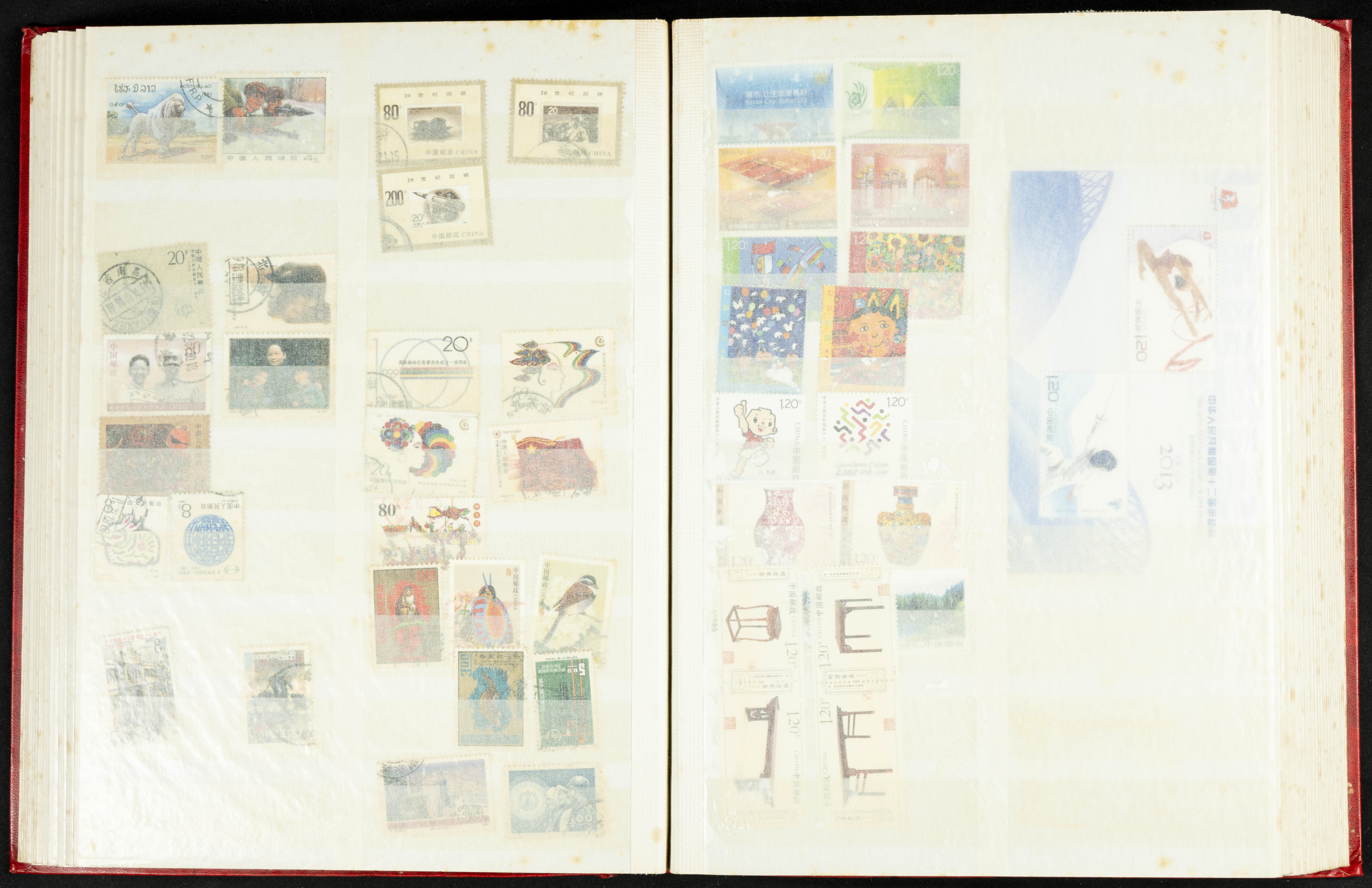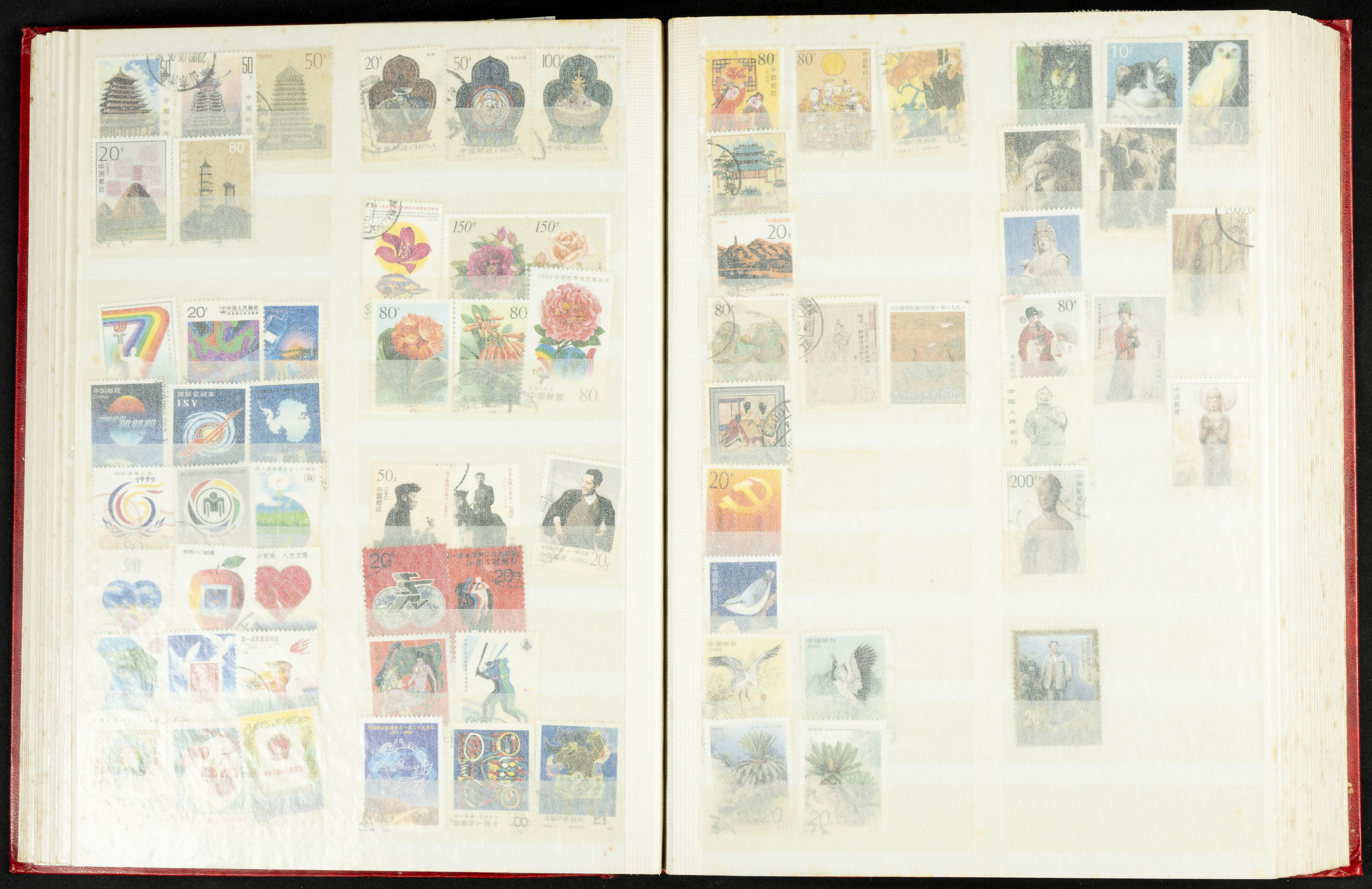 ★★/(1960ca). Interesante conjunto de sellos sueltos, series completas y hojas bloque de diversos países de Asia (China, Japón, India, Hong Kong) la mayoría comprendidos entre 1960 y 2005, en nuevo y usado y por lo general la parte más moderna en nuevo con algunas repeticiones (el noventa por ciento de los sellos están montados en clasificadores y con polvo de talco para reducir la humedad), incluye alguna carpeta o libros conmemorativos de China y un clasificador con sellos de Egipto. ALTISIMO VALOR DE CATALOGO. A EXAMINAR.