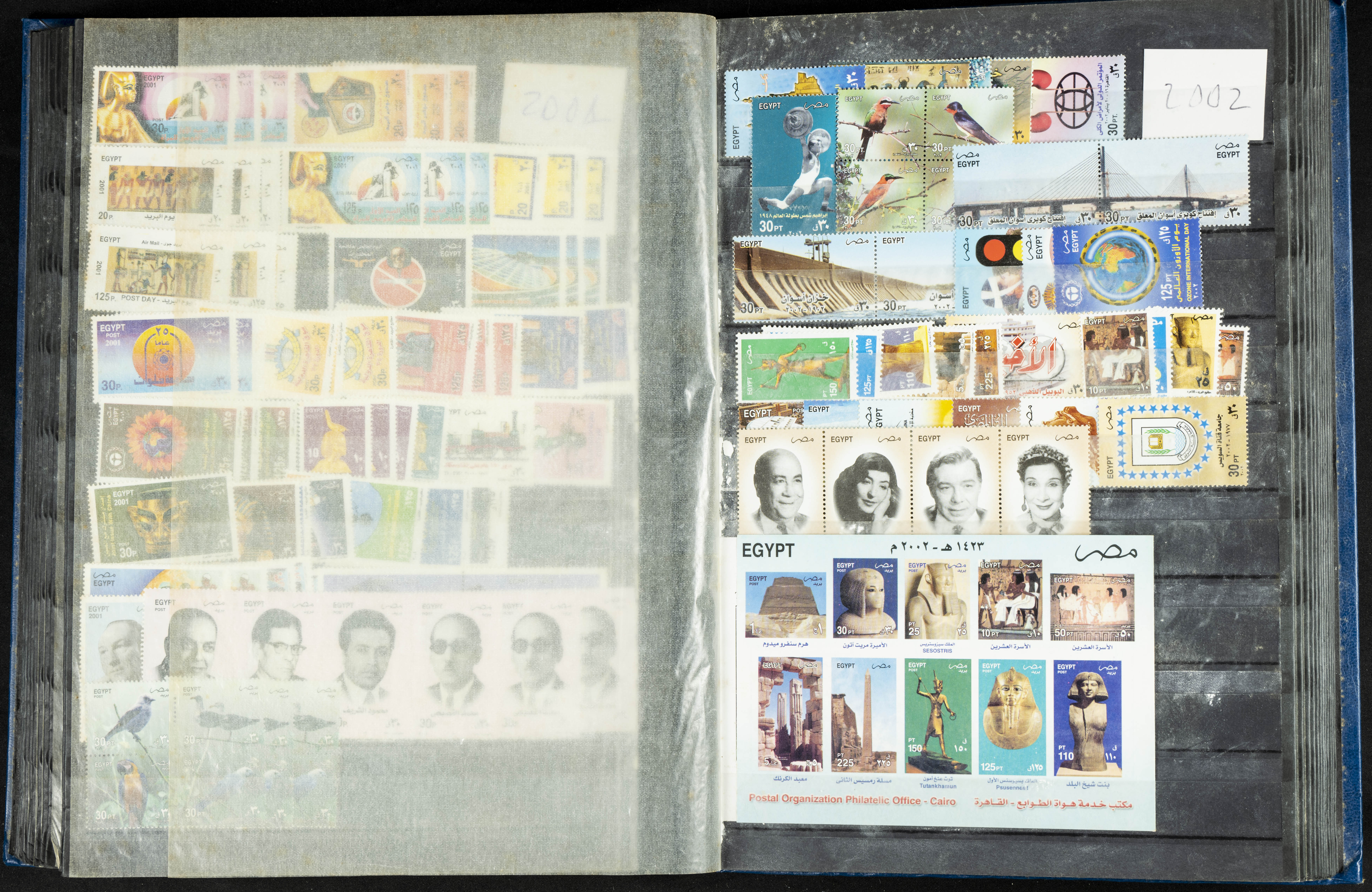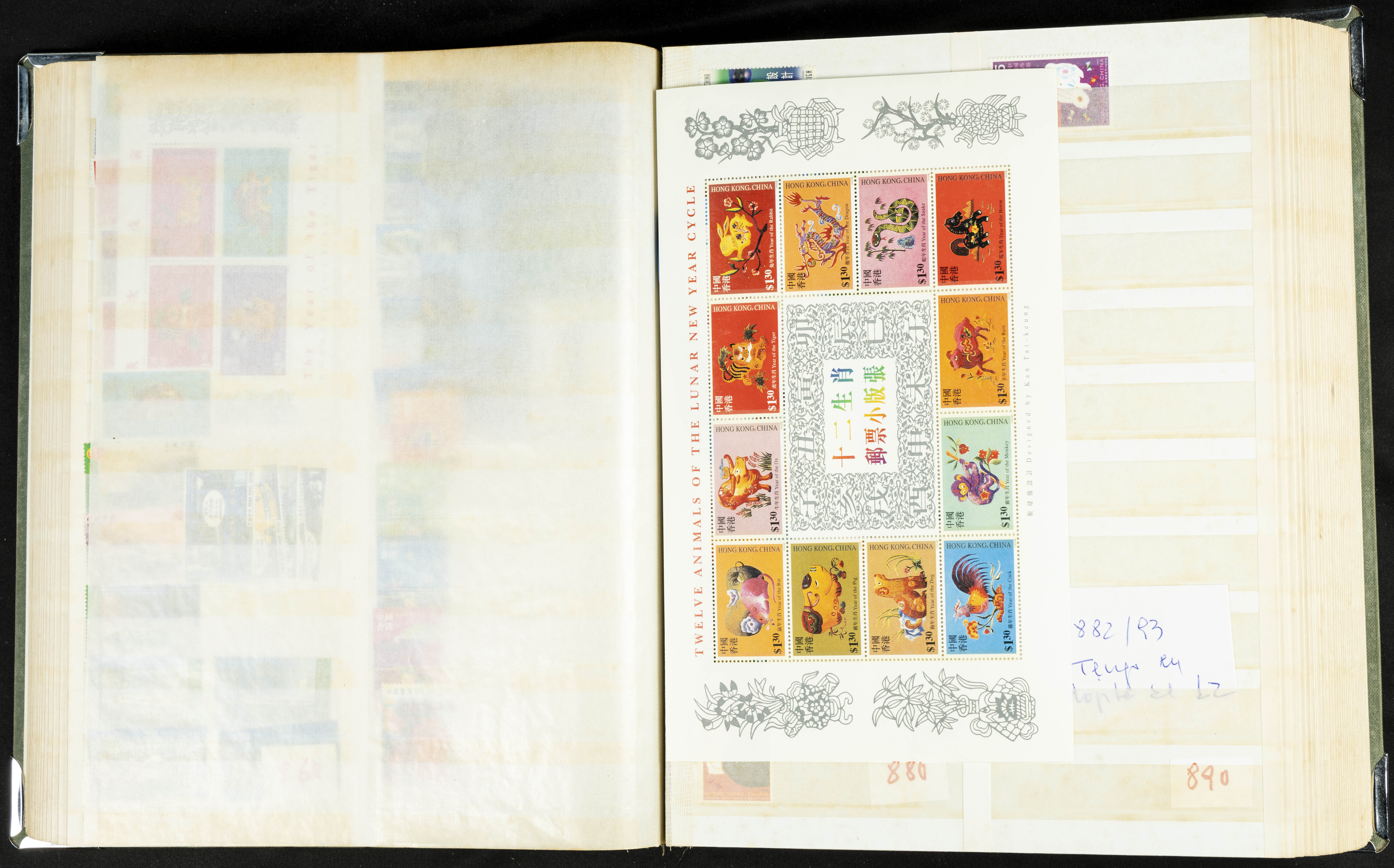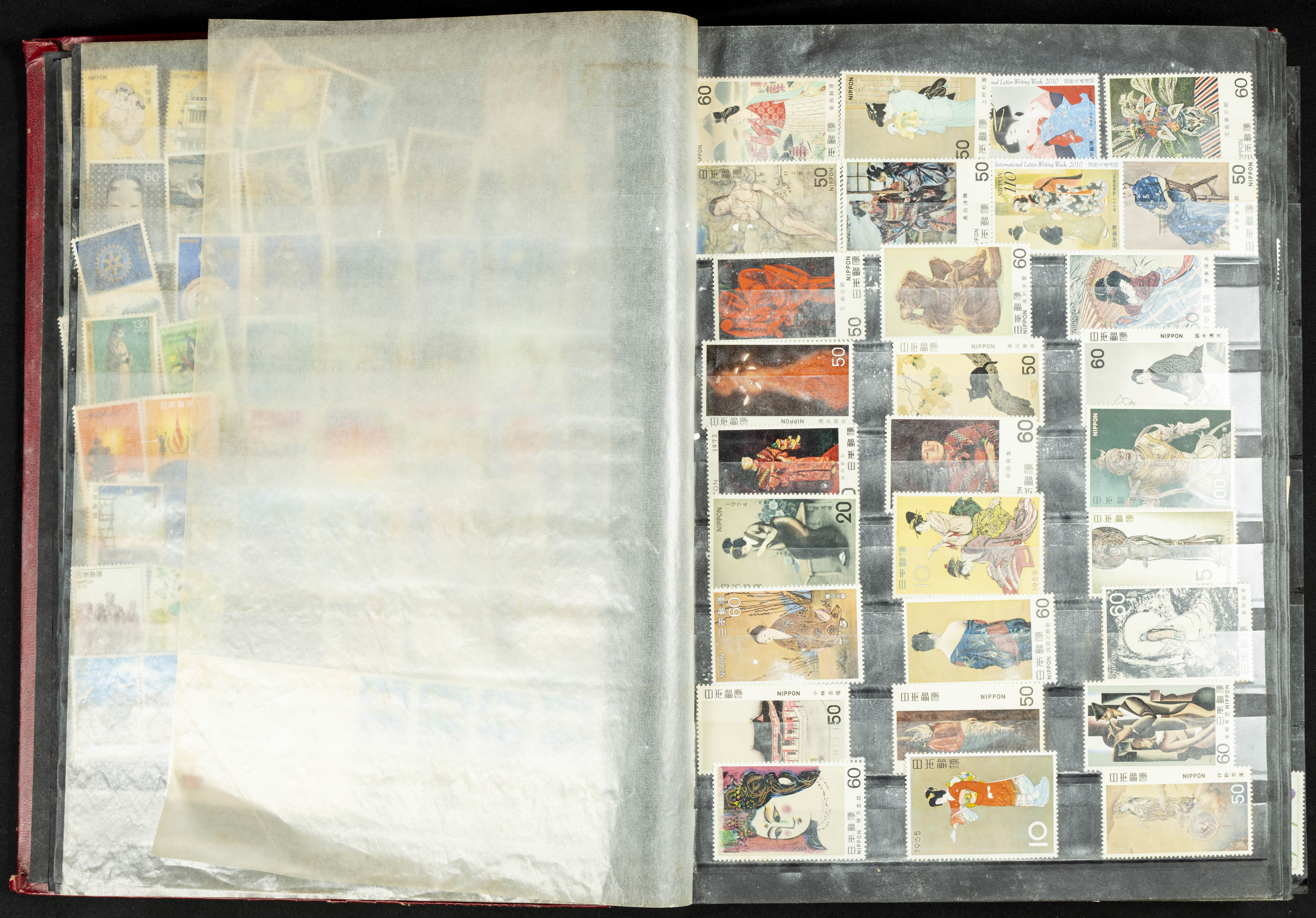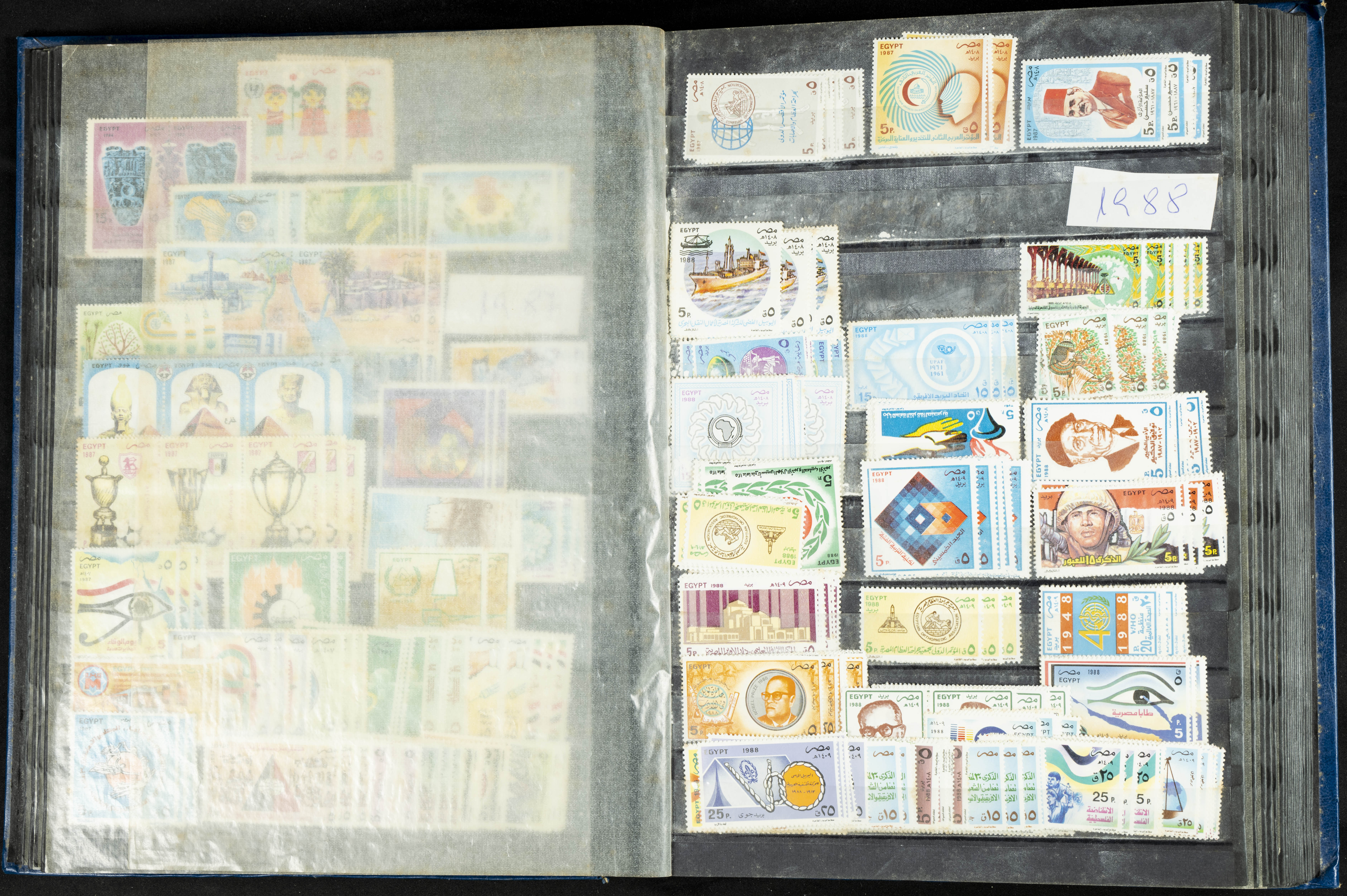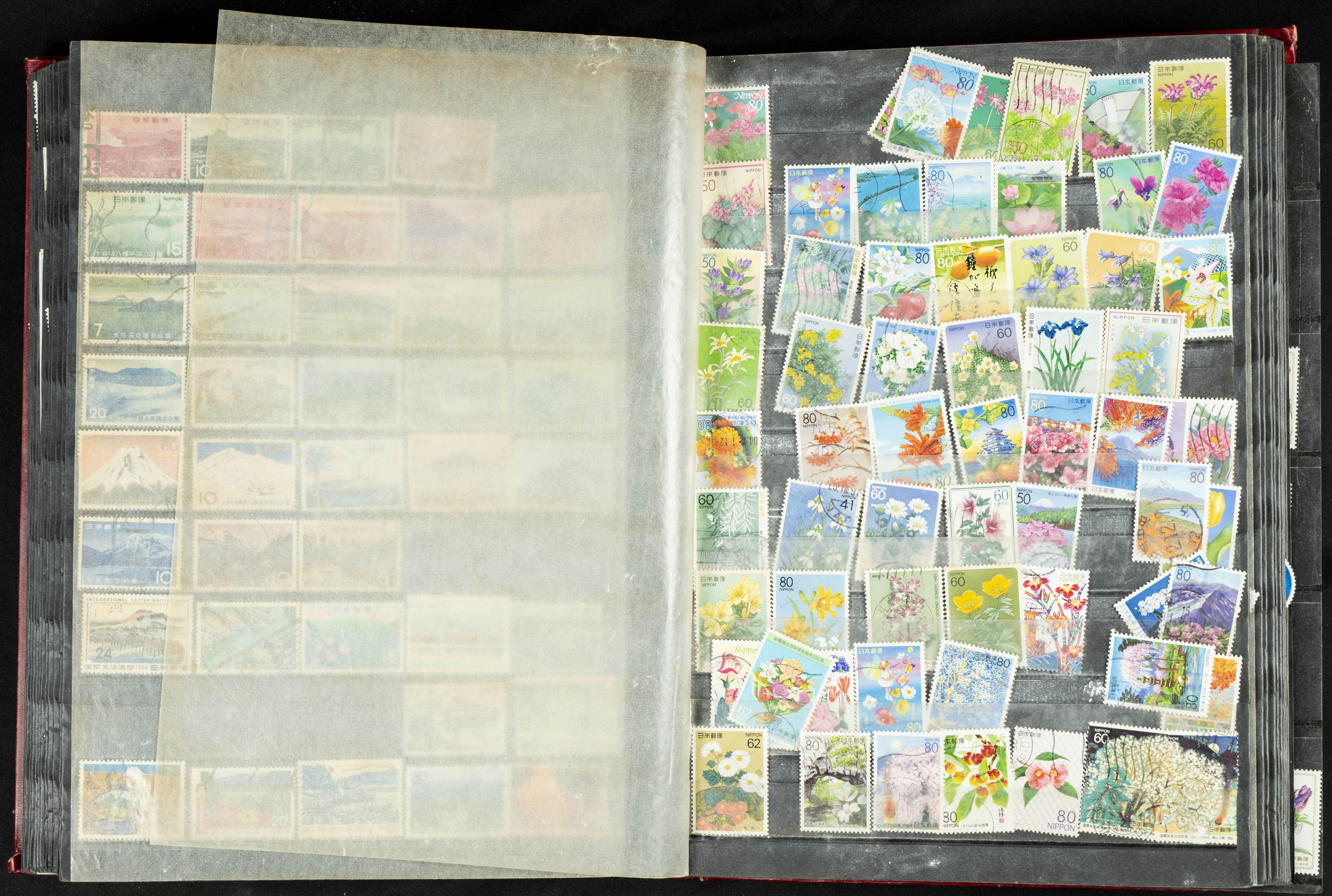 ★★/(1960ca). Interesante conjunto de sellos sueltos, series completas y hojas bloque de diversos países de Asia (China, Japón, India, Hong Kong) la mayoría comprendidos entre 1960 y 2005, en nuevo y usado y por lo general la parte más moderna en nuevo con algunas repeticiones (el noventa por ciento de los sellos están montados en clasificadores y con polvo de talco para reducir la humedad), incluye alguna carpeta o libros conmemorativos de China y un clasificador con sellos de Egipto. ALTISIMO VALOR DE CATALOGO. A EXAMINAR.