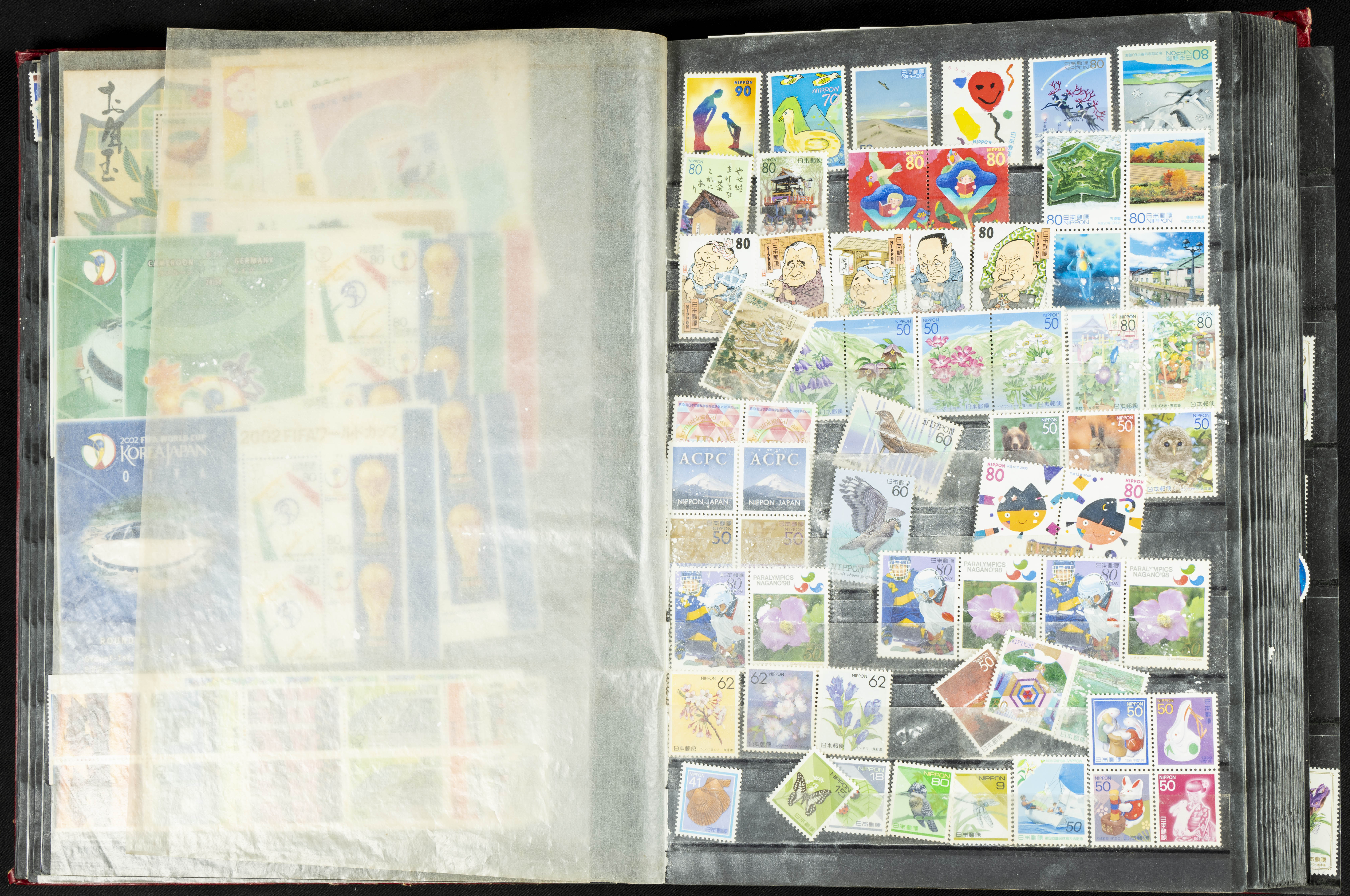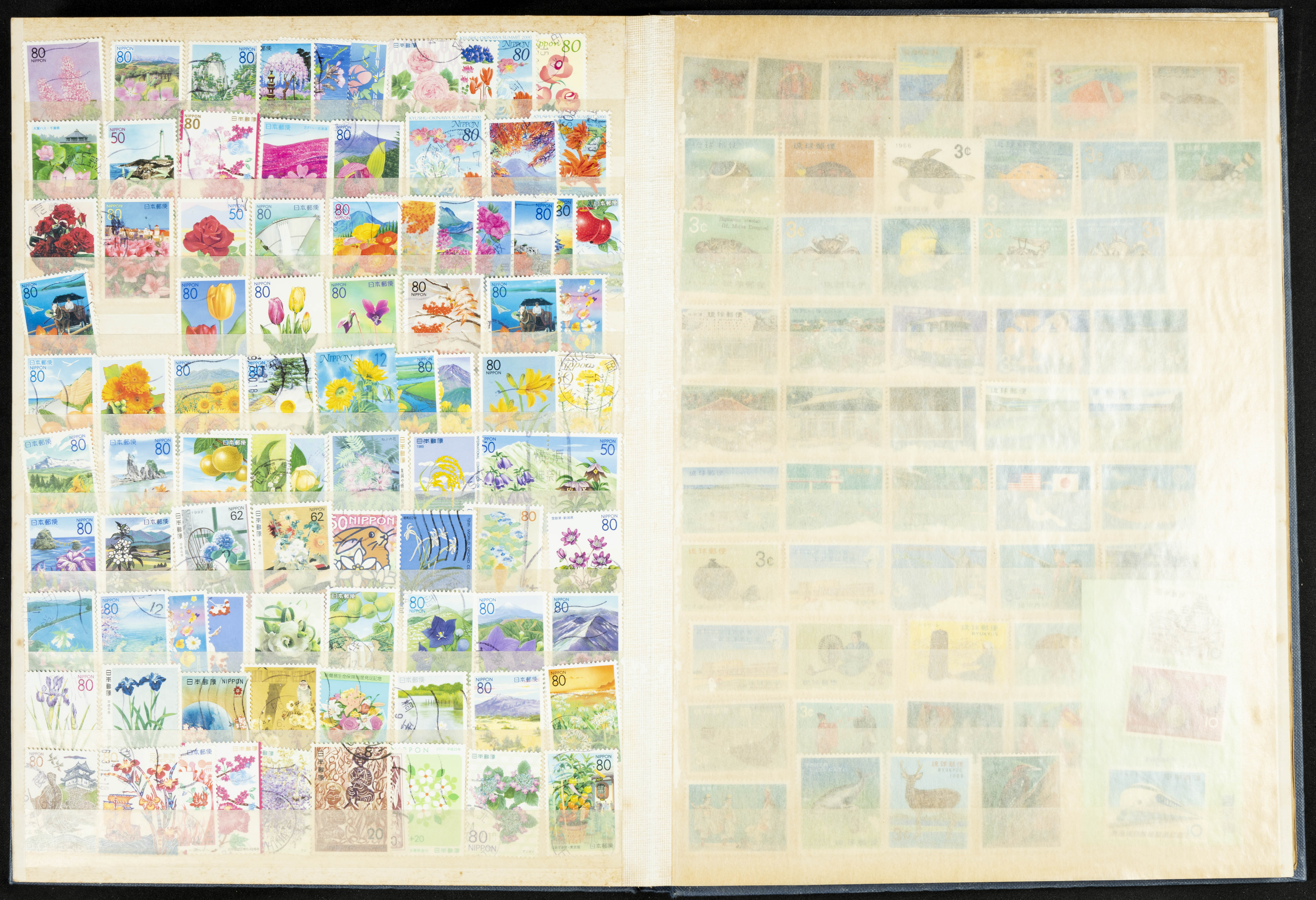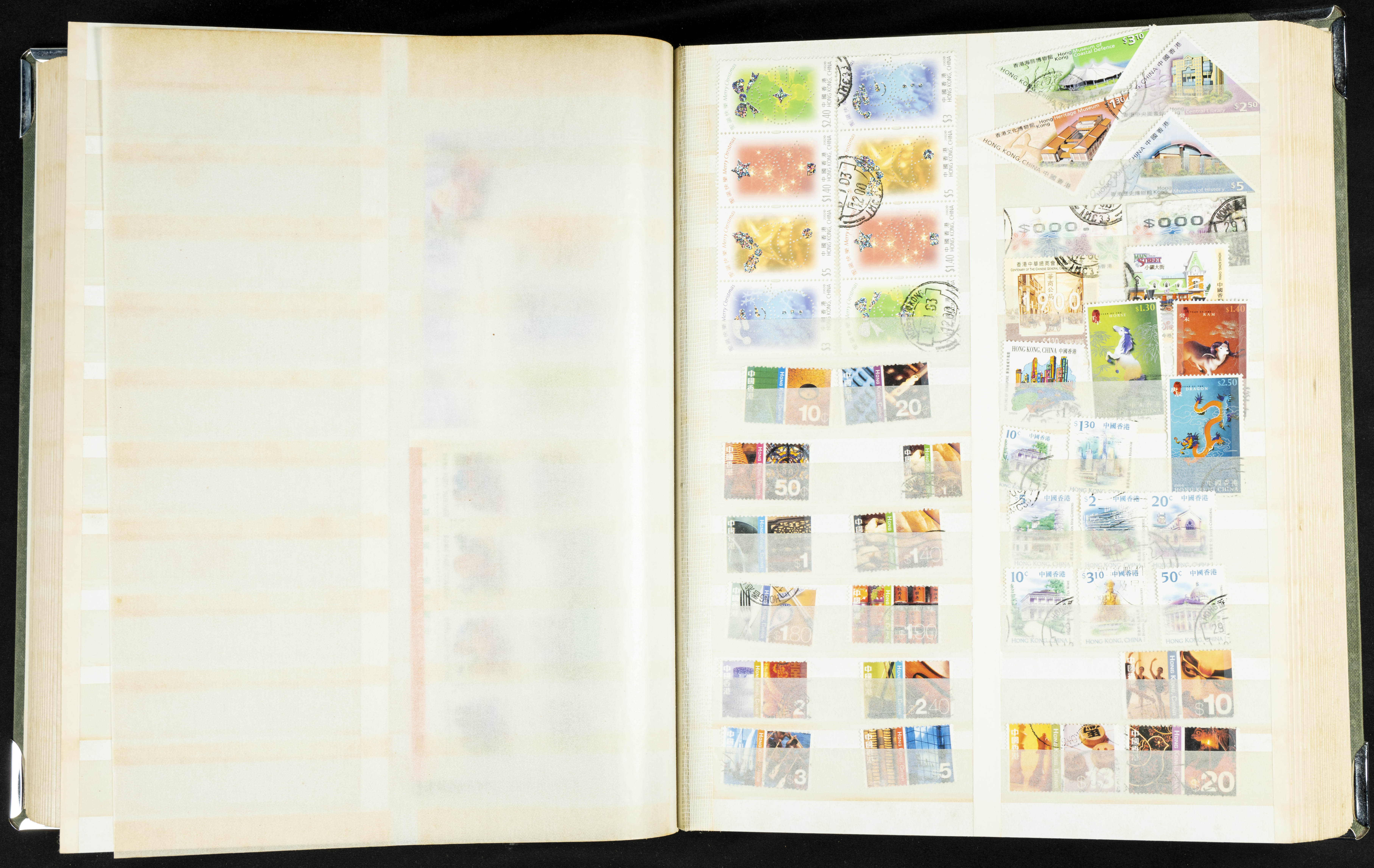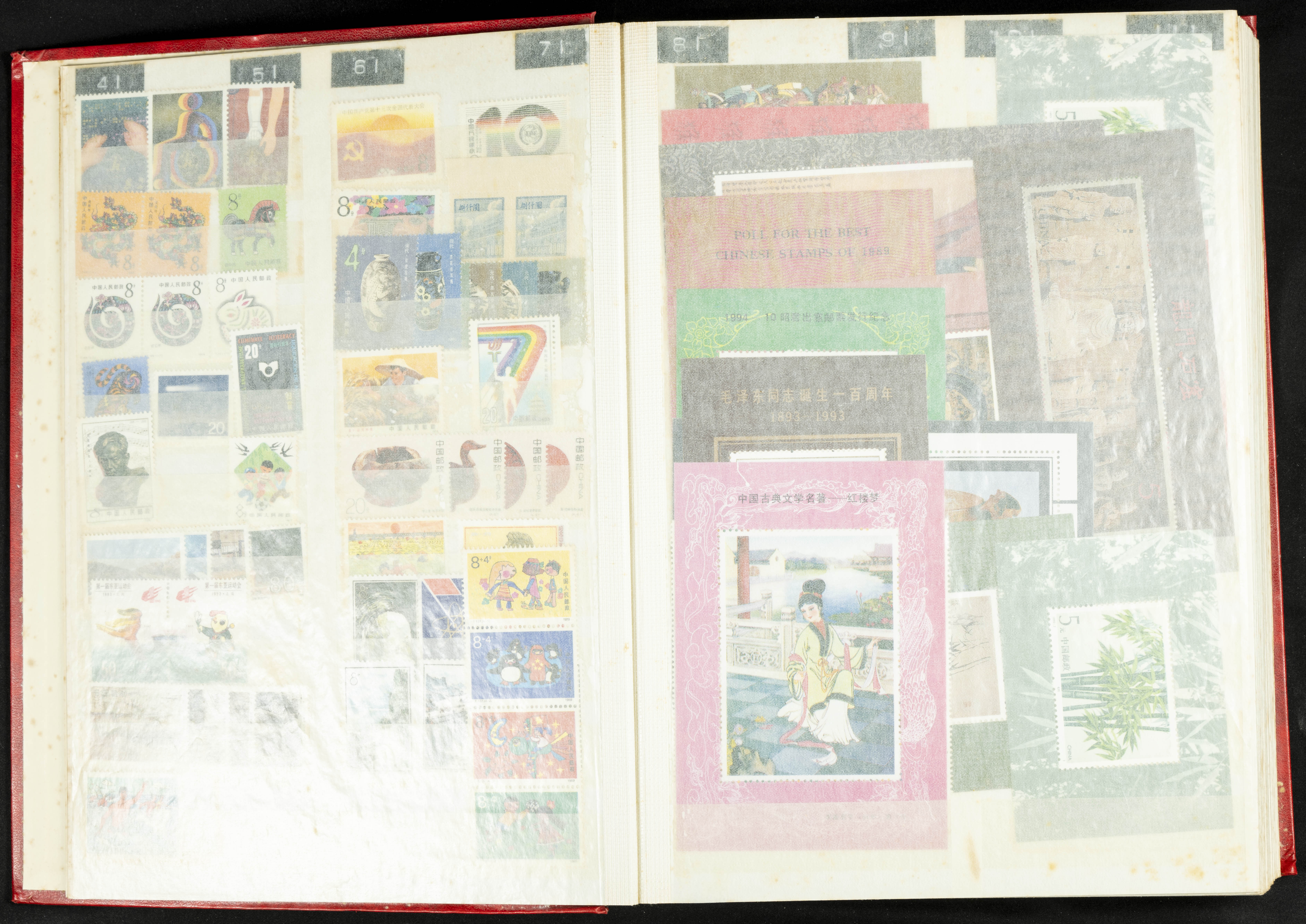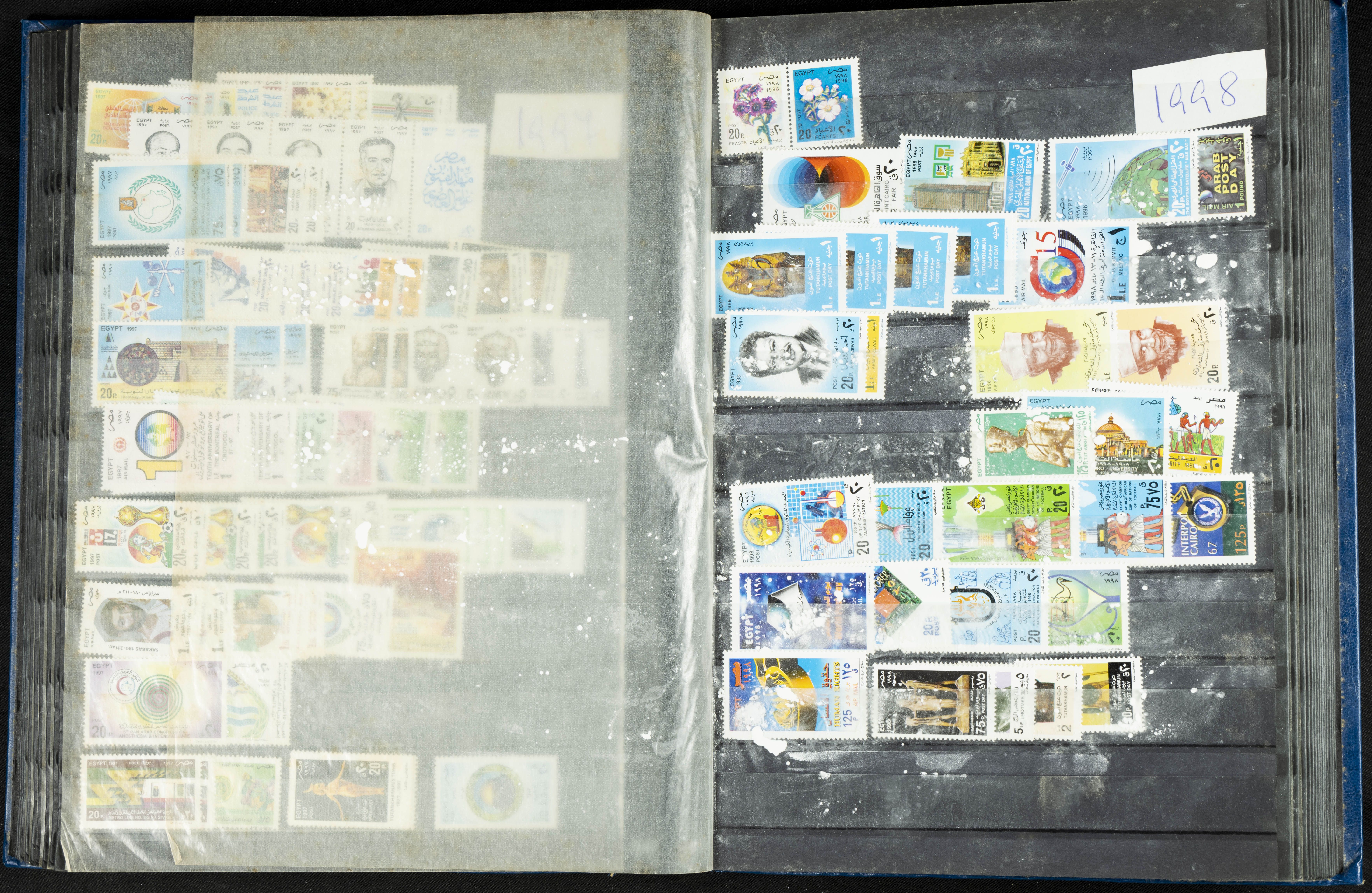 ★★/(1960ca). Interesante conjunto de sellos sueltos, series completas y hojas bloque de diversos países de Asia (China, Japón, India, Hong Kong) la mayoría comprendidos entre 1960 y 2005, en nuevo y usado y por lo general la parte más moderna en nuevo con algunas repeticiones (el noventa por ciento de los sellos están montados en clasificadores y con polvo de talco para reducir la humedad), incluye alguna carpeta o libros conmemorativos de China y un clasificador con sellos de Egipto. ALTISIMO VALOR DE CATALOGO. A EXAMINAR.