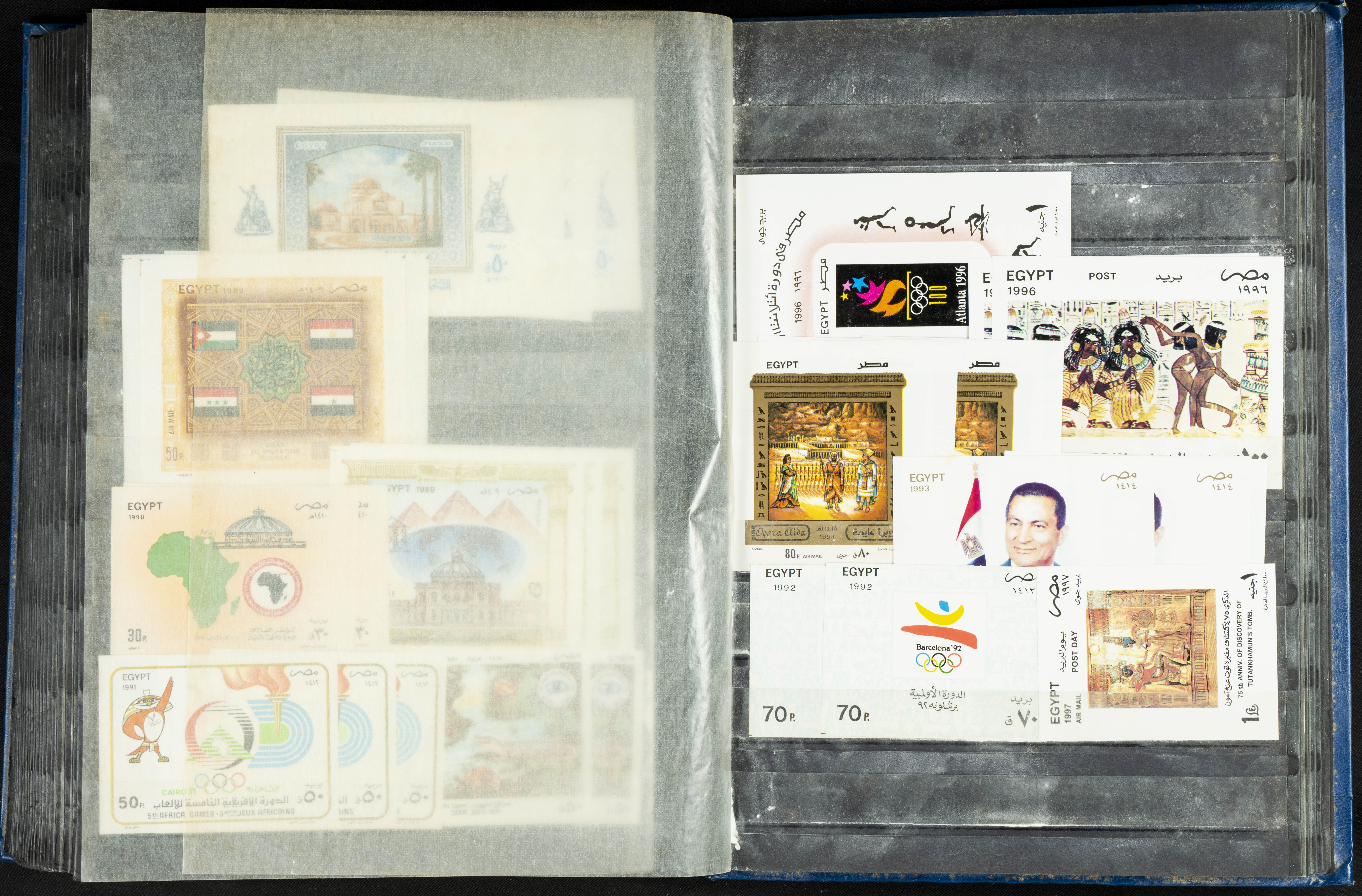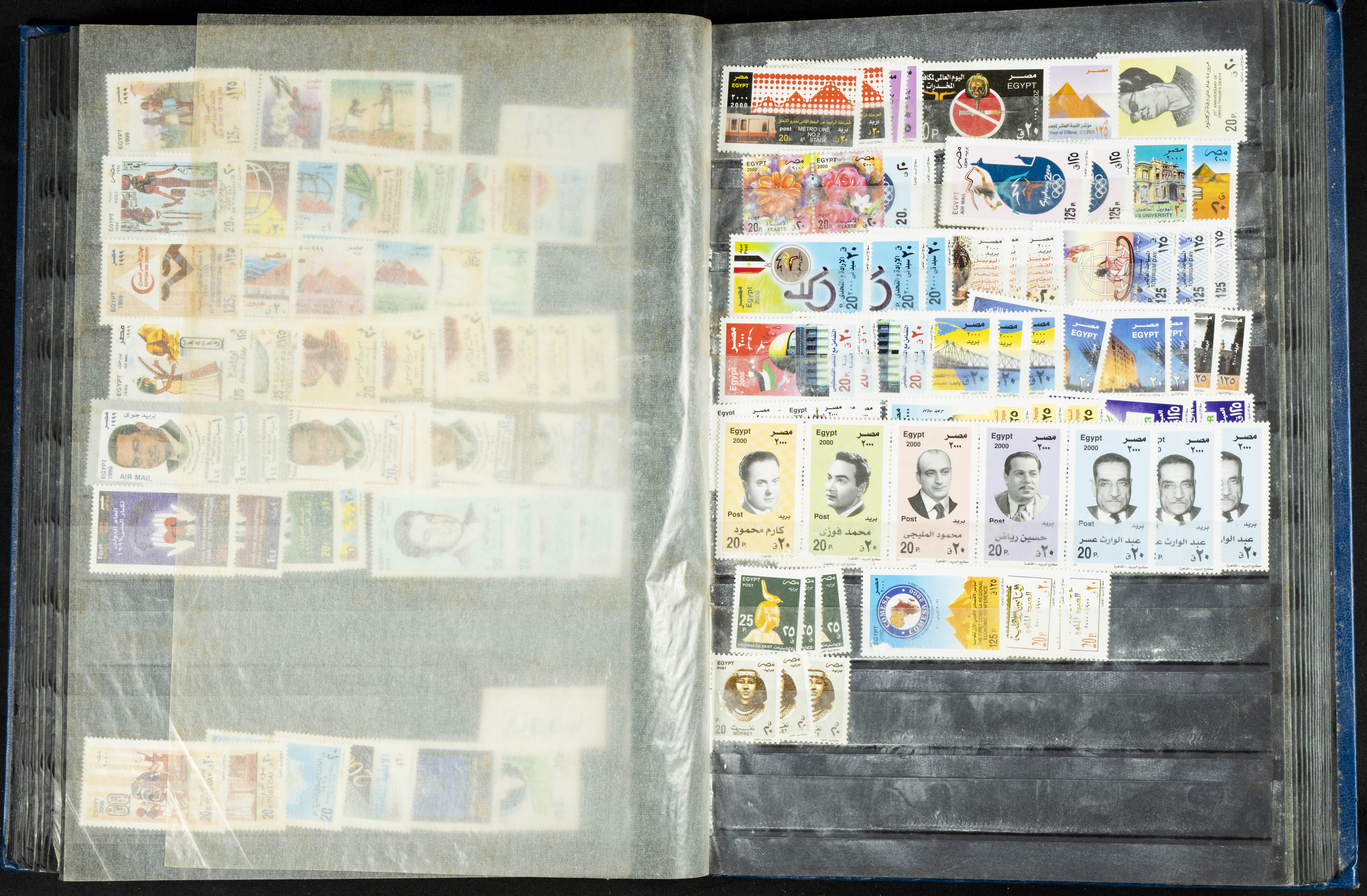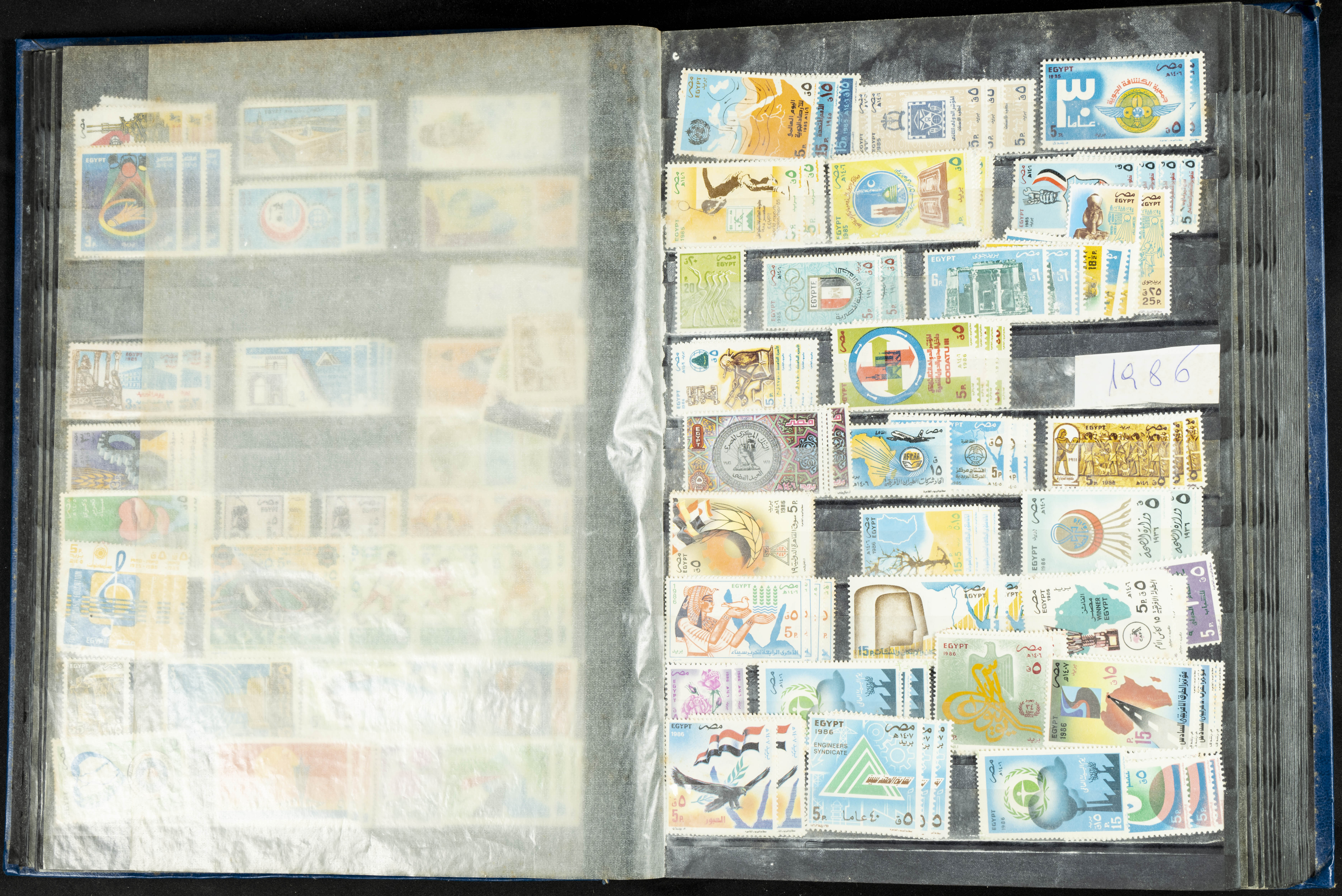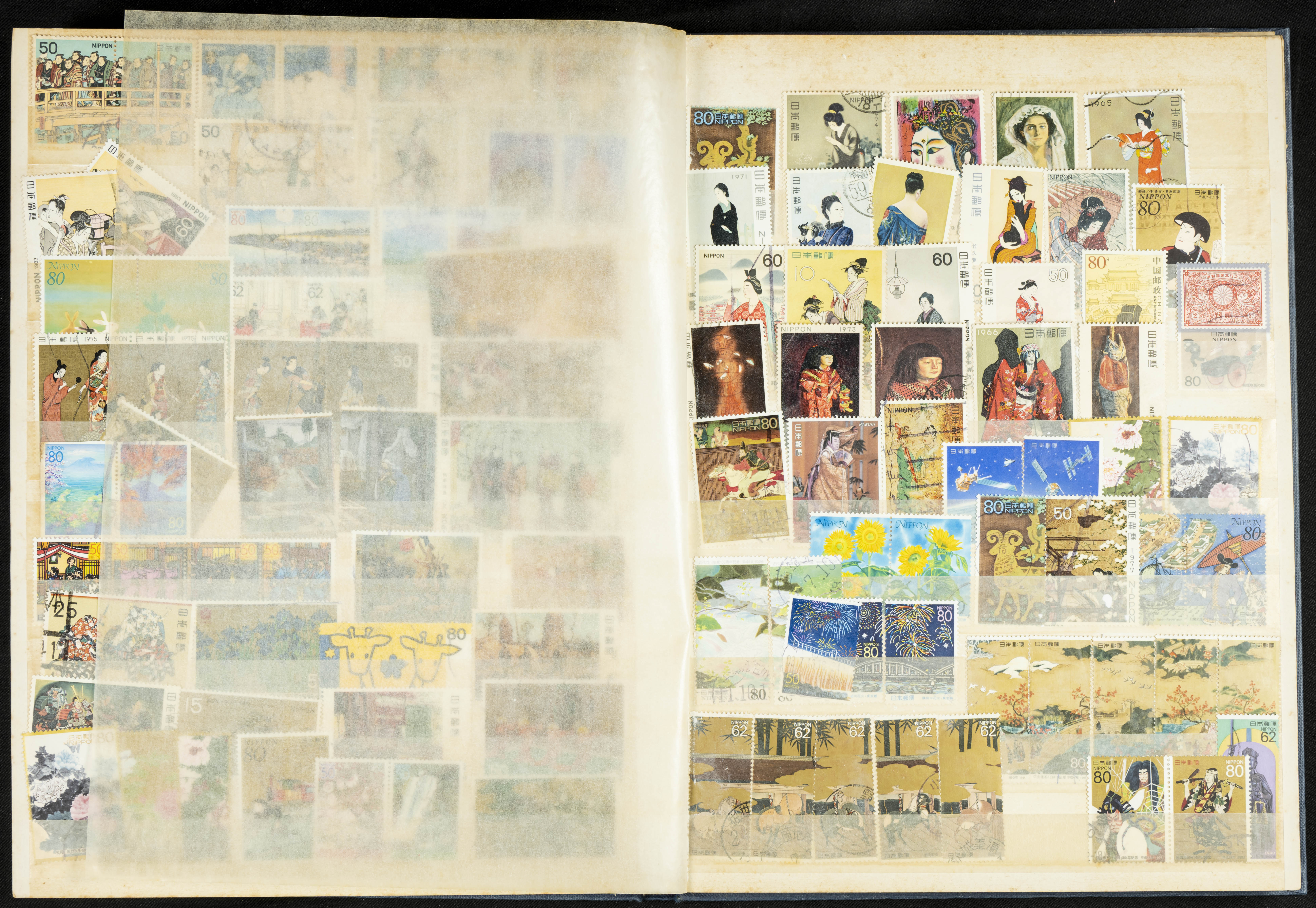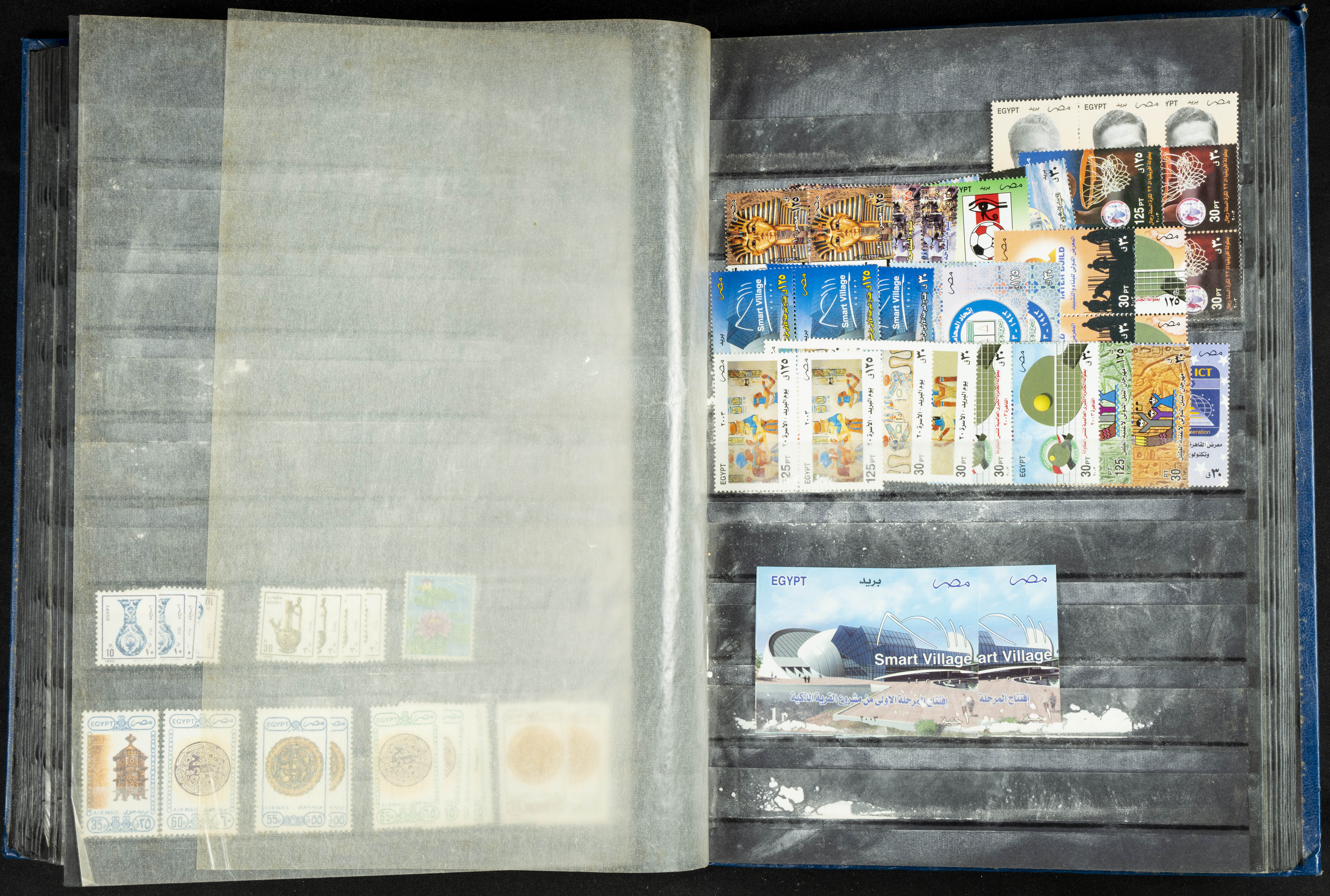 ★★/(1960ca). Interesante conjunto de sellos sueltos, series completas y hojas bloque de diversos países de Asia (China, Japón, India, Hong Kong) la mayoría comprendidos entre 1960 y 2005, en nuevo y usado y por lo general la parte más moderna en nuevo con algunas repeticiones (el noventa por ciento de los sellos están montados en clasificadores y con polvo de talco para reducir la humedad), incluye alguna carpeta o libros conmemorativos de China y un clasificador con sellos de Egipto. ALTISIMO VALOR DE CATALOGO. A EXAMINAR.