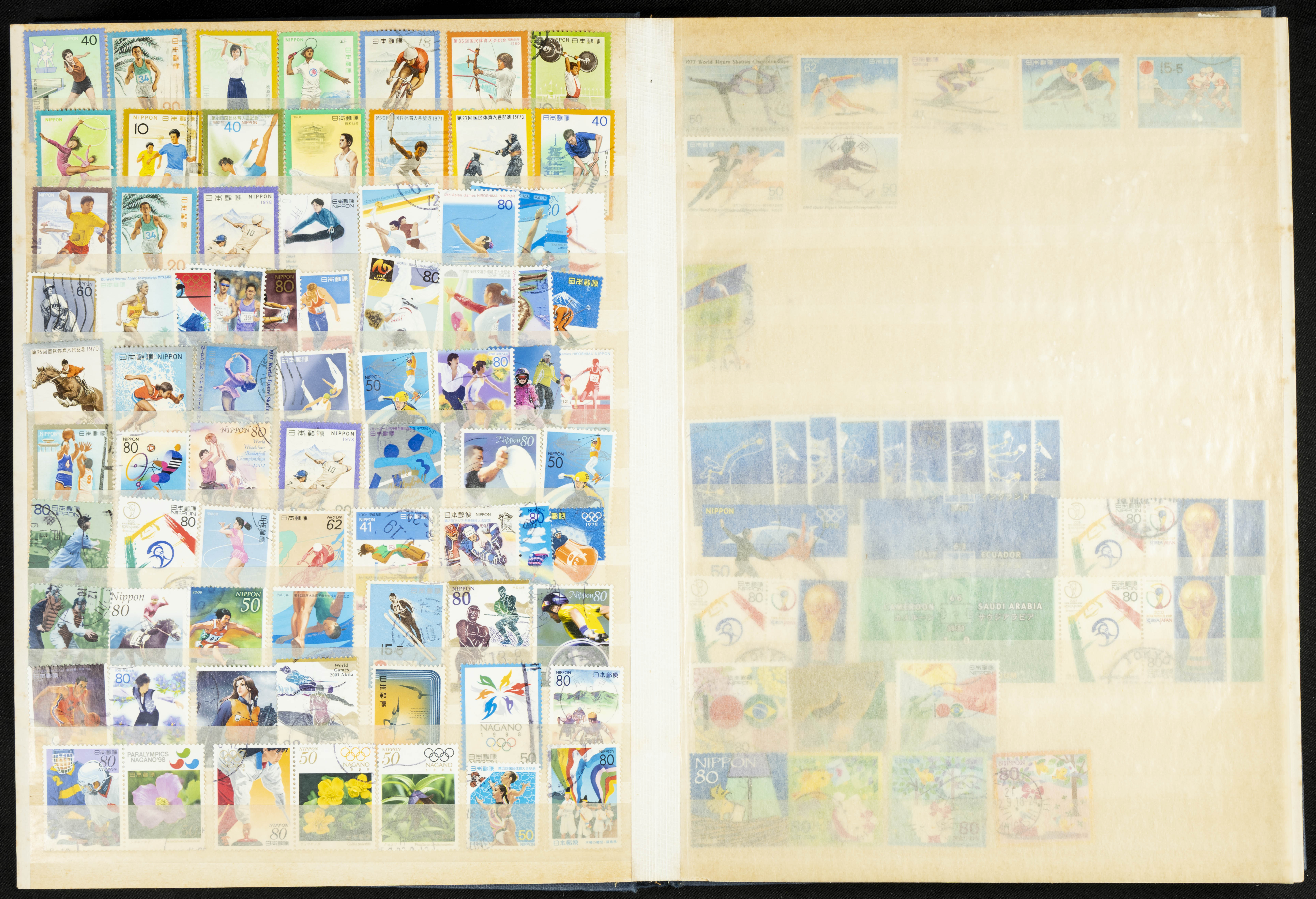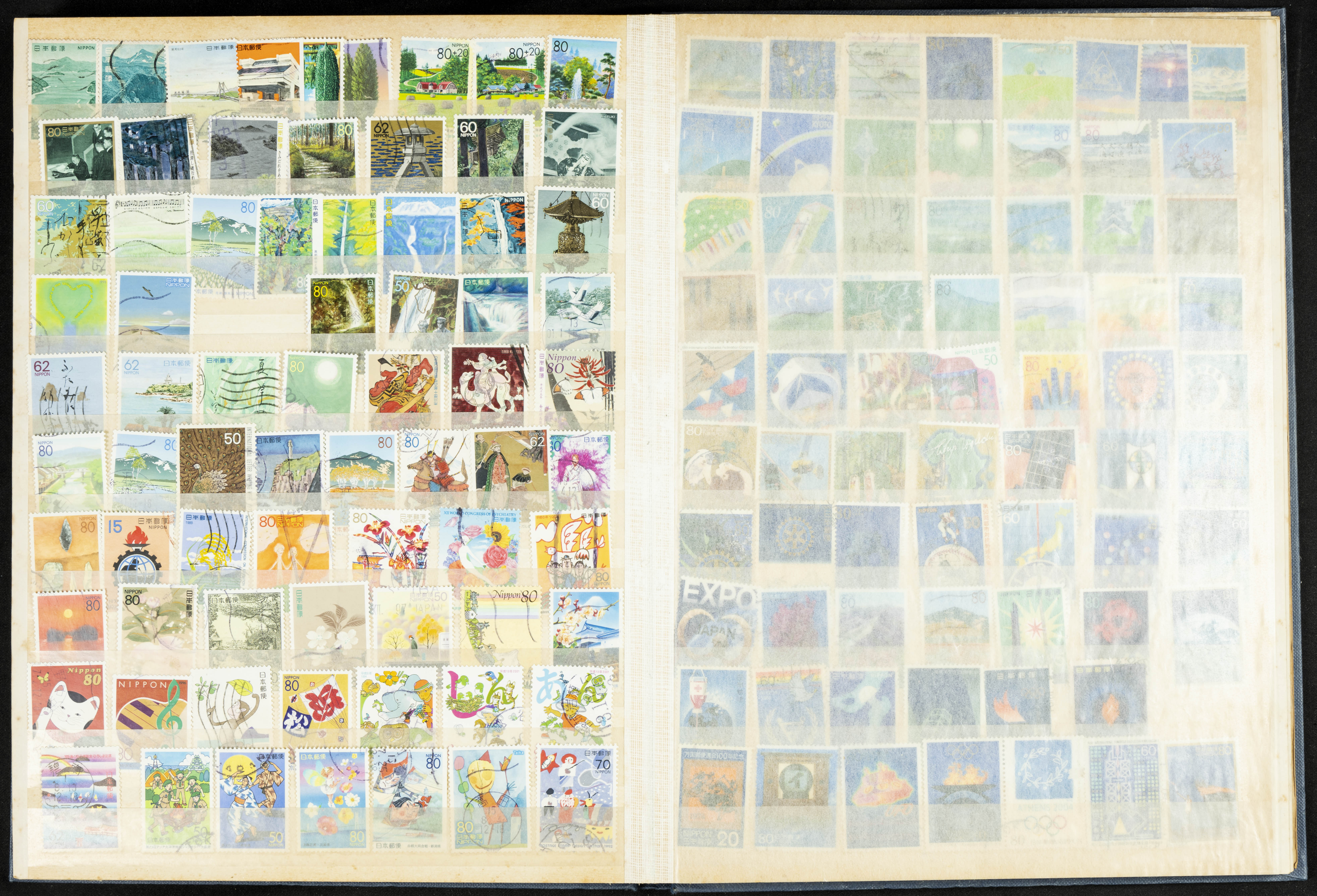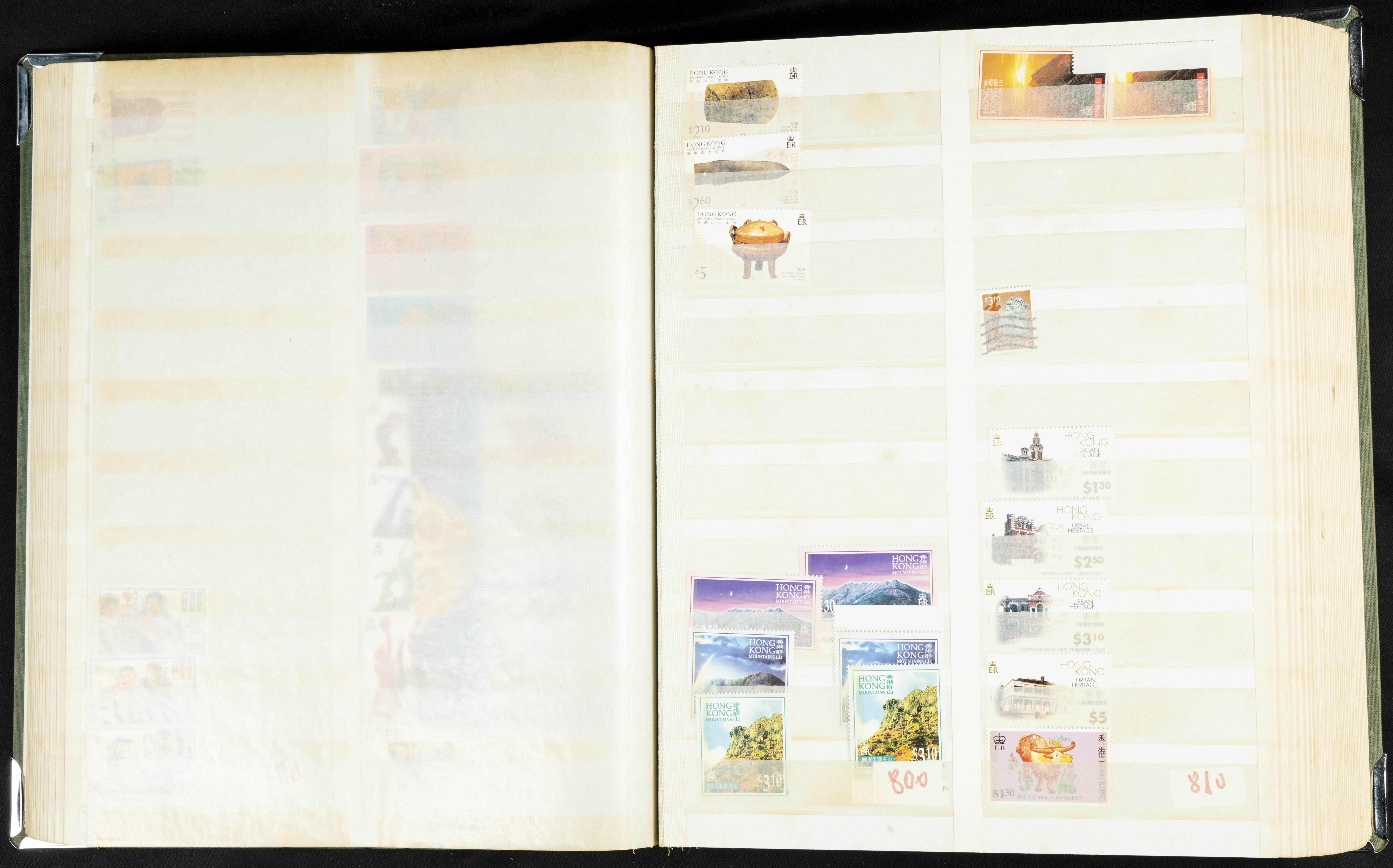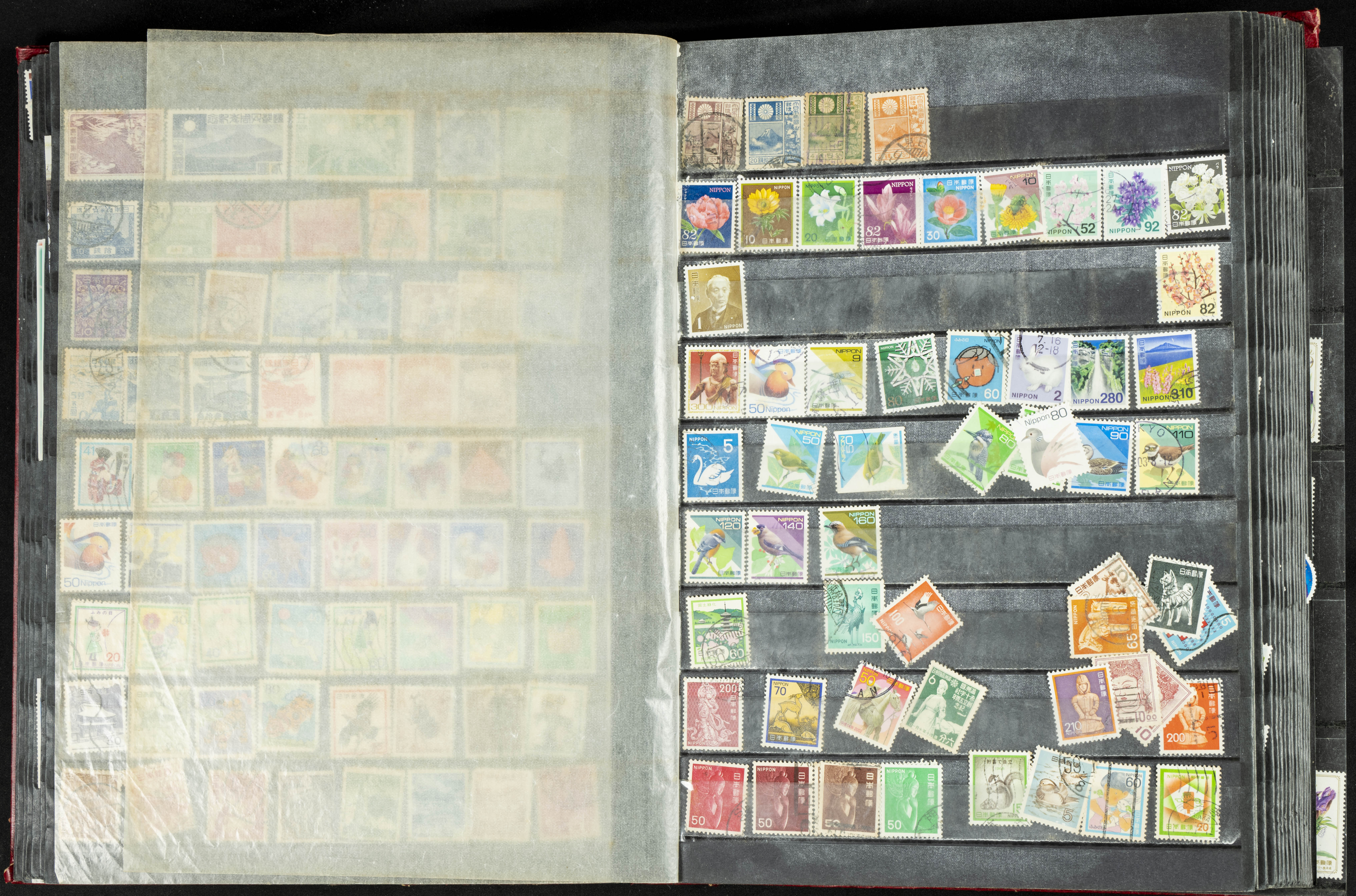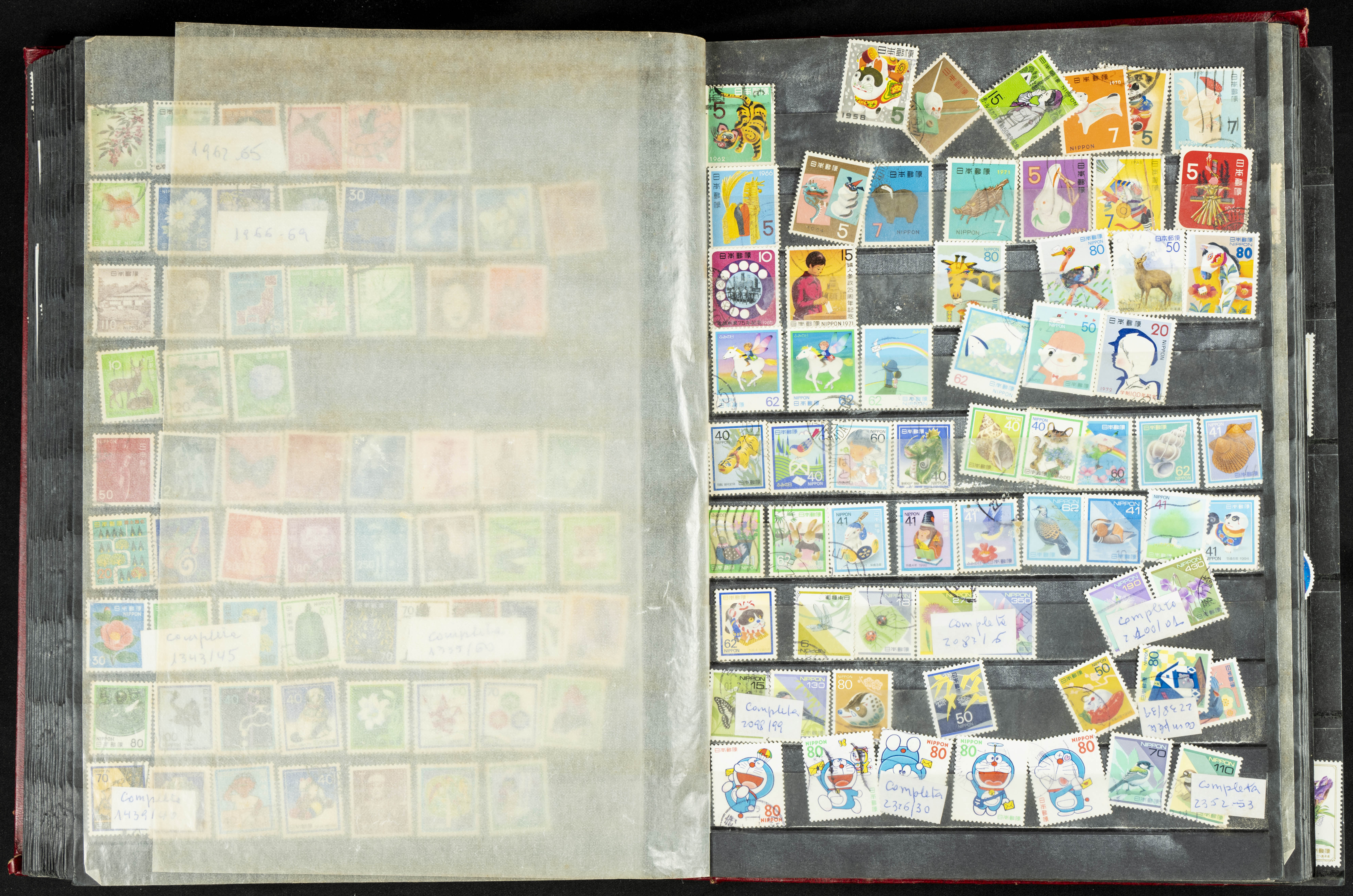 ★★/(1960ca). Interesante conjunto de sellos sueltos, series completas y hojas bloque de diversos países de Asia (China, Japón, India, Hong Kong) la mayoría comprendidos entre 1960 y 2005, en nuevo y usado y por lo general la parte más moderna en nuevo con algunas repeticiones (el noventa por ciento de los sellos están montados en clasificadores y con polvo de talco para reducir la humedad), incluye alguna carpeta o libros conmemorativos de China y un clasificador con sellos de Egipto. ALTISIMO VALOR DE CATALOGO. A EXAMINAR.