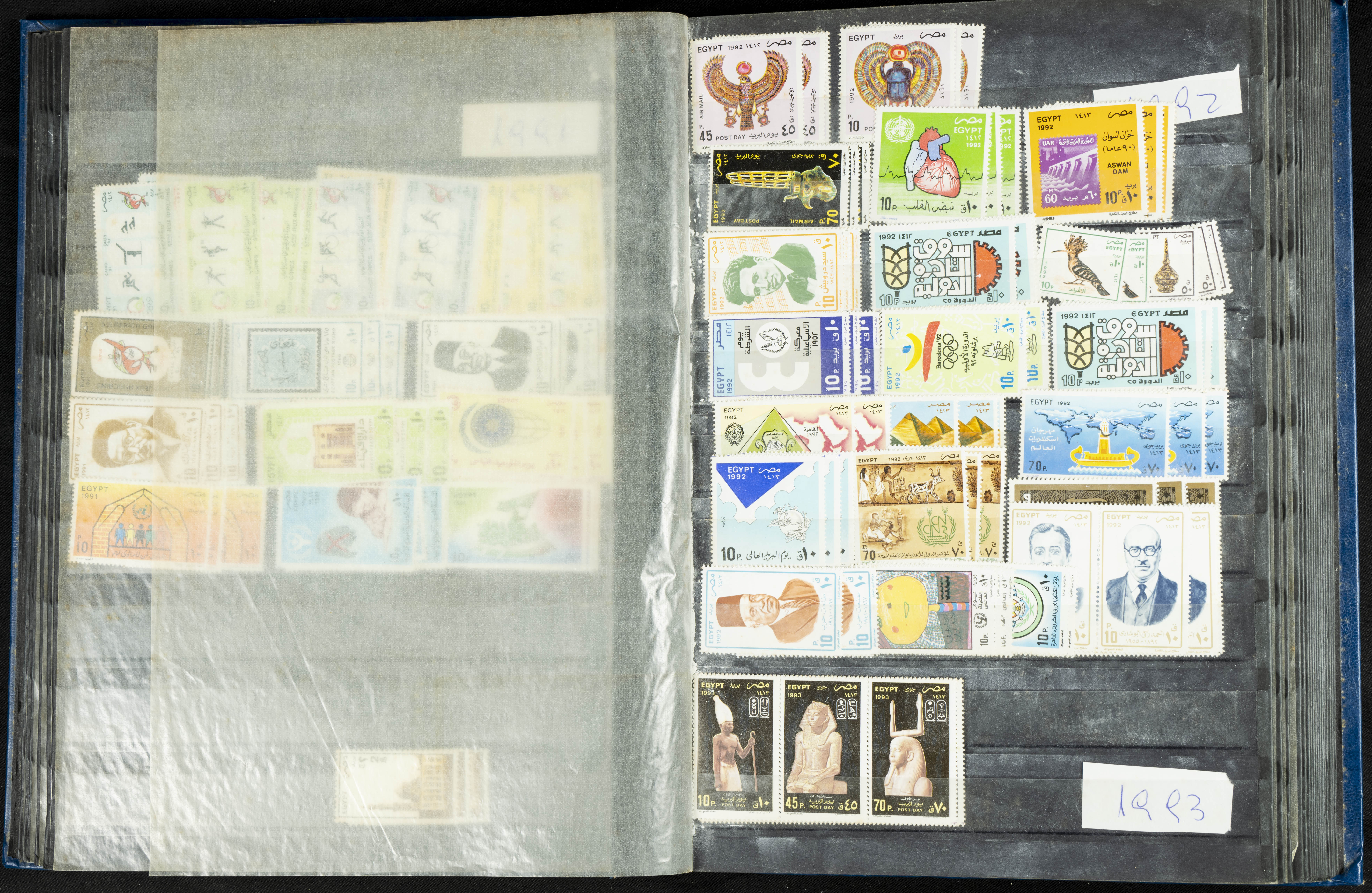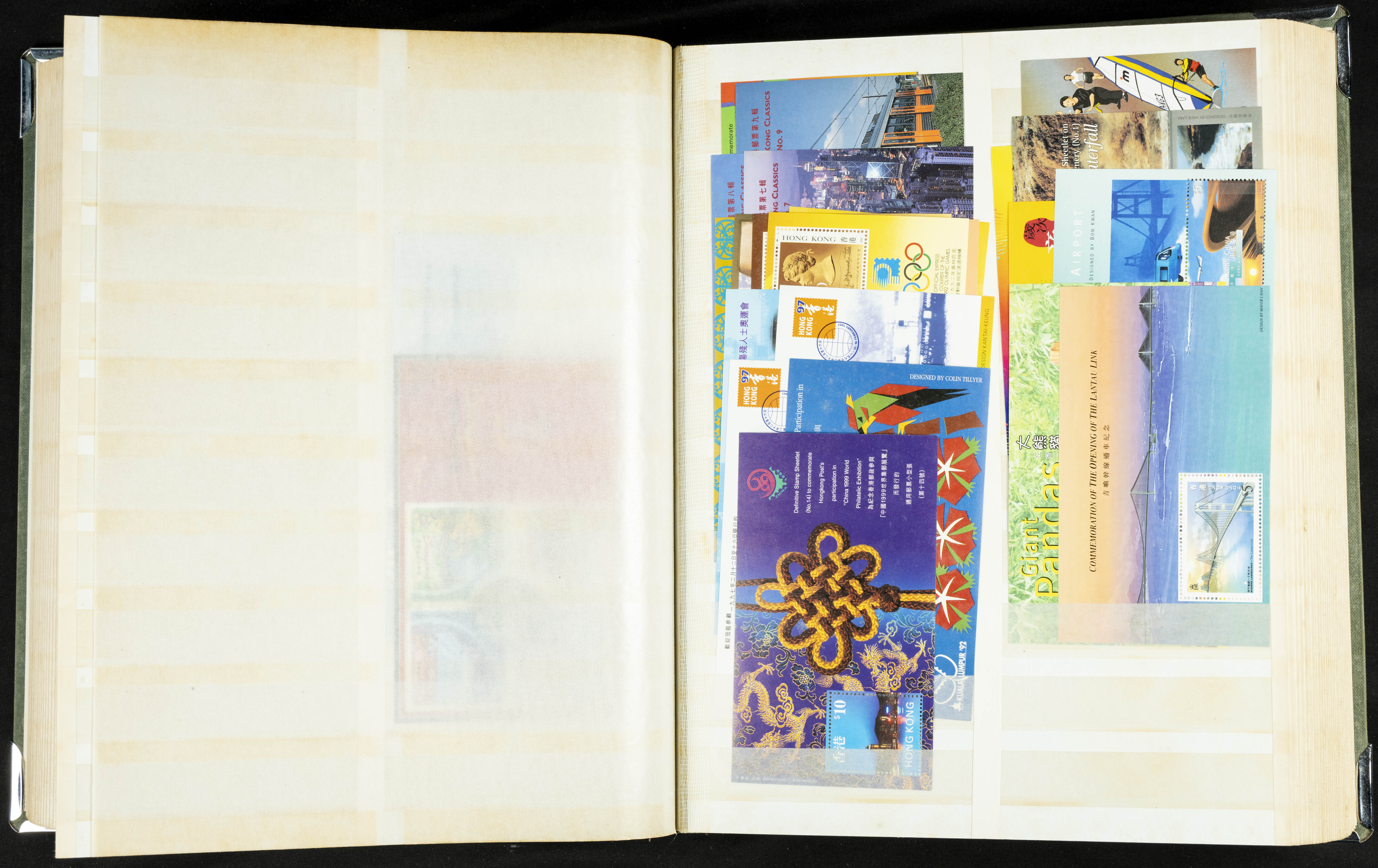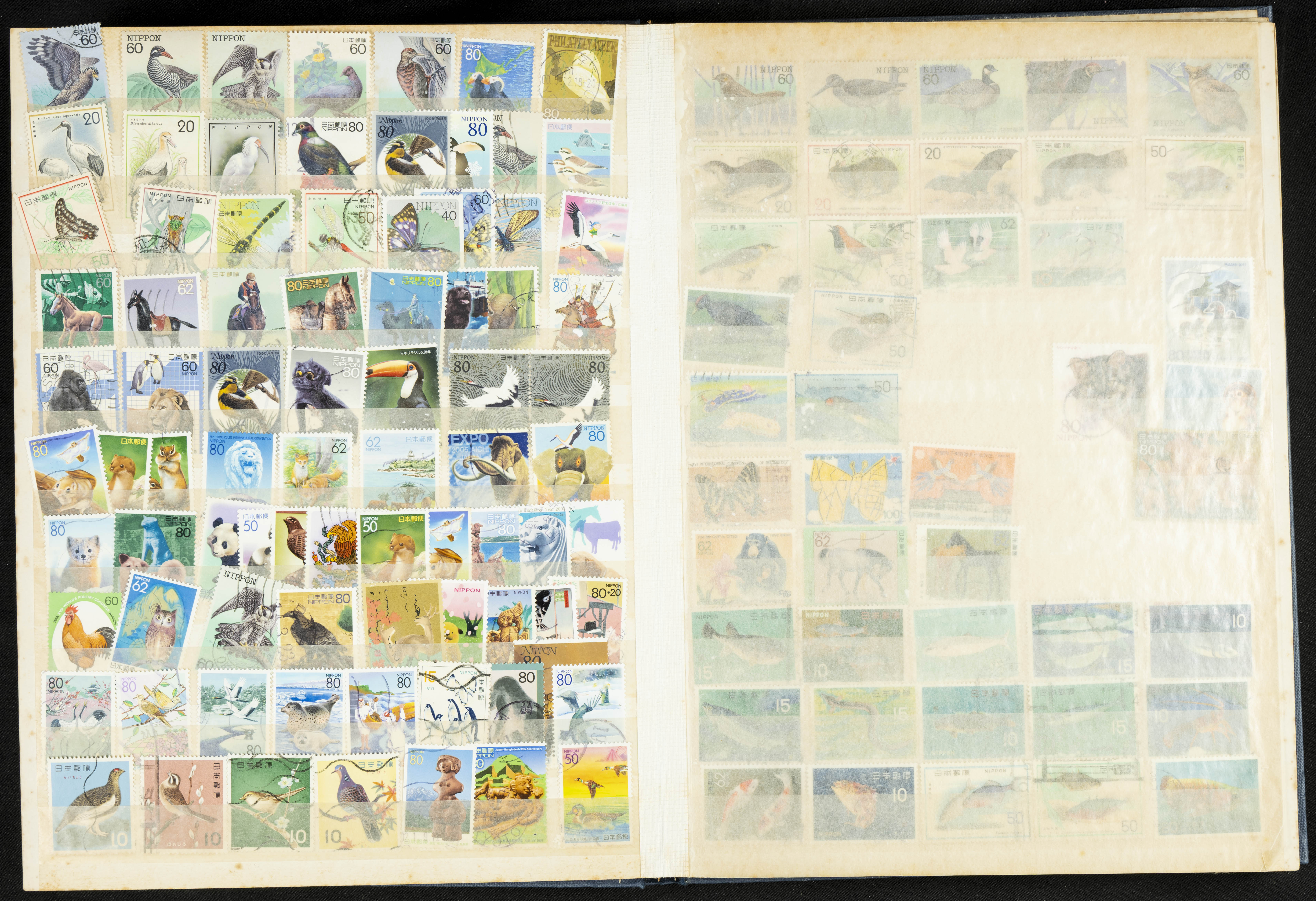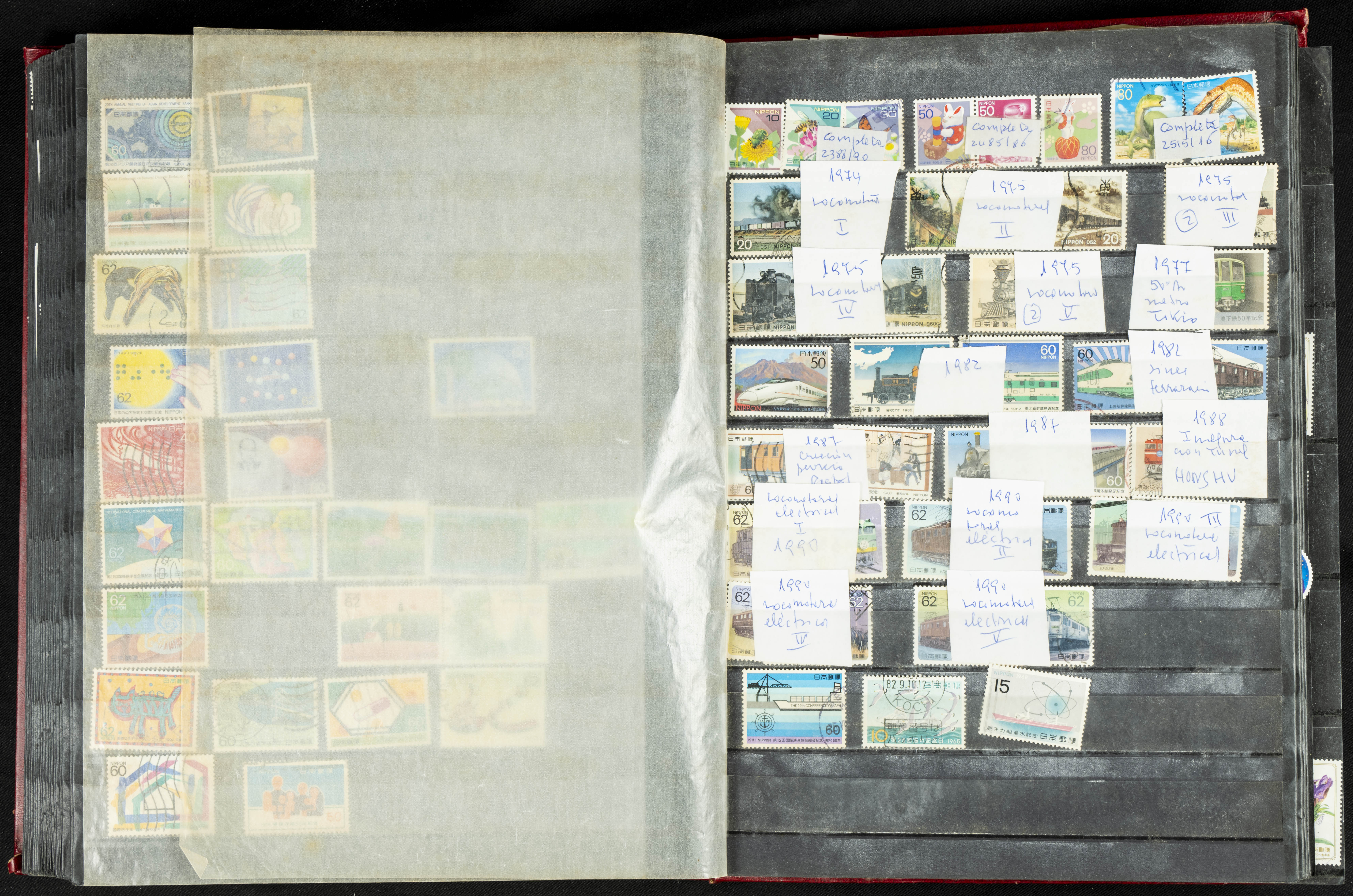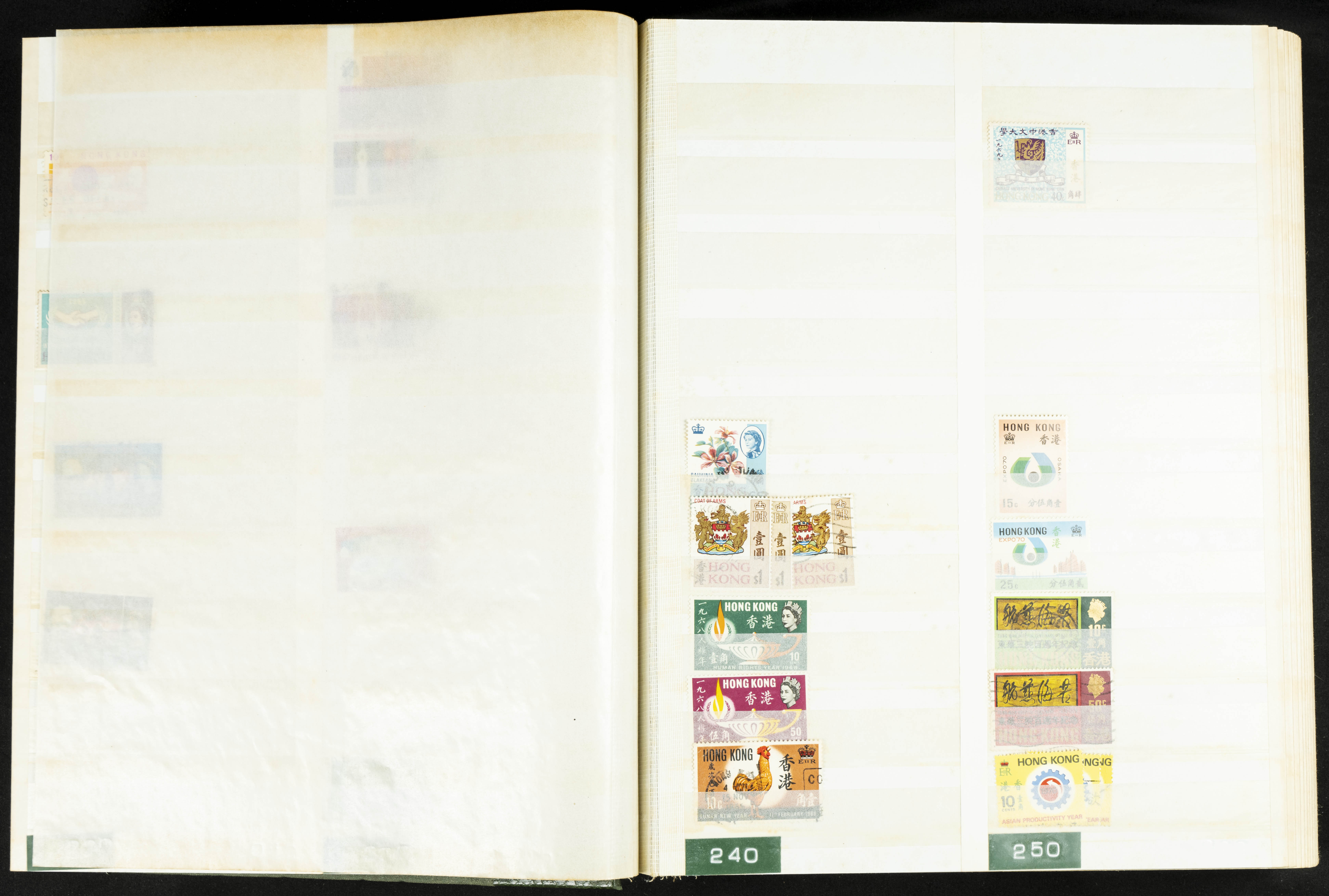 ★★/(1960ca). Interesante conjunto de sellos sueltos, series completas y hojas bloque de diversos países de Asia (China, Japón, India, Hong Kong) la mayoría comprendidos entre 1960 y 2005, en nuevo y usado y por lo general la parte más moderna en nuevo con algunas repeticiones (el noventa por ciento de los sellos están montados en clasificadores y con polvo de talco para reducir la humedad), incluye alguna carpeta o libros conmemorativos de China y un clasificador con sellos de Egipto. ALTISIMO VALOR DE CATALOGO. A EXAMINAR.