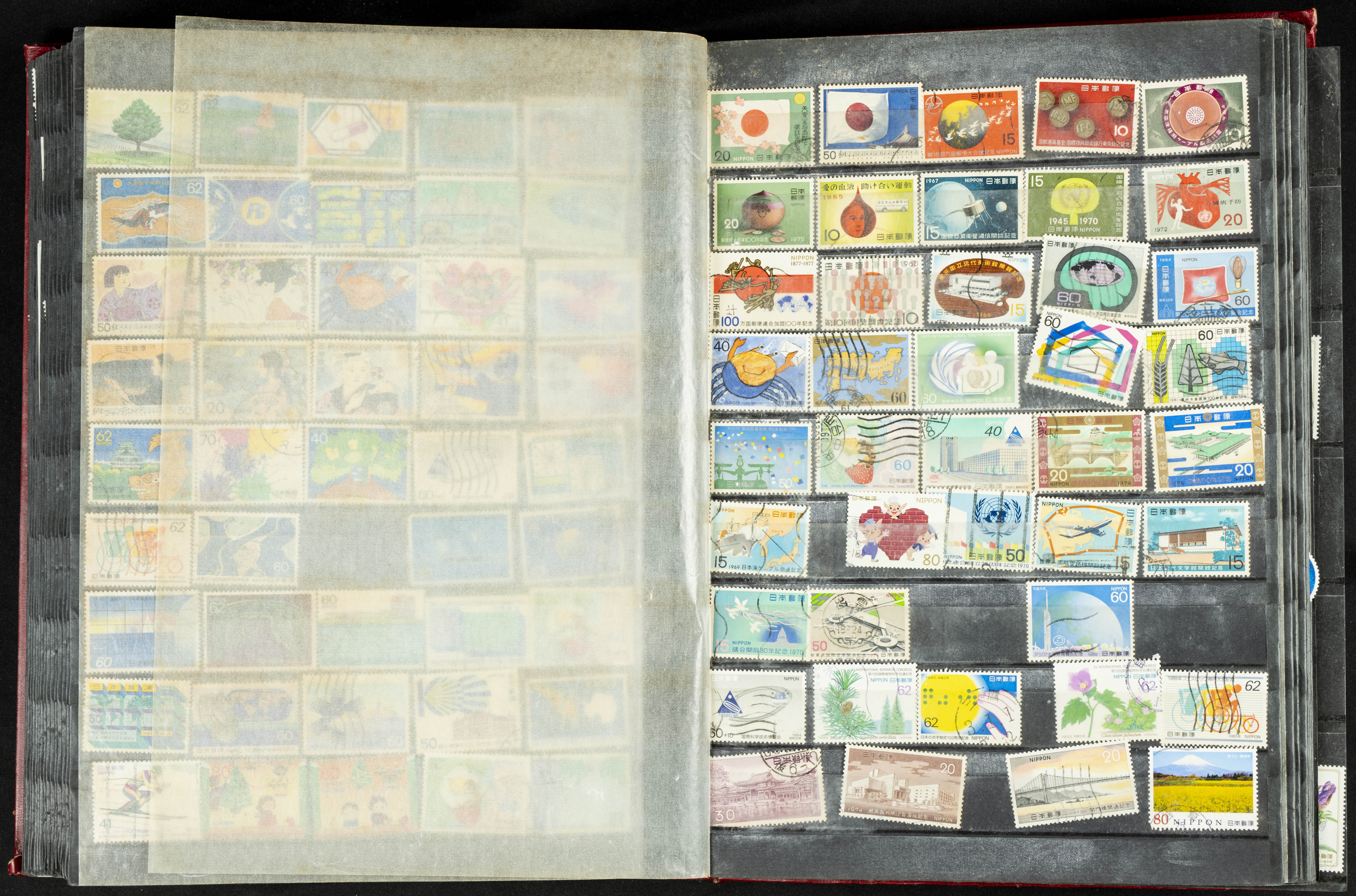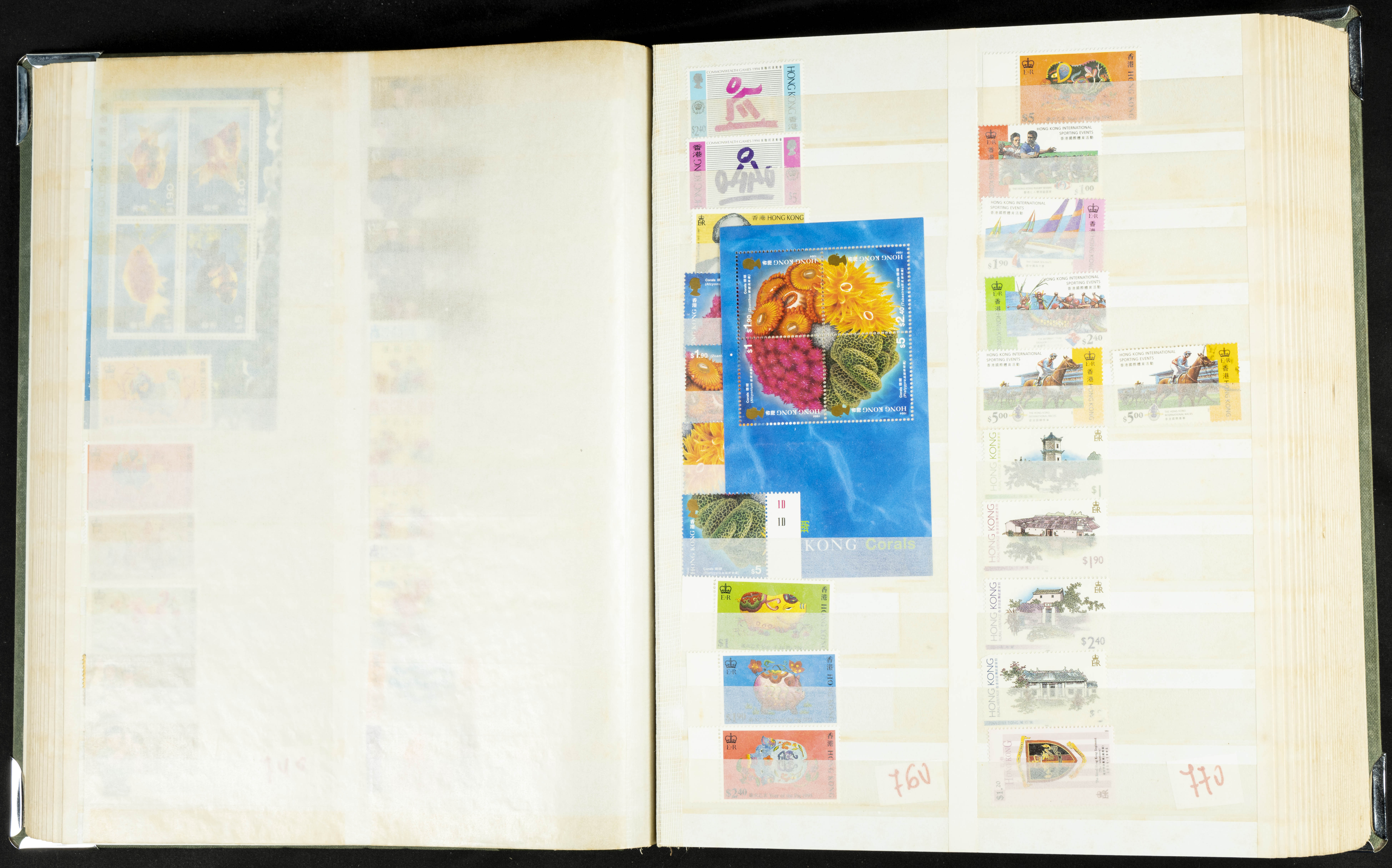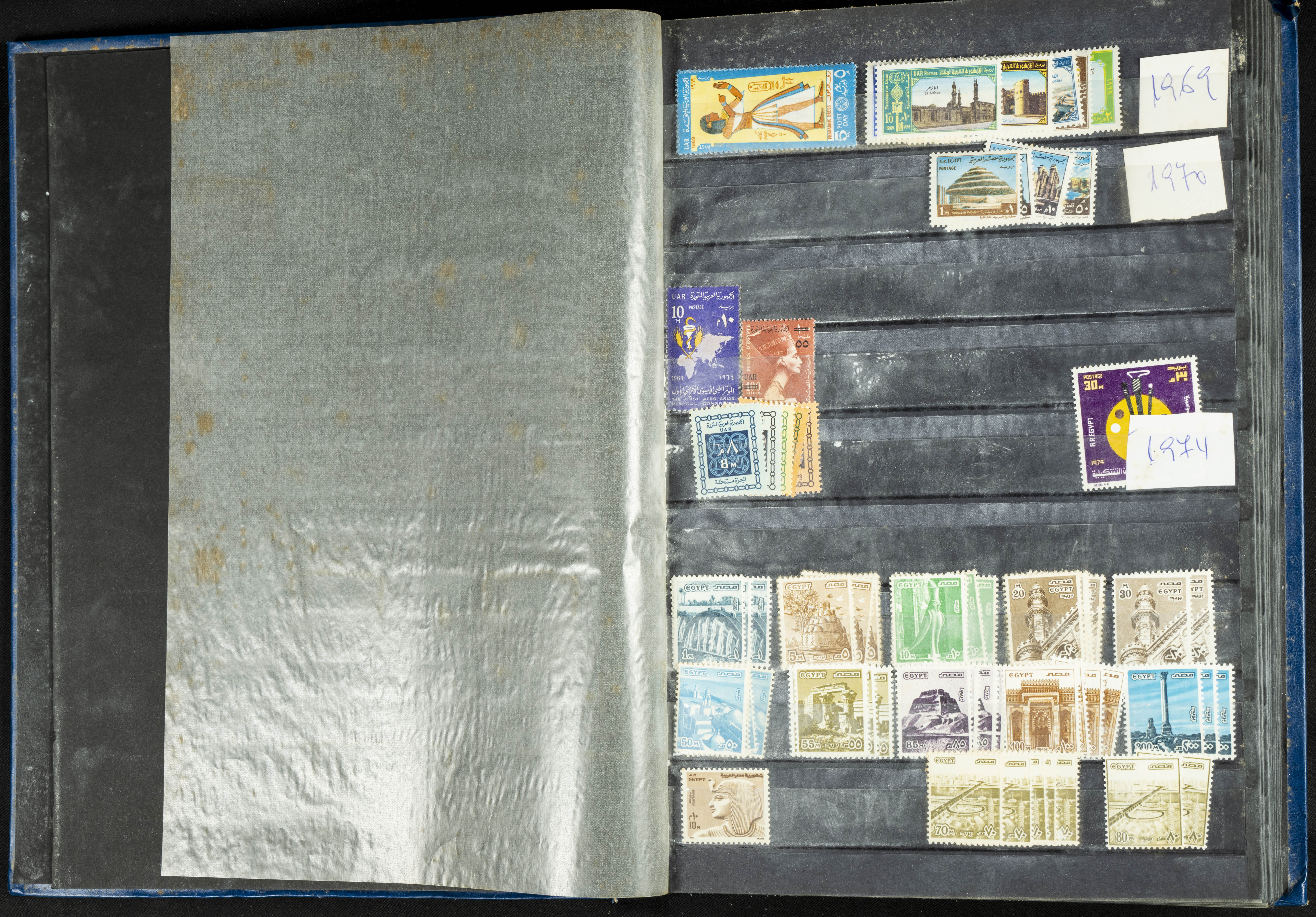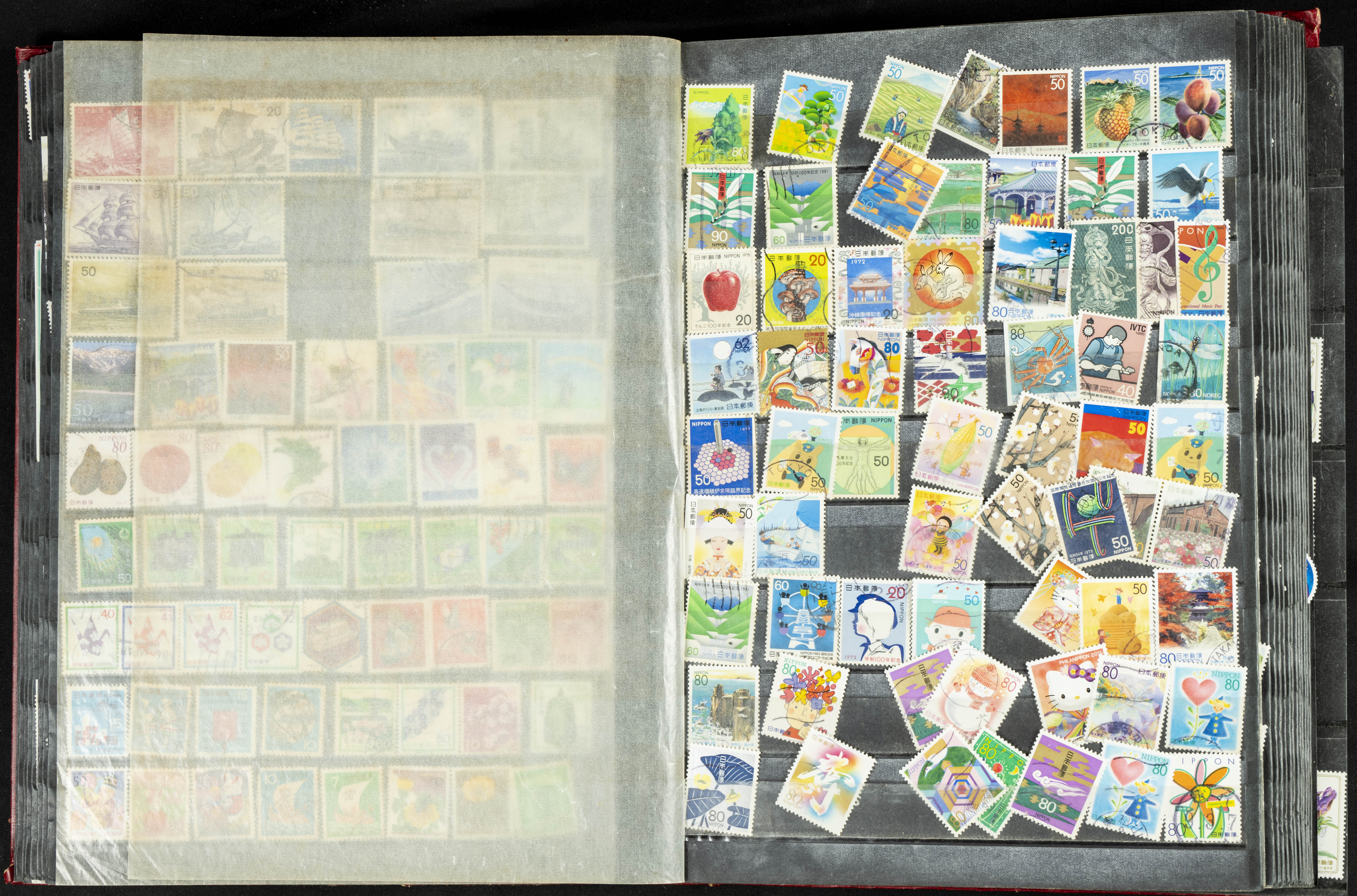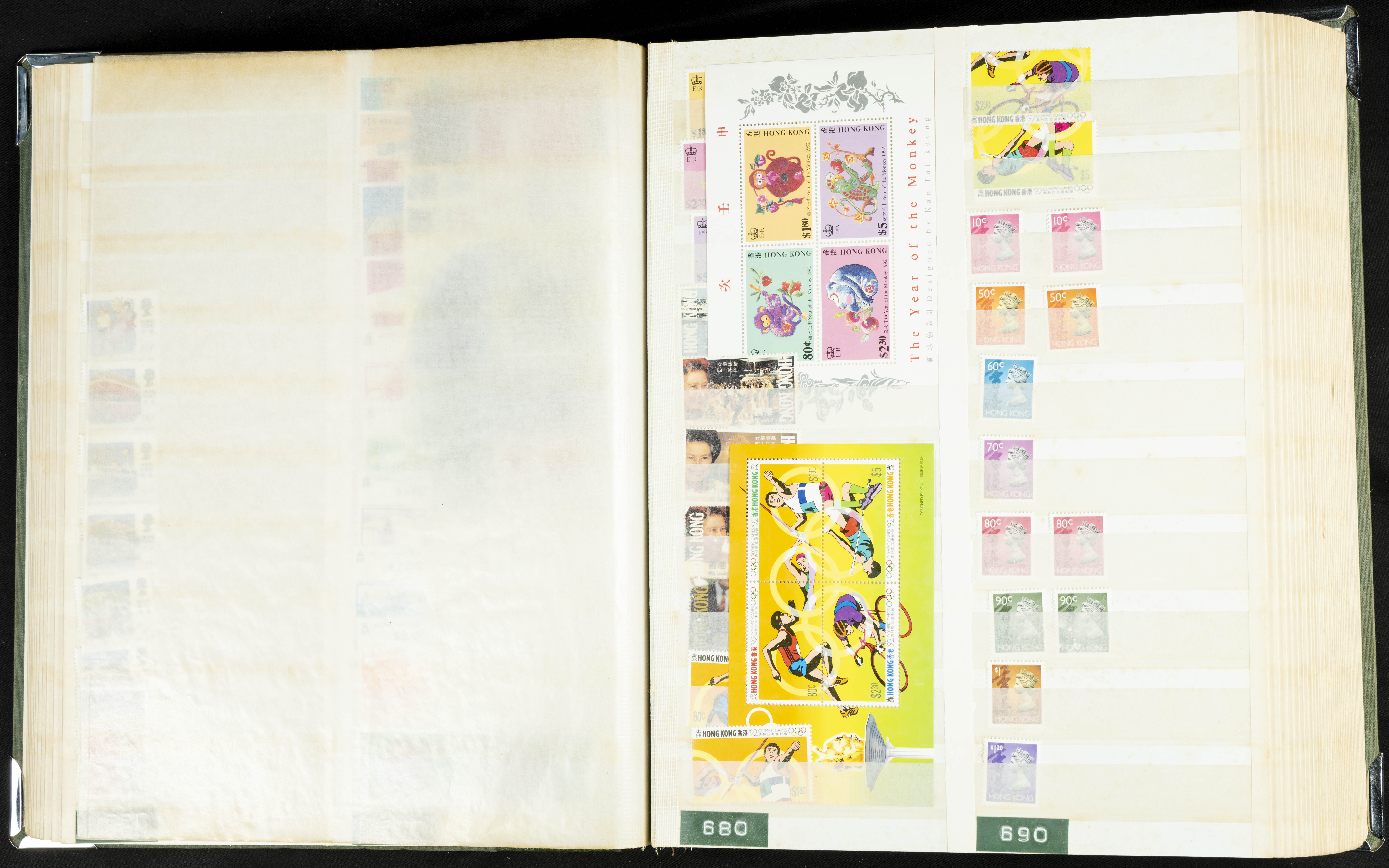 ★★/(1960ca). Interesante conjunto de sellos sueltos, series completas y hojas bloque de diversos países de Asia (China, Japón, India, Hong Kong) la mayoría comprendidos entre 1960 y 2005, en nuevo y usado y por lo general la parte más moderna en nuevo con algunas repeticiones (el noventa por ciento de los sellos están montados en clasificadores y con polvo de talco para reducir la humedad), incluye alguna carpeta o libros conmemorativos de China y un clasificador con sellos de Egipto. ALTISIMO VALOR DE CATALOGO. A EXAMINAR.