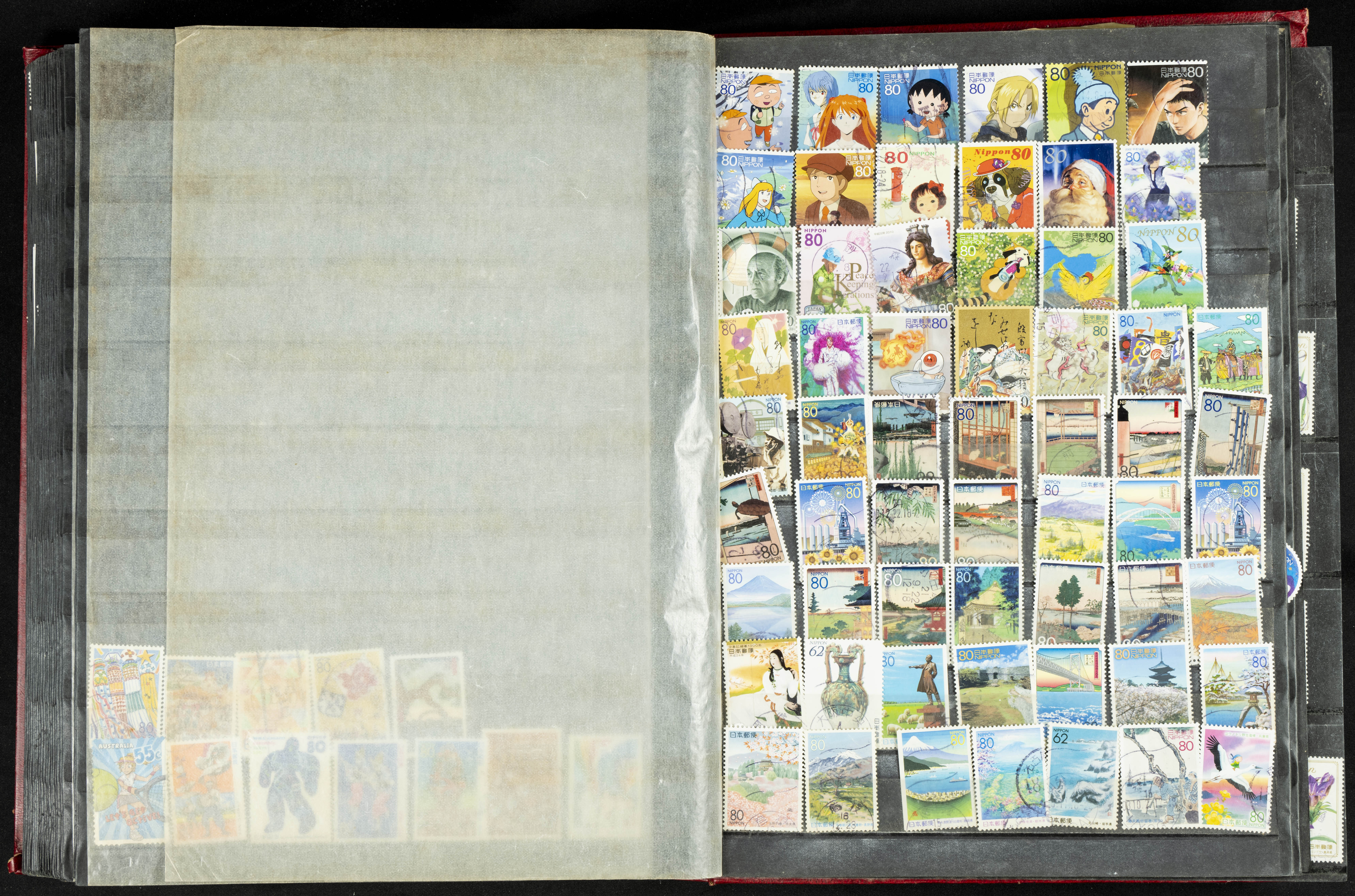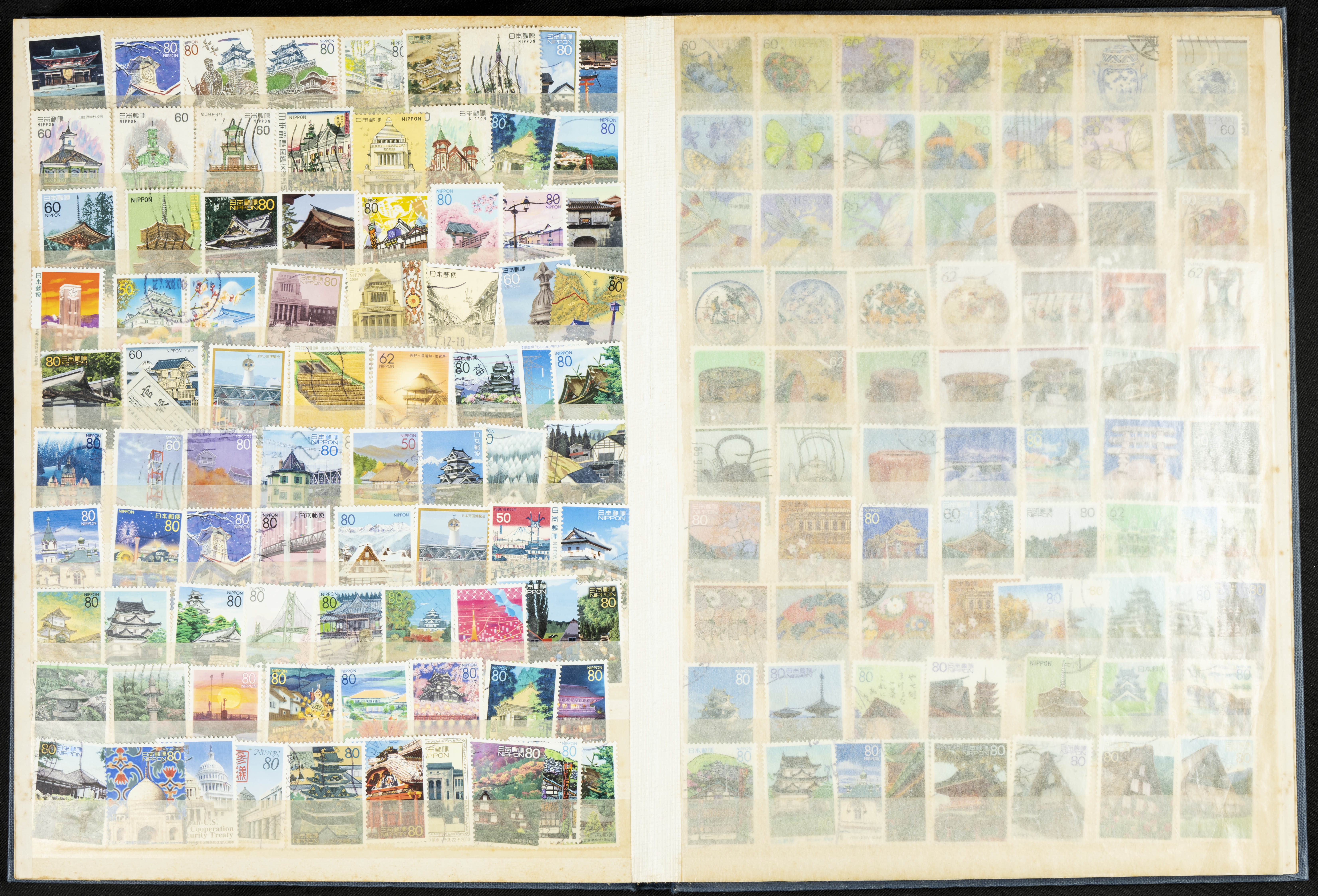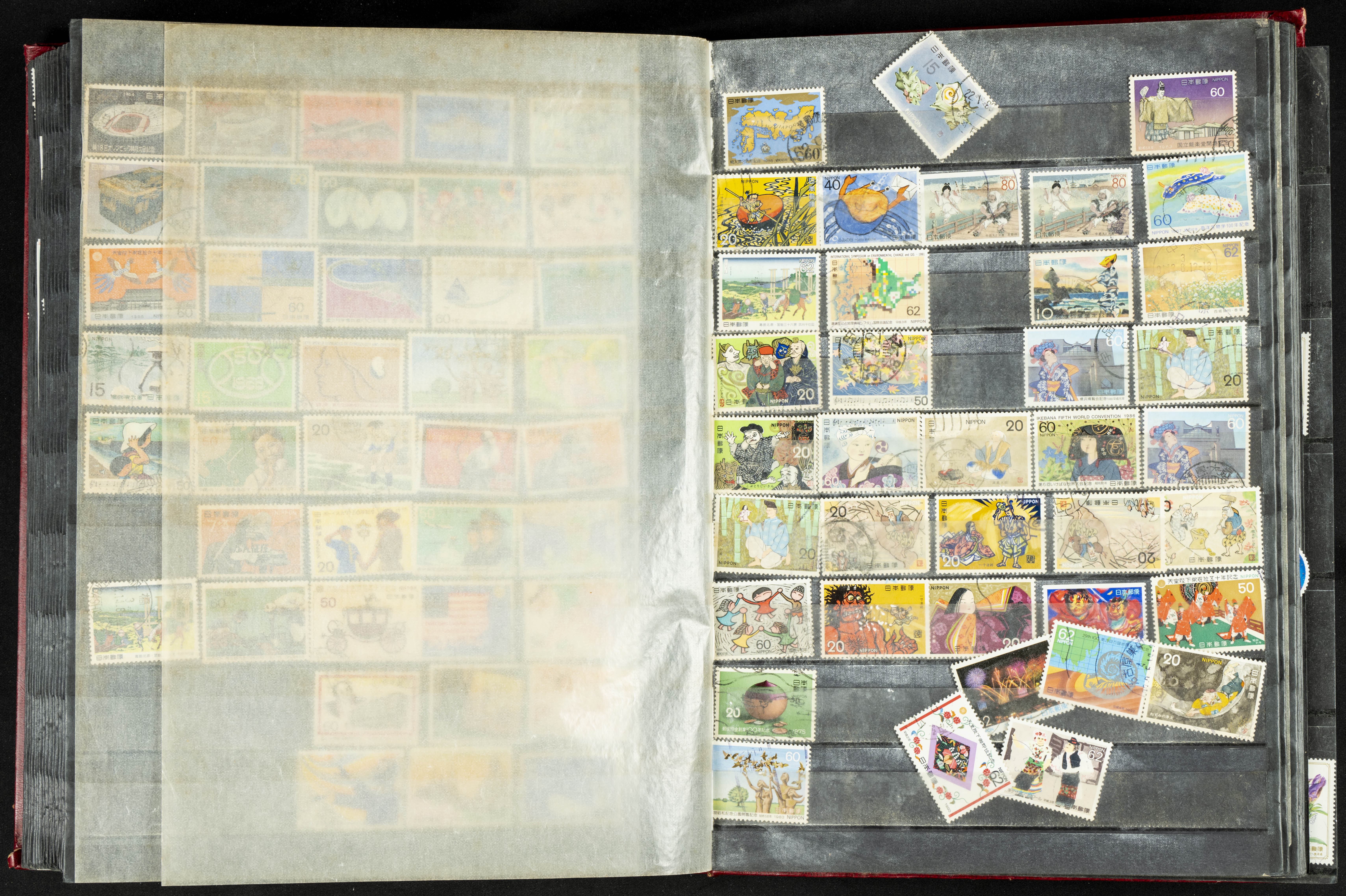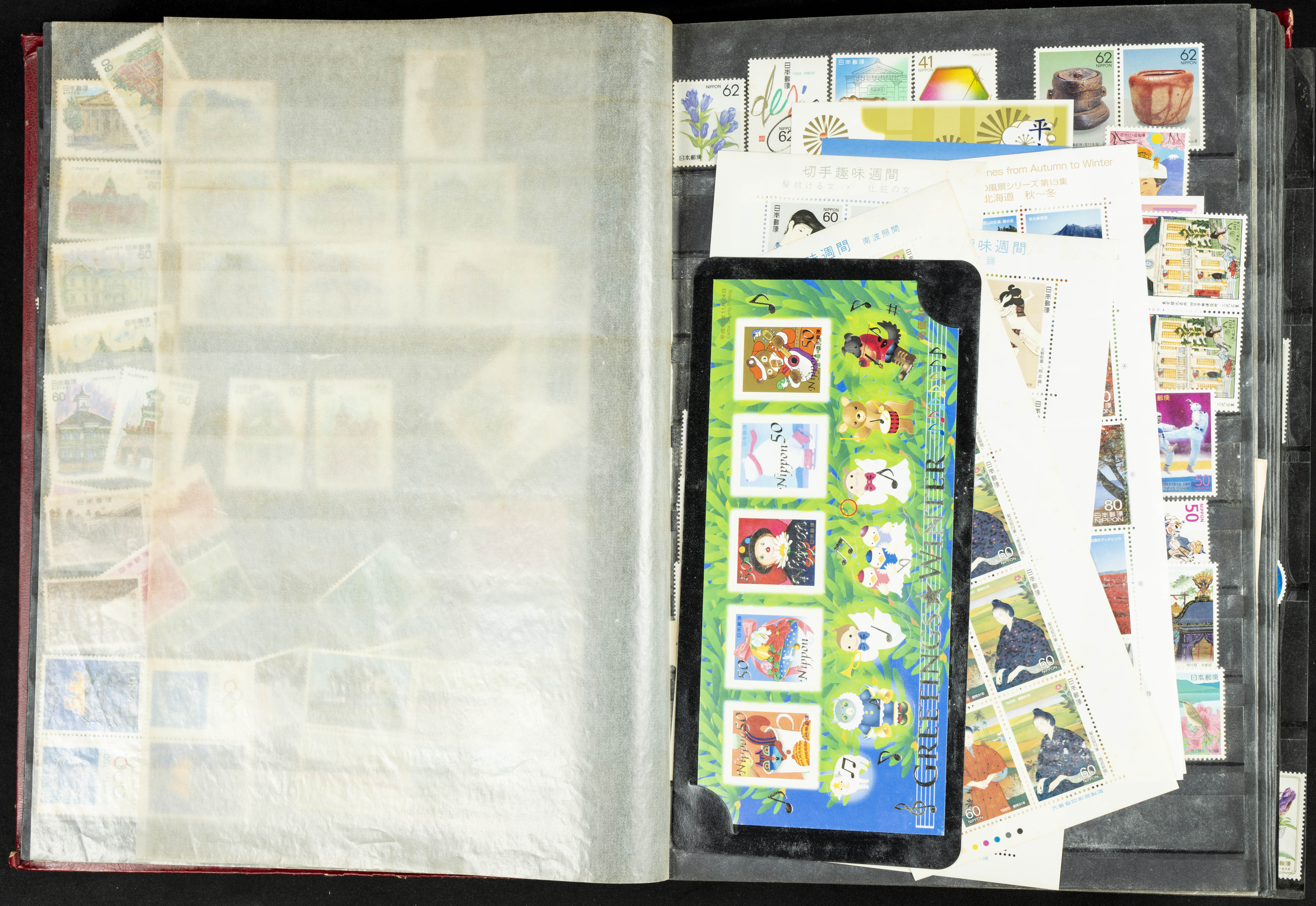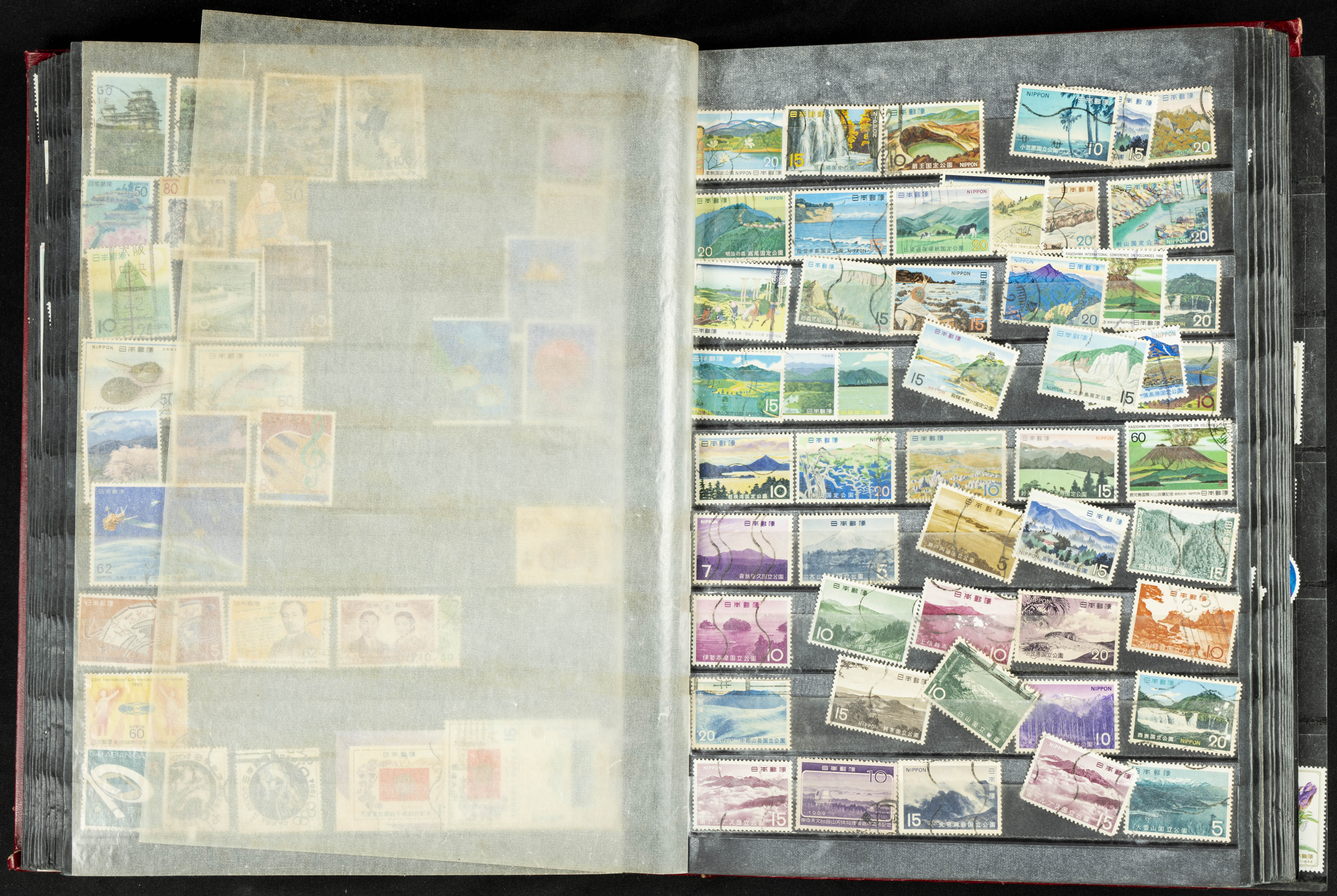 ★★/(1960ca). Interesante conjunto de sellos sueltos, series completas y hojas bloque de diversos países de Asia (China, Japón, India, Hong Kong) la mayoría comprendidos entre 1960 y 2005, en nuevo y usado y por lo general la parte más moderna en nuevo con algunas repeticiones (el noventa por ciento de los sellos están montados en clasificadores y con polvo de talco para reducir la humedad), incluye alguna carpeta o libros conmemorativos de China y un clasificador con sellos de Egipto. ALTISIMO VALOR DE CATALOGO. A EXAMINAR.