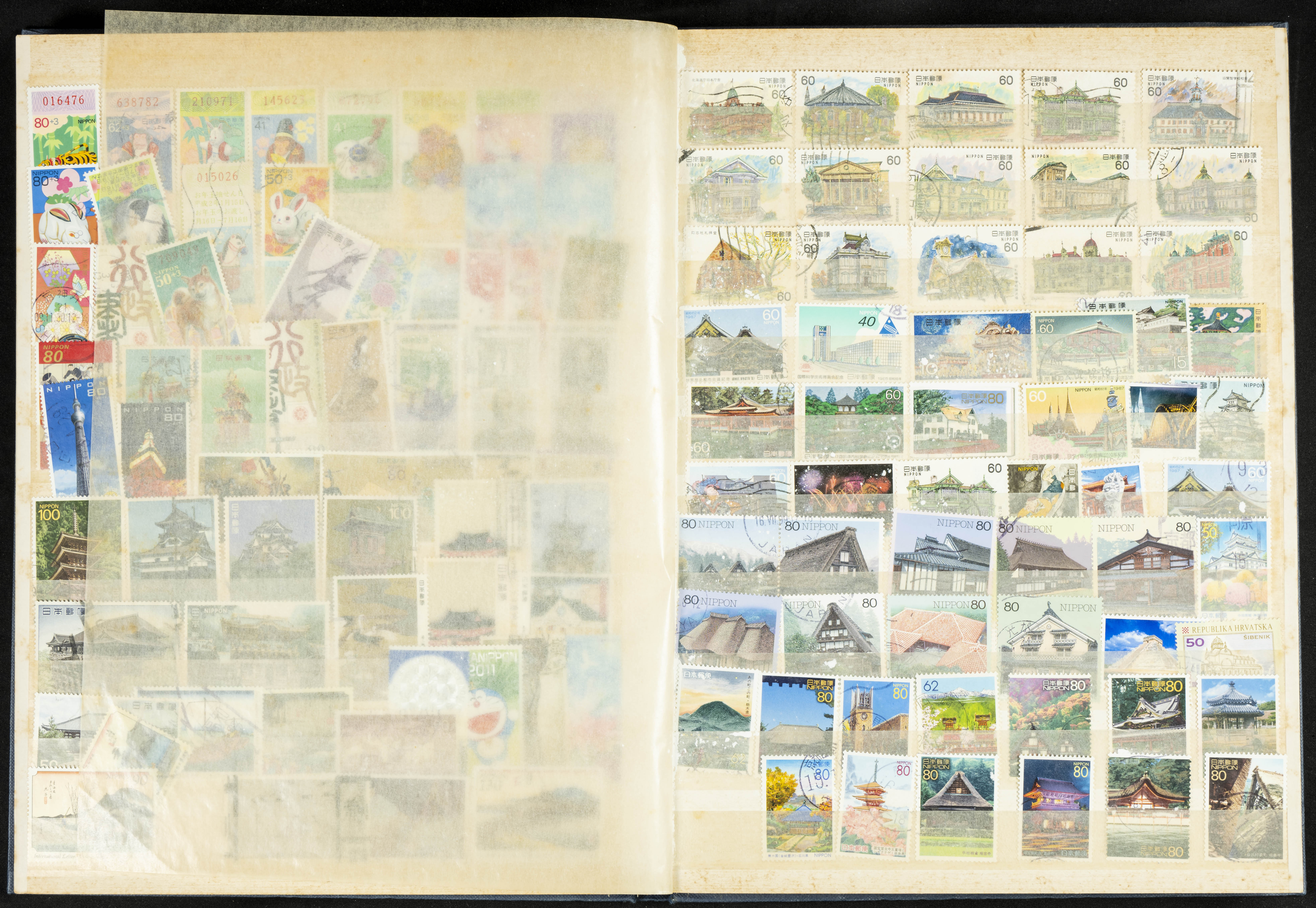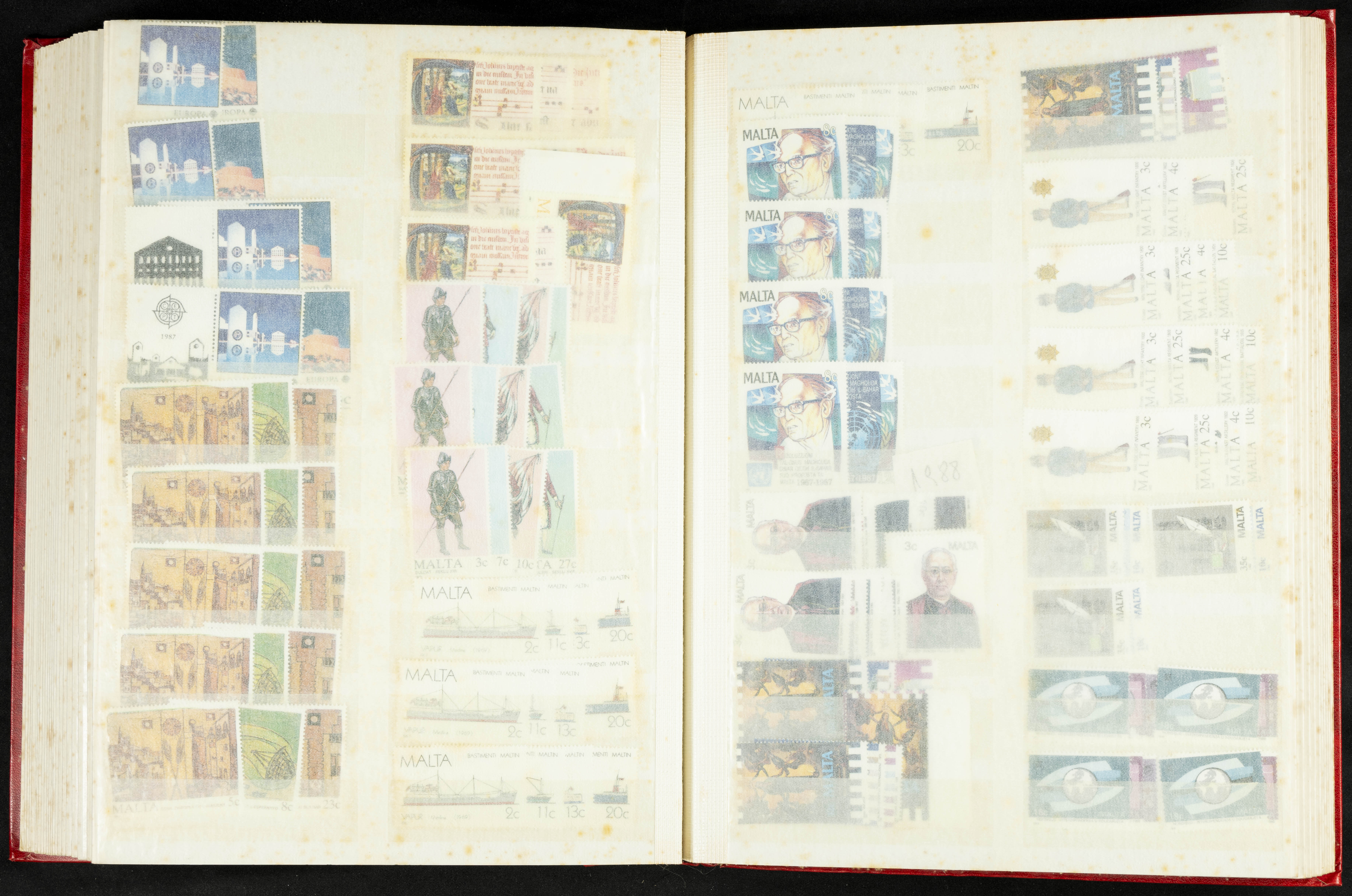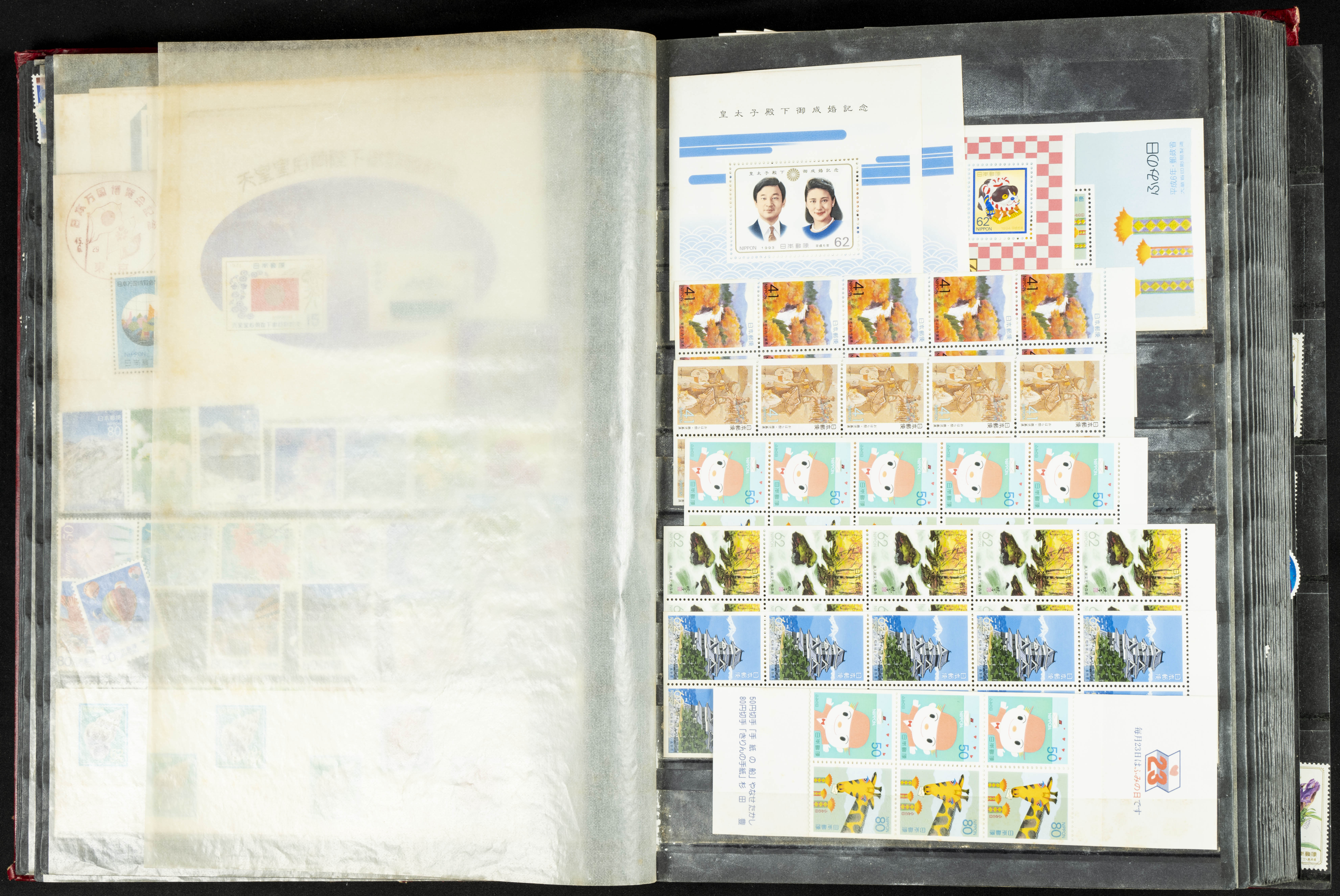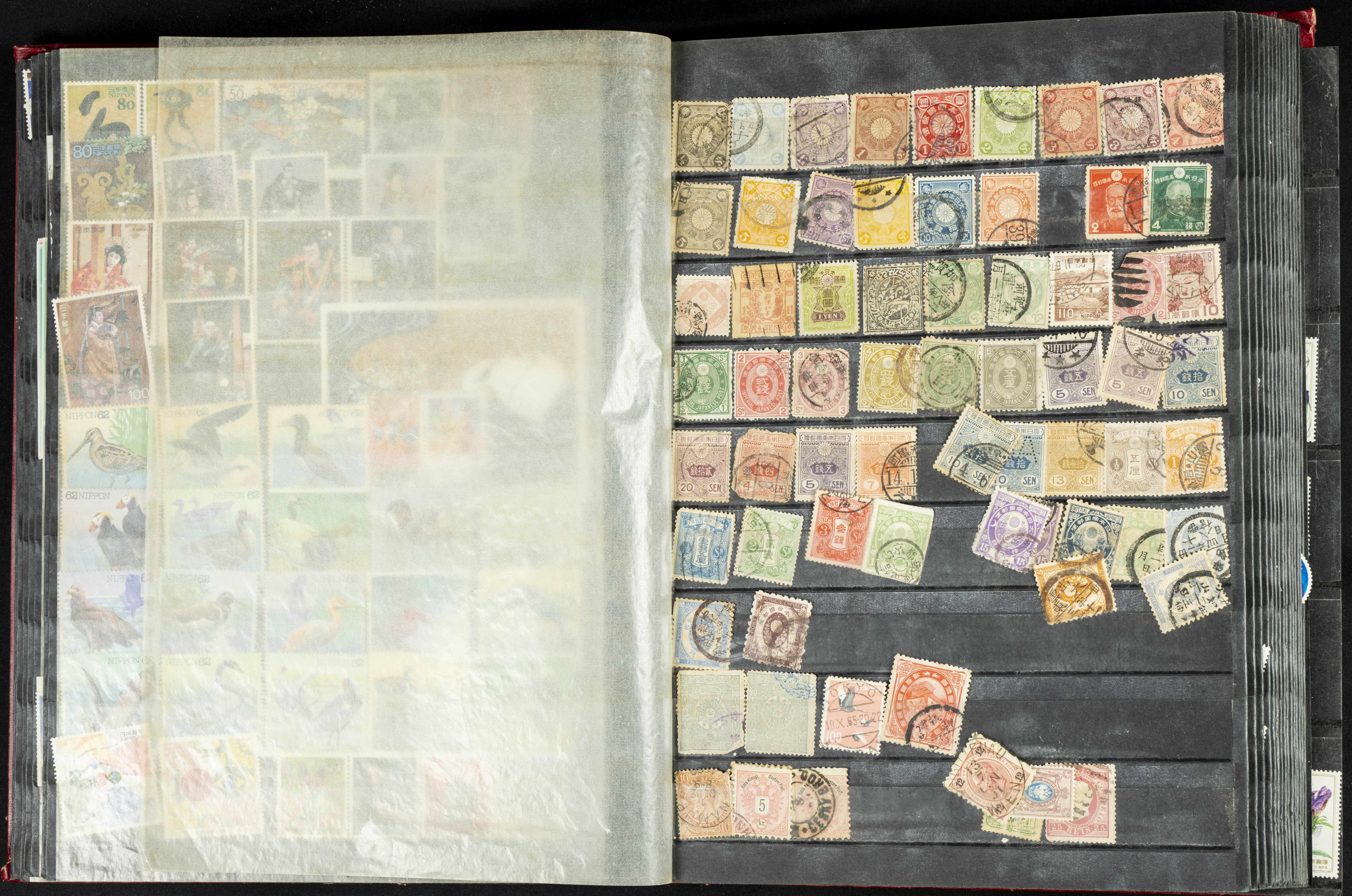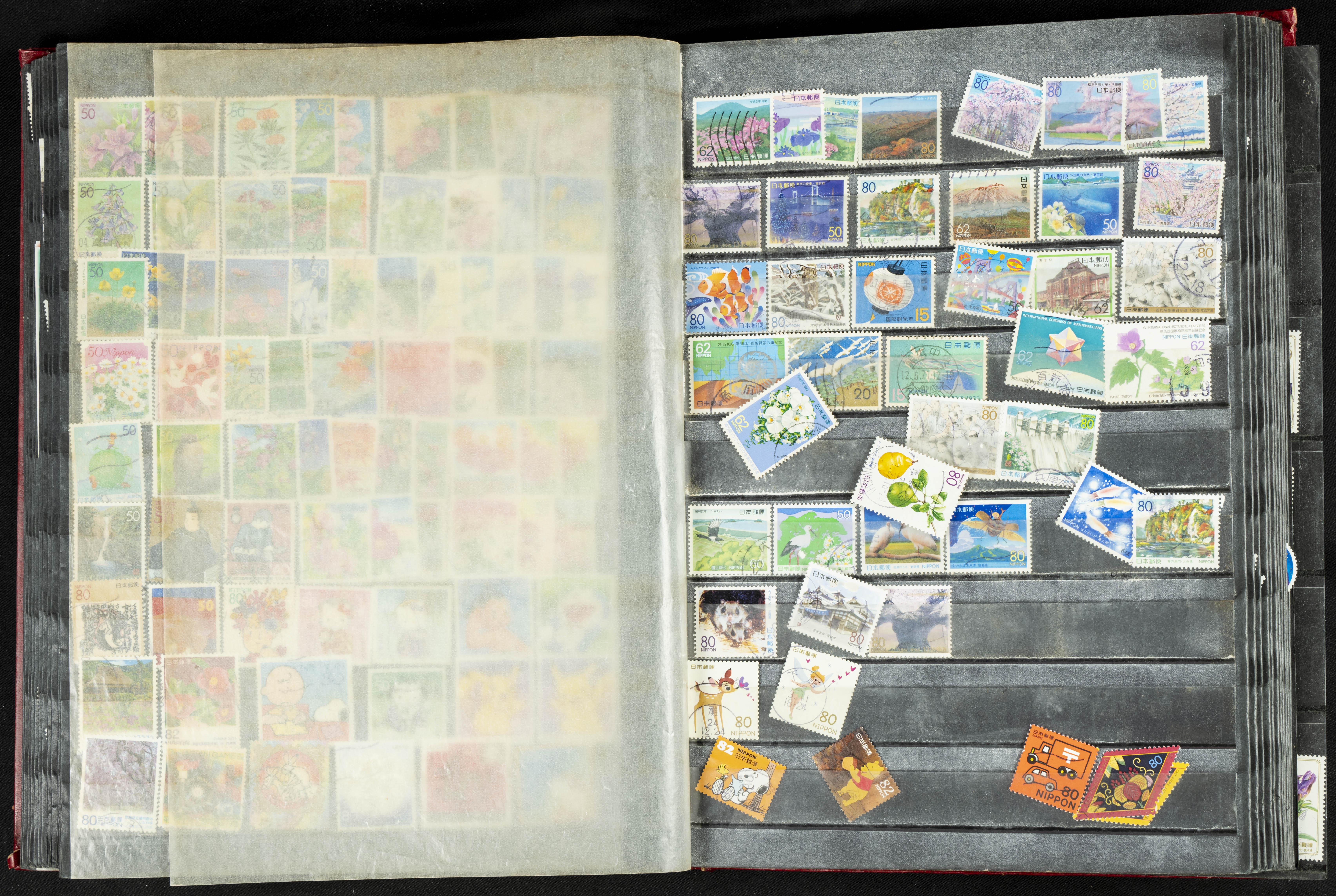 ★★/(1960ca). Interesante conjunto de sellos sueltos, series completas y hojas bloque de diversos países de Asia (China, Japón, India, Hong Kong) la mayoría comprendidos entre 1960 y 2005, en nuevo y usado y por lo general la parte más moderna en nuevo con algunas repeticiones (el noventa por ciento de los sellos están montados en clasificadores y con polvo de talco para reducir la humedad), incluye alguna carpeta o libros conmemorativos de China y un clasificador con sellos de Egipto. ALTISIMO VALOR DE CATALOGO. A EXAMINAR.