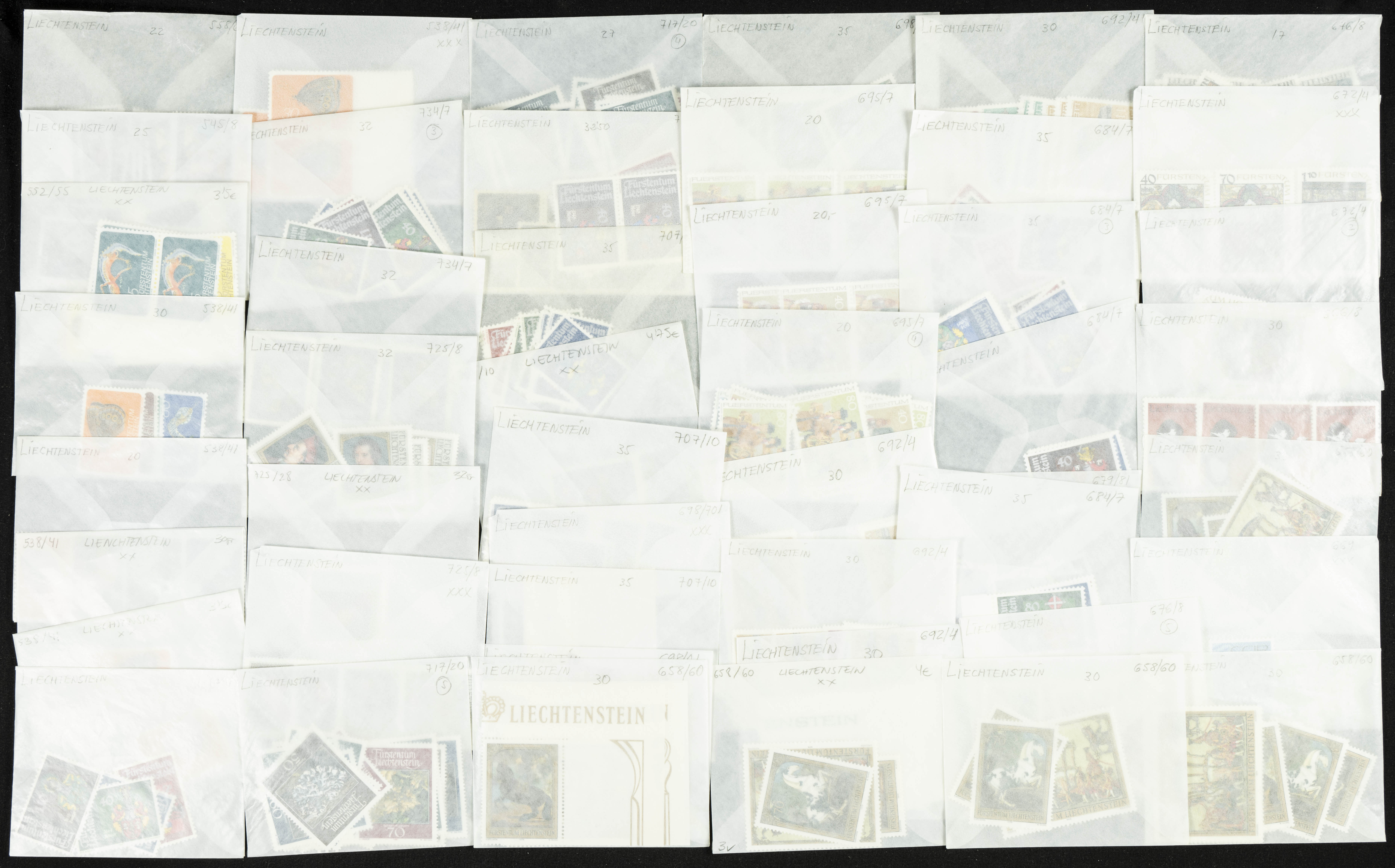 ★★/★(1960ca). Interesante conjunto de cientos de series completas de diversos países con muchas temáticas y organizado en sobres de cristal con indicación del número Yvert, la mayoría comprendidos entre 1960 y 1990, nuevas (alguna usada), en muchos casos hay repeticiones. ALTISIMO VALOR DE CATALOGO. A EXAMINAR.