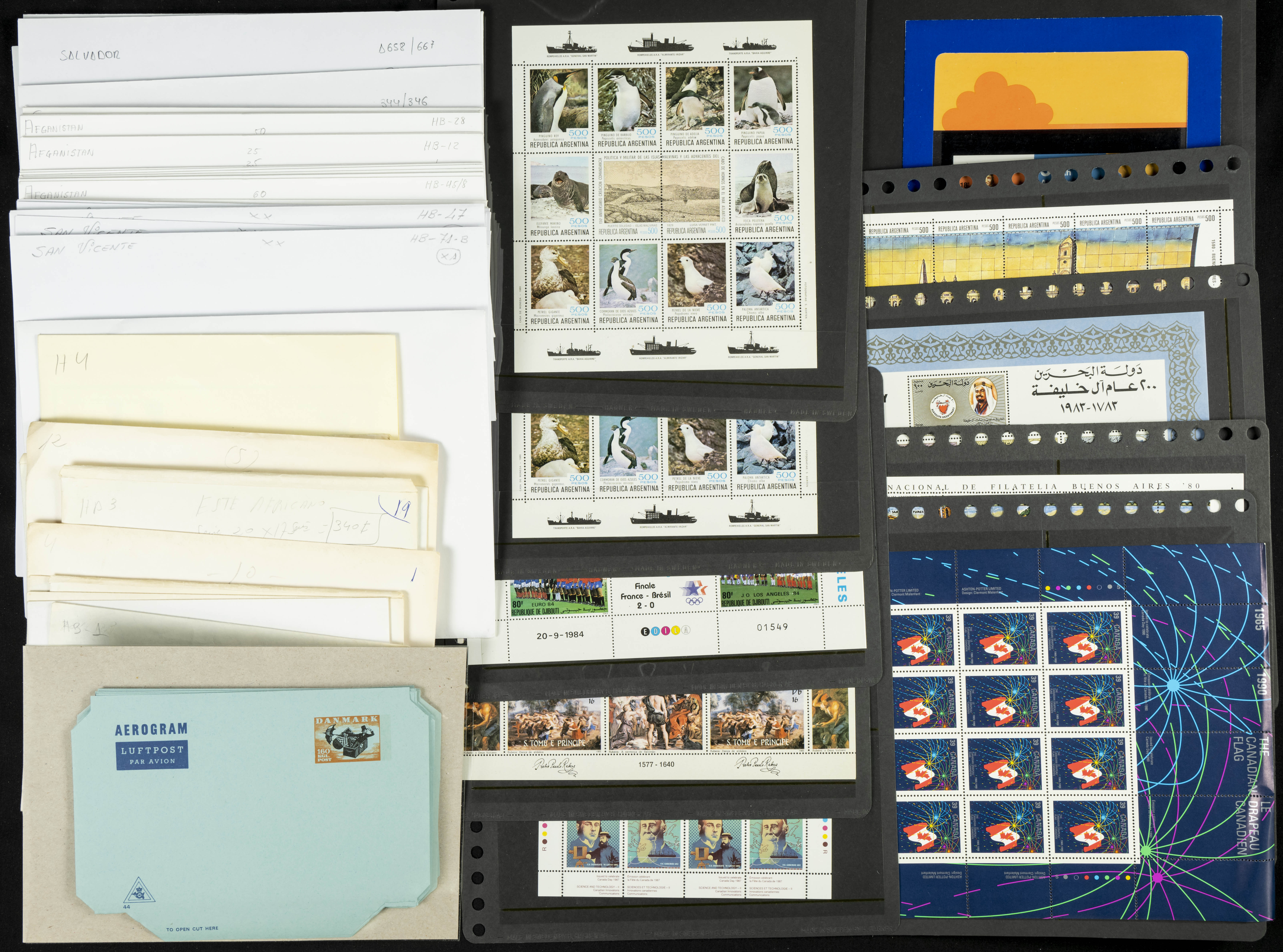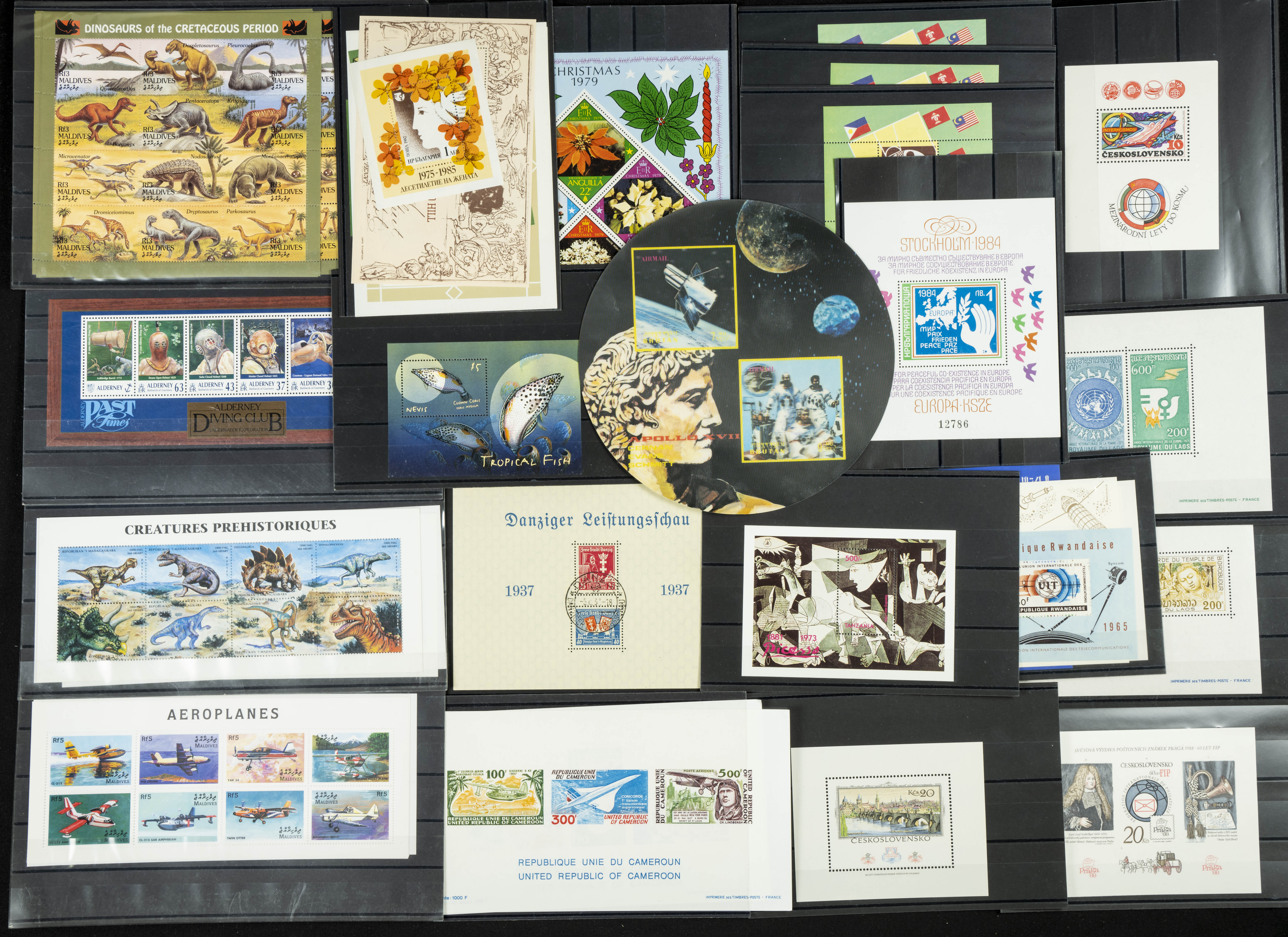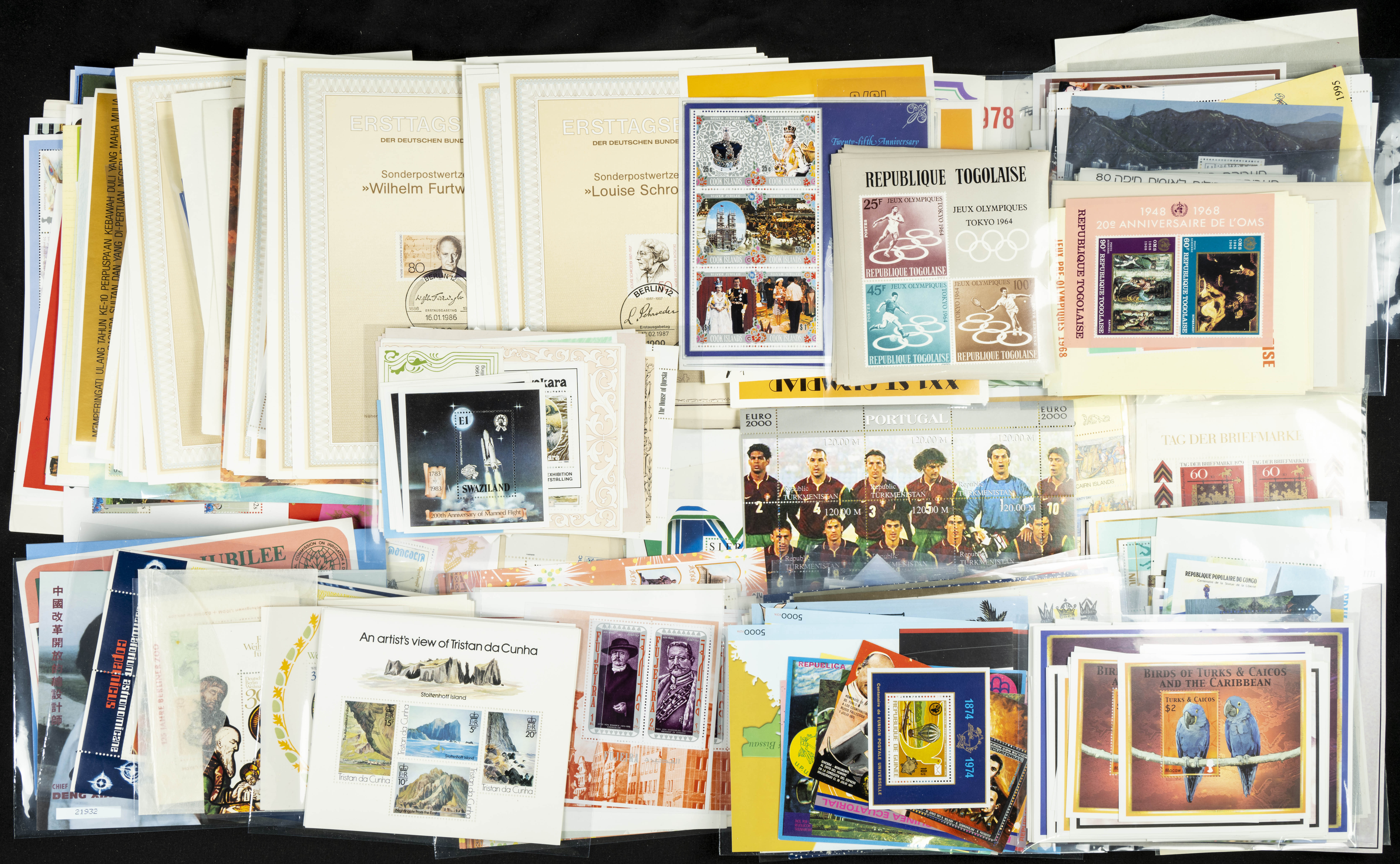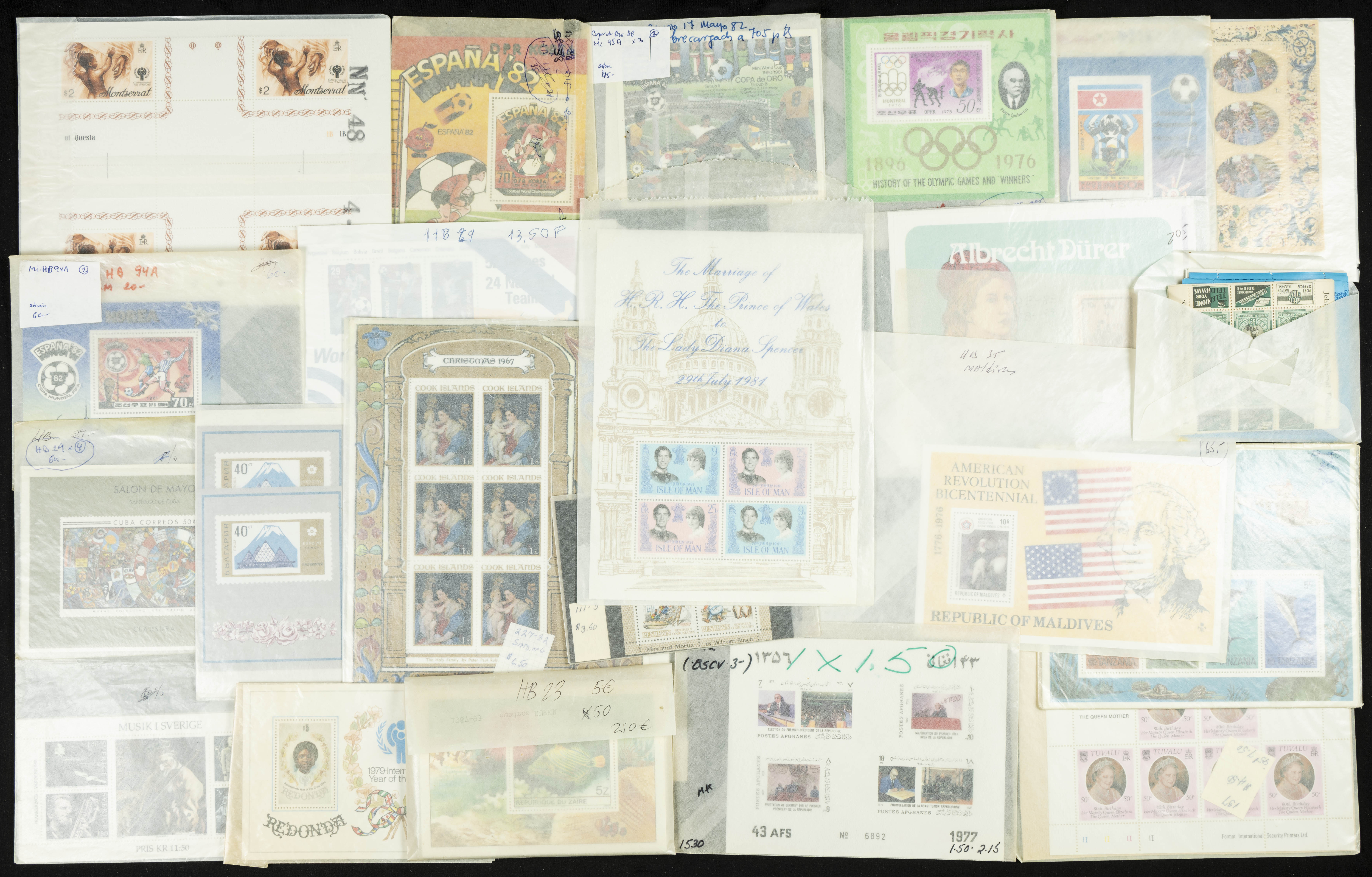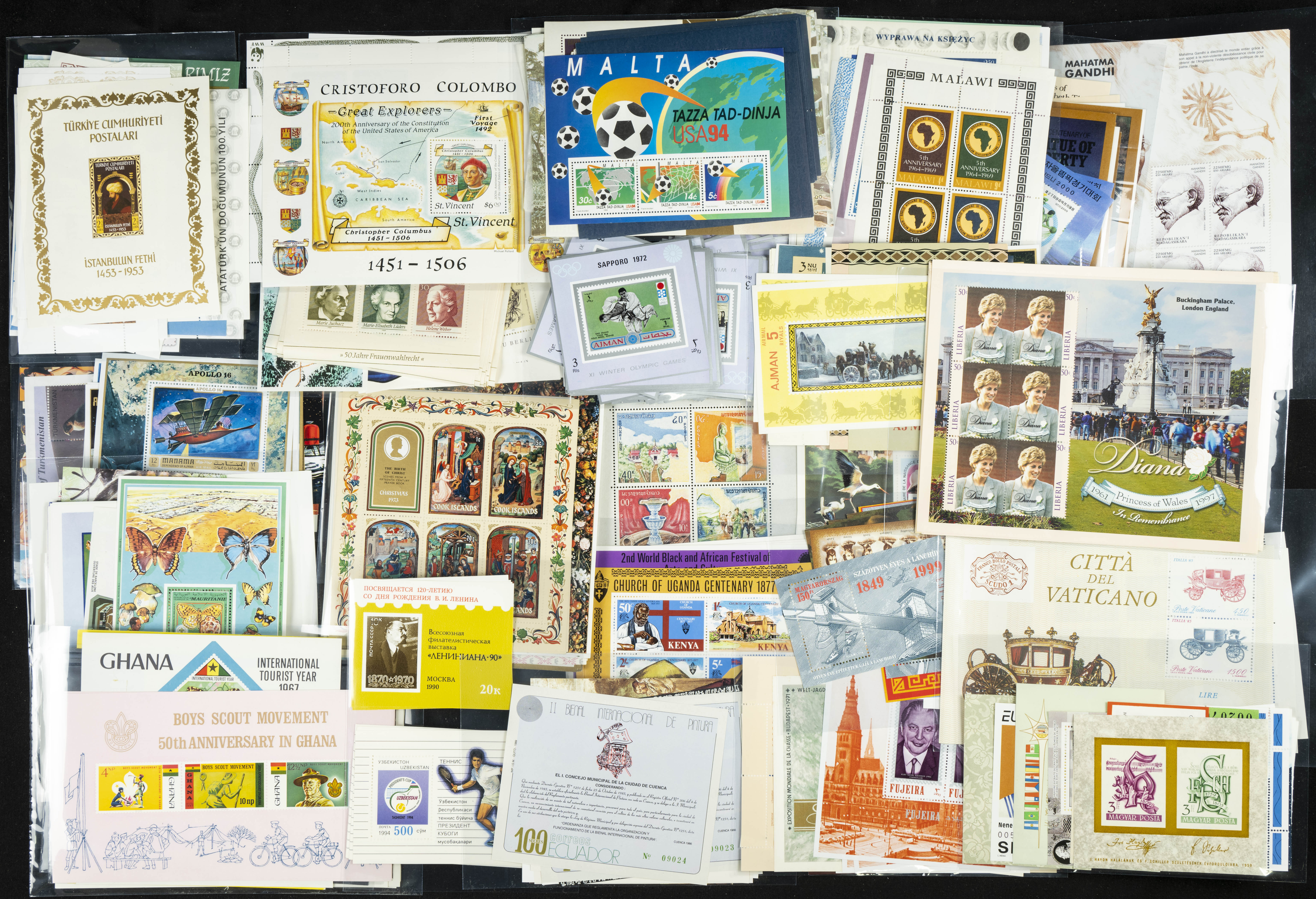 ★★(1950ca). Interesante conjunto de cientos de hojas bloque y minihojas de diversos países, la mayoría comprendidos entre 1950 y 1980 y una gran parte del tema Fauna y Deportes, en nuevo. ALTO VALOR DE CATALOGO. A EXAMINAR.