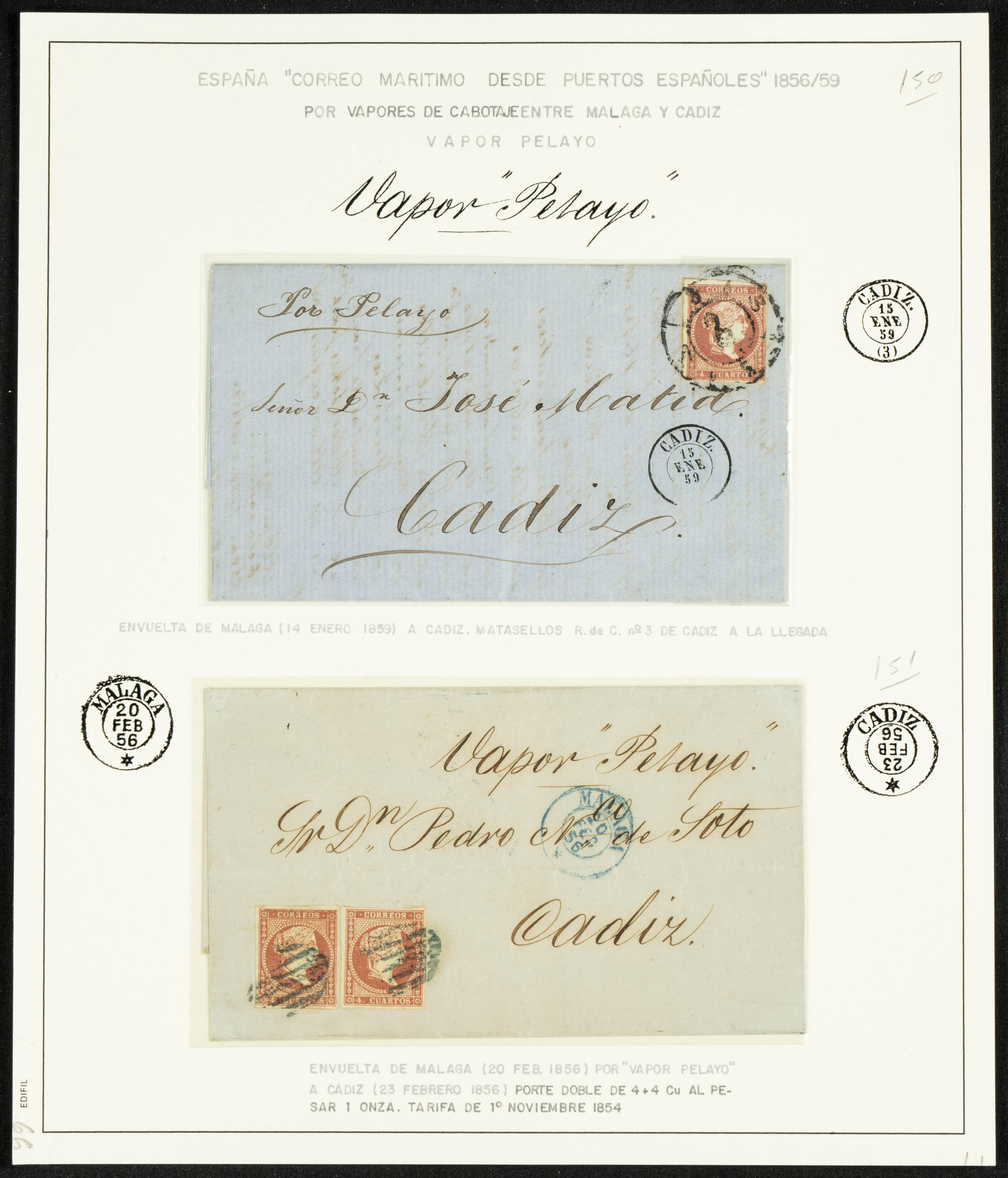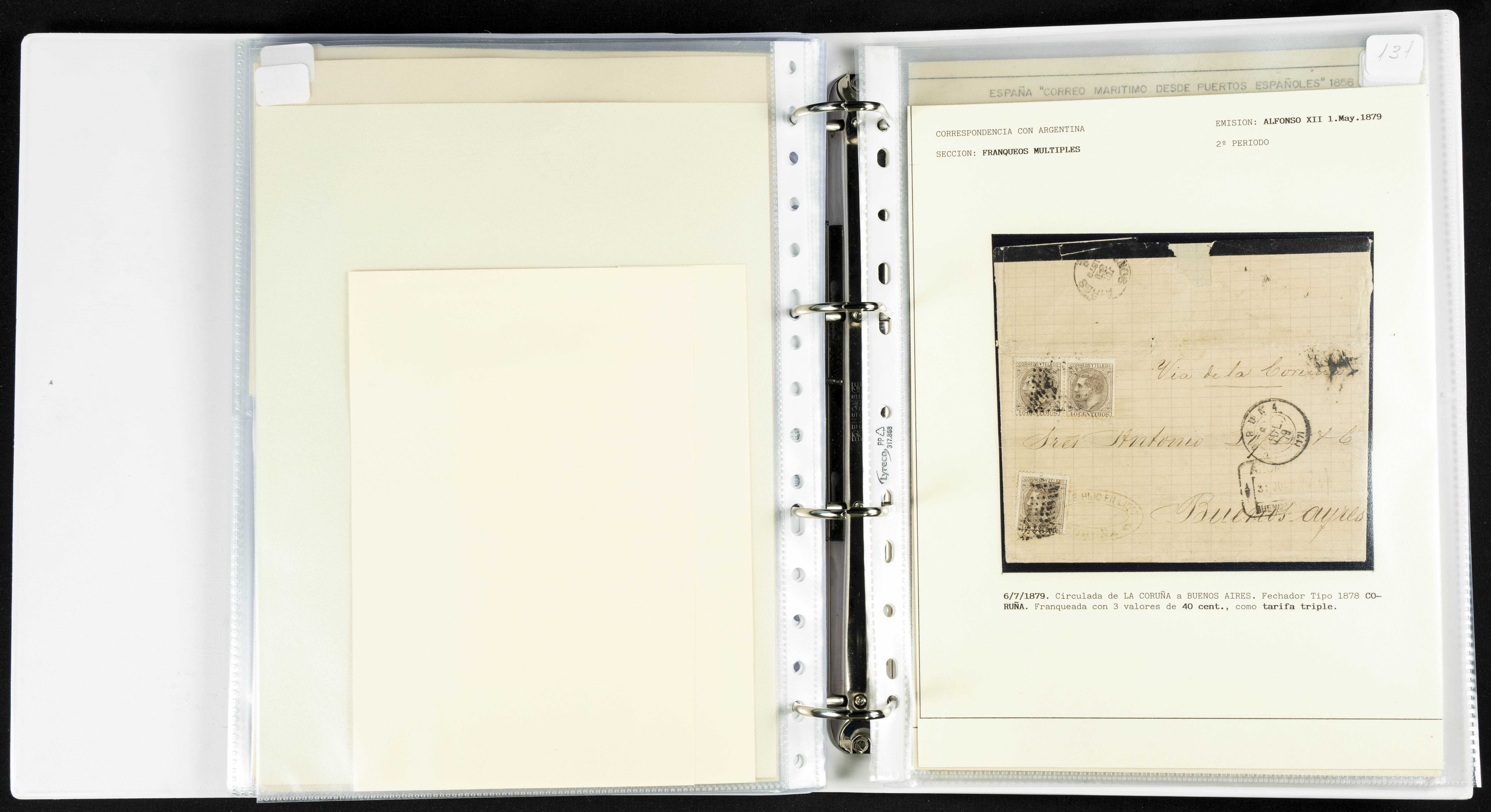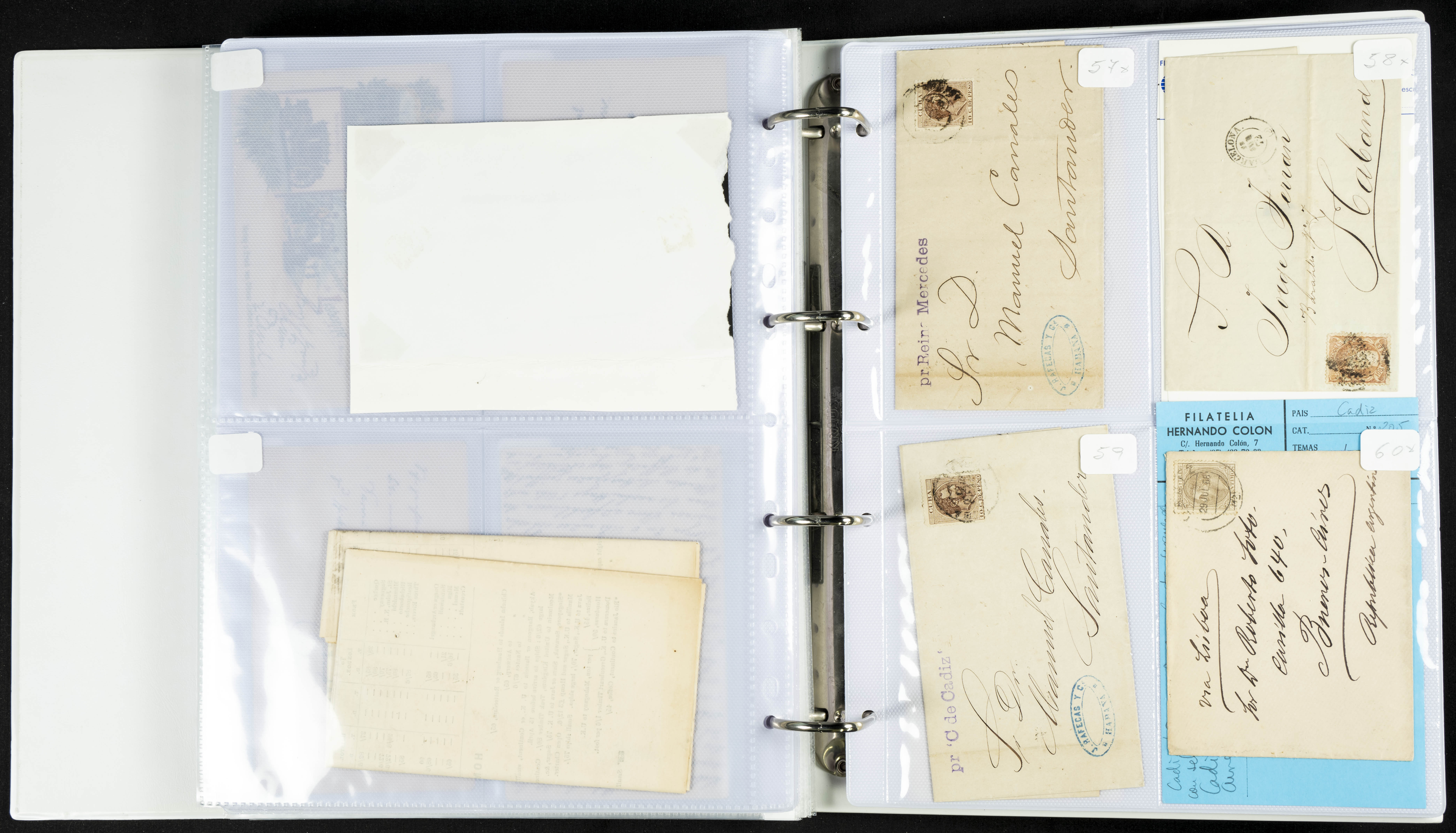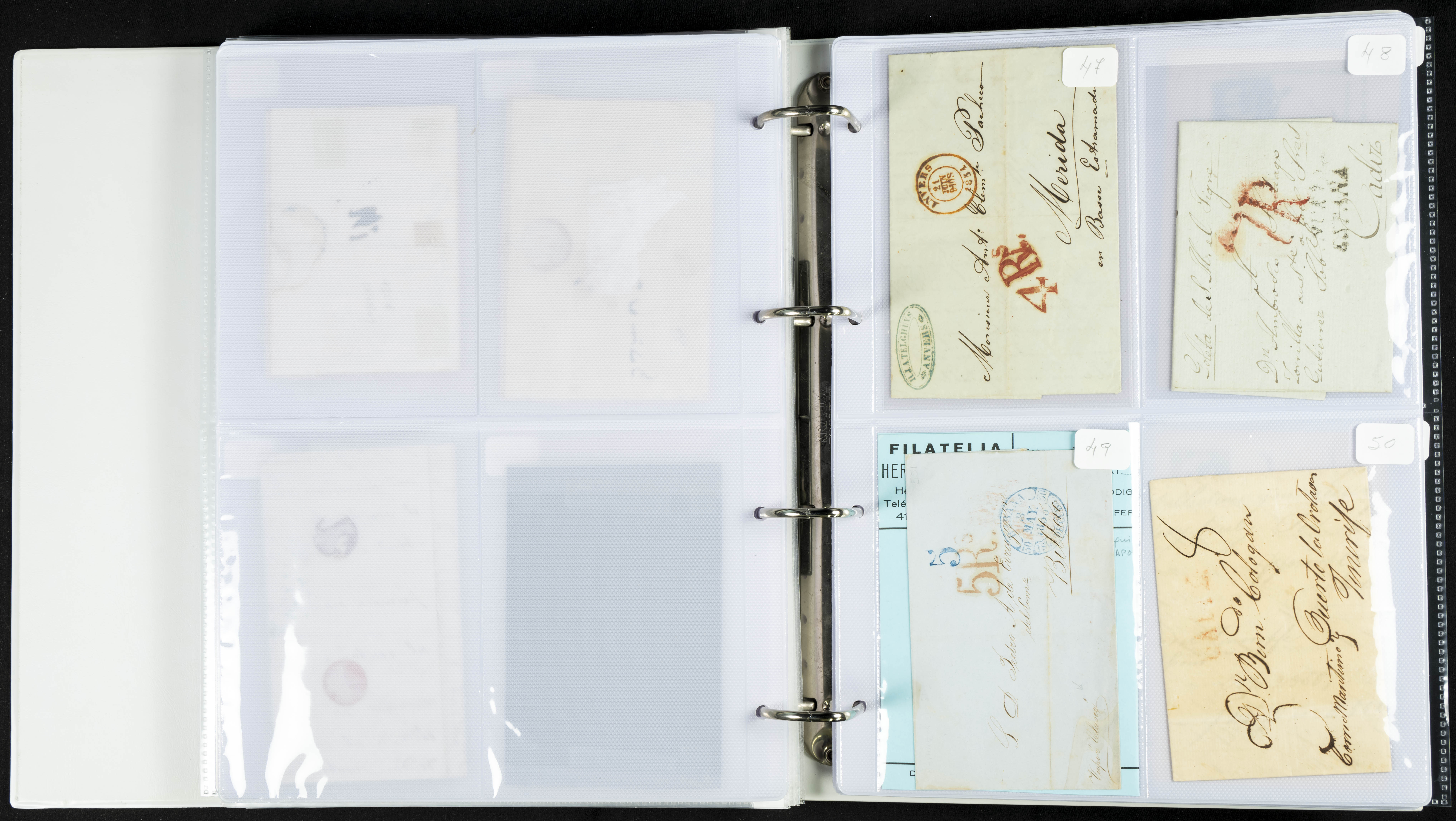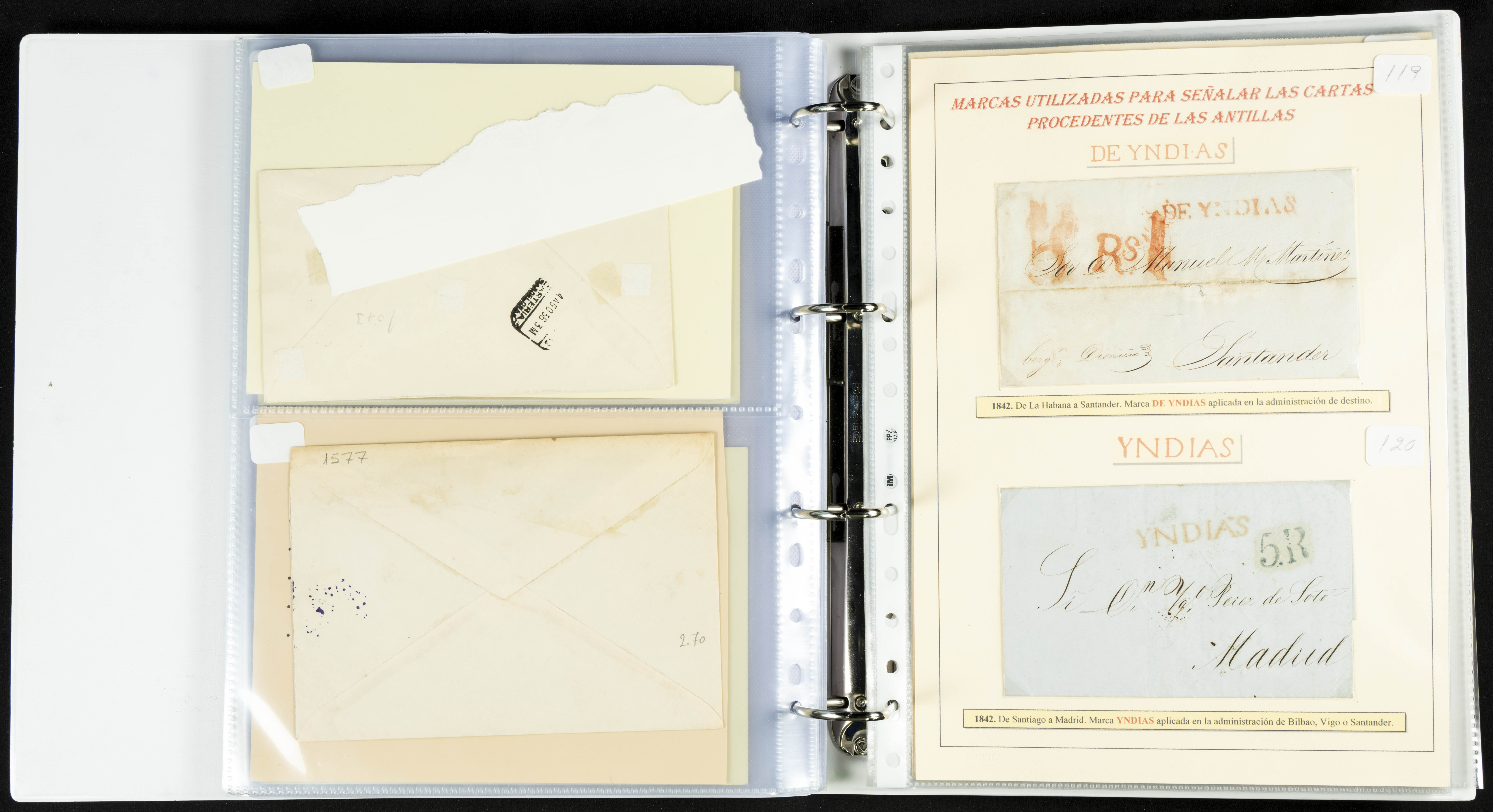 (1816ca). An impressive collection of correspondence transported by steamship between 1816 and 1940 from Spain and abroad. From Spain, highlights include letters from coastal steamships of different periods, letters from Cuba with various markings, pre-philatelic items, maritime mail markings, etc. From abroad, noteworthy are some letters from French steamships (Messageries Maritimes) with octagonal and British date stamps, as well as some shipping manifests. This is a very advanced collection that serves as a foundation for completing a large collection in this area of postal history. A MUST-SEE.