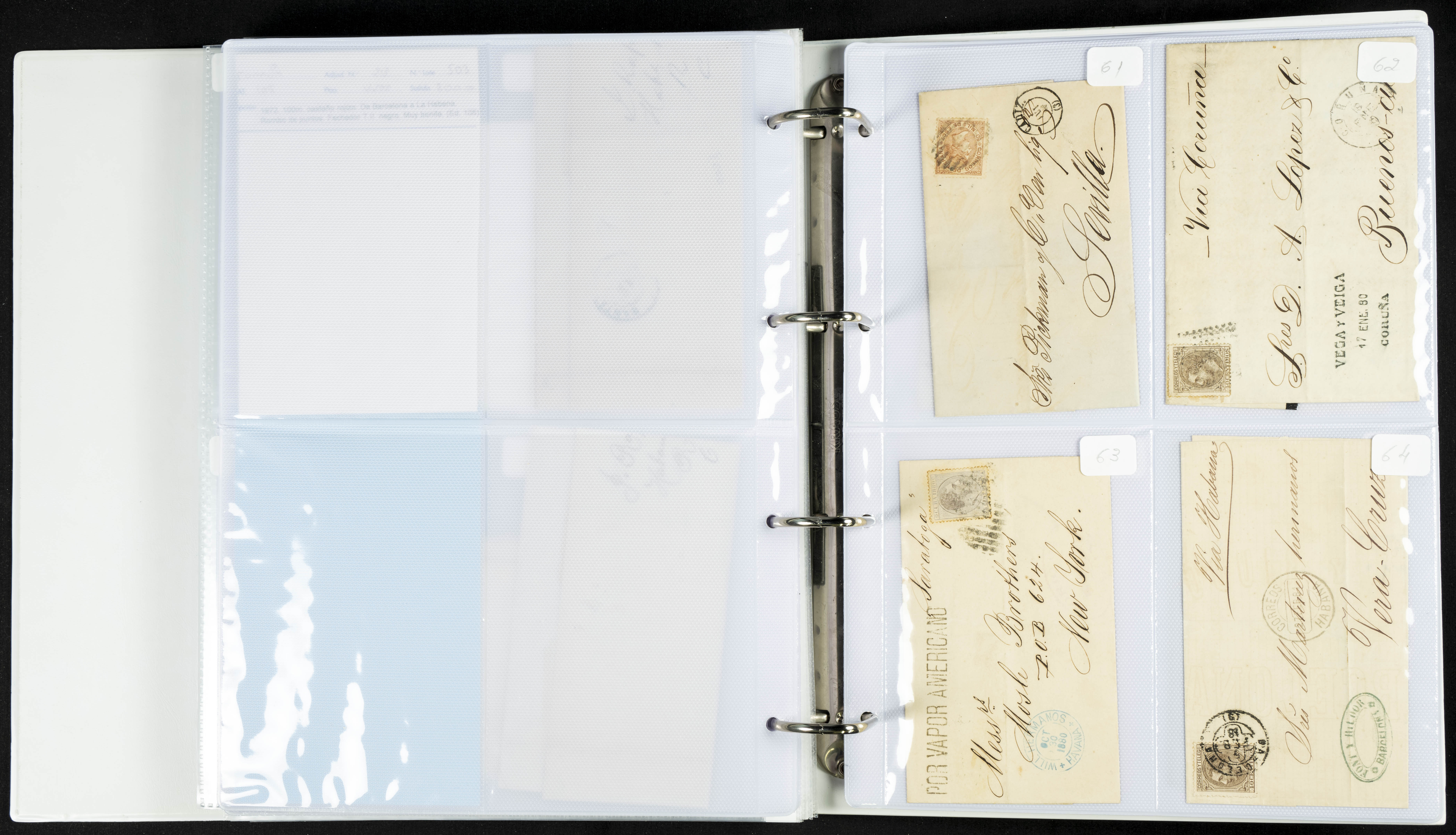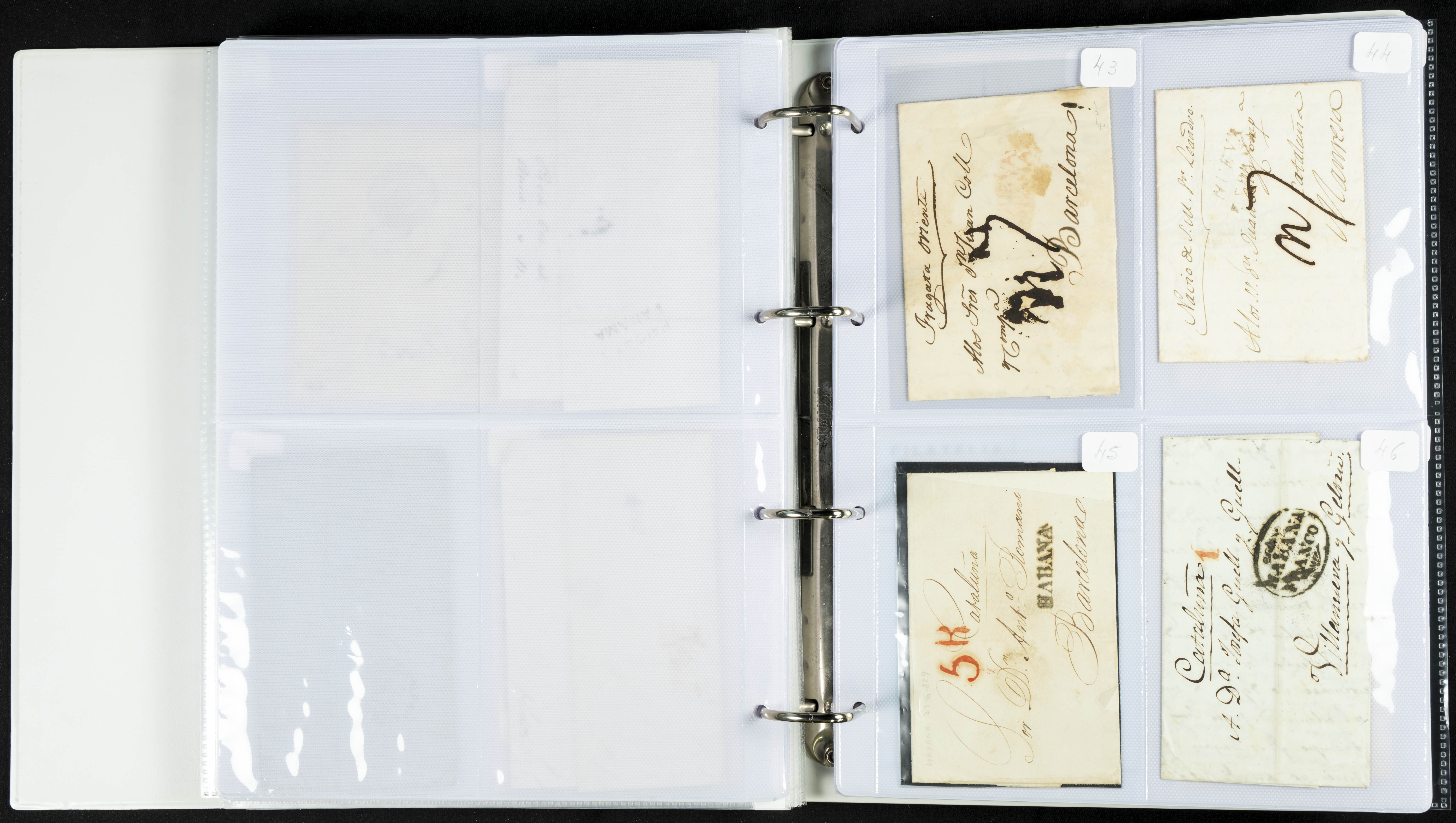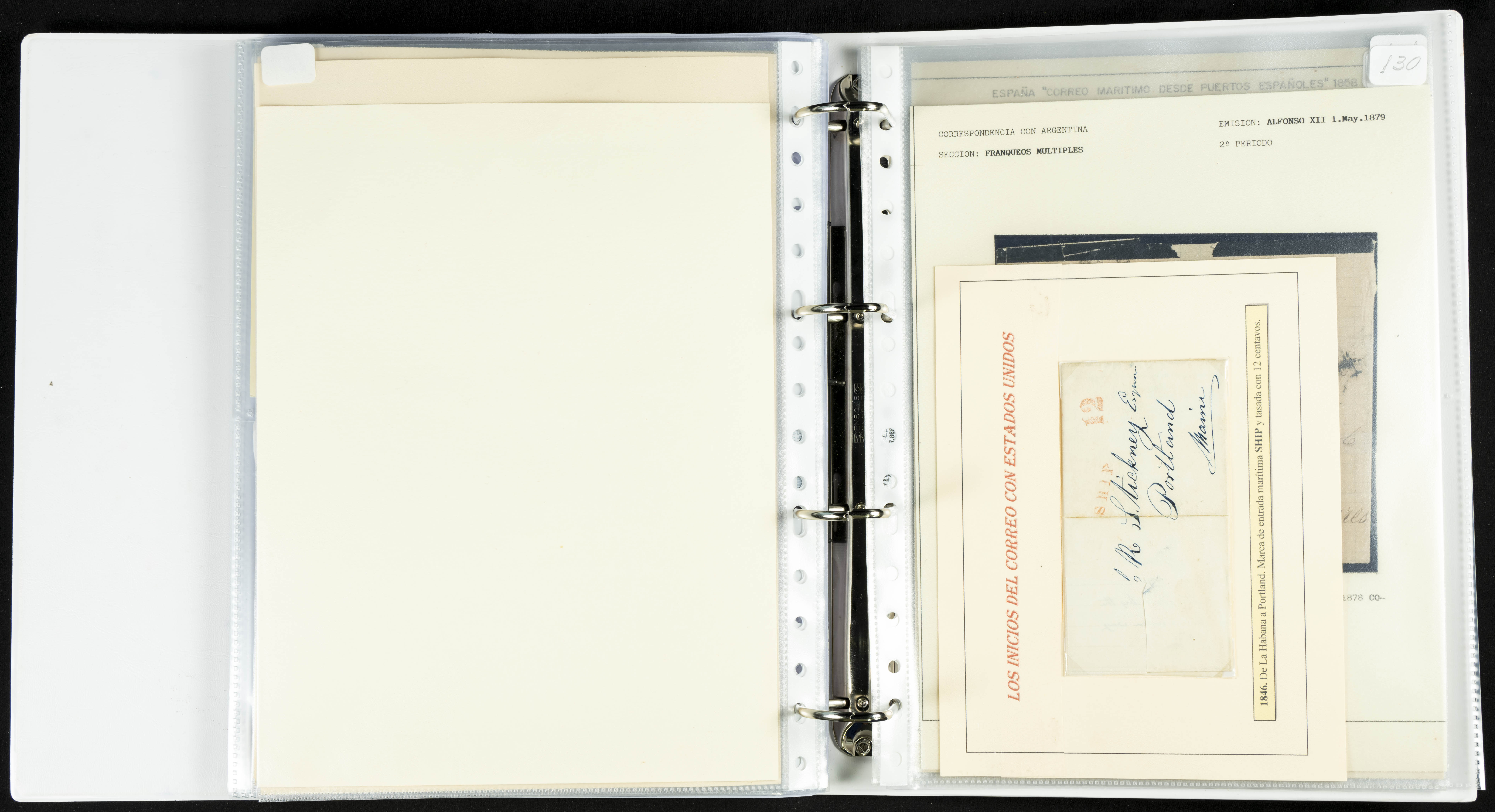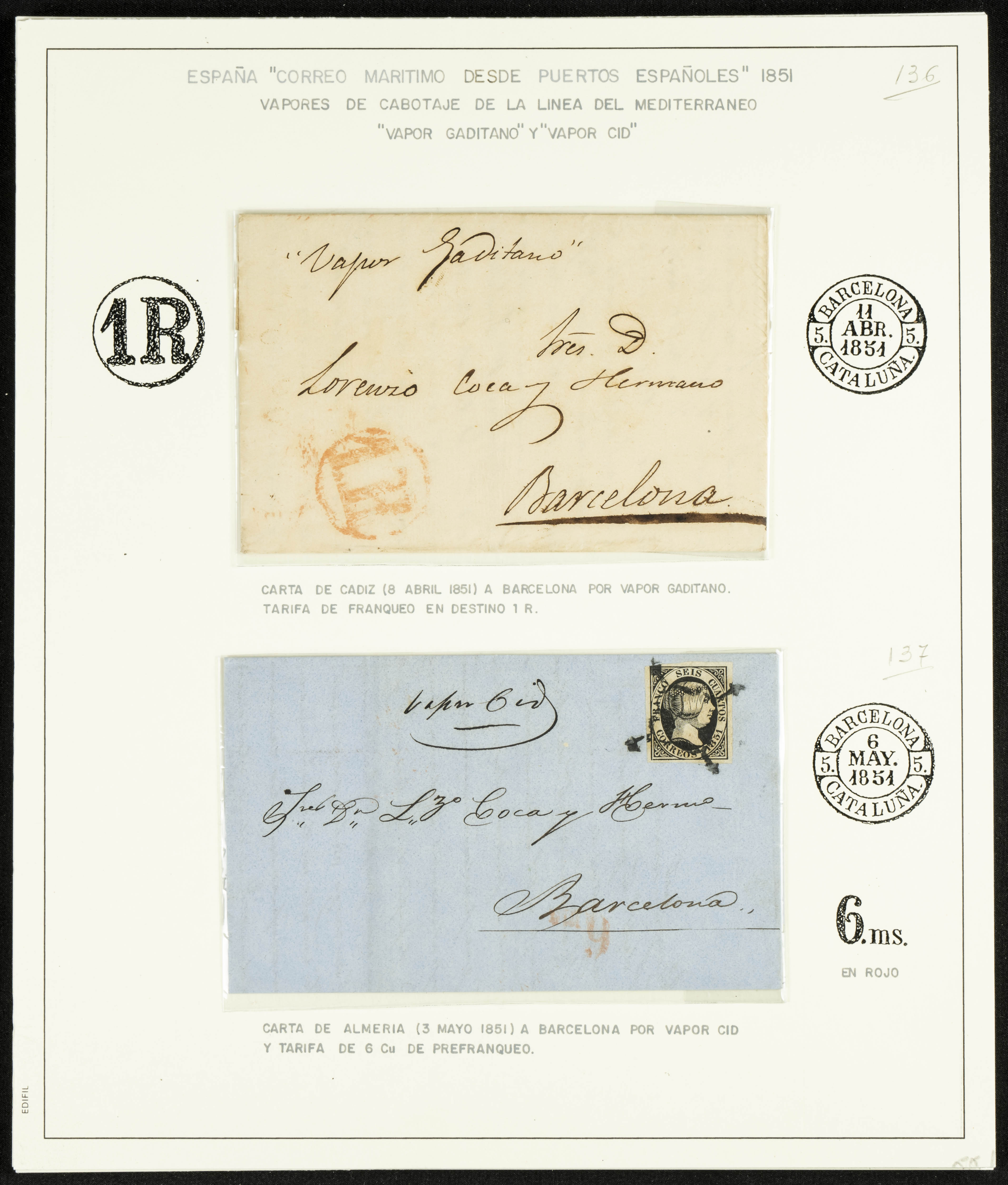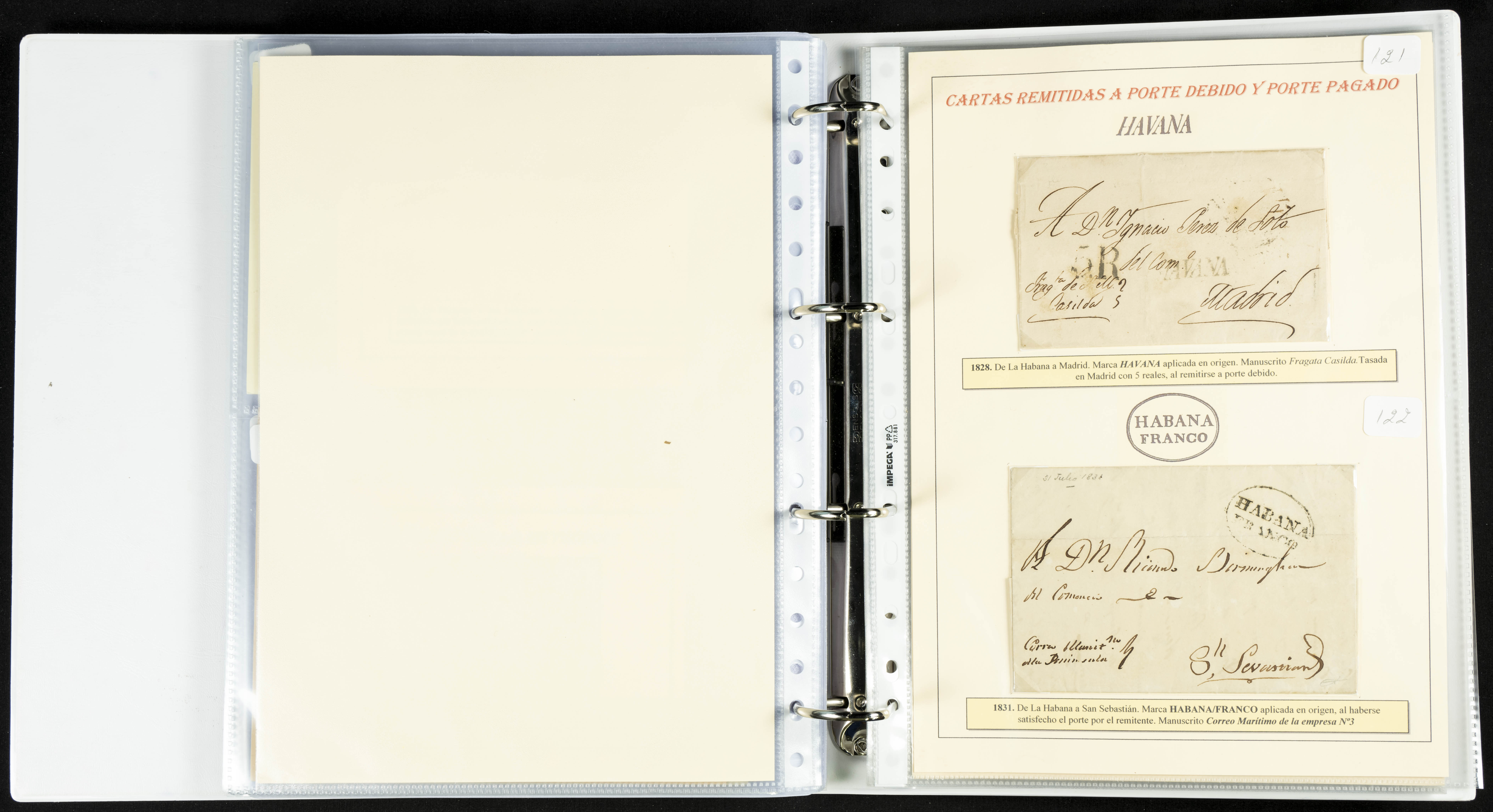 (1816ca). An impressive collection of correspondence transported by steamship between 1816 and 1940 from Spain and abroad. From Spain, highlights include letters from coastal steamships of different periods, letters from Cuba with various markings, pre-philatelic items, maritime mail markings, etc. From abroad, noteworthy are some letters from French steamships (Messageries Maritimes) with octagonal and British date stamps, as well as some shipping manifests. This is a very advanced collection that serves as a foundation for completing a large collection in this area of postal history. A MUST-SEE.
