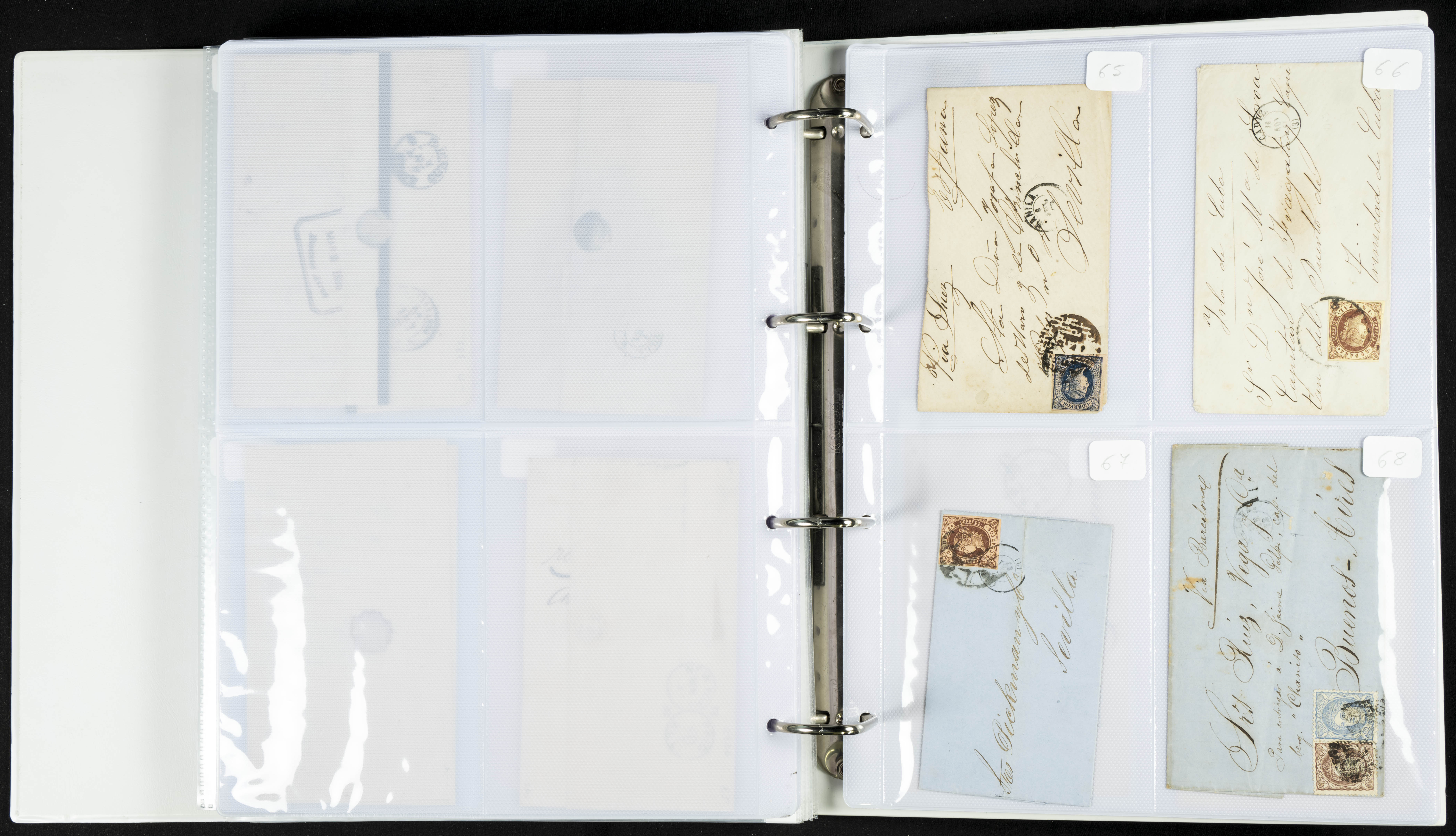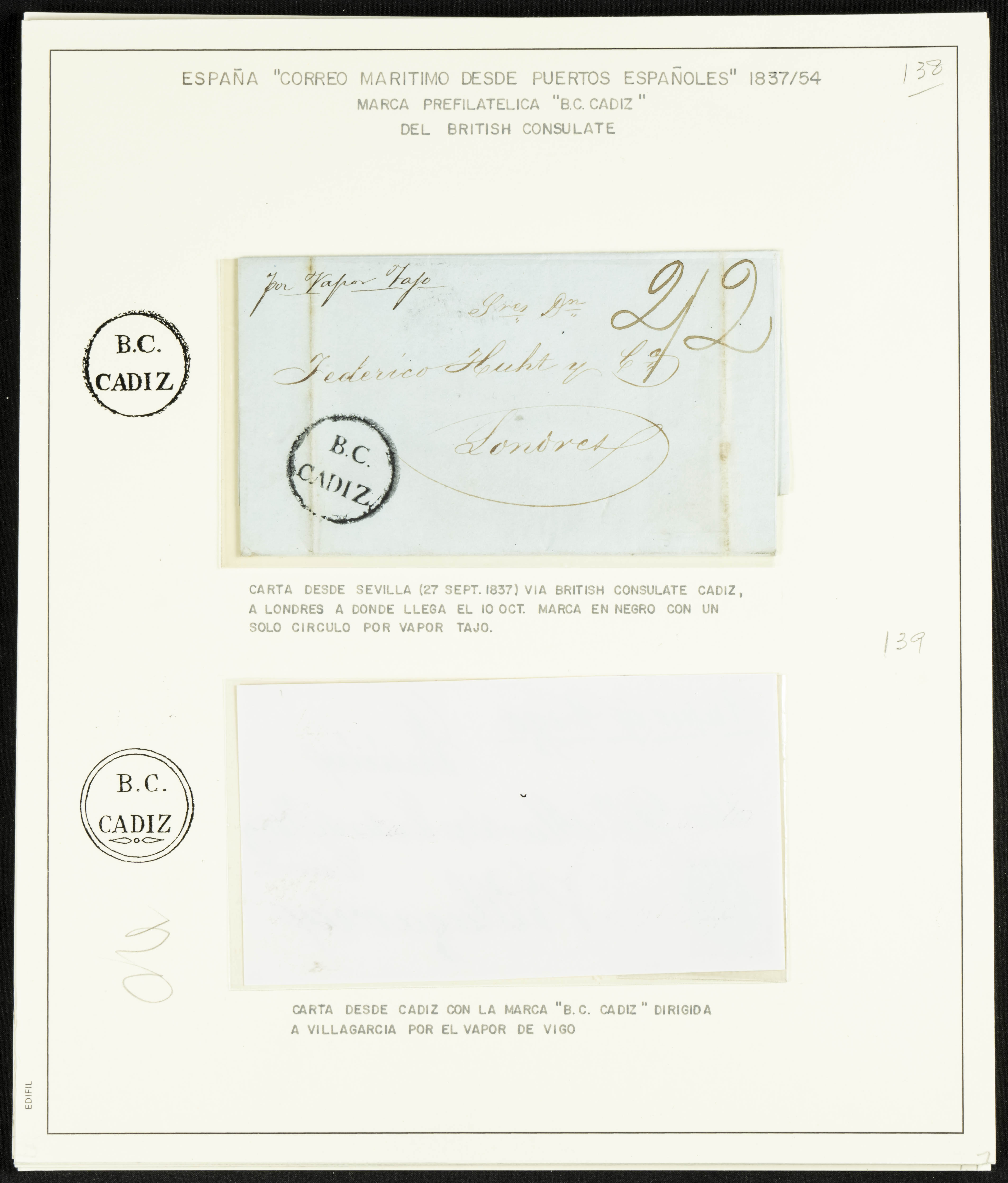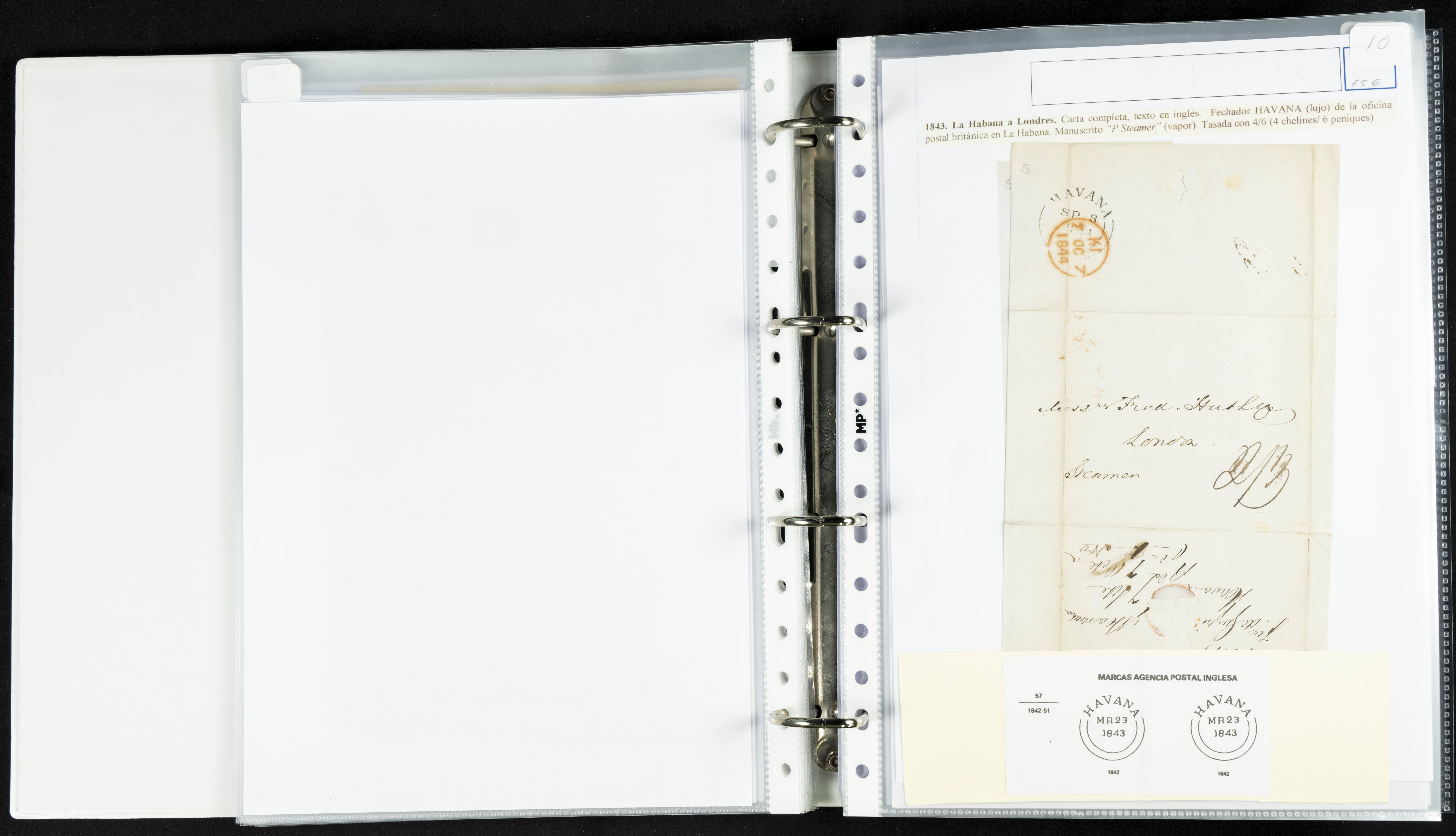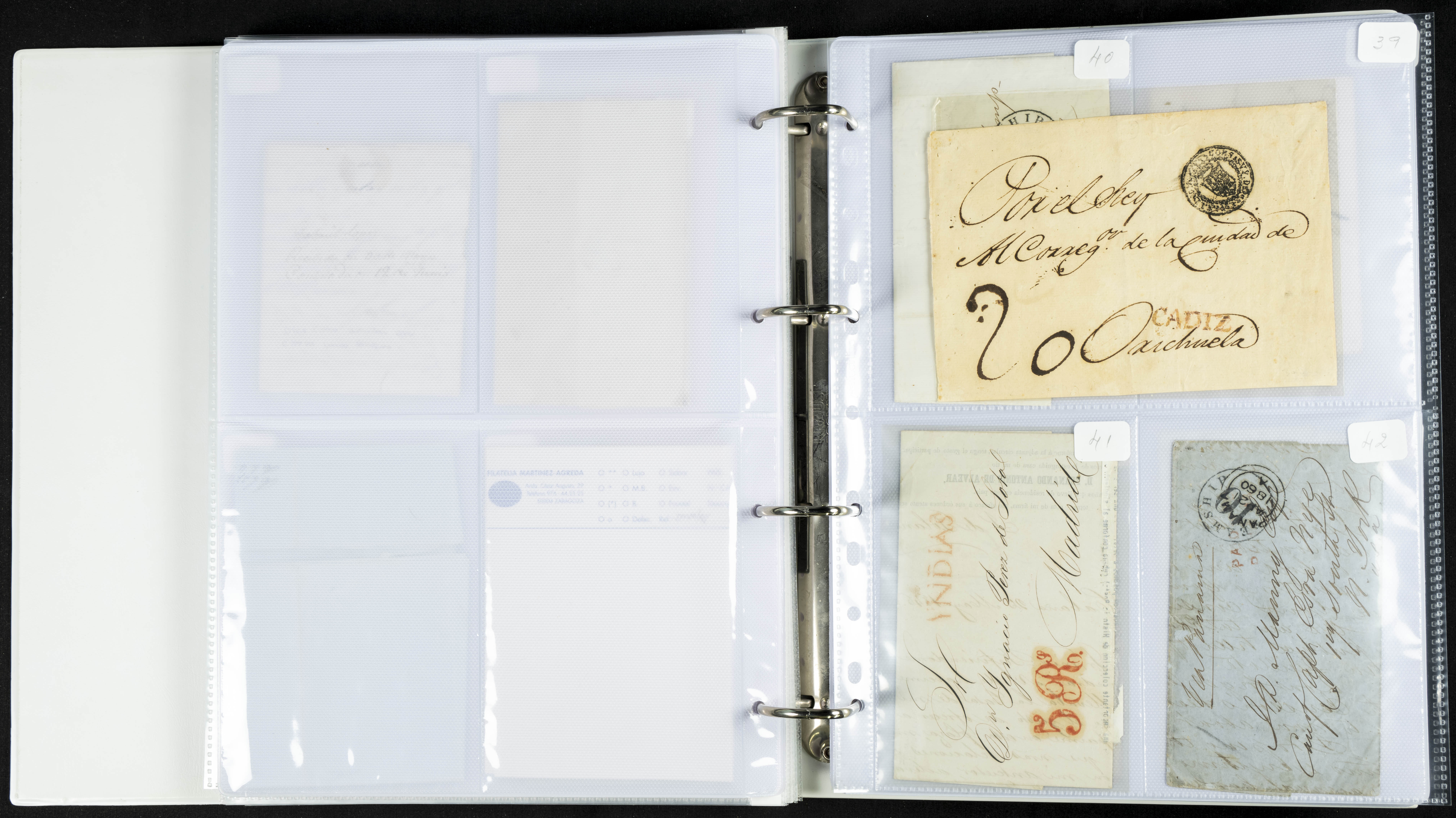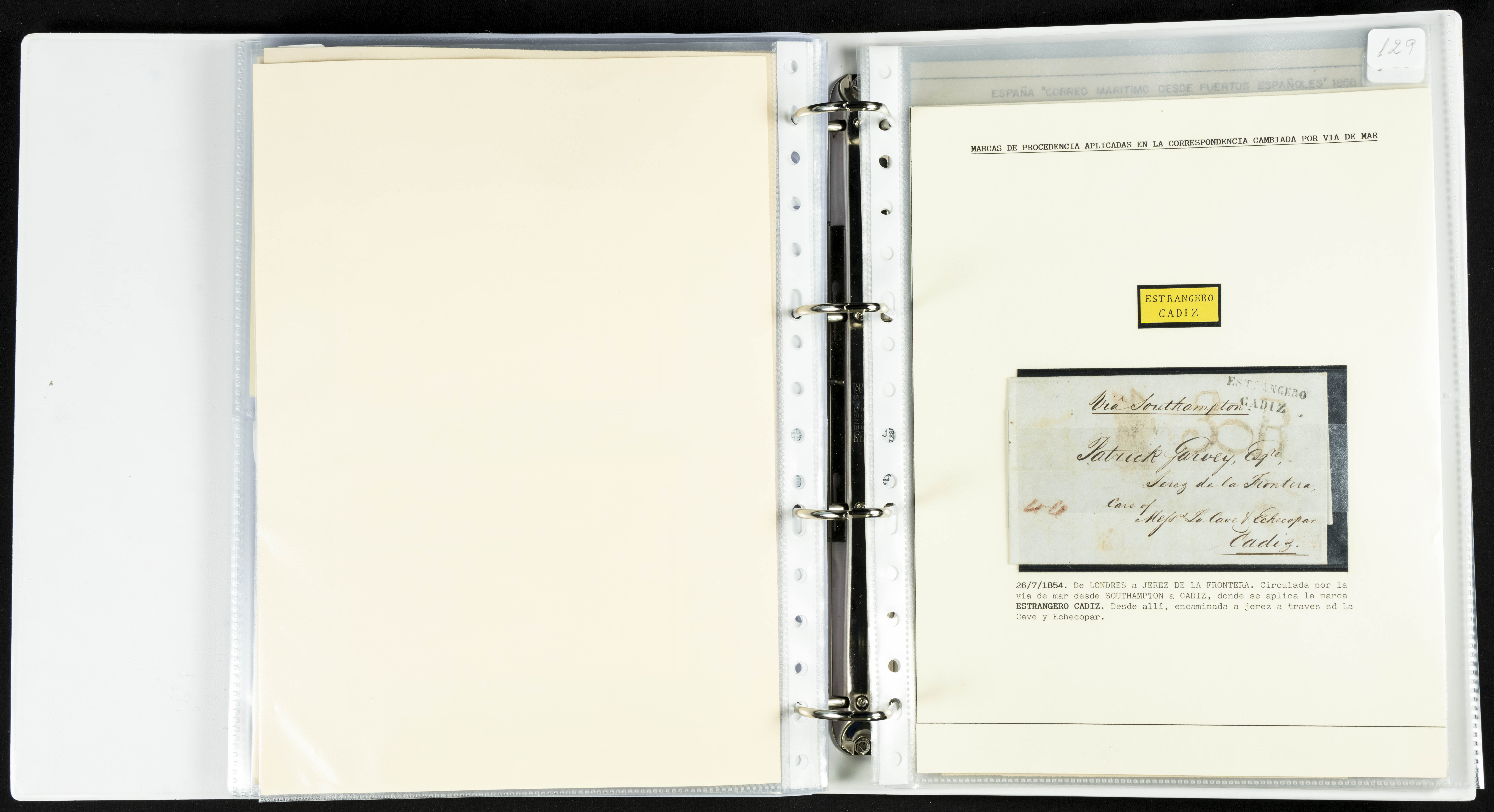 (1816ca). An impressive collection of correspondence transported by steamship between 1816 and 1940 from Spain and abroad. From Spain, highlights include letters from coastal steamships of different periods, letters from Cuba with various markings, pre-philatelic items, maritime mail markings, etc. From abroad, noteworthy are some letters from French steamships (Messageries Maritimes) with octagonal and British date stamps, as well as some shipping manifests. This is a very advanced collection that serves as a foundation for completing a large collection in this area of postal history. A MUST-SEE.