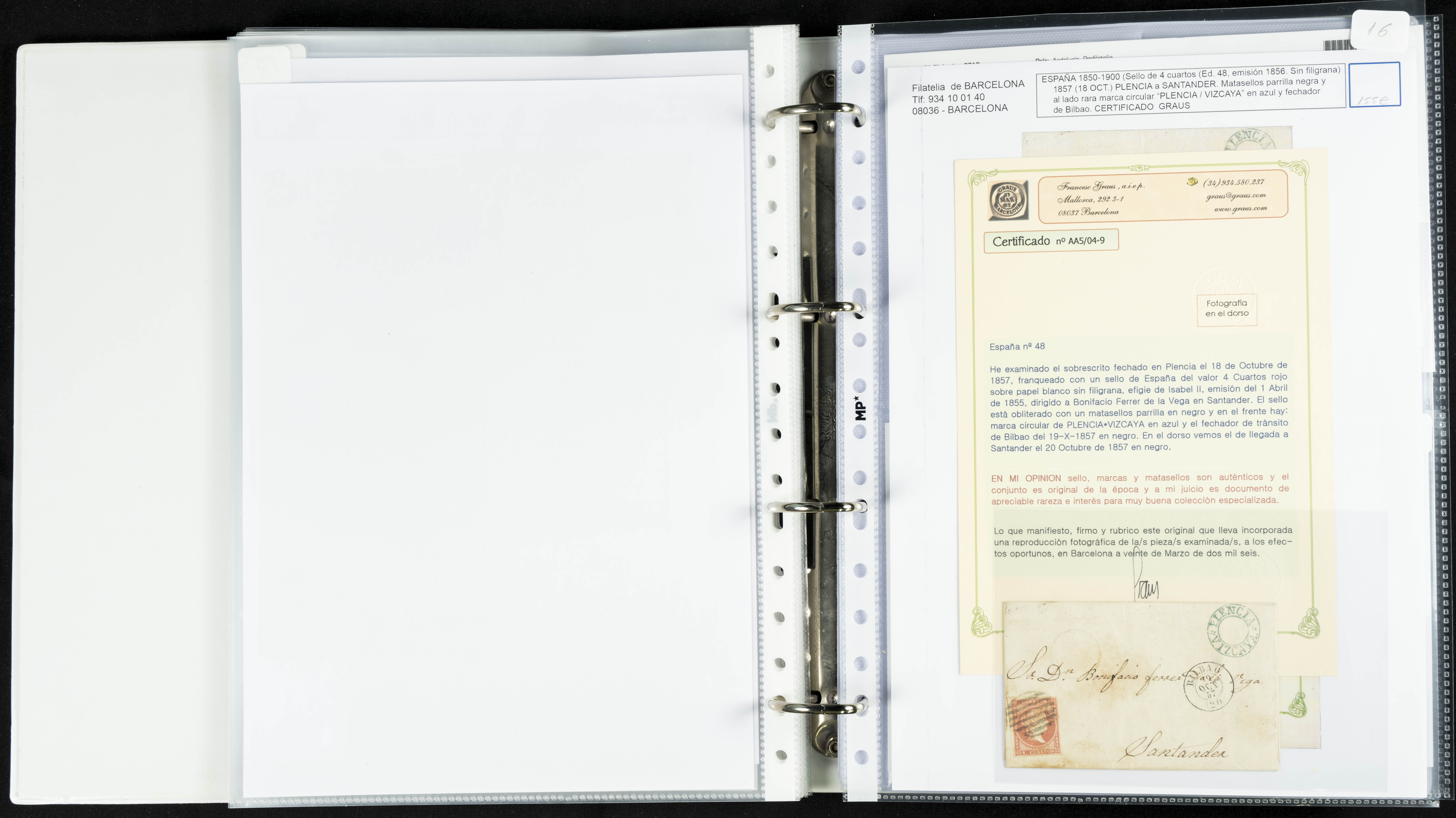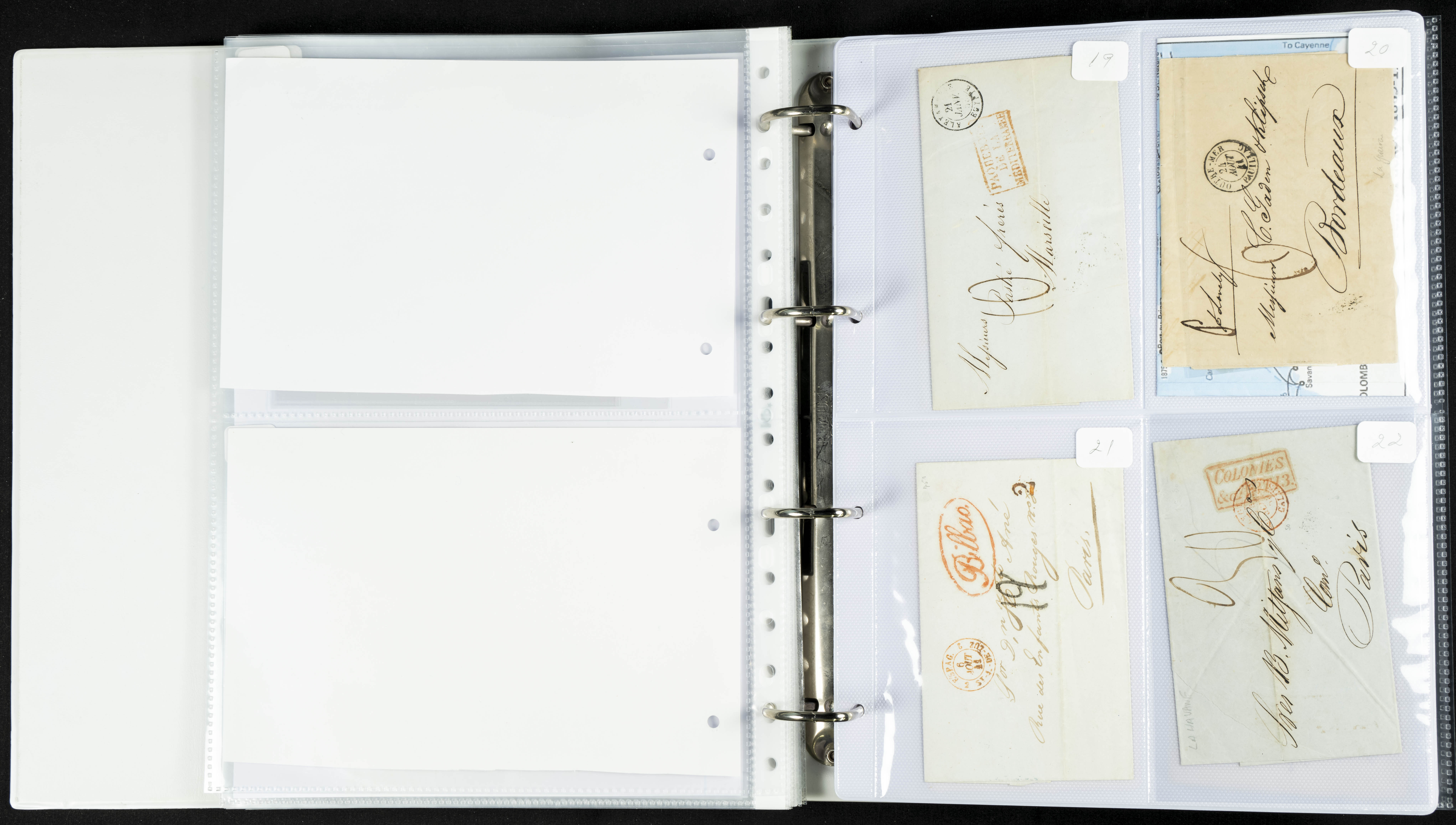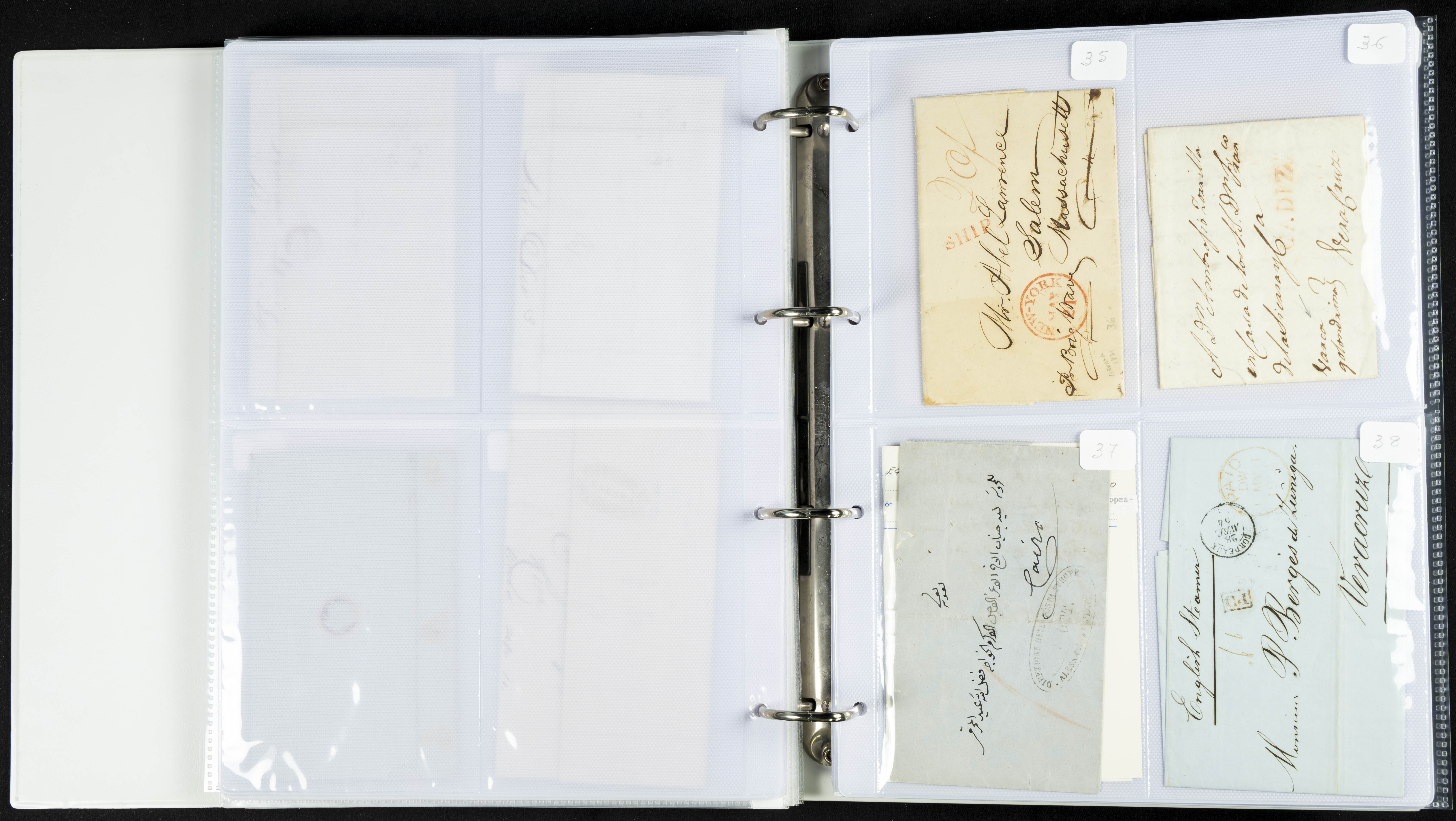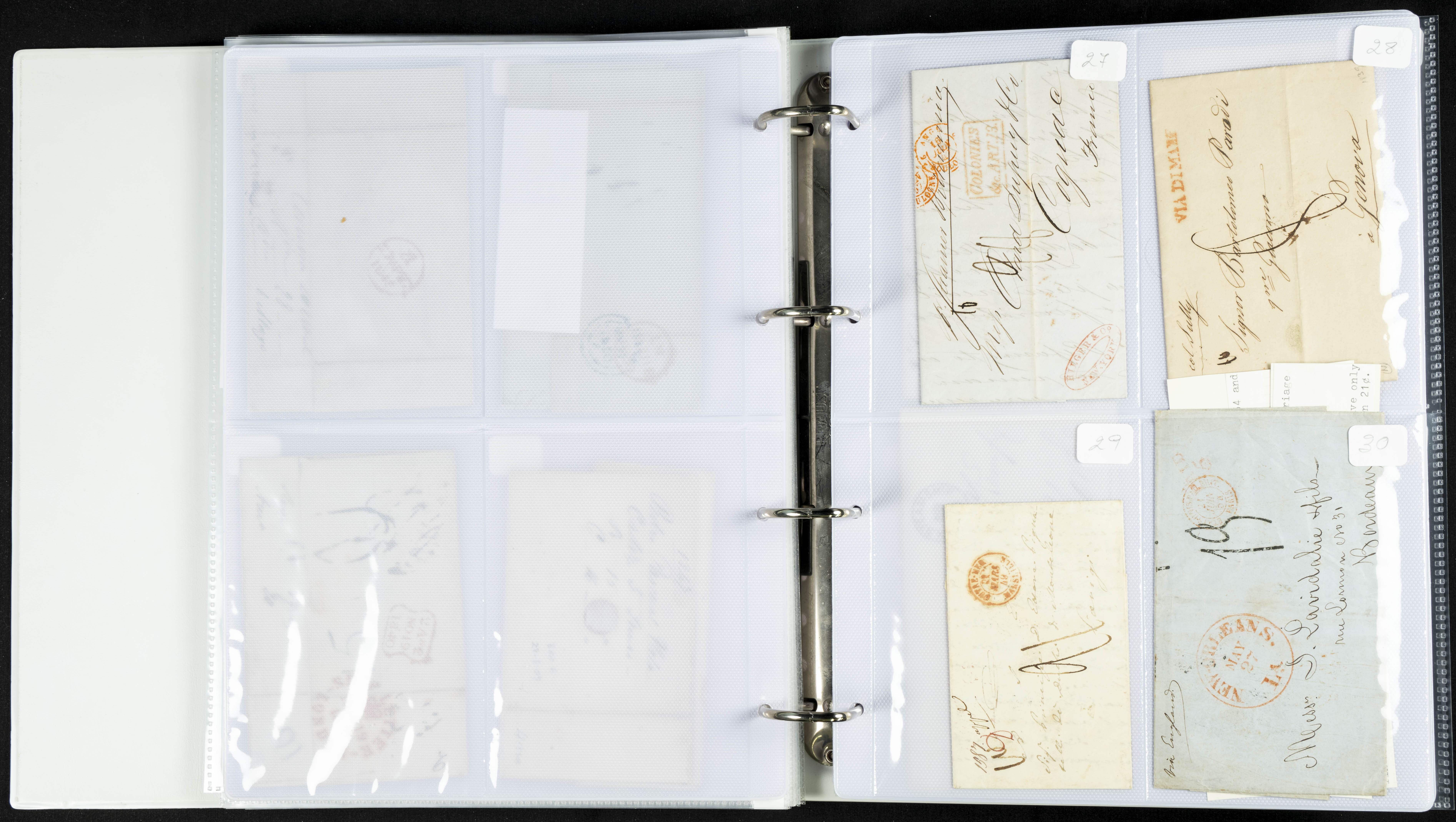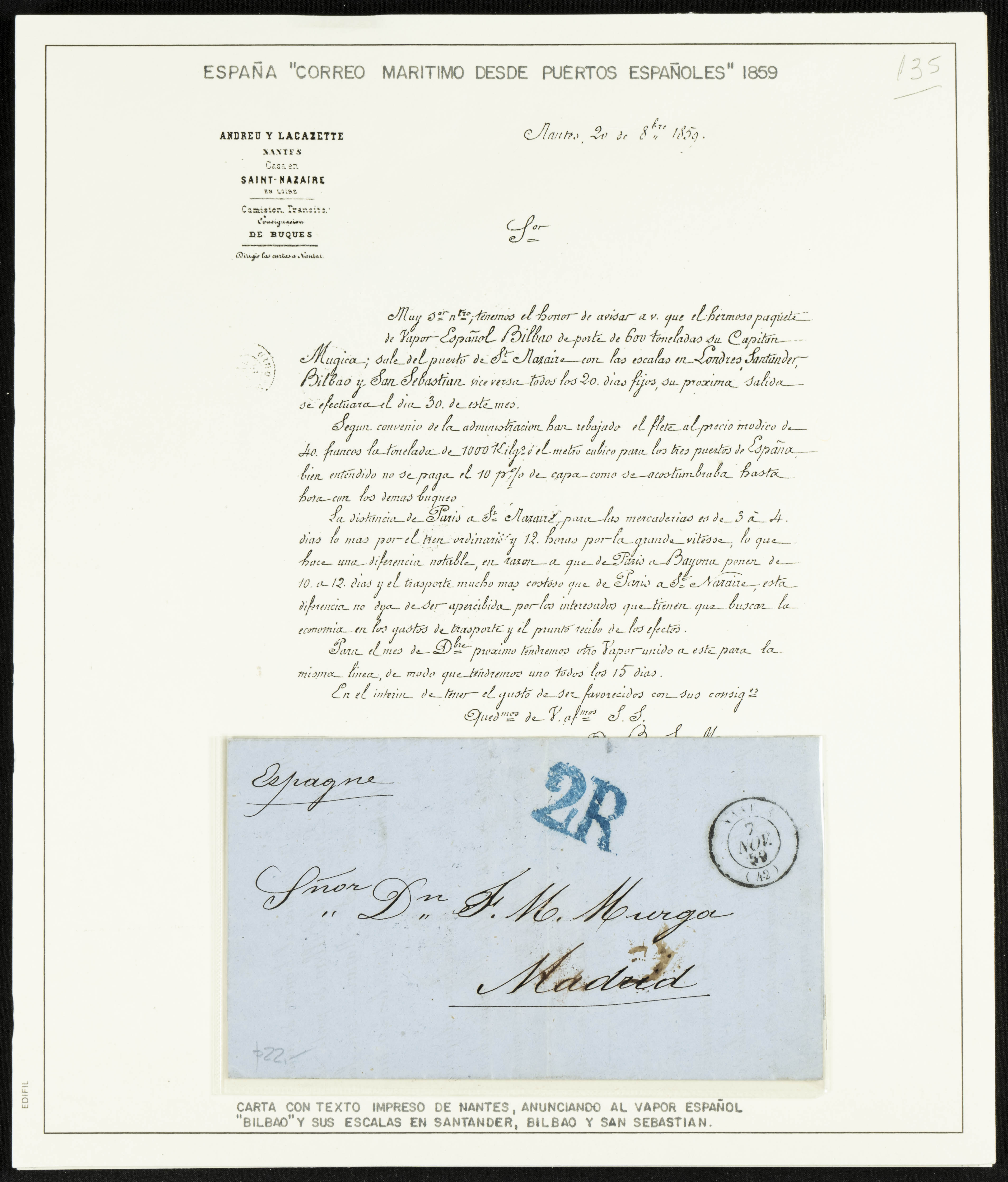 (1816ca). An impressive collection of correspondence transported by steamship between 1816 and 1940 from Spain and abroad. From Spain, highlights include letters from coastal steamships of different periods, letters from Cuba with various markings, pre-philatelic items, maritime mail markings, etc. From abroad, noteworthy are some letters from French steamships (Messageries Maritimes) with octagonal and British date stamps, as well as some shipping manifests. This is a very advanced collection that serves as a foundation for completing a large collection in this area of postal history. A MUST-SEE.