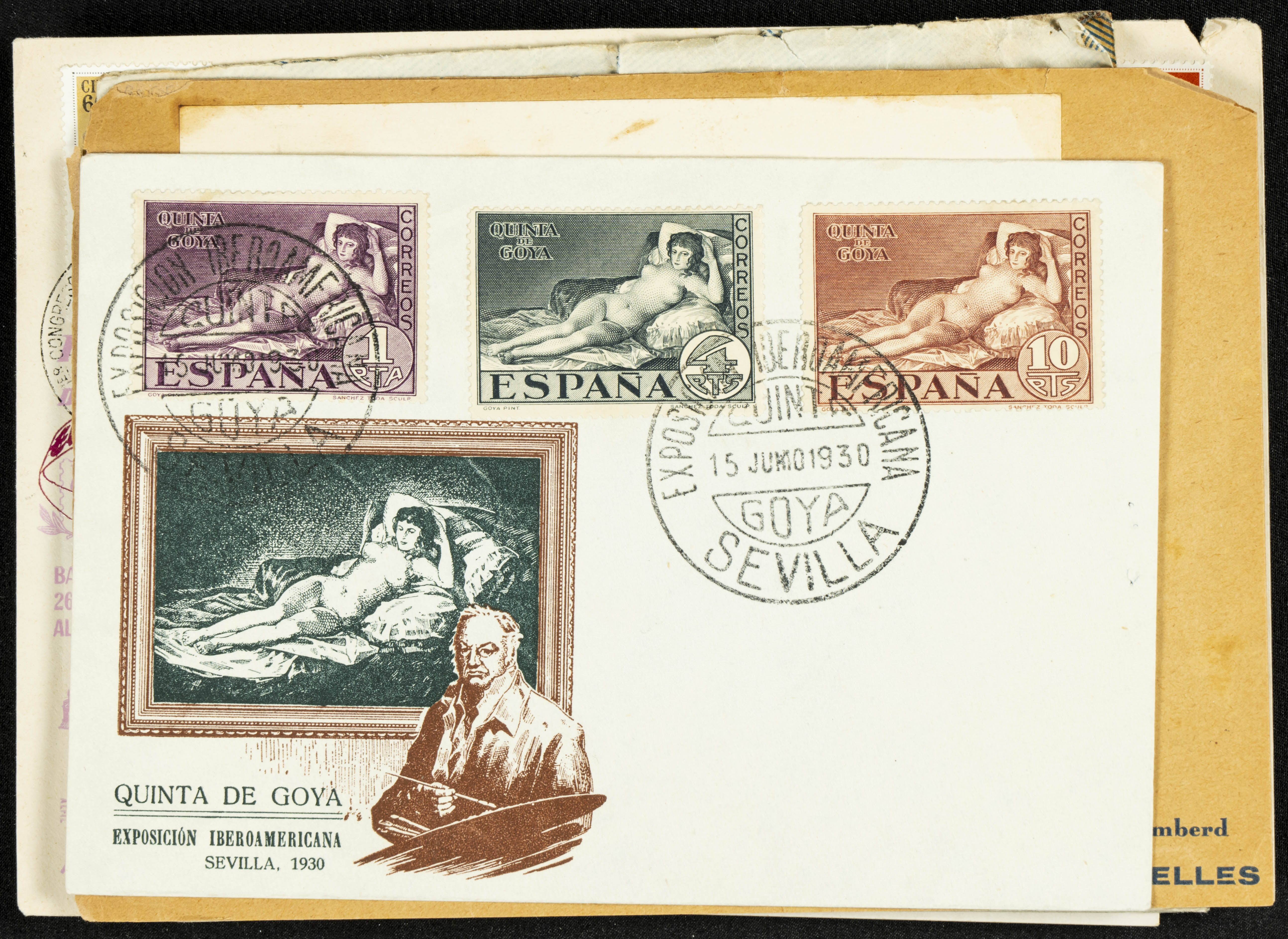 (1909ca). Collection of more than twenty-five letters and postcards, postal stationery, between 1909 and 1960, mint and postmarked, including some first-day covers. TO BE EXAMINED.