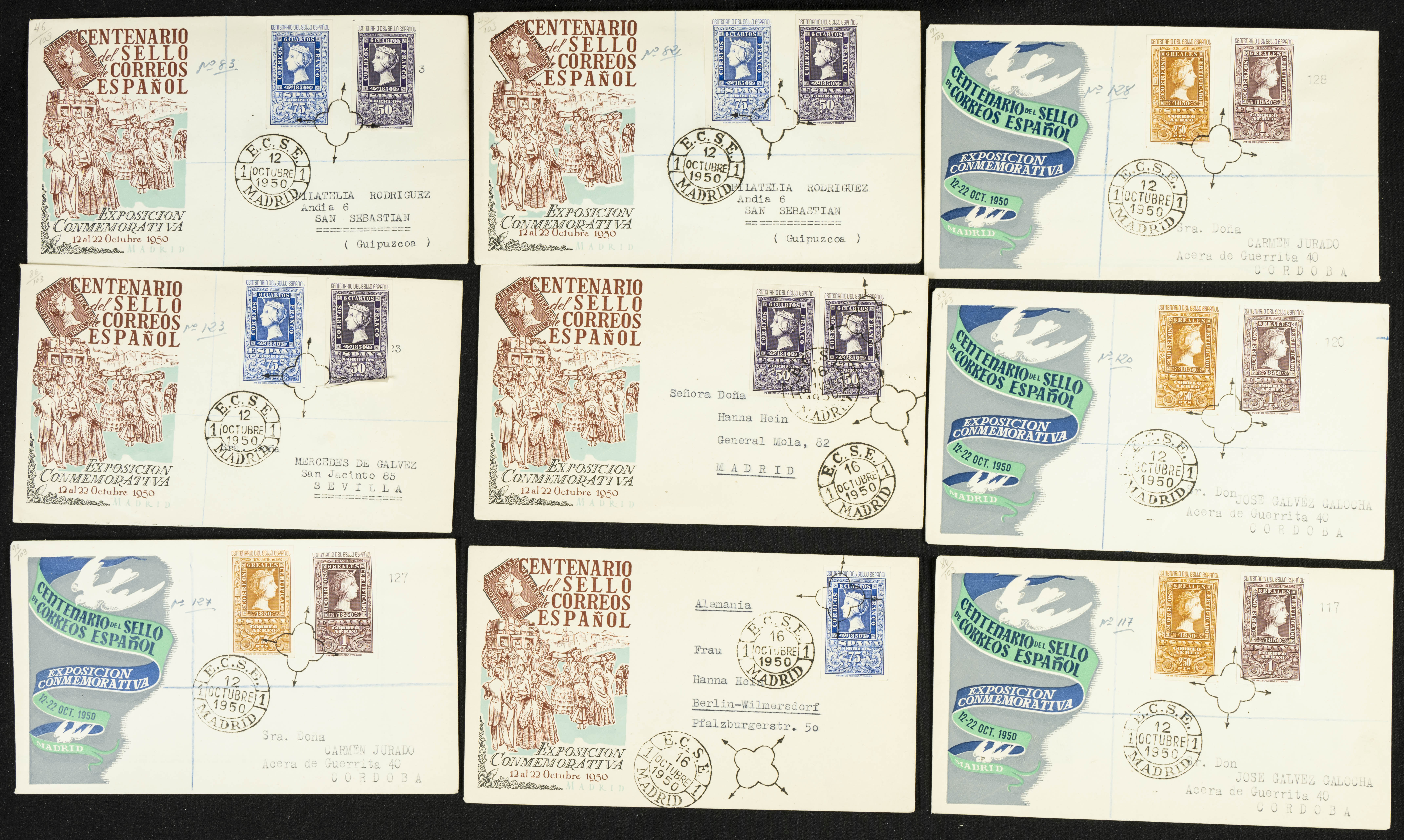1075, 1076, 1079, 1080. 1950. Set of five First Day Covers with the short series of the Centenary Stamp. TO BE EXAMINED.