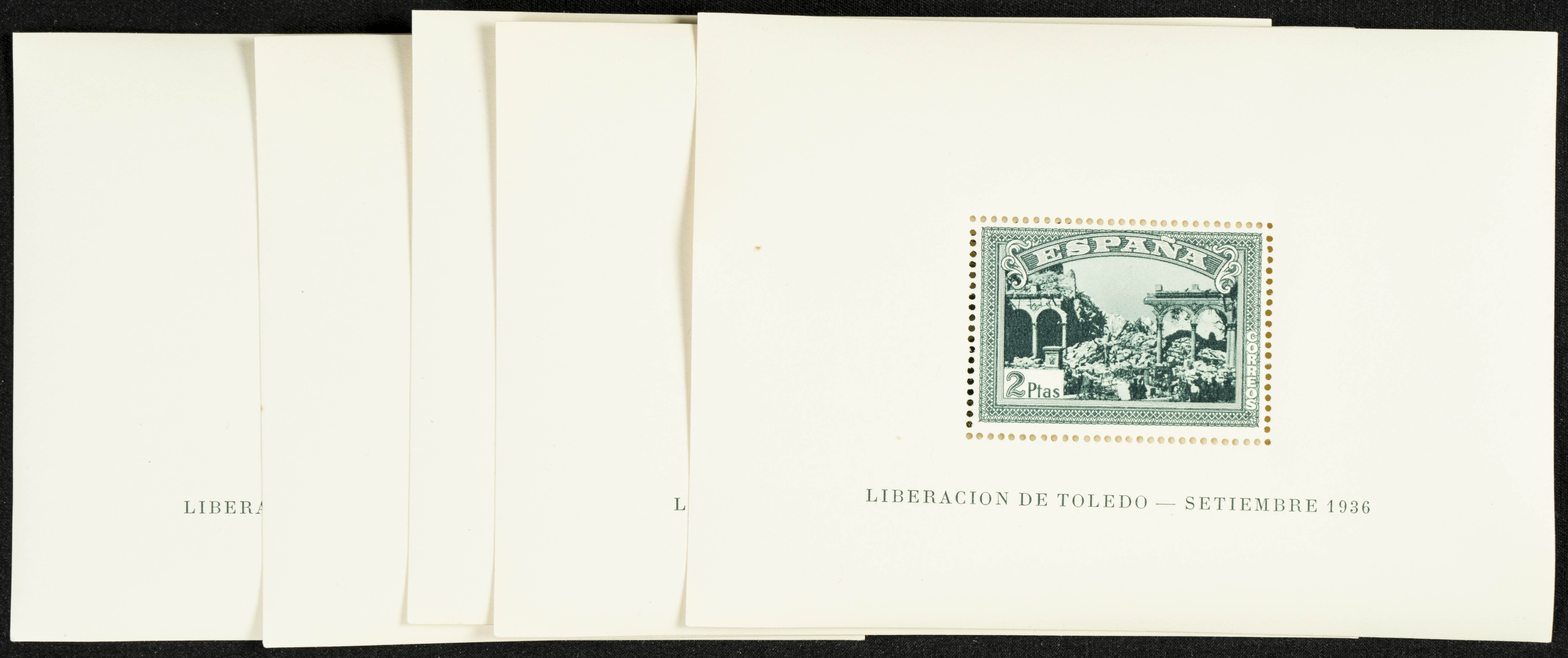 English ★★ 837(5). 1937. Five 2-point green notepad sheets. TOLEDO (good overall quality). TO BE EXAMINED. Edifil 2026: 340 Euros