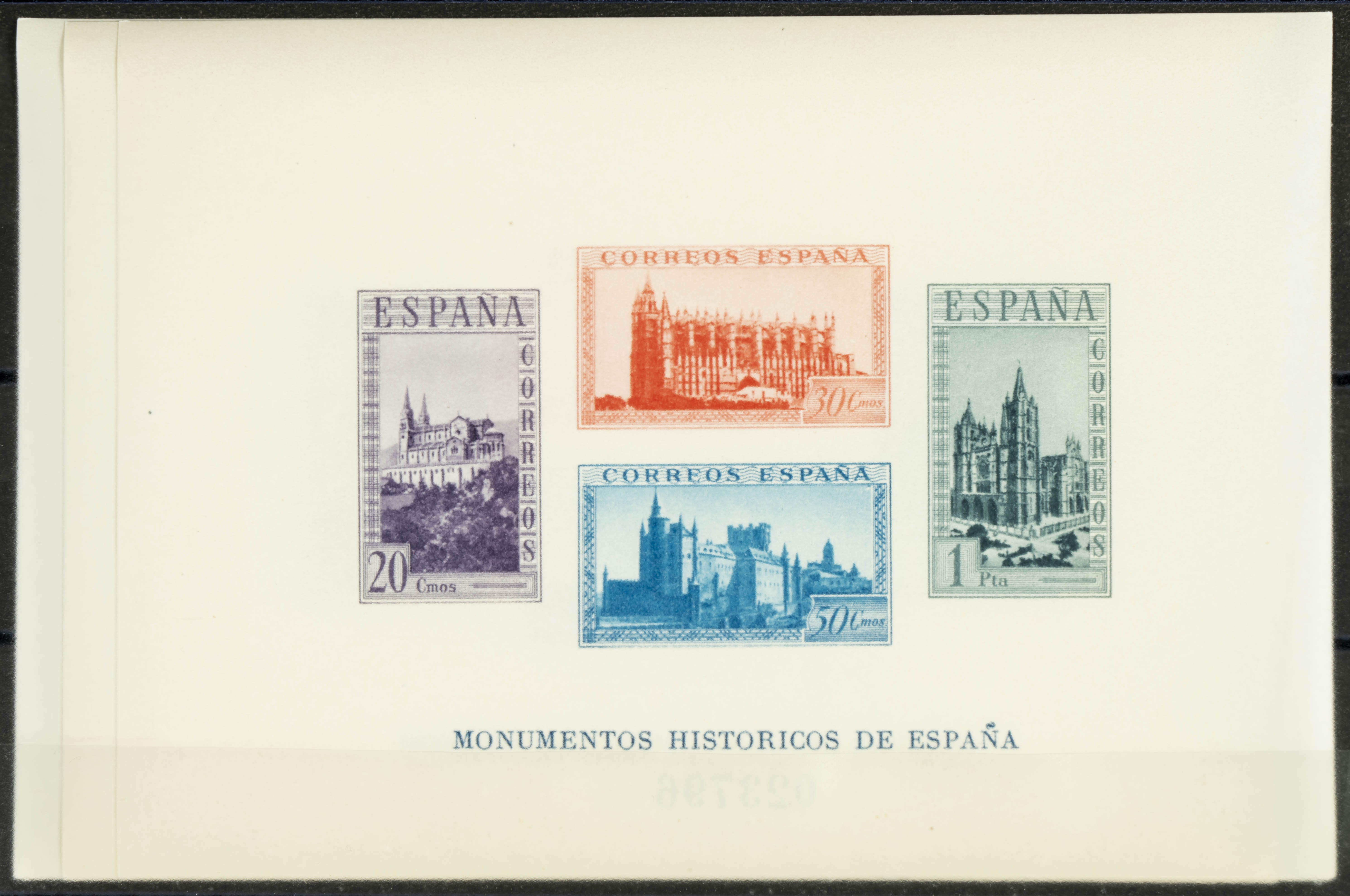 ★★ 848(3). 1938. Three imperforate souvenir sheets. Monuments. Magnificent. Edifil 2026: 540 Euros