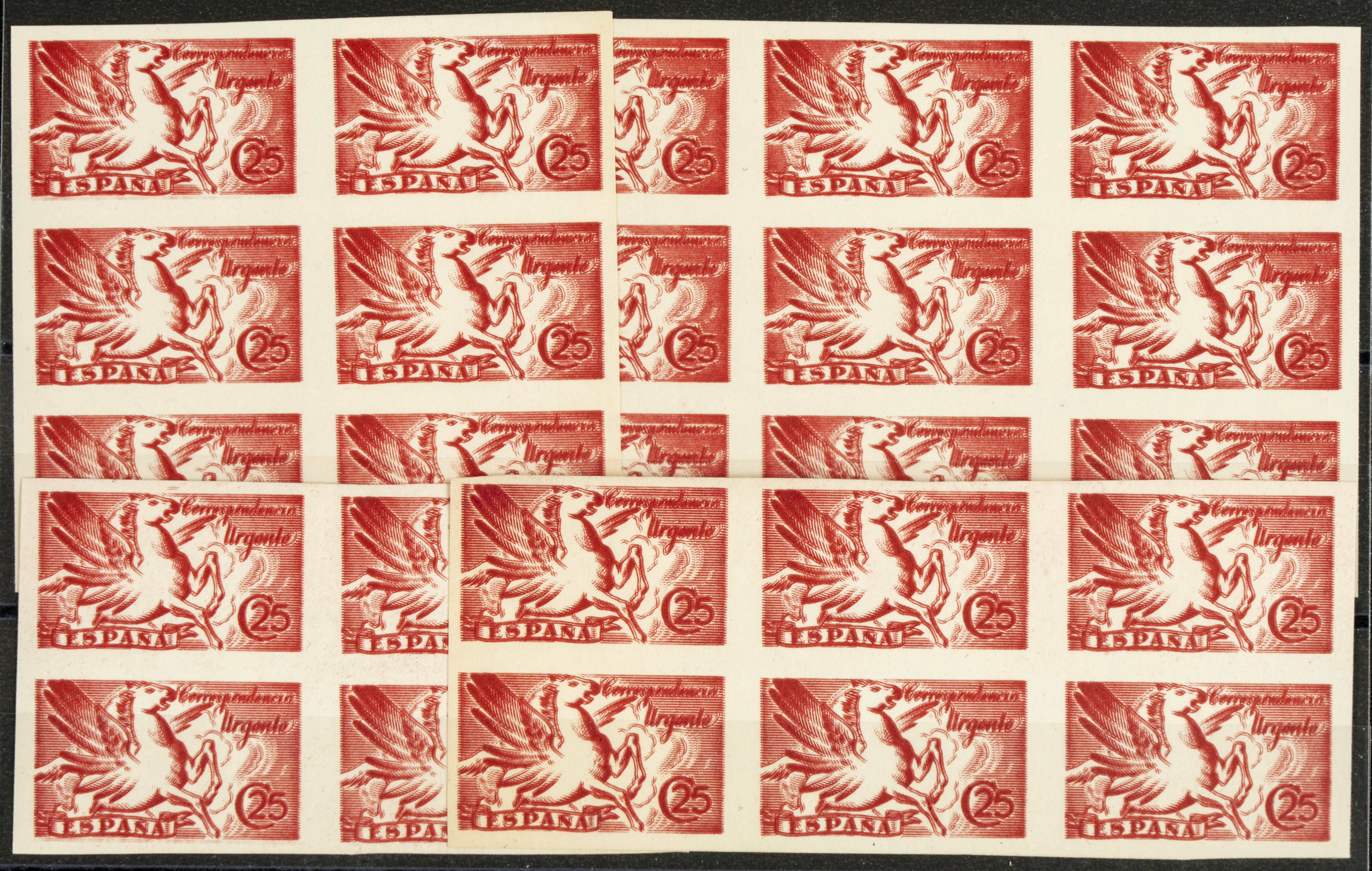 (★) 952eds(25). 1941. 25 cts carmine URGENT, twenty-five stamps. DOUBLE IMPRESSION and UNDERTAKEN. MAGNIFICENT AND RARE, NOT REVIEWED UNDERTAKEN.