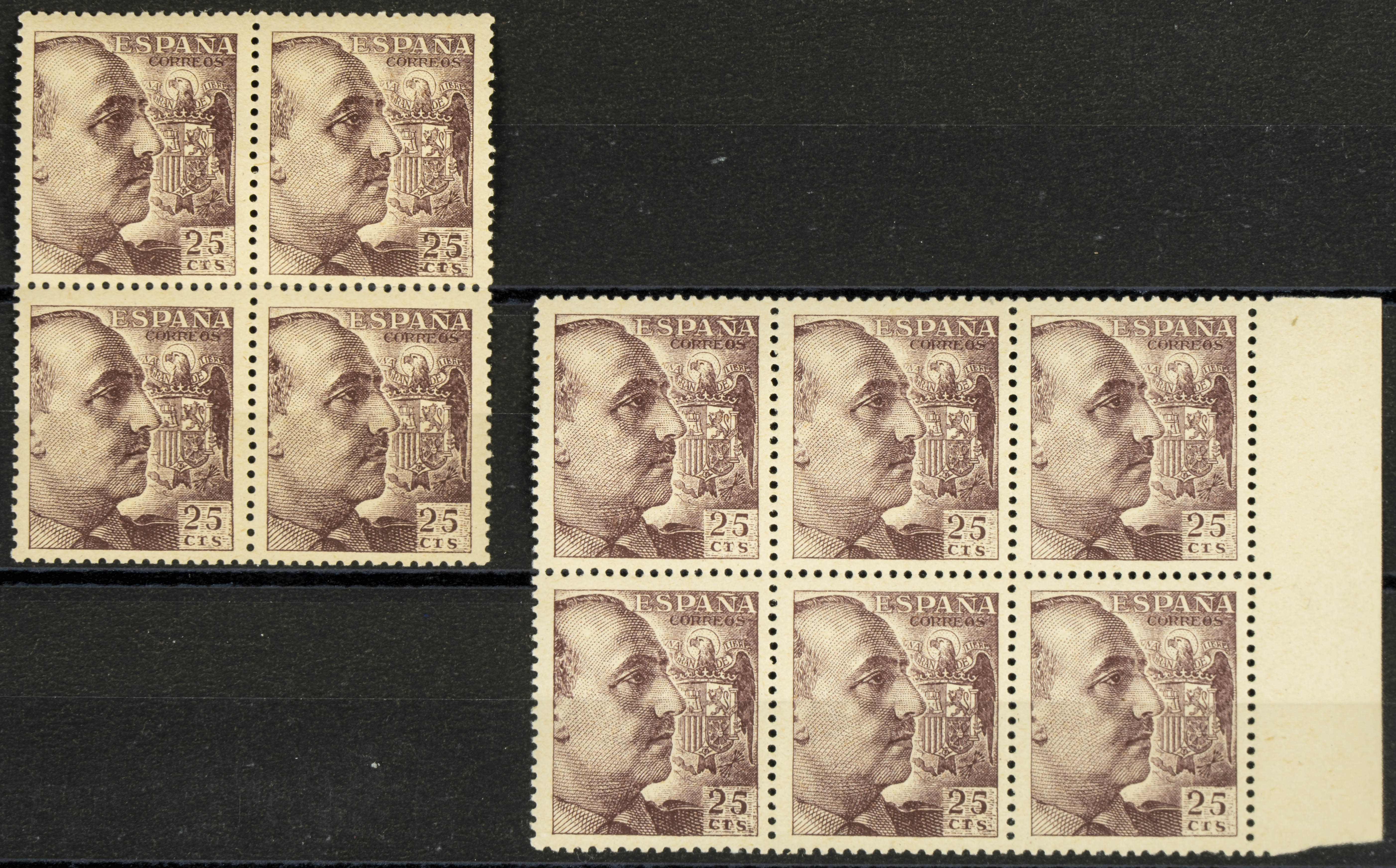 ★★ 1048A(10). 1950. 25 cts dark lilac, ten stamps. FRANCO (special edition). TO BE EXAMINED. Edifil 2026: 800 Euros