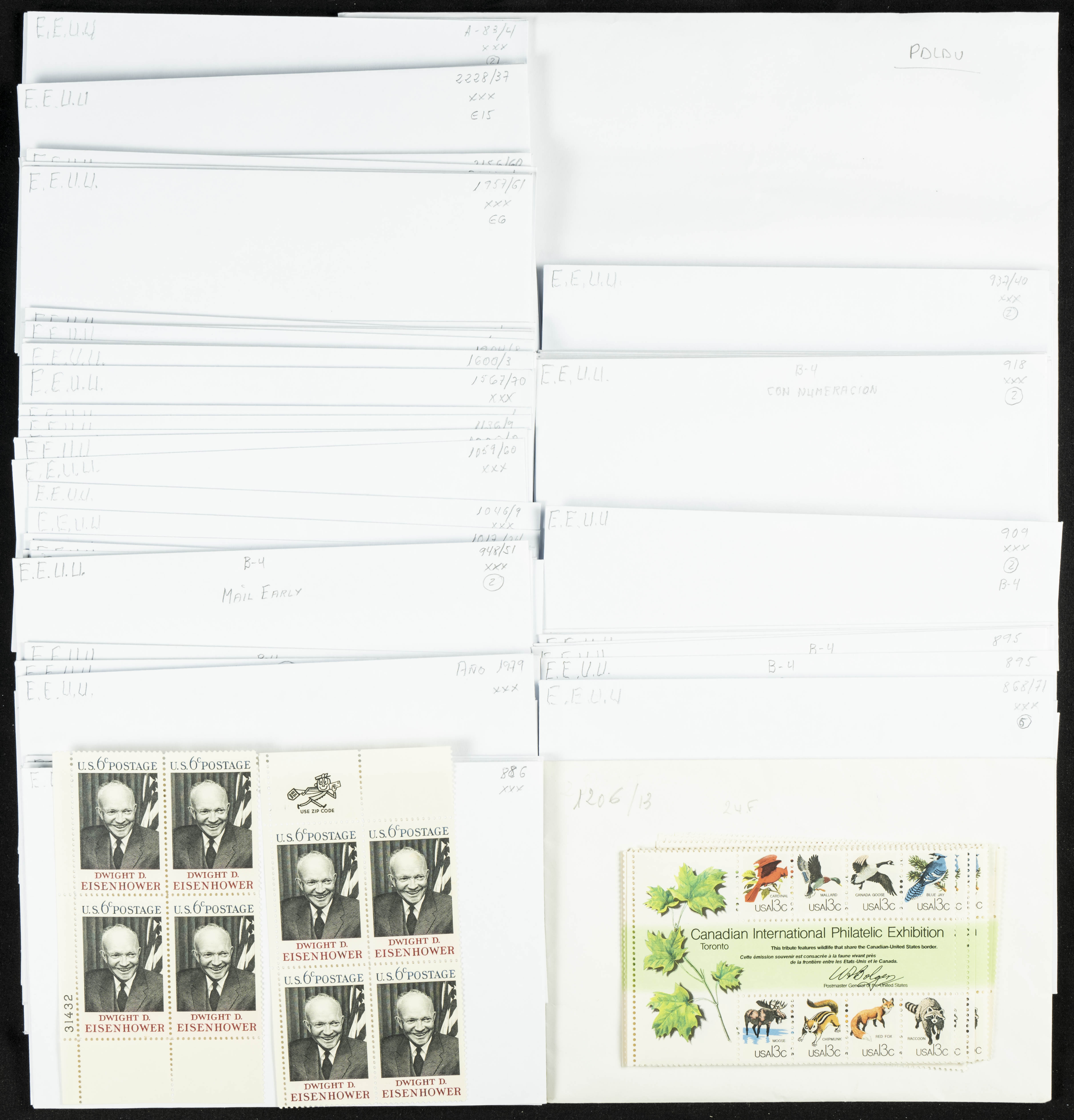 English ★★(1935ca). Interesting collection of complete US stamps and series from 1935 to 1998, in mint condition (some stamps with hinges), mostly organized in envelopes and cards with Yvert or Scott numbering. VERY HIGH FACE AND CATALOG VALUE. TO BE EXAMINED.