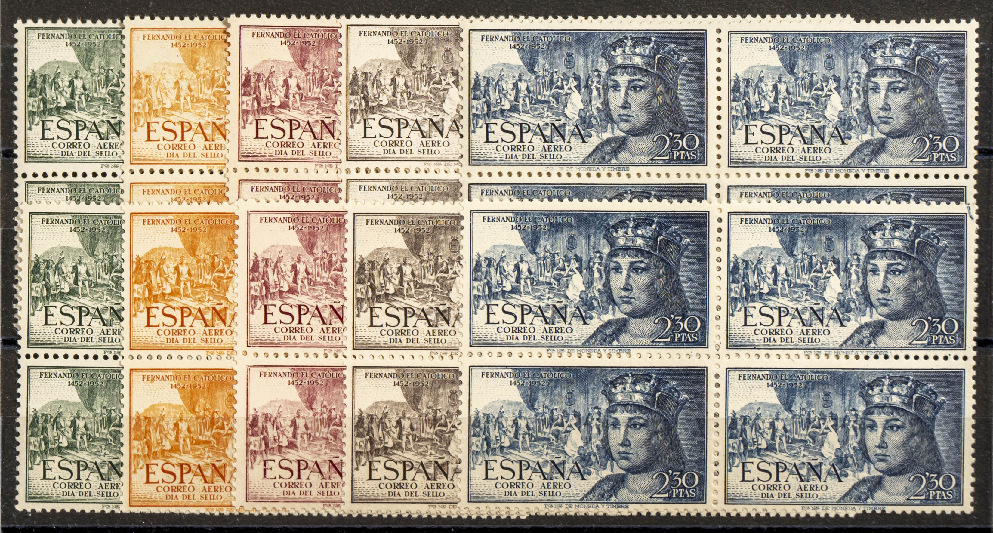 ★★ 1111/15(8). 1952. Eight complete series in blocks of four. FERNANDO (aerial) (excellent centering). MAGNIFICENT. Edifil 2026: +192 Euros