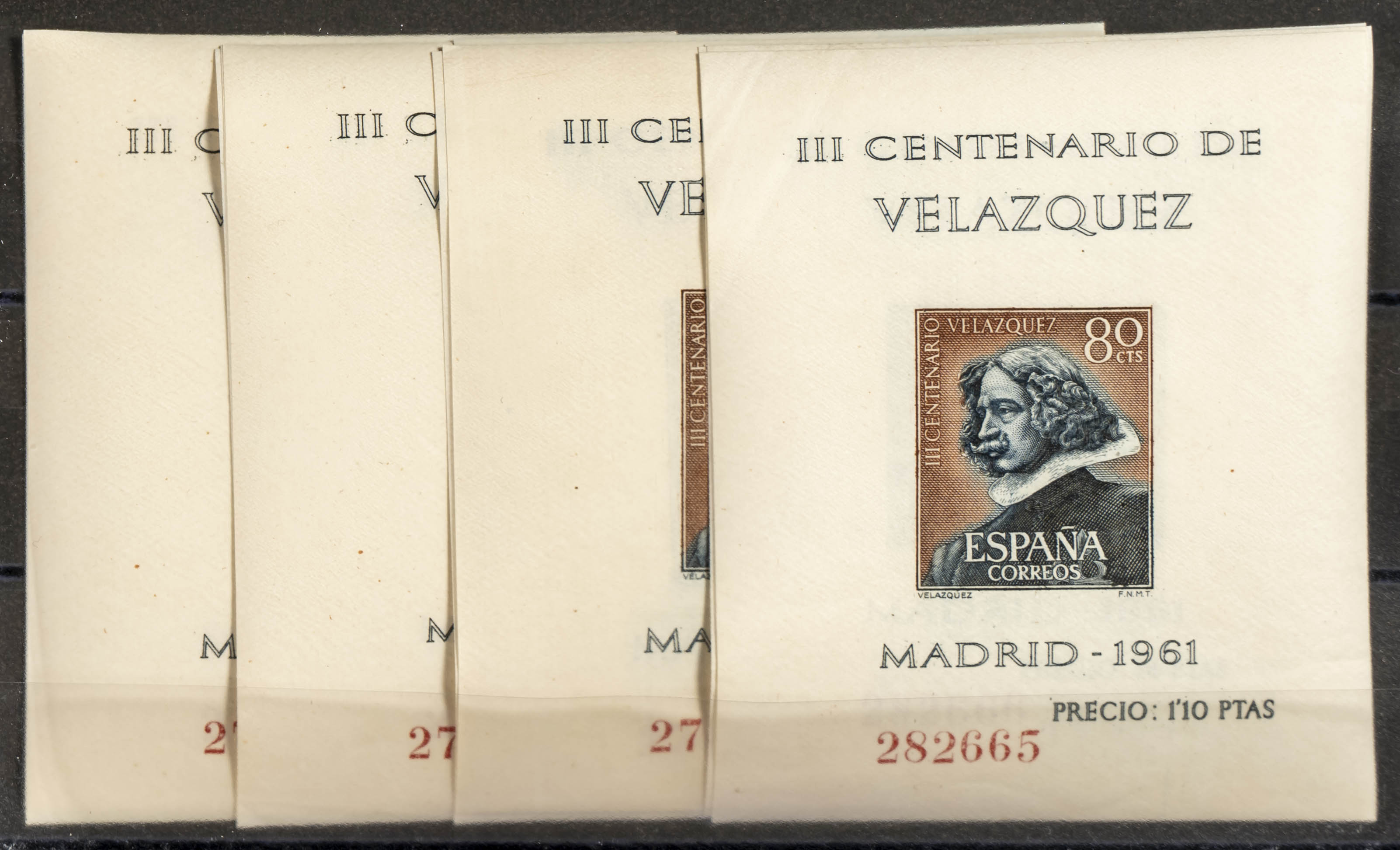 ★★ 1344/47(4). 1961. Four sets of souvenir sheets. VELAZQUEZ (same numbering) (good overall quality). TO BE EXAMINED. Edifil 2026: +96 Euros