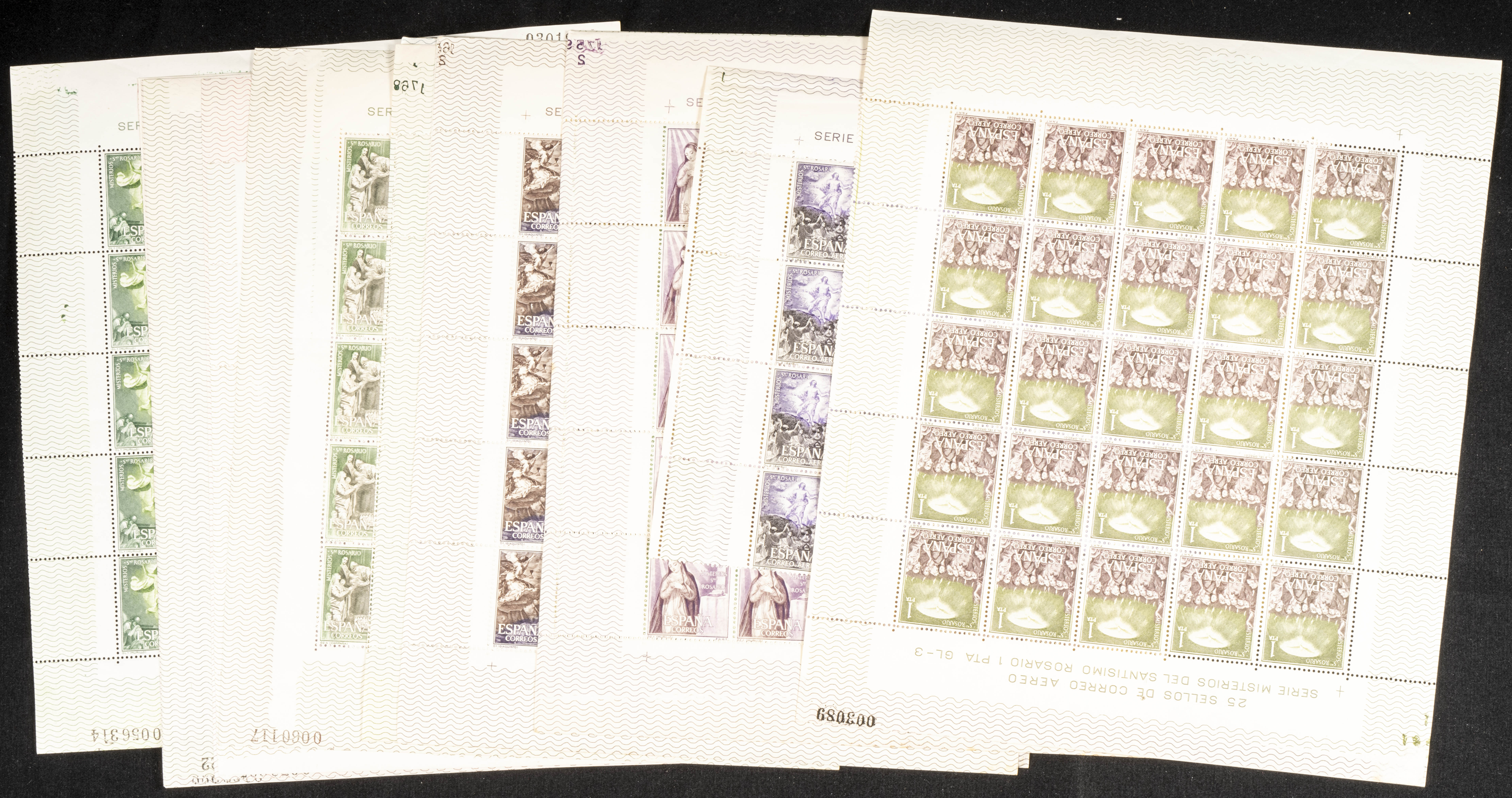 English ★★ 1463/77(25). 1962. Twenty-five complete series, in full sheets (except for the 25 cts sheet, which has a separate column but retains all its edges). ROSARY (good quality overall). TO BE EXAMINED. Edifil 2026: 250 Euros