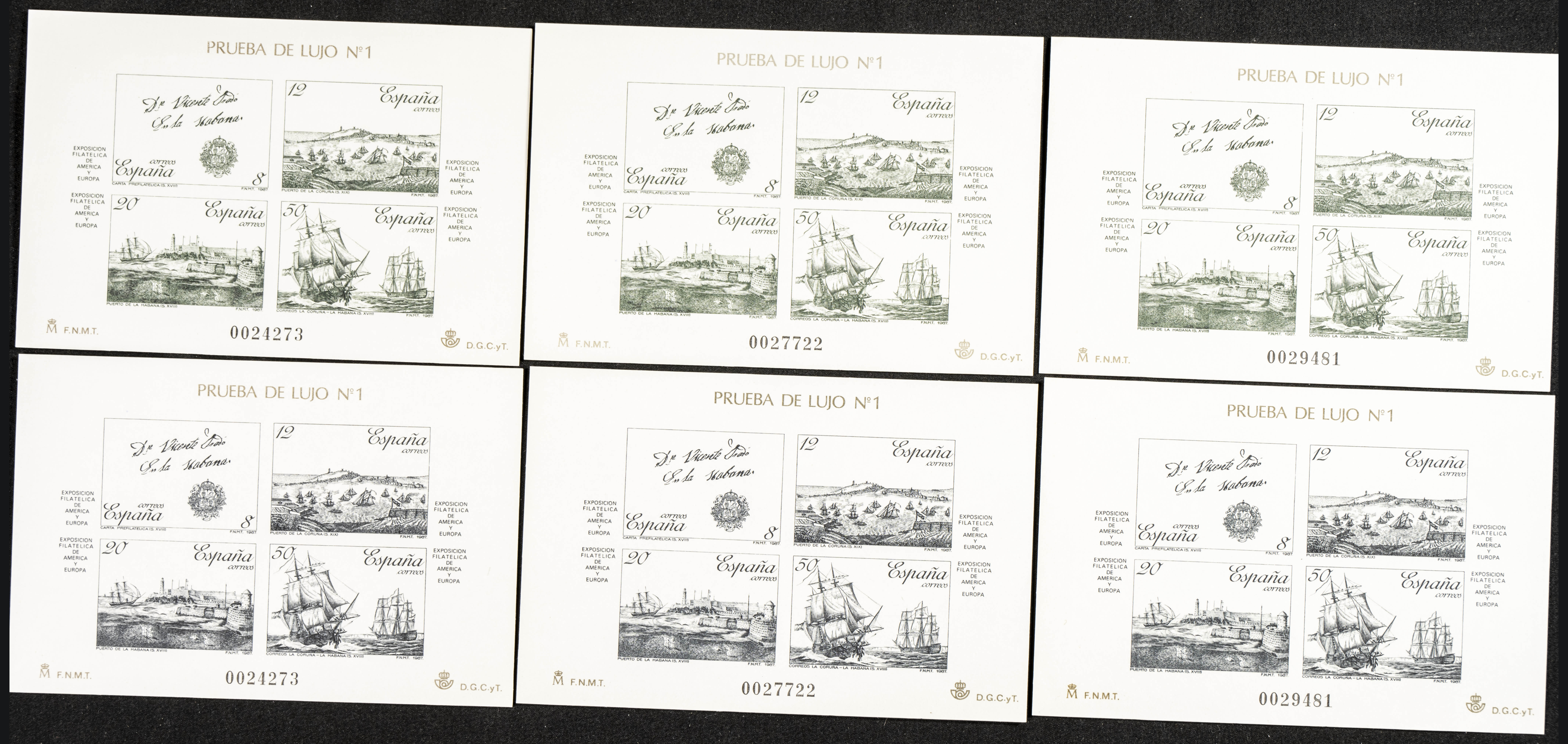 ★★ 12/13P(3). 1987. Three sets of Deluxe Tests. ESPAMER 87. TO BE EXAMINED. Edifil 2026: 120 Euros