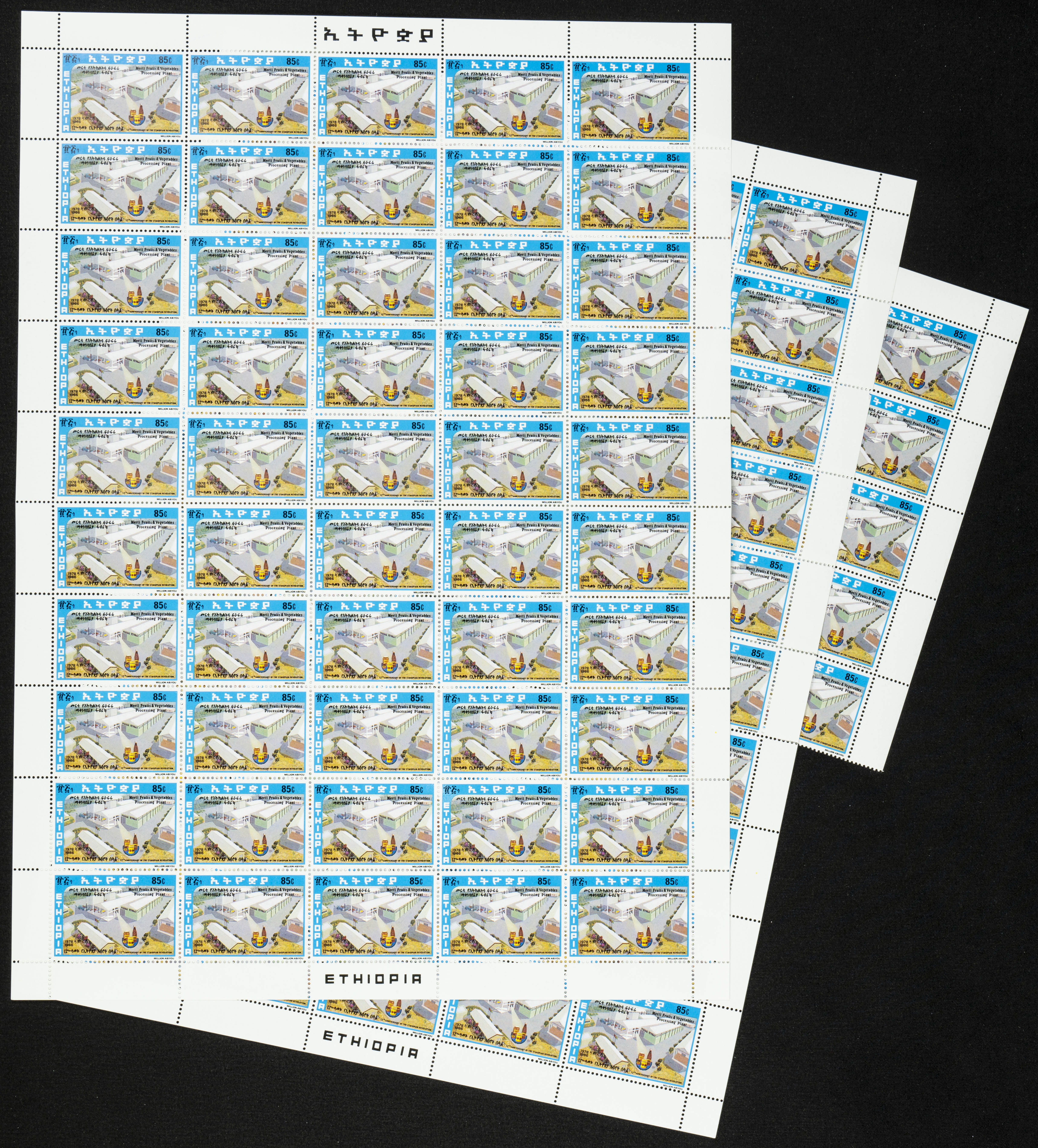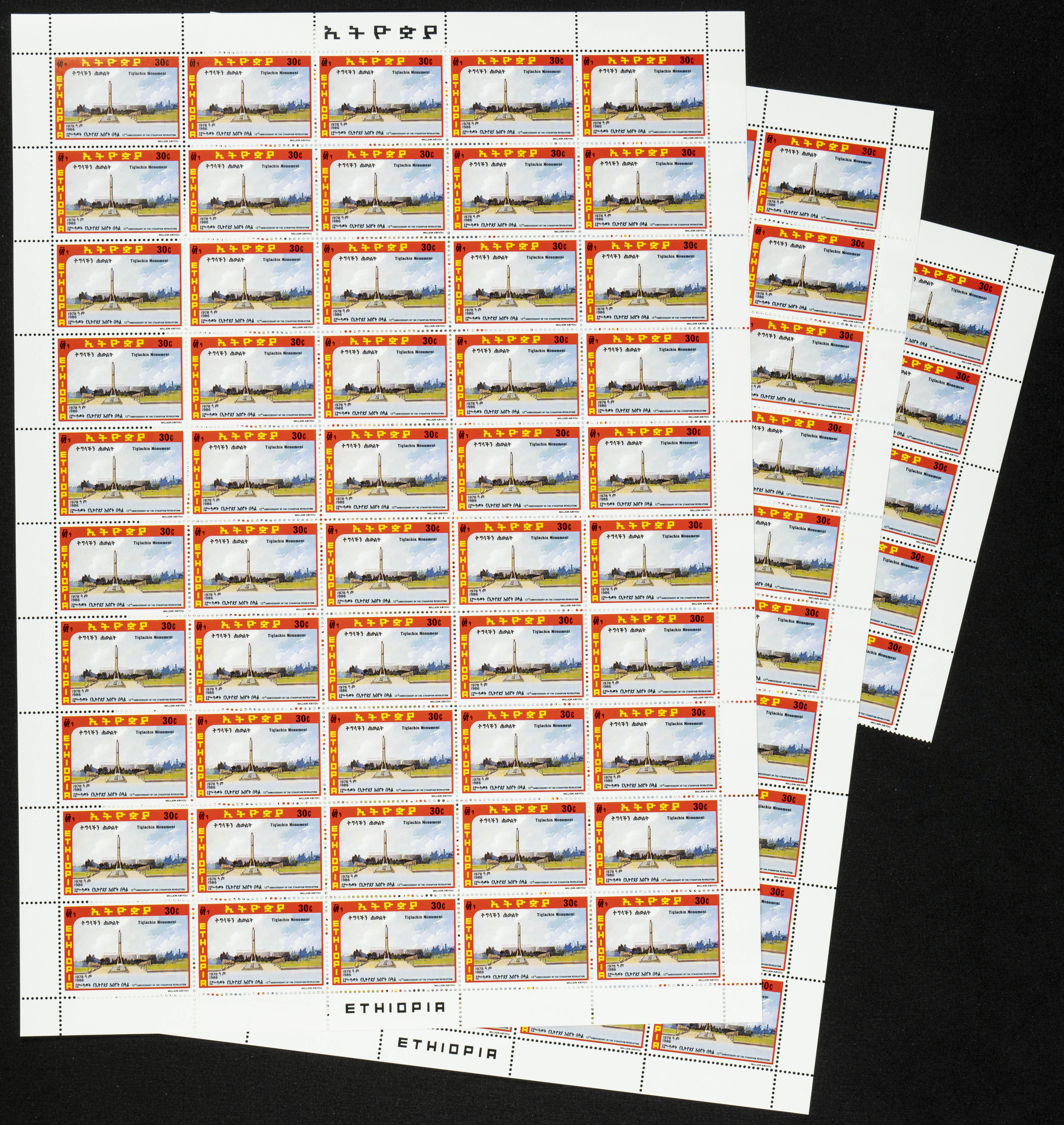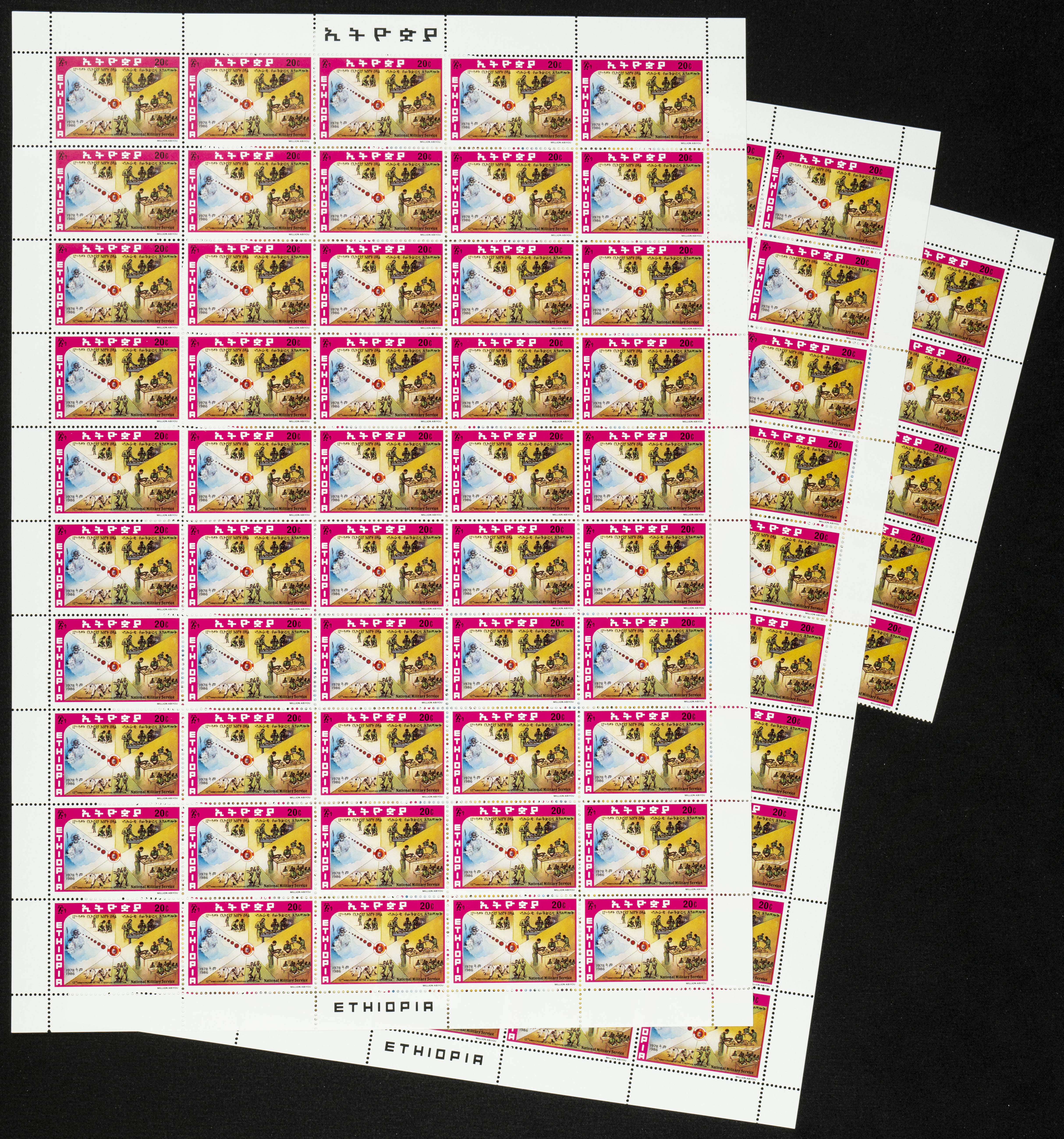 English Yvert 1159/62(125). 1986. Set of one hundred and twenty-five complete series of Ethiopian 12th Anniversary Revolution 1986 stamps, in mint condition. TO BE EXAMINED. Yvert 2018: 718 Euros