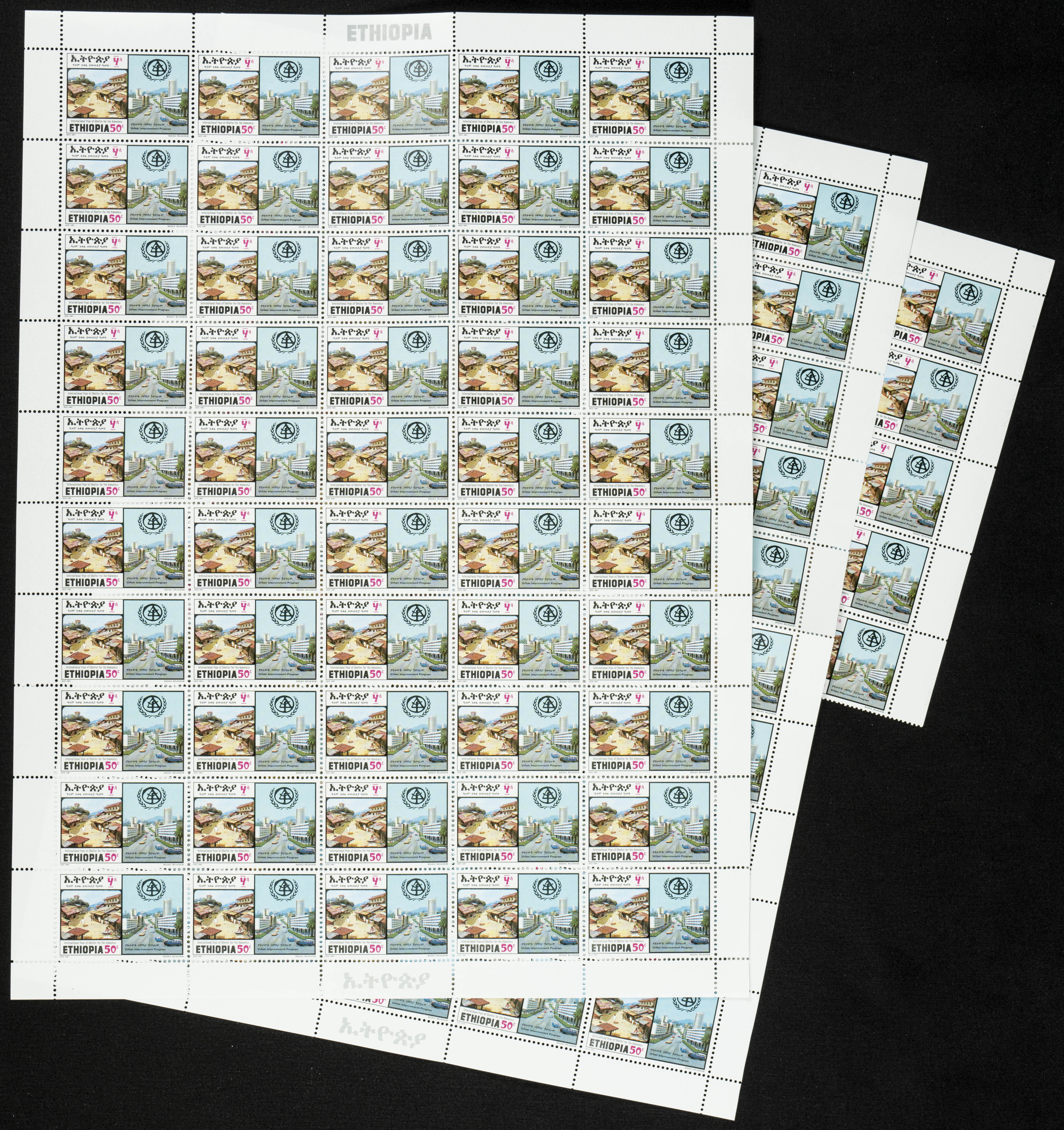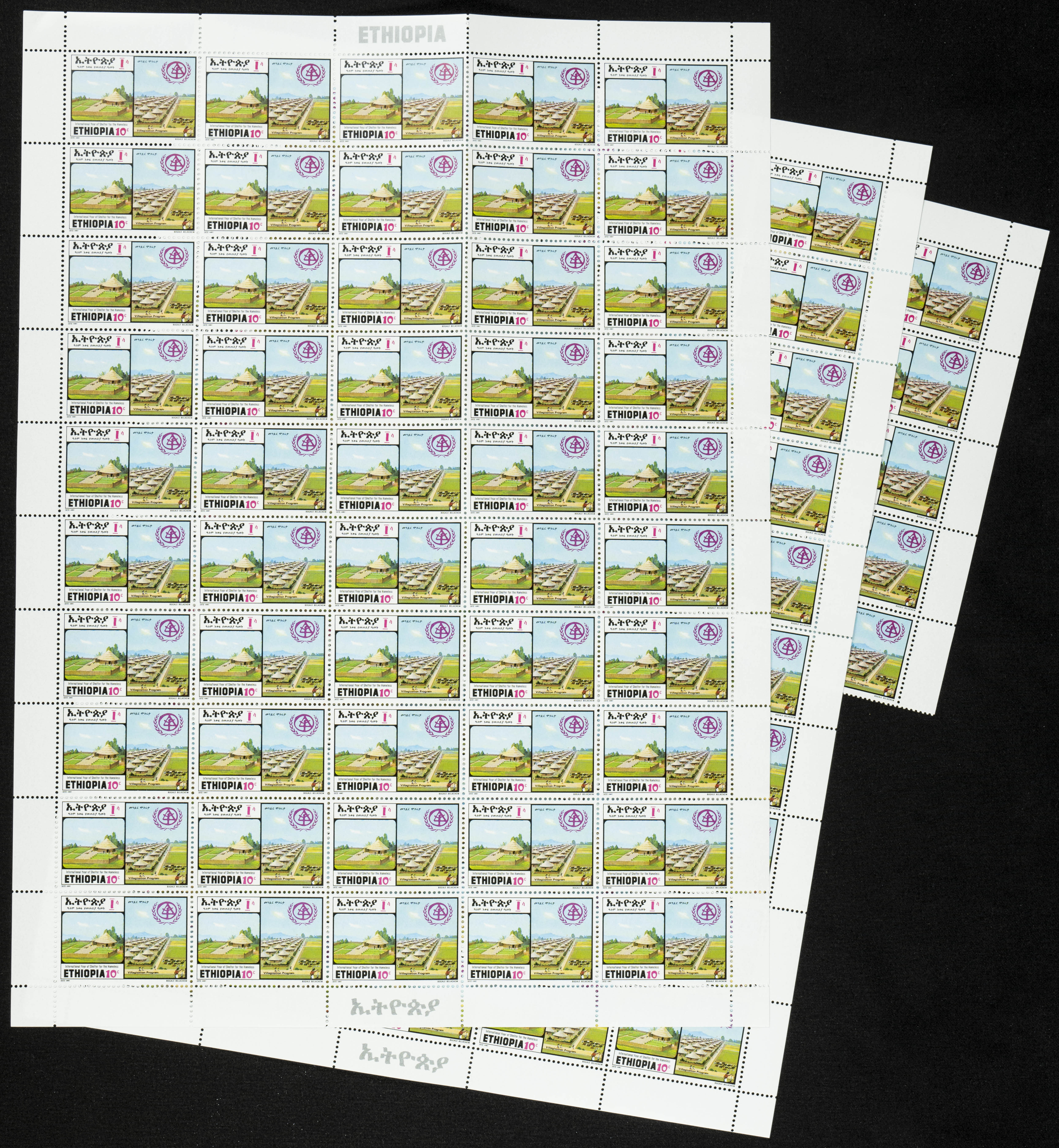 English Yvert 1200/03(125). 1988. Set of one hundred and twenty-five complete series from Ethiopia, HOUSING YEAR 1988, in mint condition. TO BE EXAMINED. Yvert 2018: 625 Euros