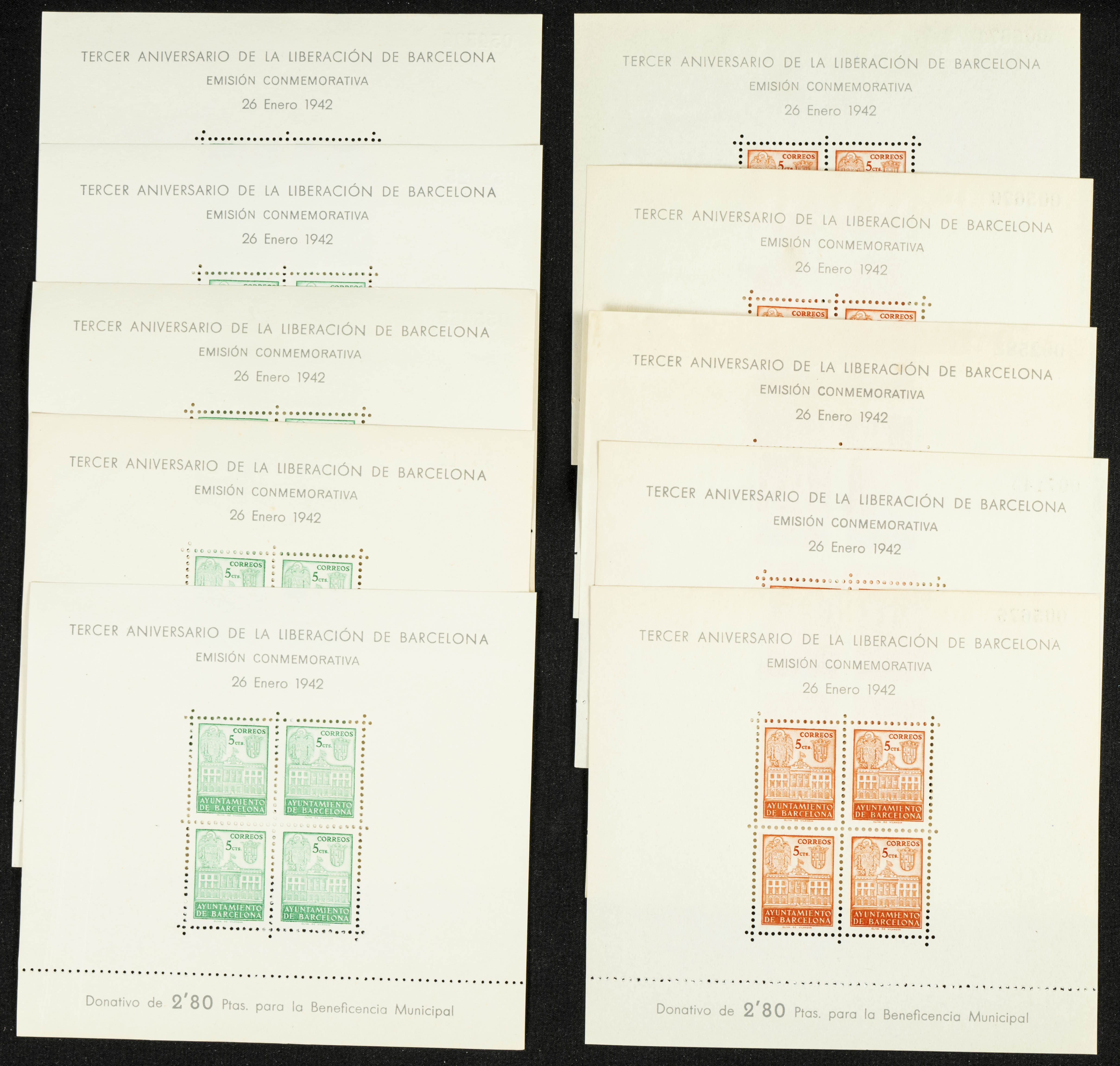 ★★ 38/39(5). 1942. Five sets of souvenir sheets from the Barcelona City Council, commemorating the Third Anniversary of the Liberation of Barcelona. For examination. Edifil 2026: 430 Euros