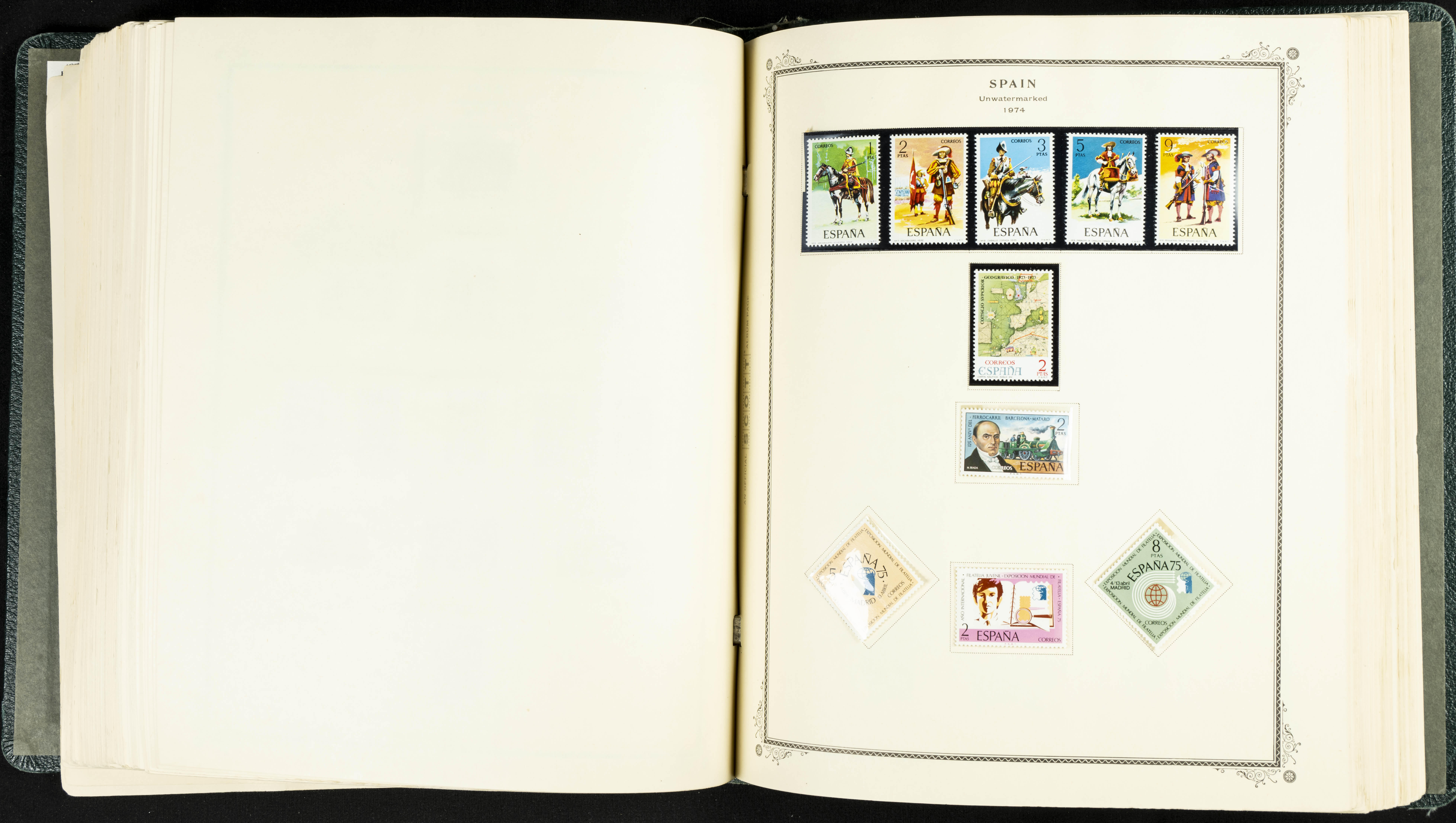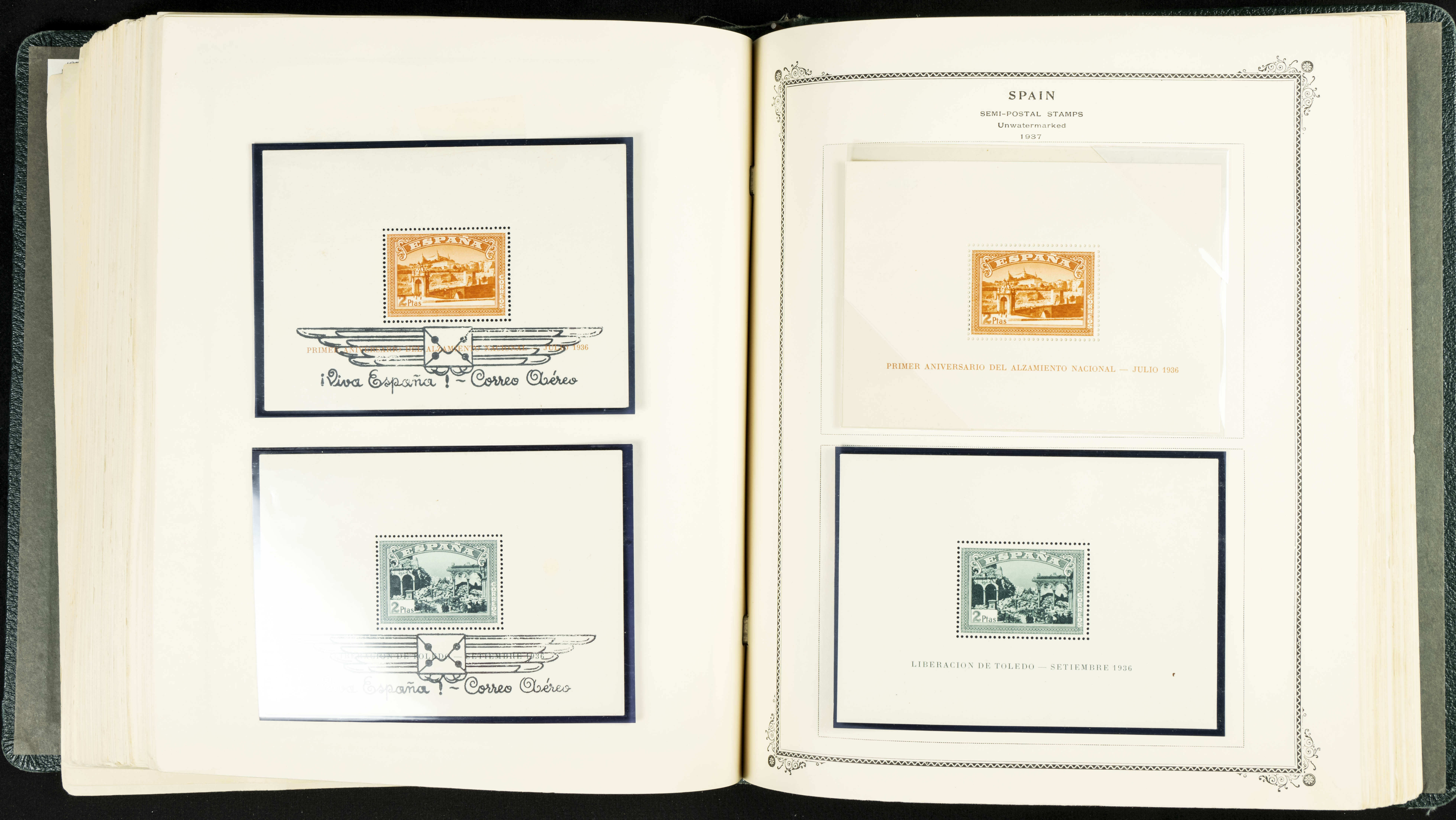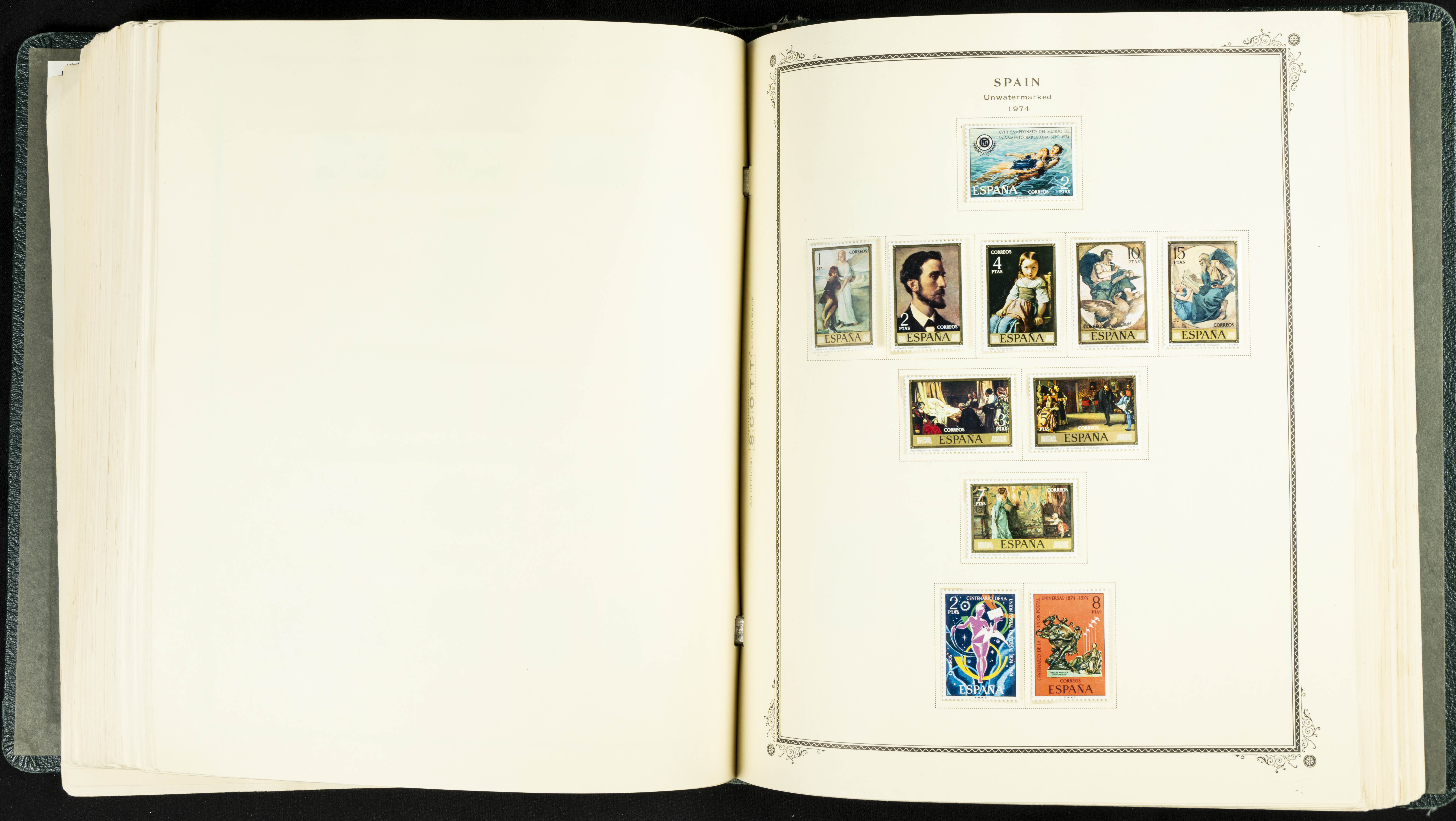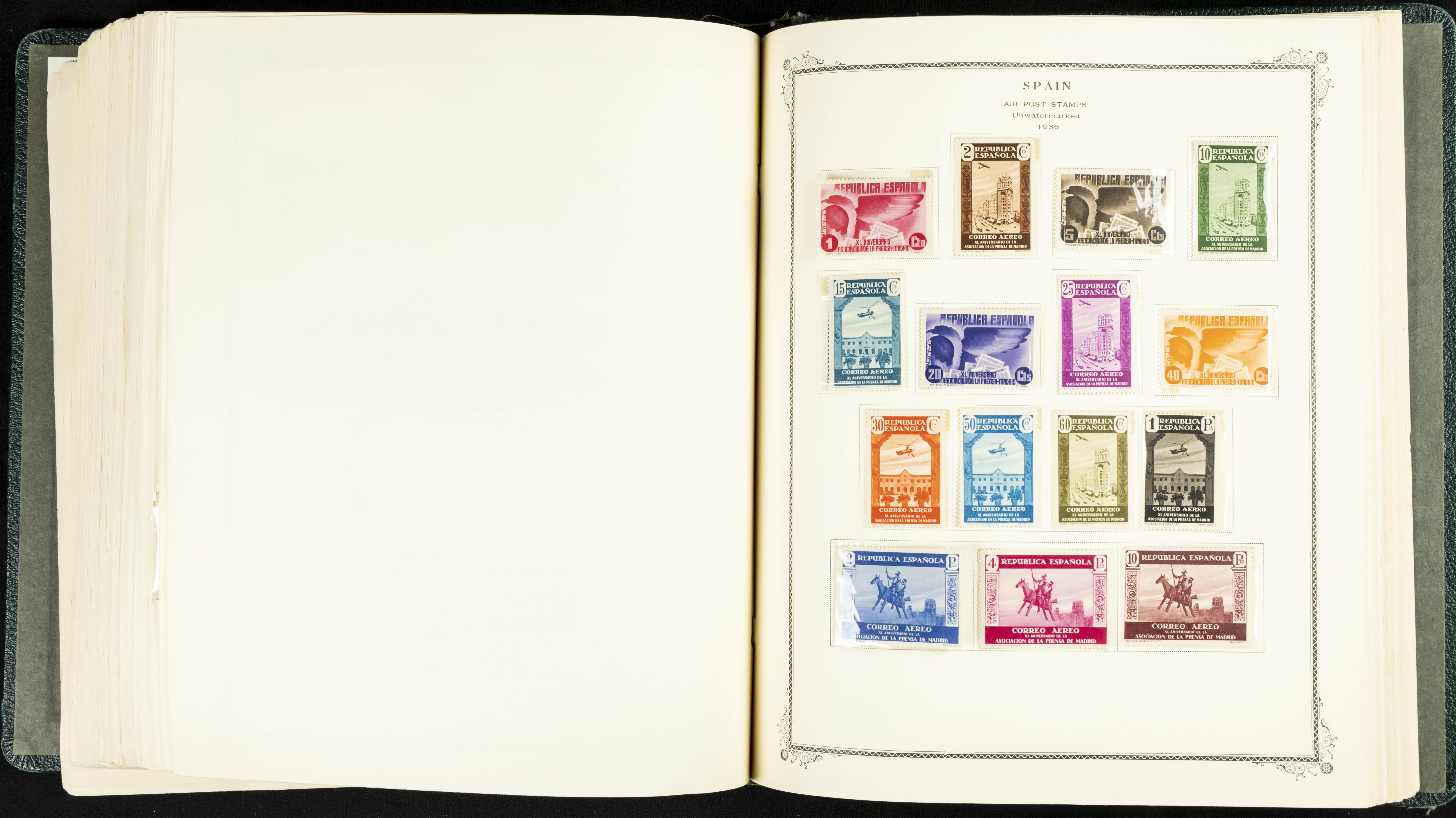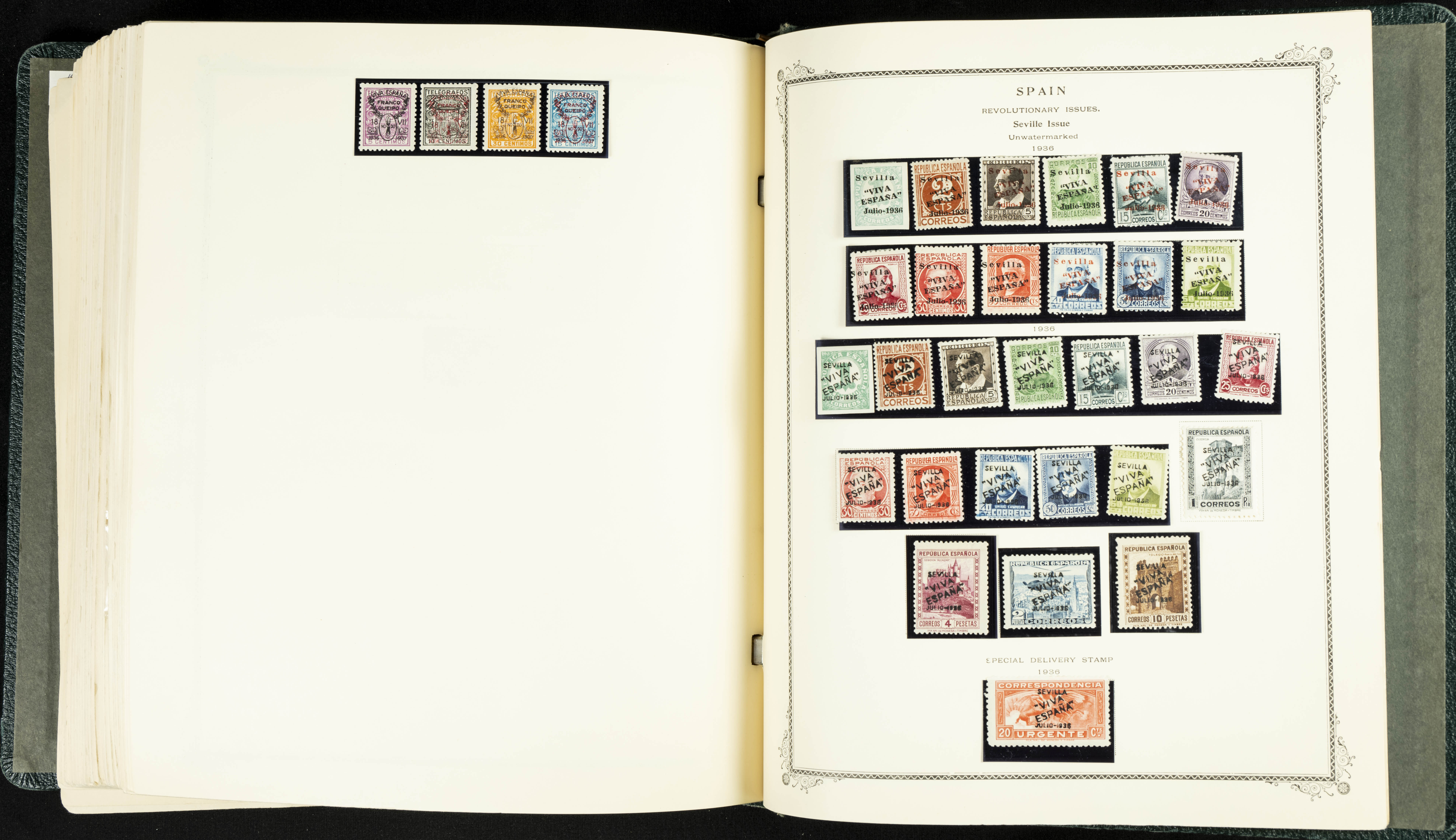 ★/(1850ca). A very interesting collection between 1850 and 1974, in mint and used coins. The classic part is very well represented, and most of the coins are used, including a complete series from 1850, 1851, 1852, and 1853, missing the 2 reales, 2 cuartos (green), and 1 real (blue) coins from 1854. Also included are most of the 19 cuartos, 4 pesetas from Amadeo and the First Republic, and most of the coins from 1876 to 1889. From 1901 onwards, everything is mint, including series such as Cadet, Quixote, Medallion, UPU, Red Cross (all of them), Railways, Montserrat (duplicate with A000000), Personalities, Militia, Granada, Franco (all of them), Pilar, "Falla and Zuloaga", Centenary, etc. It includes numerous varieties, imperforate, color changes, and some Patriotic Issues. EXTREMELY HIGH CATALOG VALUE. MUST BE EXAMINED.