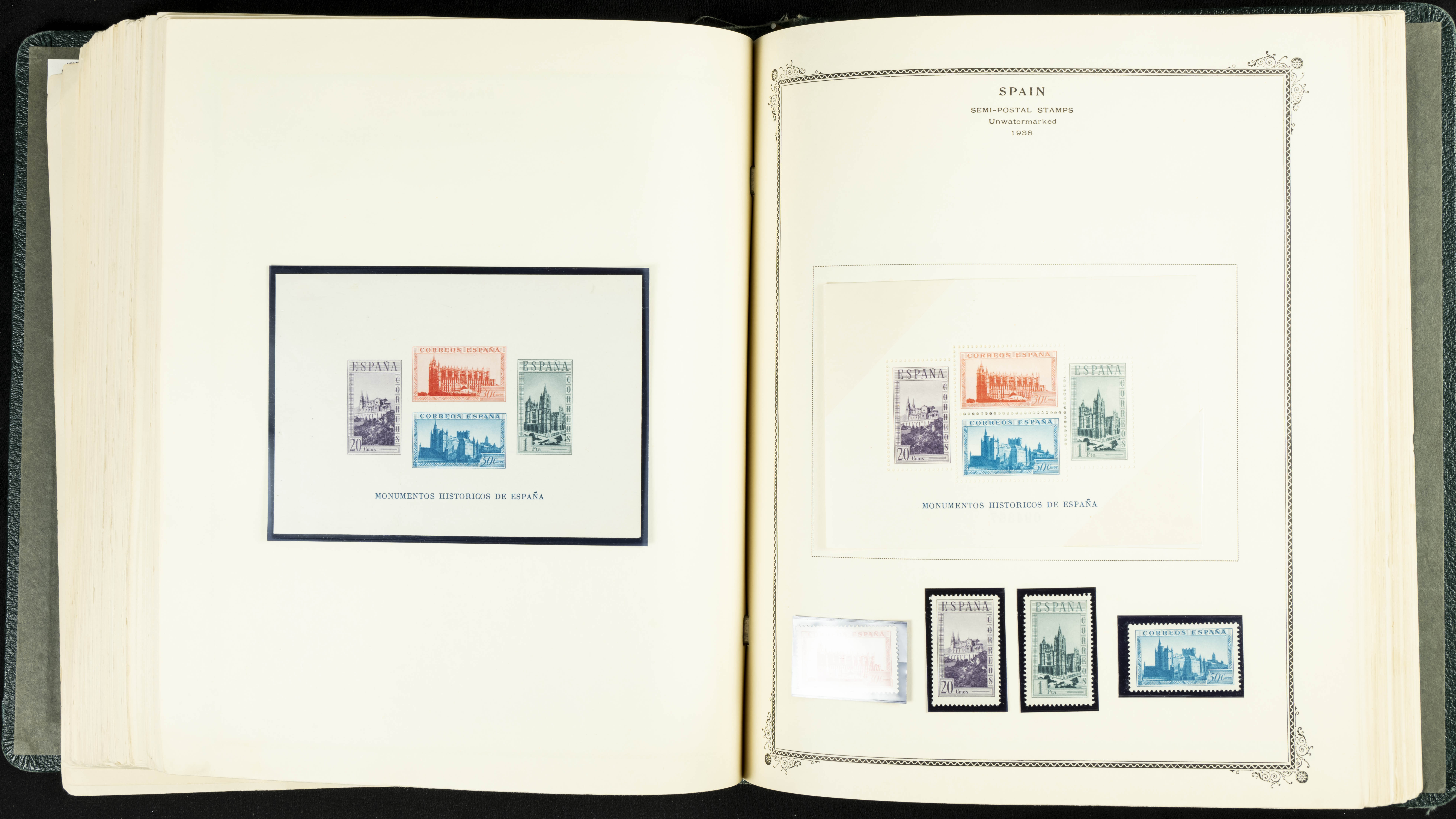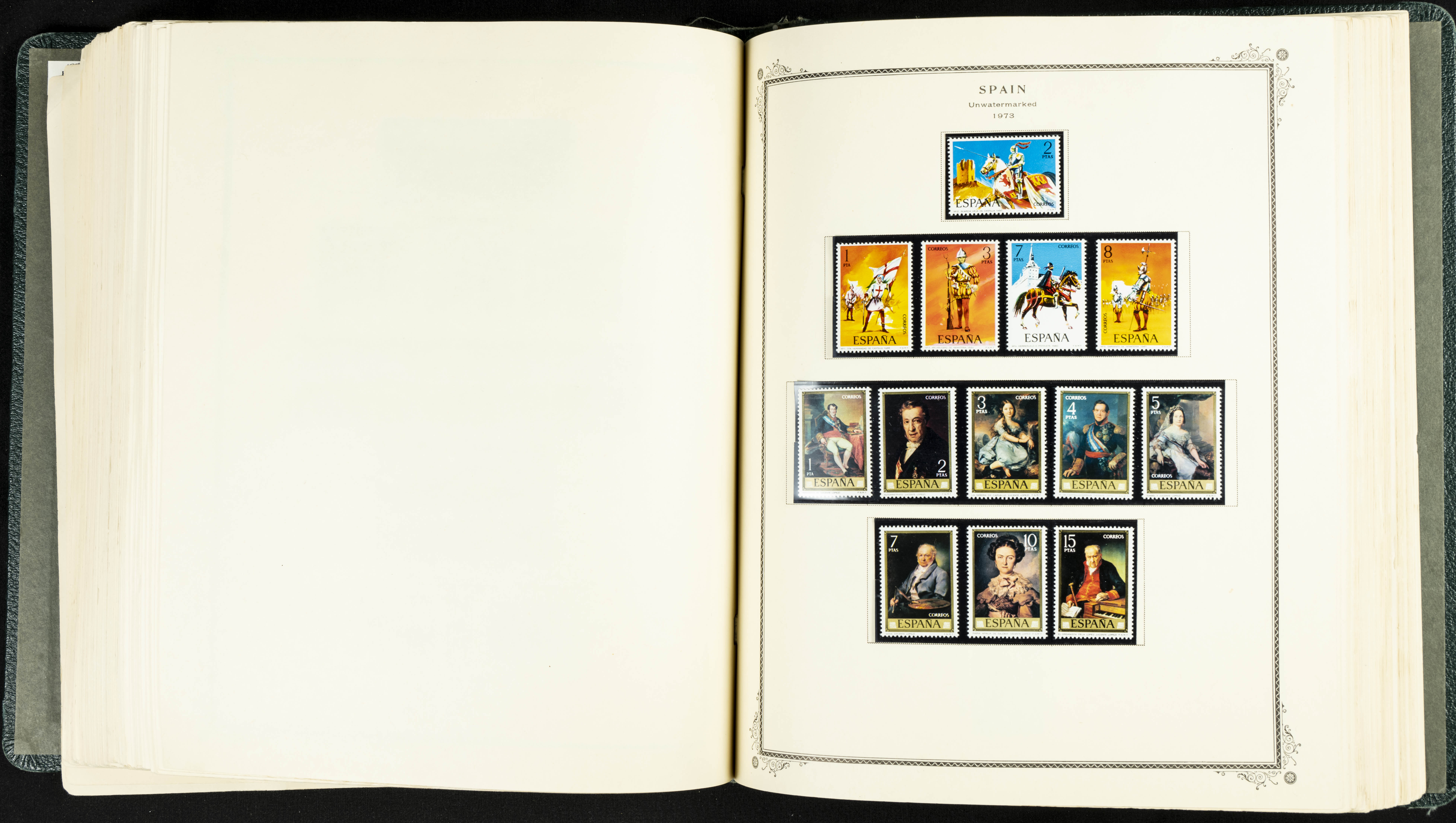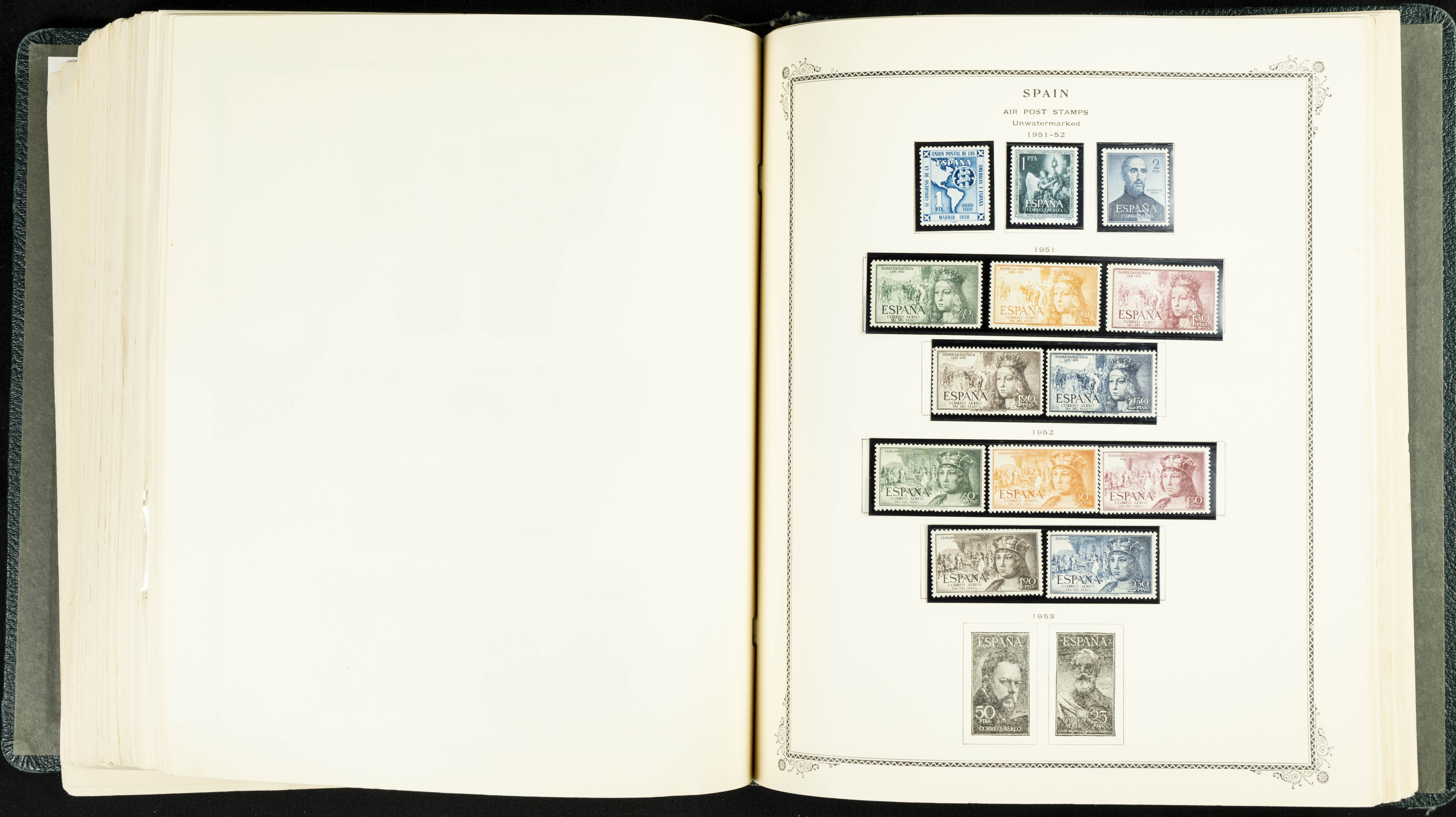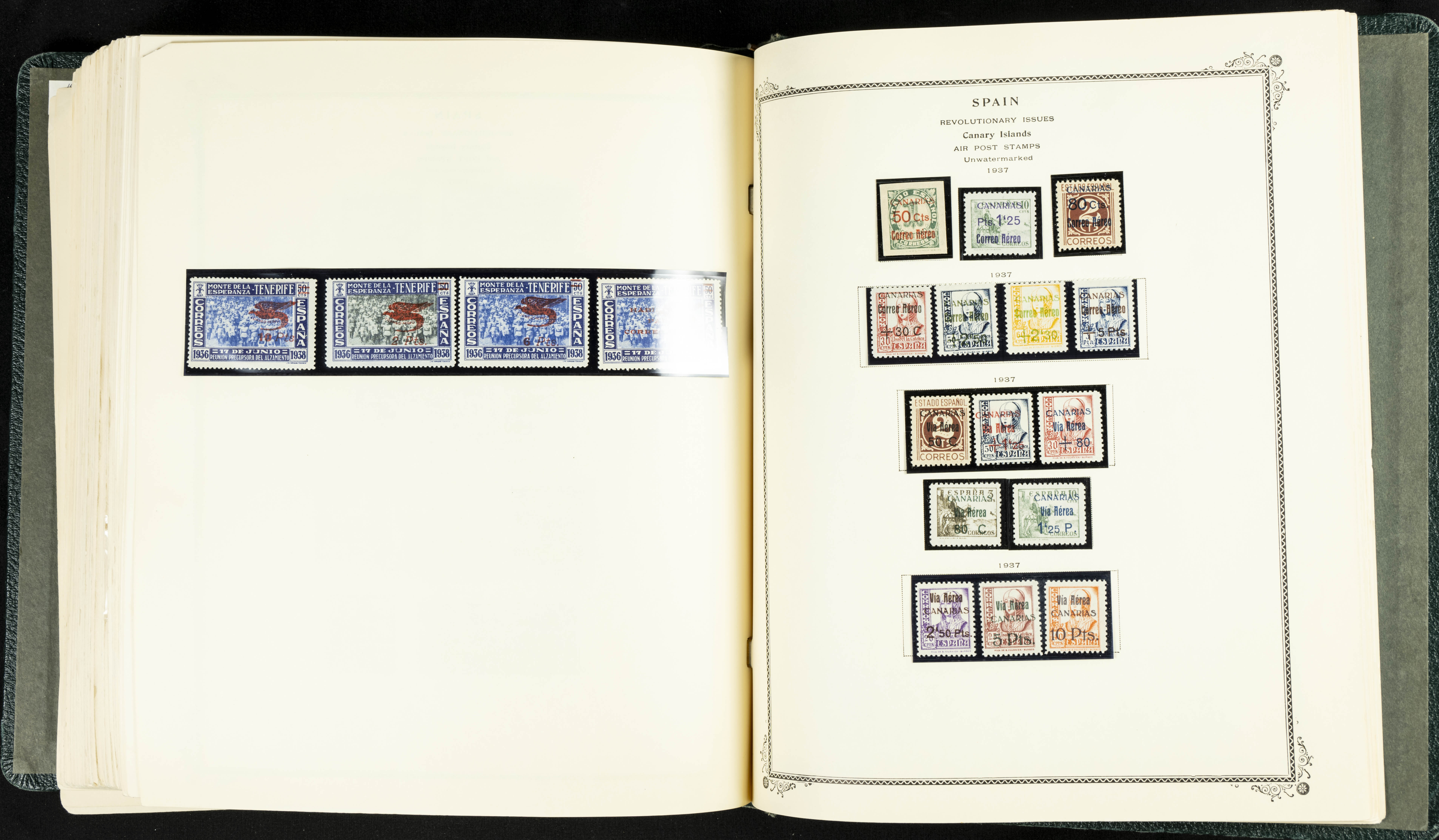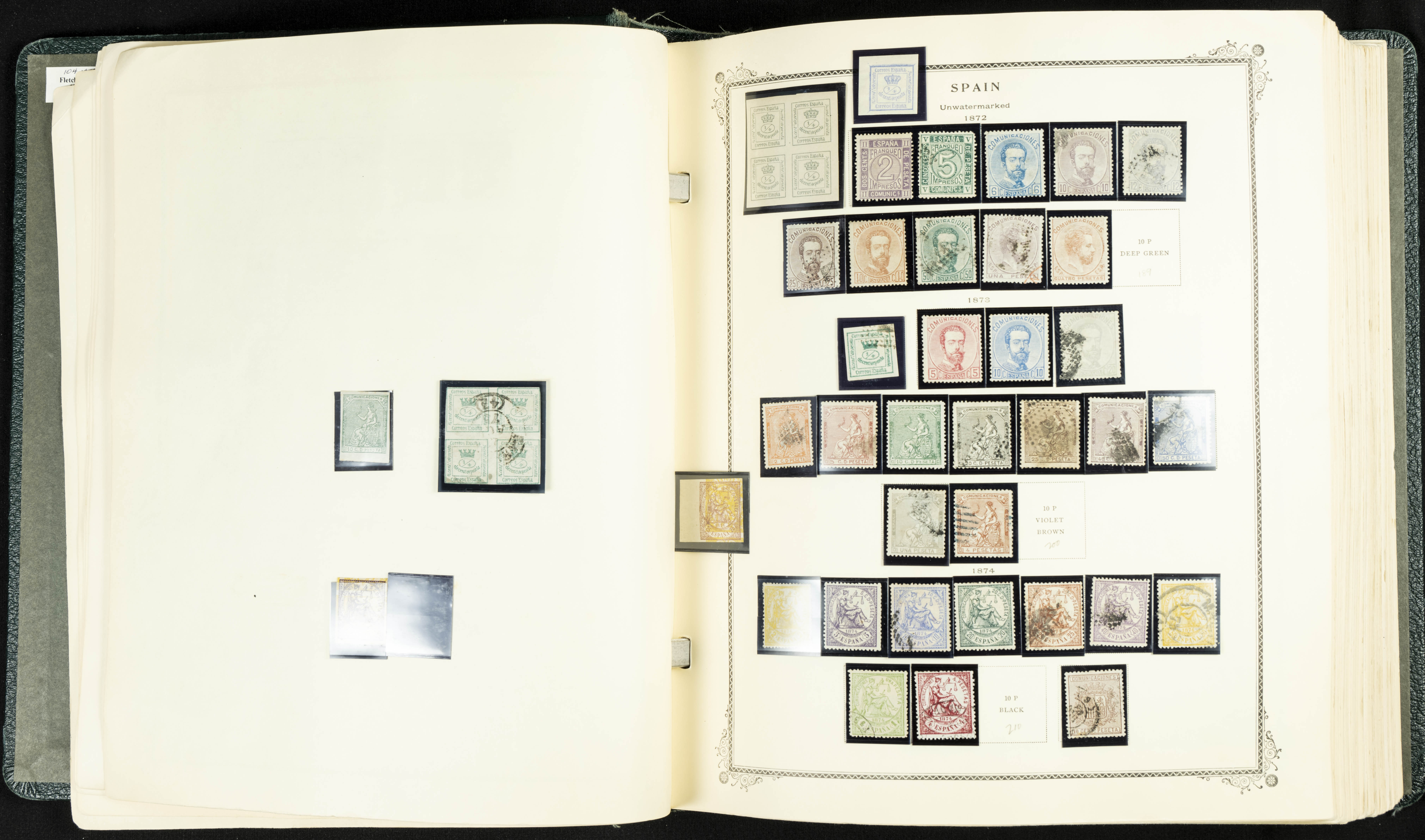 ★/(1850ca). A very interesting collection between 1850 and 1974, in mint and used coins. The classic part is very well represented, and most of the coins are used, including a complete series from 1850, 1851, 1852, and 1853, missing the 2 reales, 2 cuartos (green), and 1 real (blue) coins from 1854. Also included are most of the 19 cuartos, 4 pesetas from Amadeo and the First Republic, and most of the coins from 1876 to 1889. From 1901 onwards, everything is mint, including series such as Cadet, Quixote, Medallion, UPU, Red Cross (all of them), Railways, Montserrat (duplicate with A000000), Personalities, Militia, Granada, Franco (all of them), Pilar, "Falla and Zuloaga", Centenary, etc. It includes numerous varieties, imperforate, color changes, and some Patriotic Issues. EXTREMELY HIGH CATALOG VALUE. MUST BE EXAMINED.