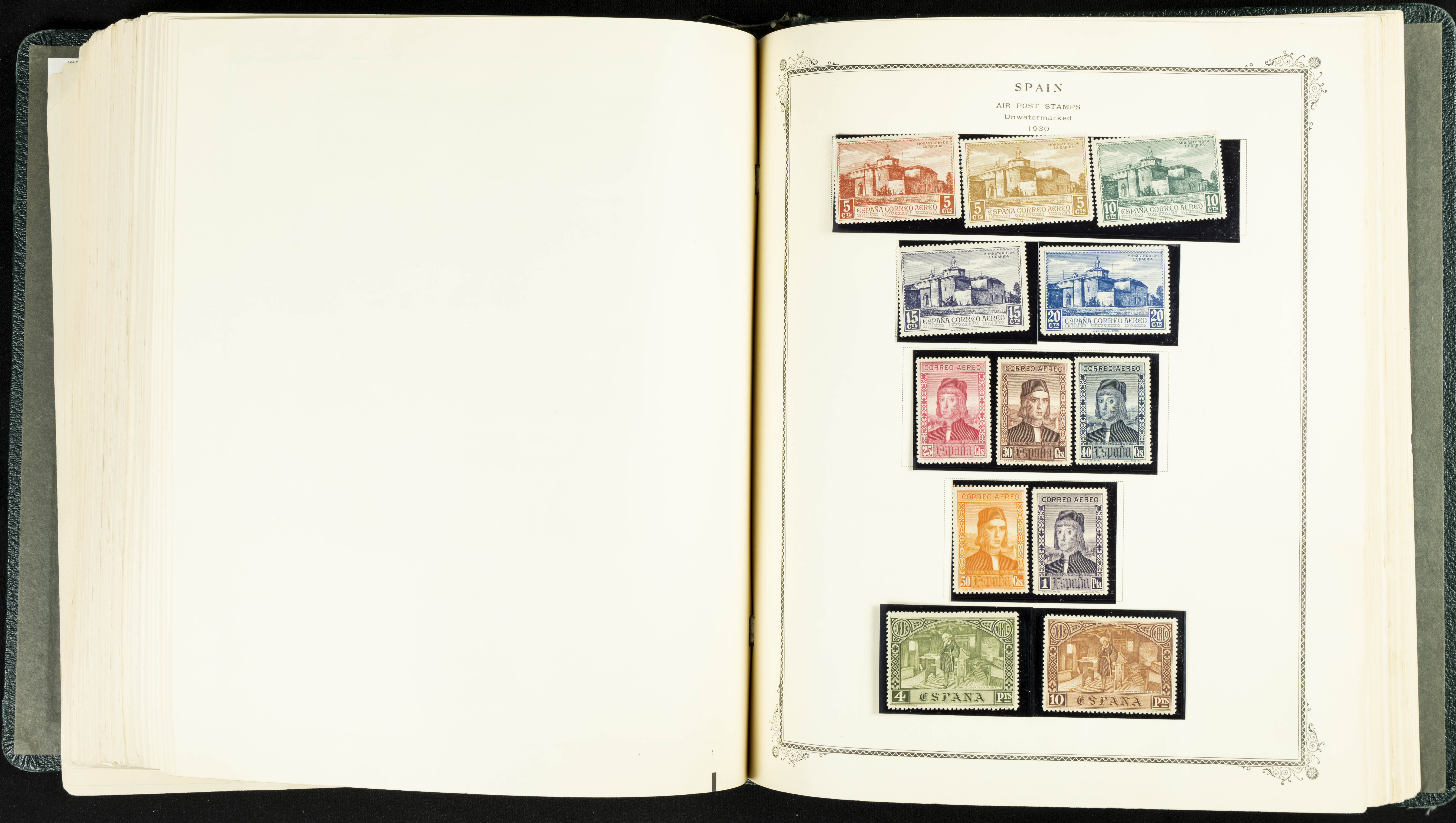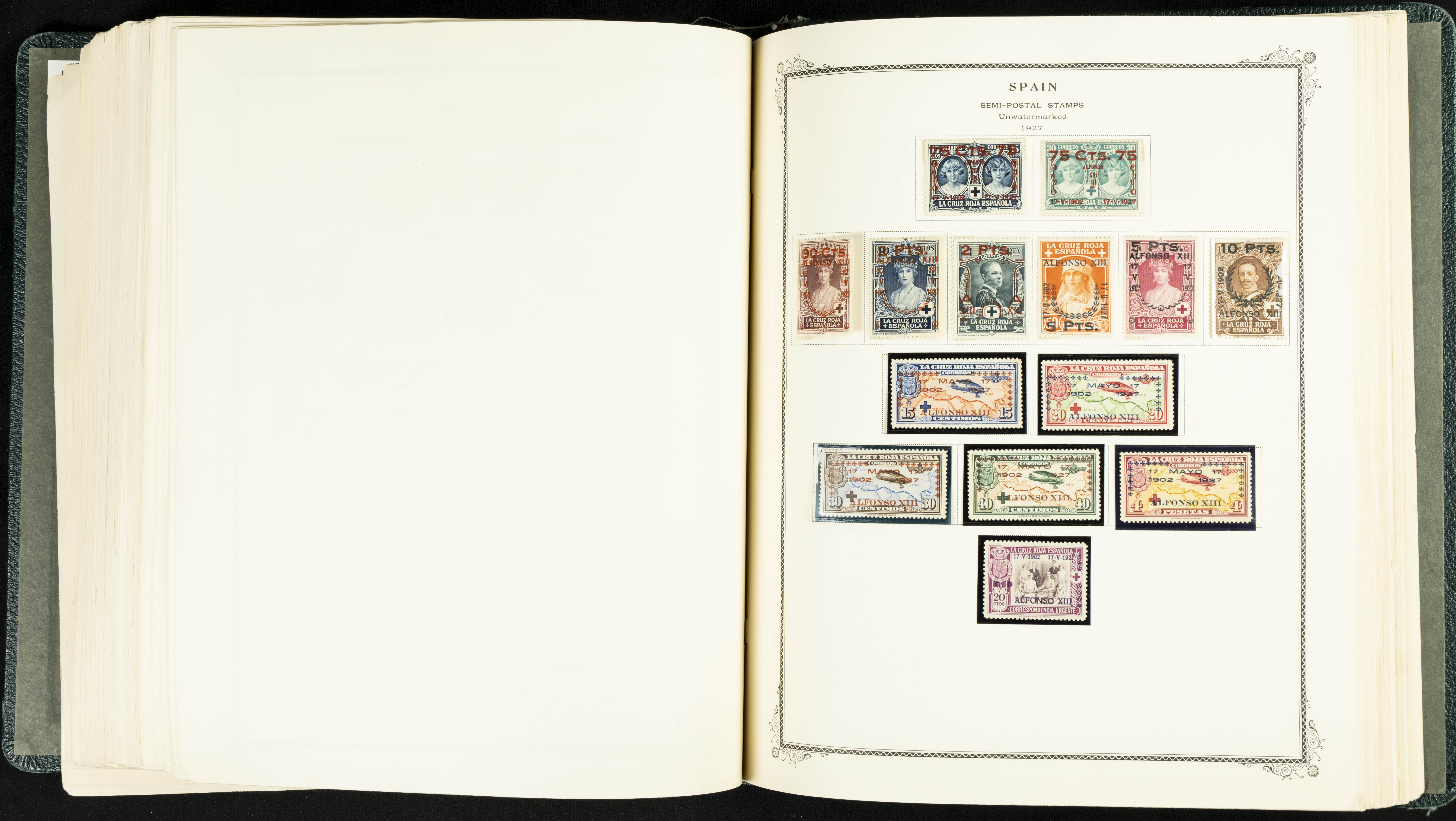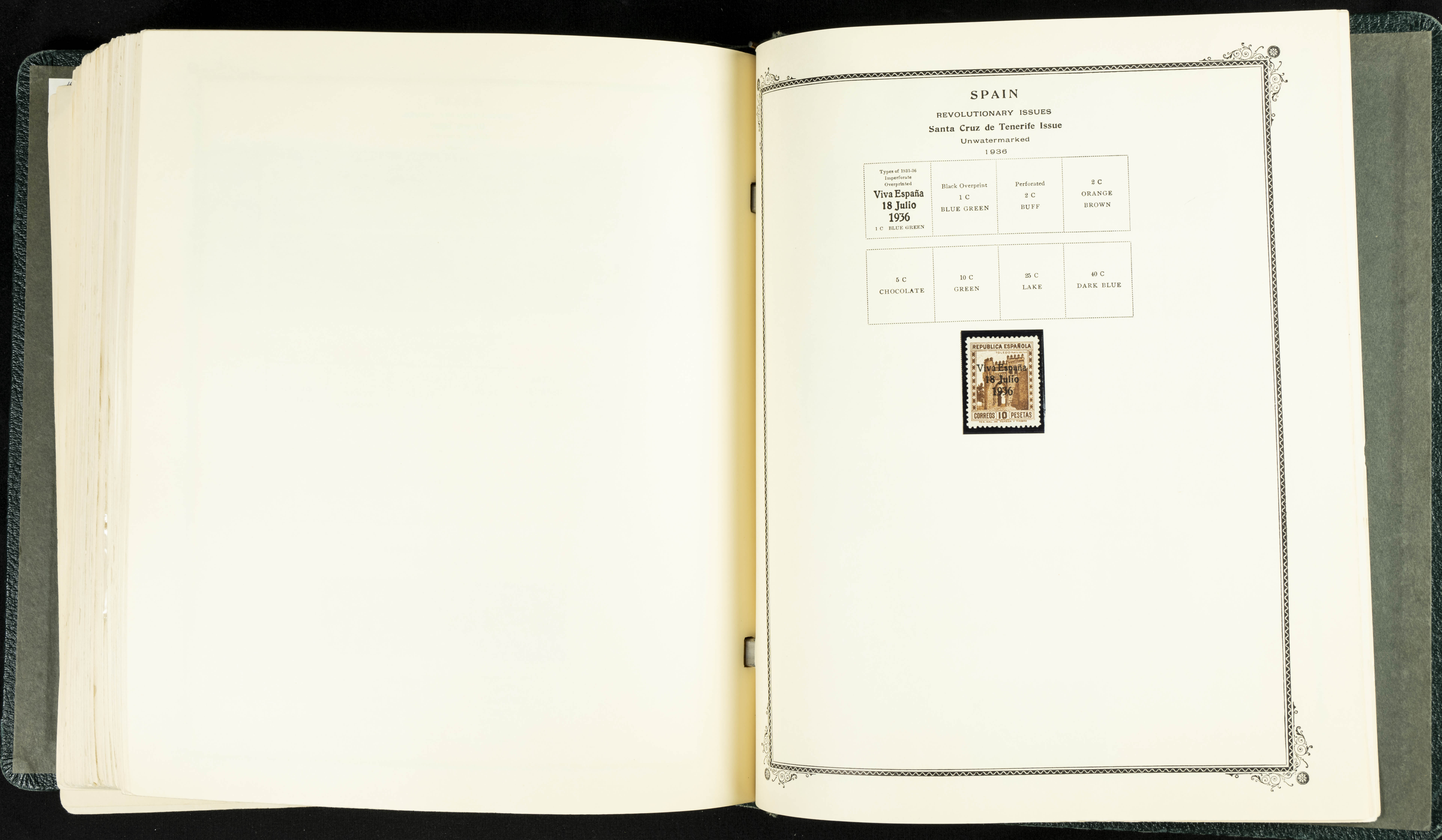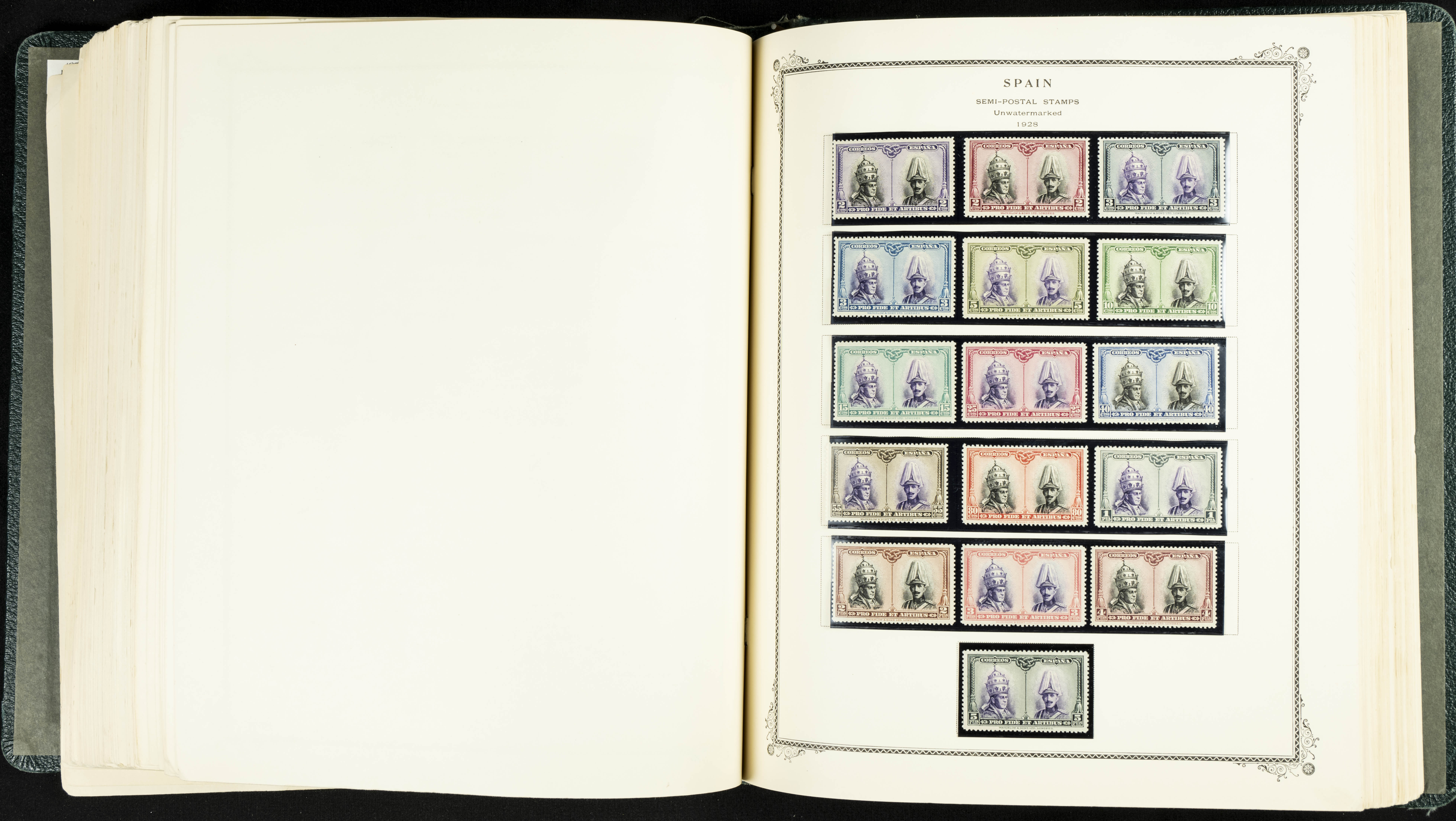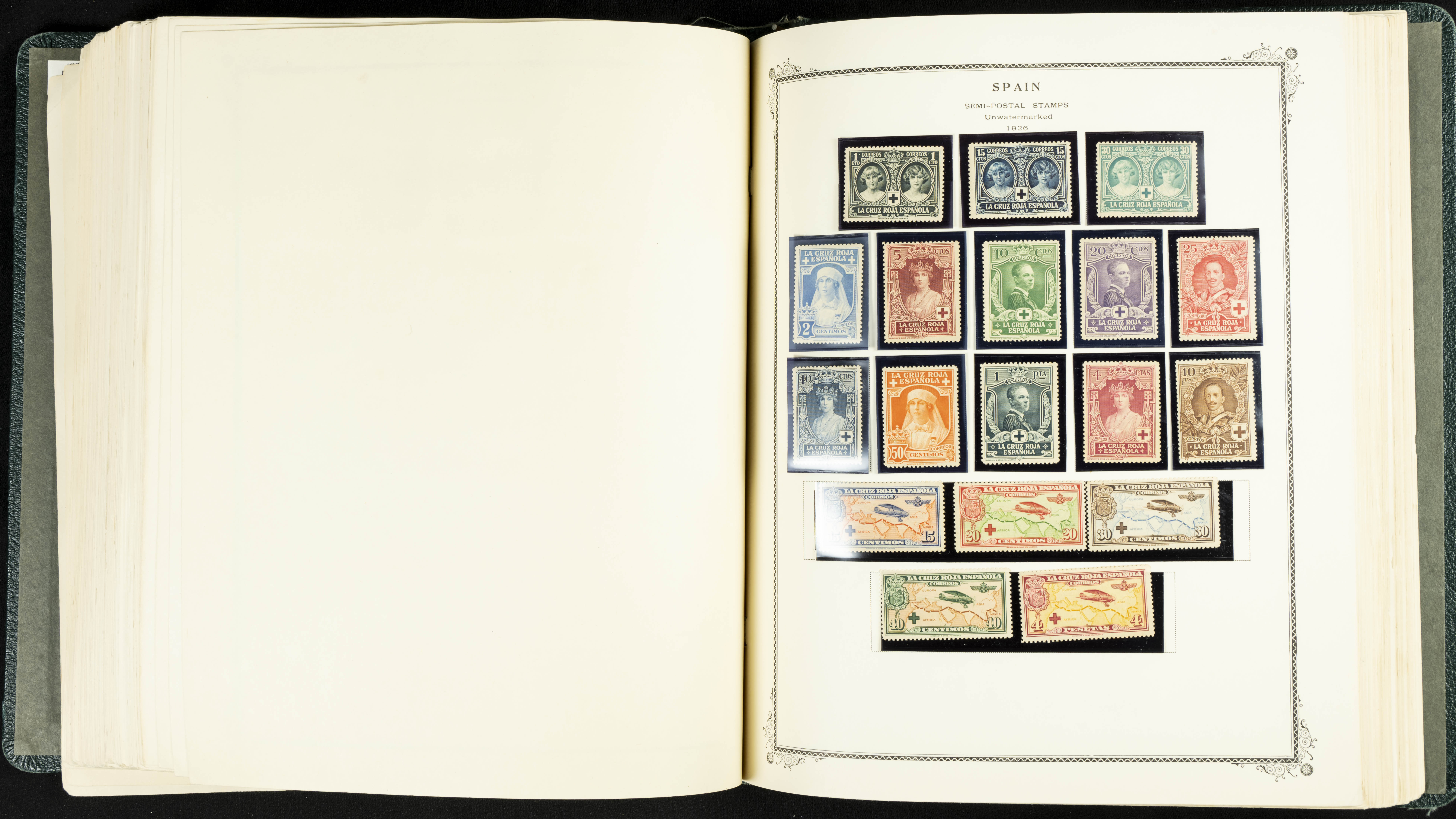 ★/(1850ca). A very interesting collection between 1850 and 1974, in mint and used coins. The classic part is very well represented, and most of the coins are used, including a complete series from 1850, 1851, 1852, and 1853, missing the 2 reales, 2 cuartos (green), and 1 real (blue) coins from 1854. Also included are most of the 19 cuartos, 4 pesetas from Amadeo and the First Republic, and most of the coins from 1876 to 1889. From 1901 onwards, everything is mint, including series such as Cadet, Quixote, Medallion, UPU, Red Cross (all of them), Railways, Montserrat (duplicate with A000000), Personalities, Militia, Granada, Franco (all of them), Pilar, "Falla and Zuloaga", Centenary, etc. It includes numerous varieties, imperforate, color changes, and some Patriotic Issues. EXTREMELY HIGH CATALOG VALUE. MUST BE EXAMINED.