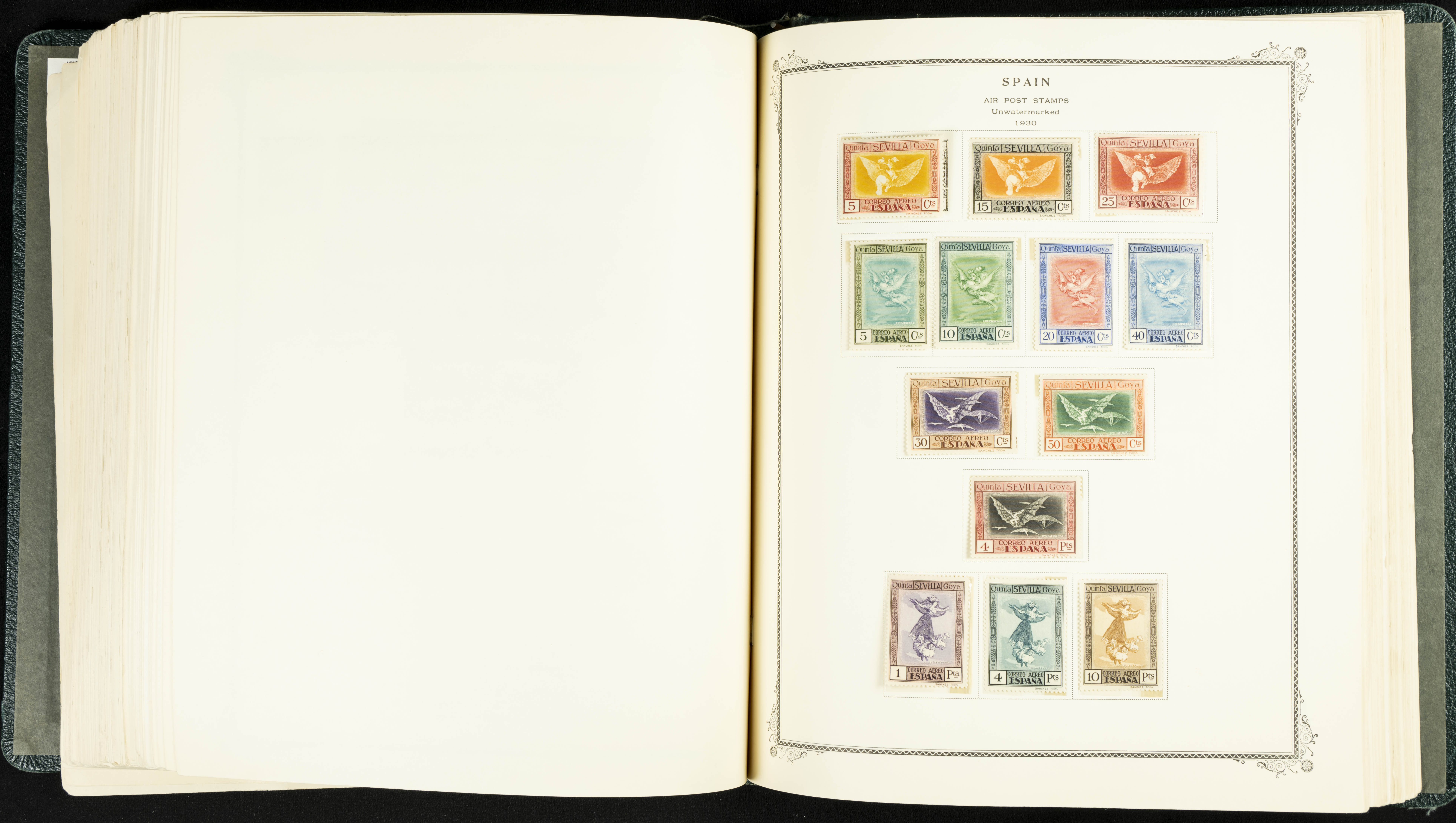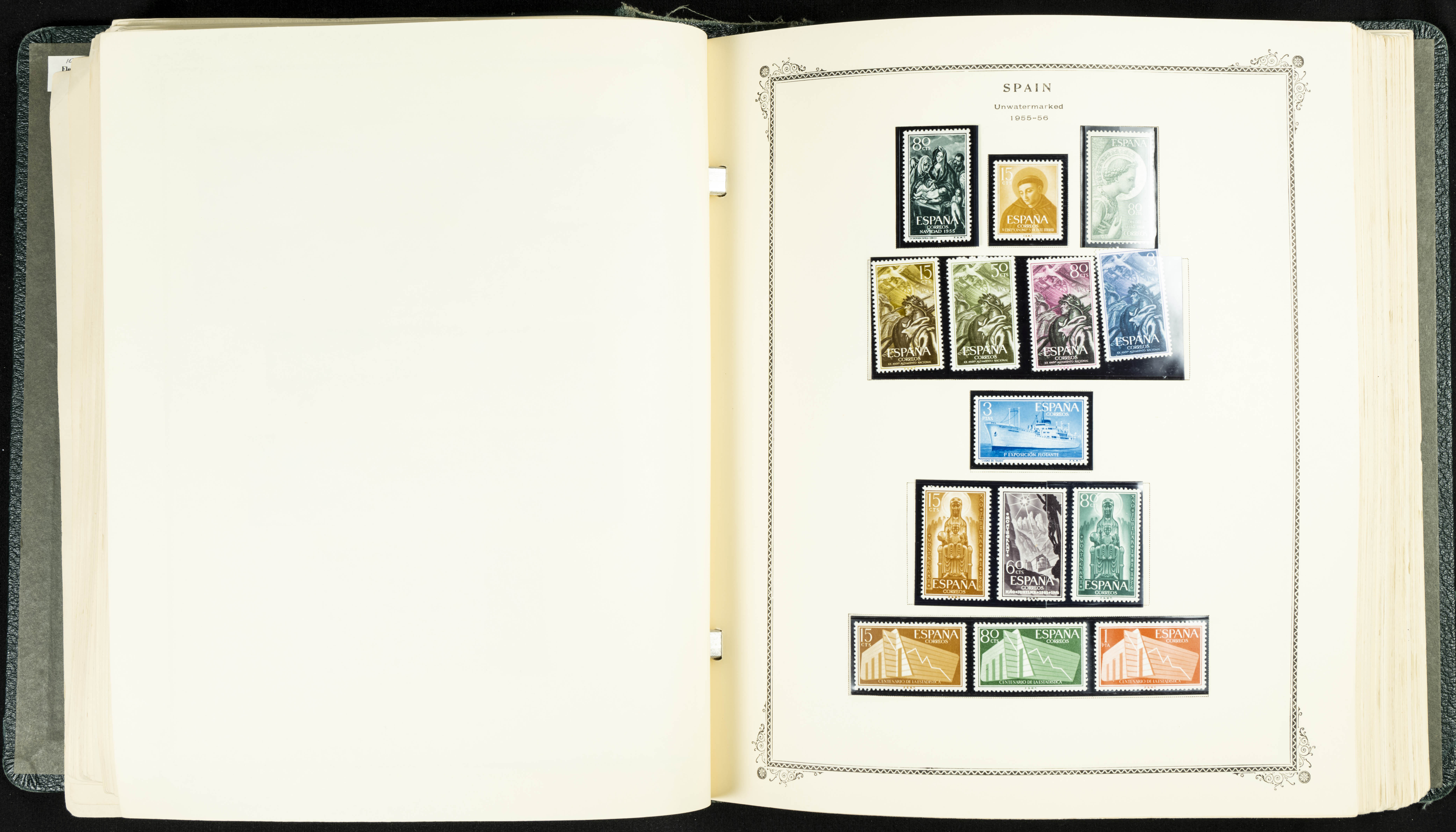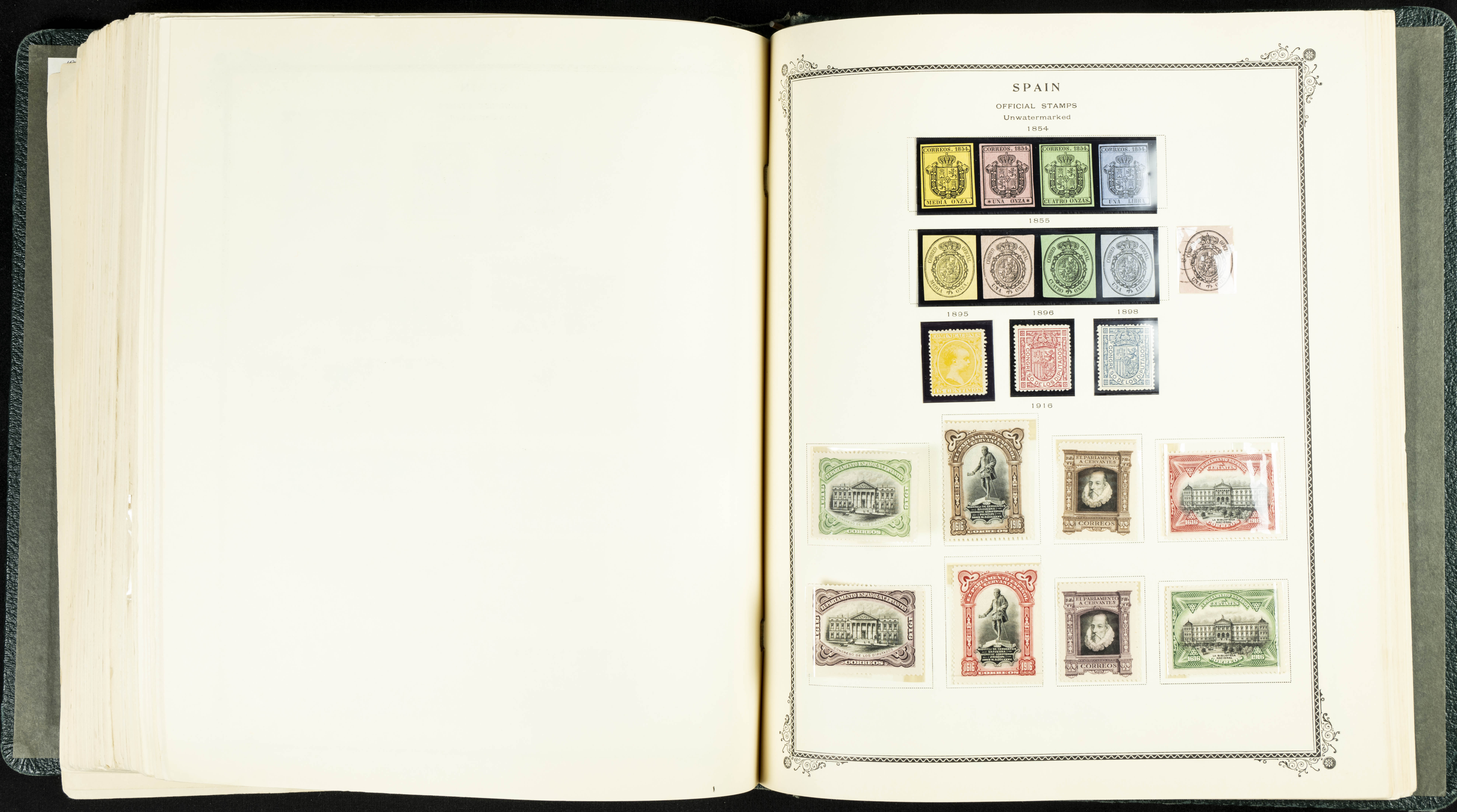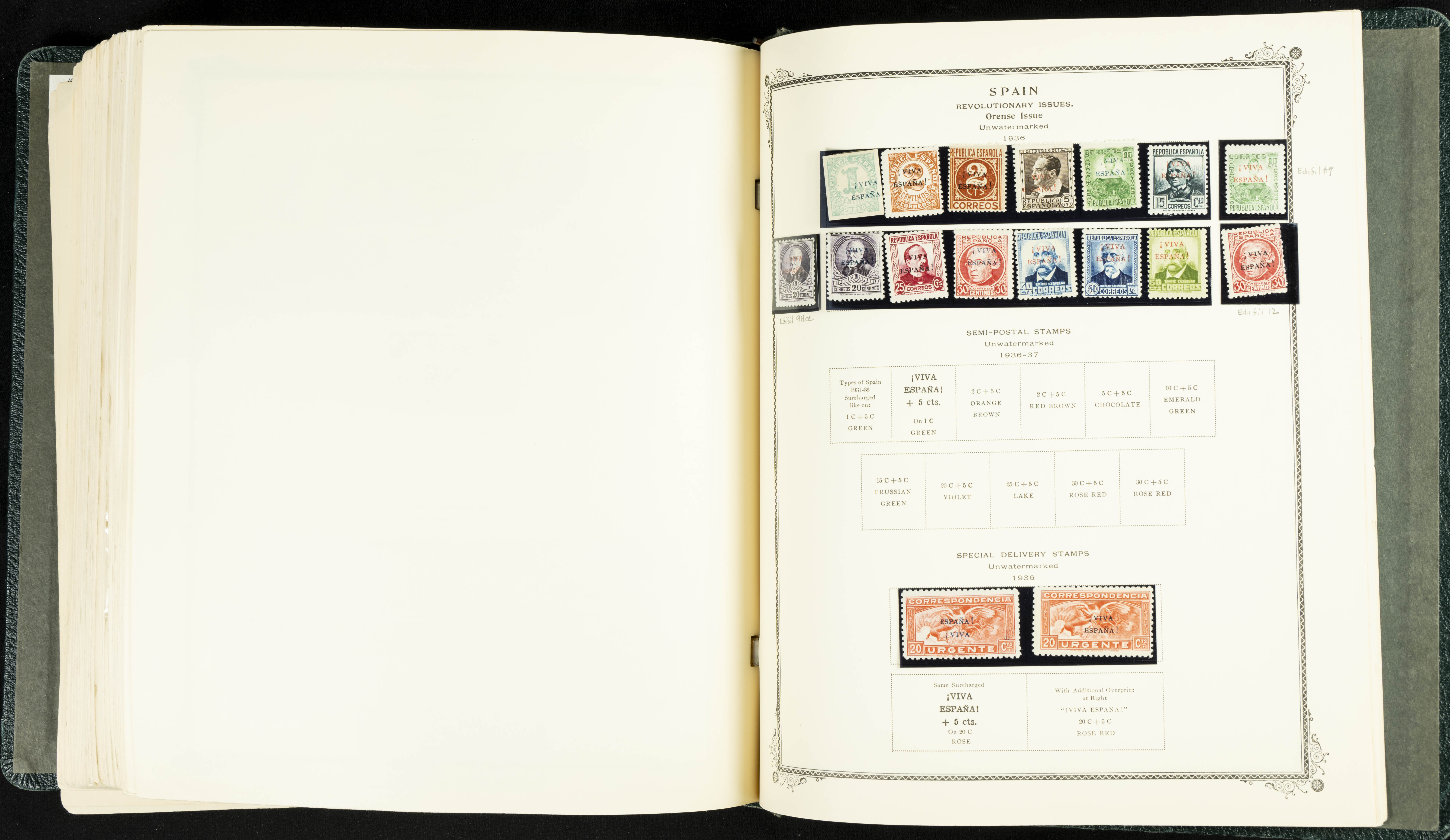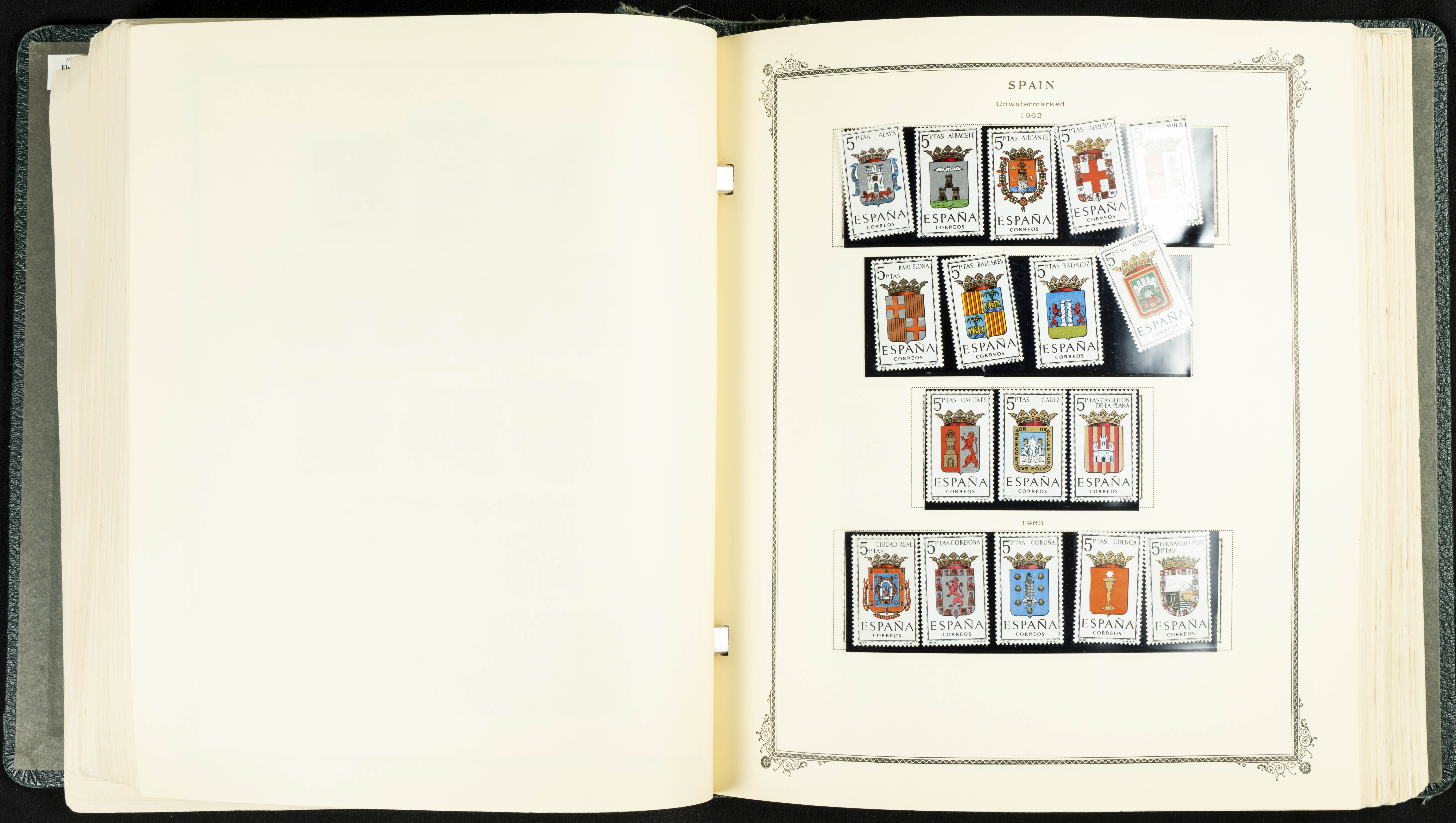 ★/(1850ca). A very interesting collection between 1850 and 1974, in mint and used coins. The classic part is very well represented, and most of the coins are used, including a complete series from 1850, 1851, 1852, and 1853, missing the 2 reales, 2 cuartos (green), and 1 real (blue) coins from 1854. Also included are most of the 19 cuartos, 4 pesetas from Amadeo and the First Republic, and most of the coins from 1876 to 1889. From 1901 onwards, everything is mint, including series such as Cadet, Quixote, Medallion, UPU, Red Cross (all of them), Railways, Montserrat (duplicate with A000000), Personalities, Militia, Granada, Franco (all of them), Pilar, "Falla and Zuloaga", Centenary, etc. It includes numerous varieties, imperforate, color changes, and some Patriotic Issues. EXTREMELY HIGH CATALOG VALUE. MUST BE EXAMINED.
