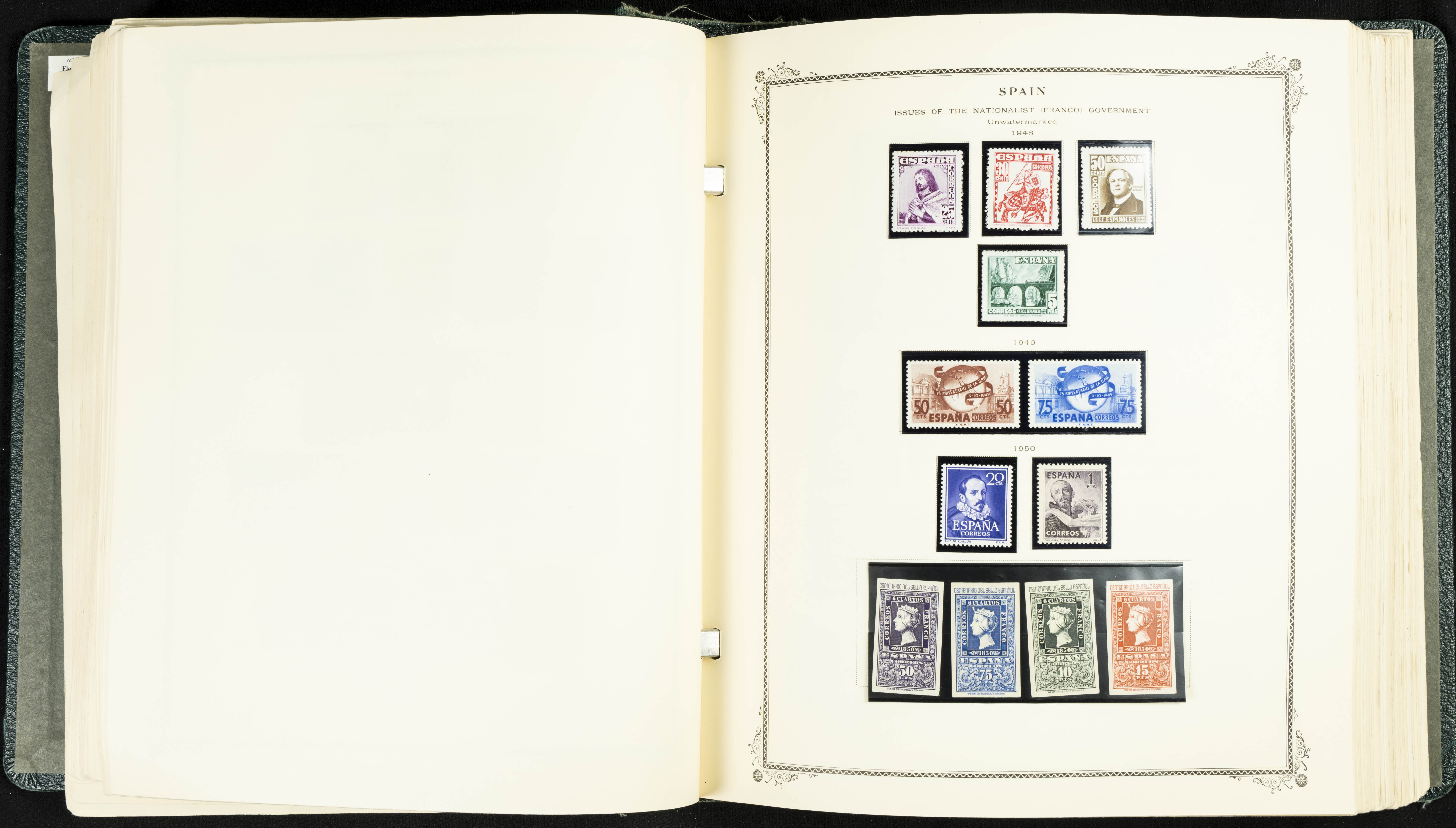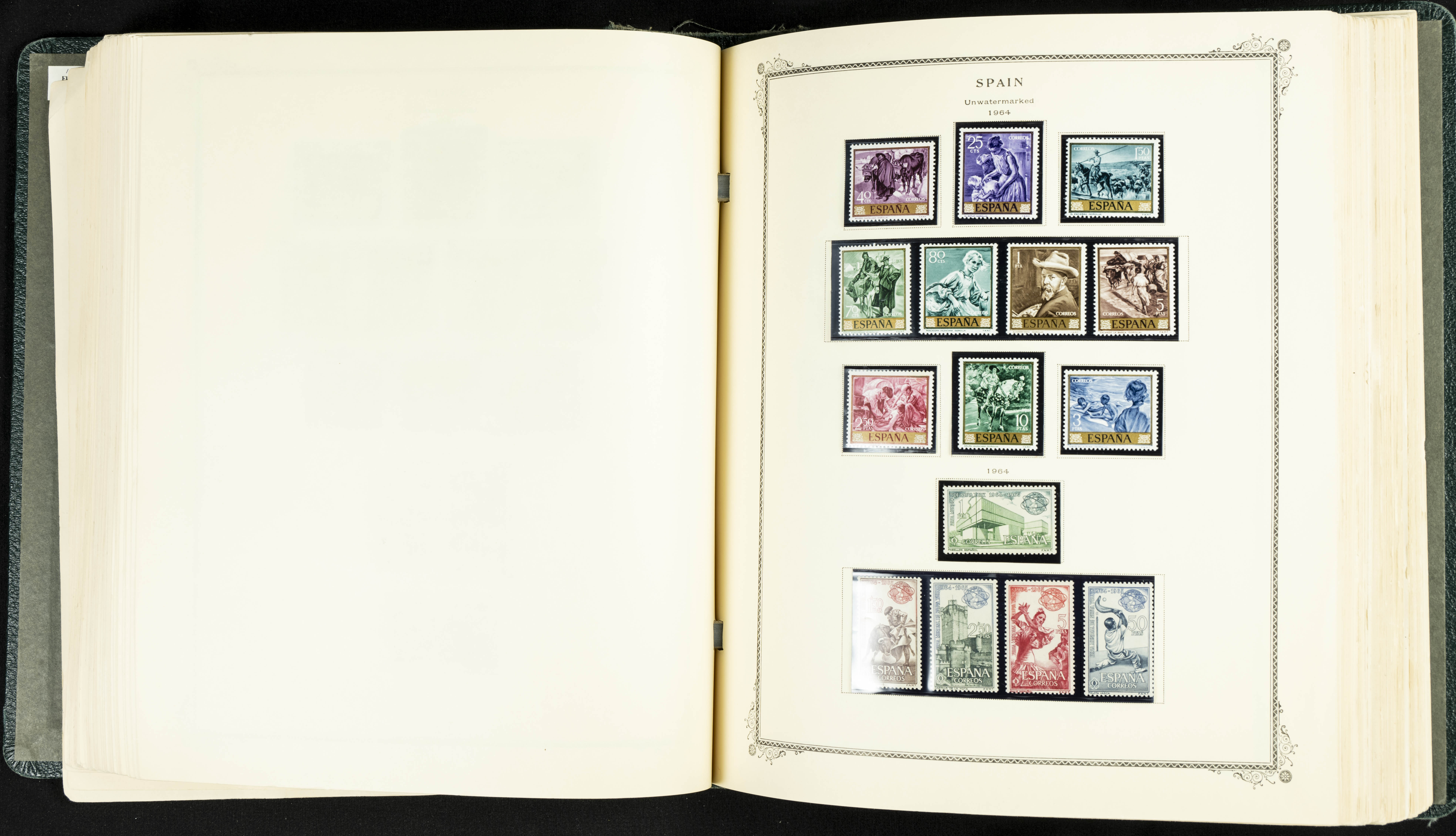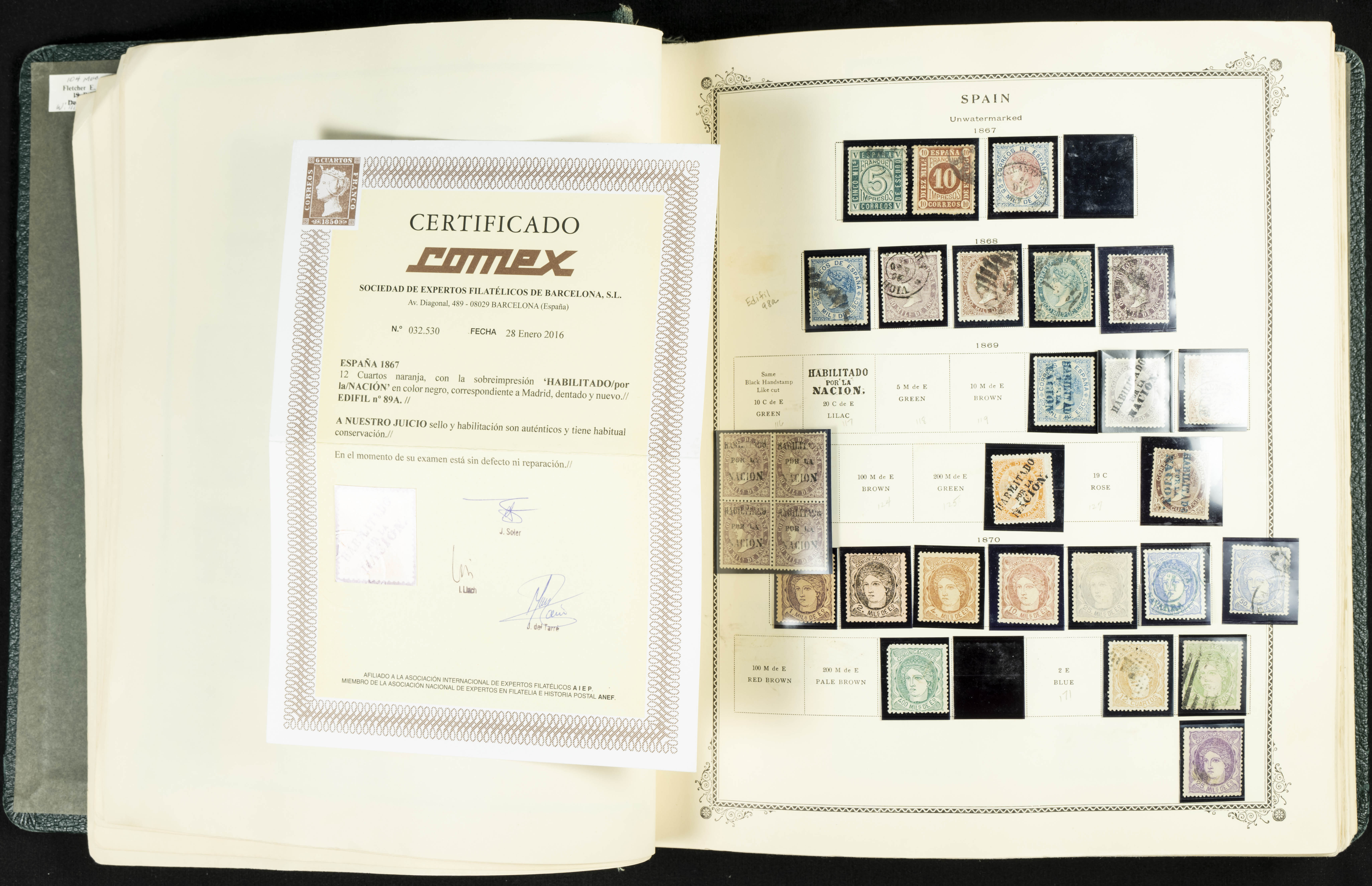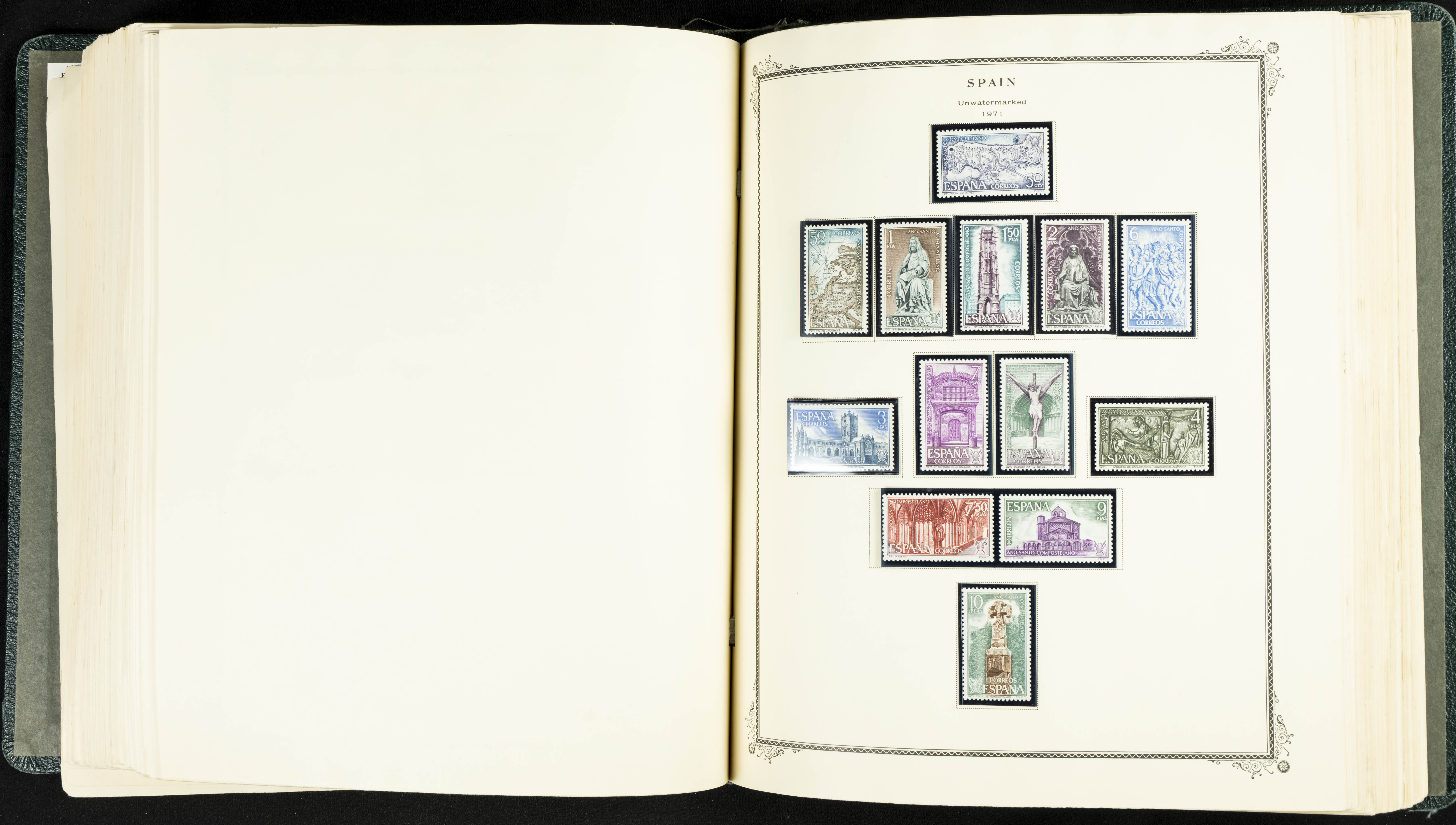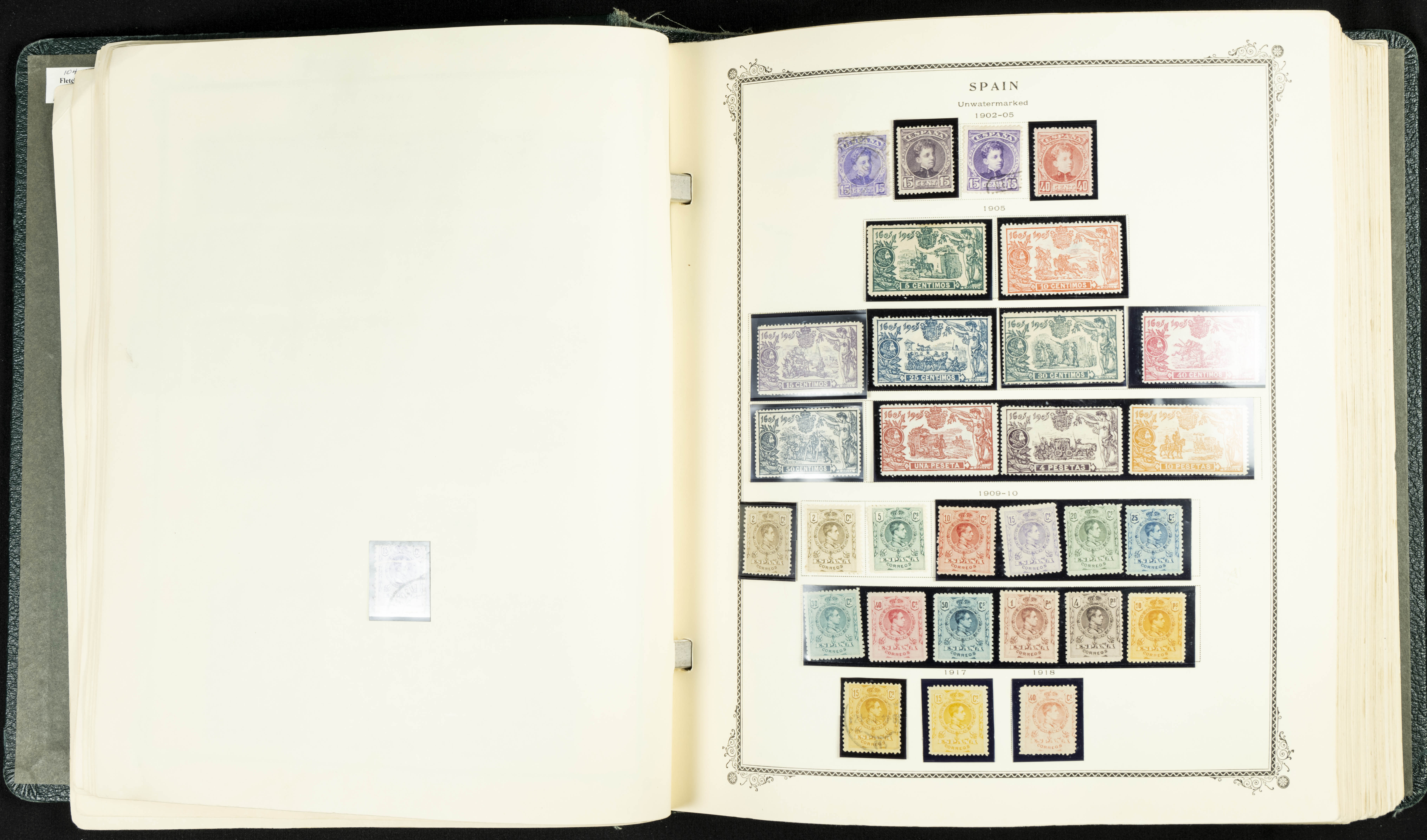 ★/(1850ca). A very interesting collection between 1850 and 1974, in mint and used coins. The classic part is very well represented, and most of the coins are used, including a complete series from 1850, 1851, 1852, and 1853, missing the 2 reales, 2 cuartos (green), and 1 real (blue) coins from 1854. Also included are most of the 19 cuartos, 4 pesetas from Amadeo and the First Republic, and most of the coins from 1876 to 1889. From 1901 onwards, everything is mint, including series such as Cadet, Quixote, Medallion, UPU, Red Cross (all of them), Railways, Montserrat (duplicate with A000000), Personalities, Militia, Granada, Franco (all of them), Pilar, "Falla and Zuloaga", Centenary, etc. It includes numerous varieties, imperforate, color changes, and some Patriotic Issues. EXTREMELY HIGH CATALOG VALUE. MUST BE EXAMINED.