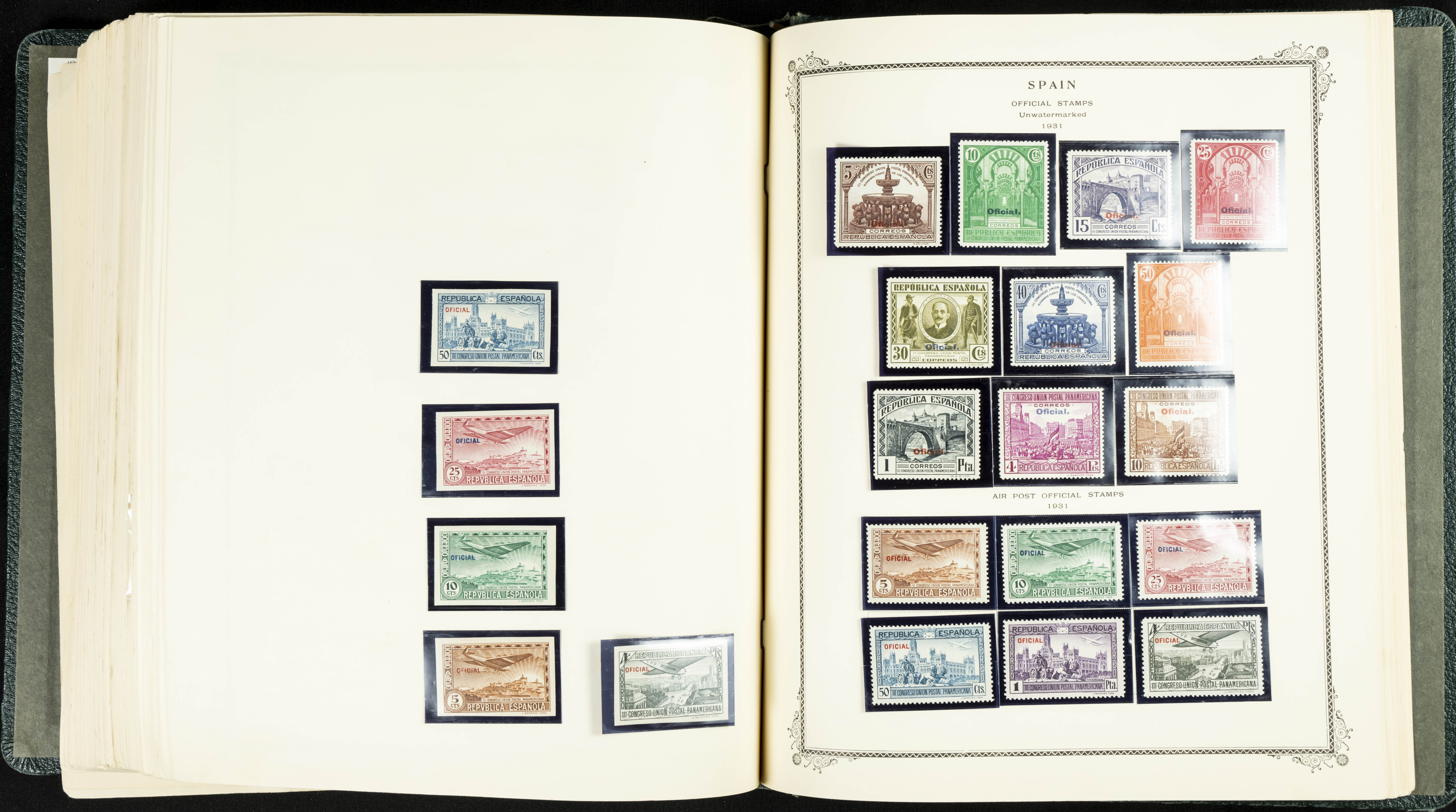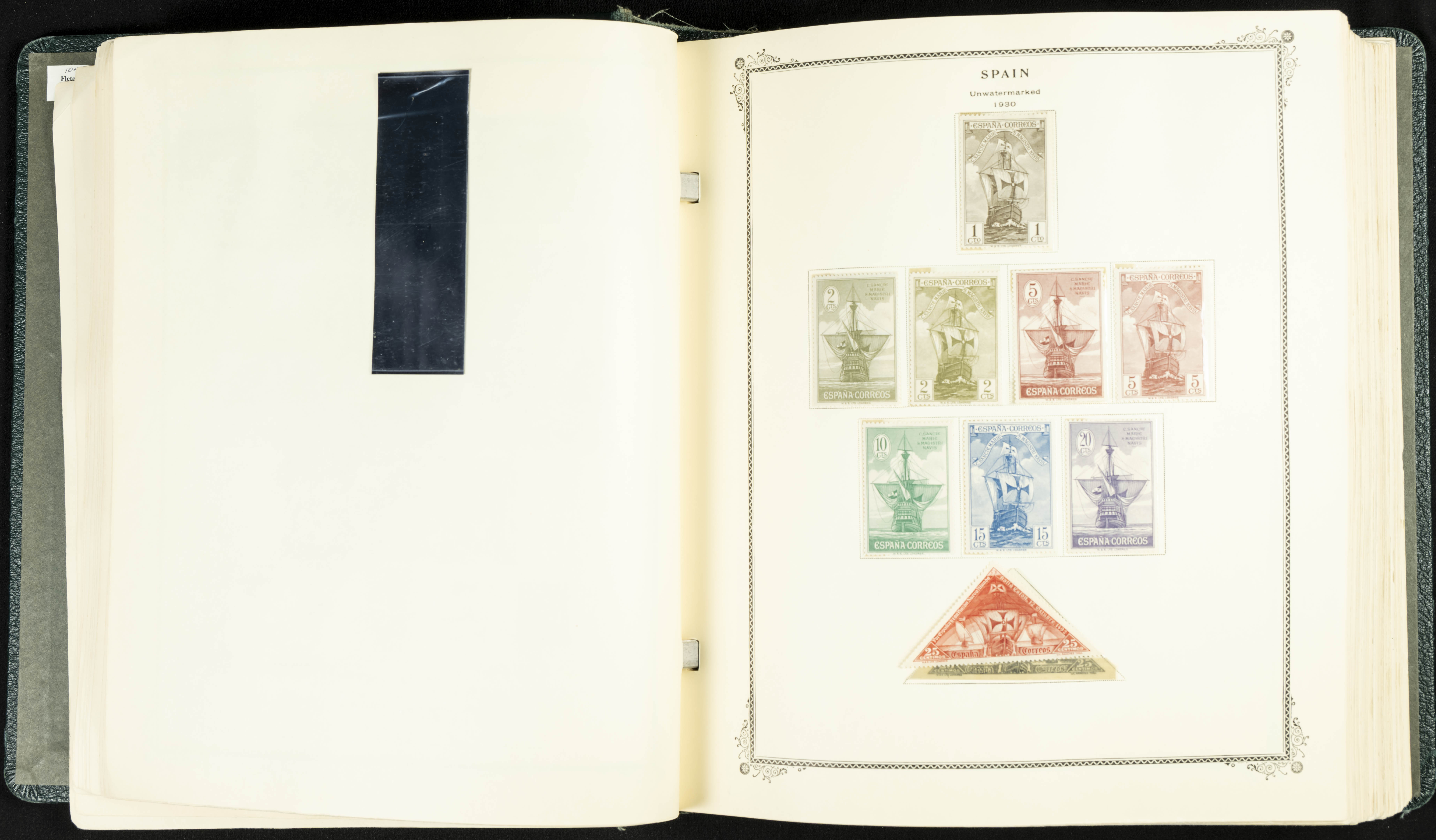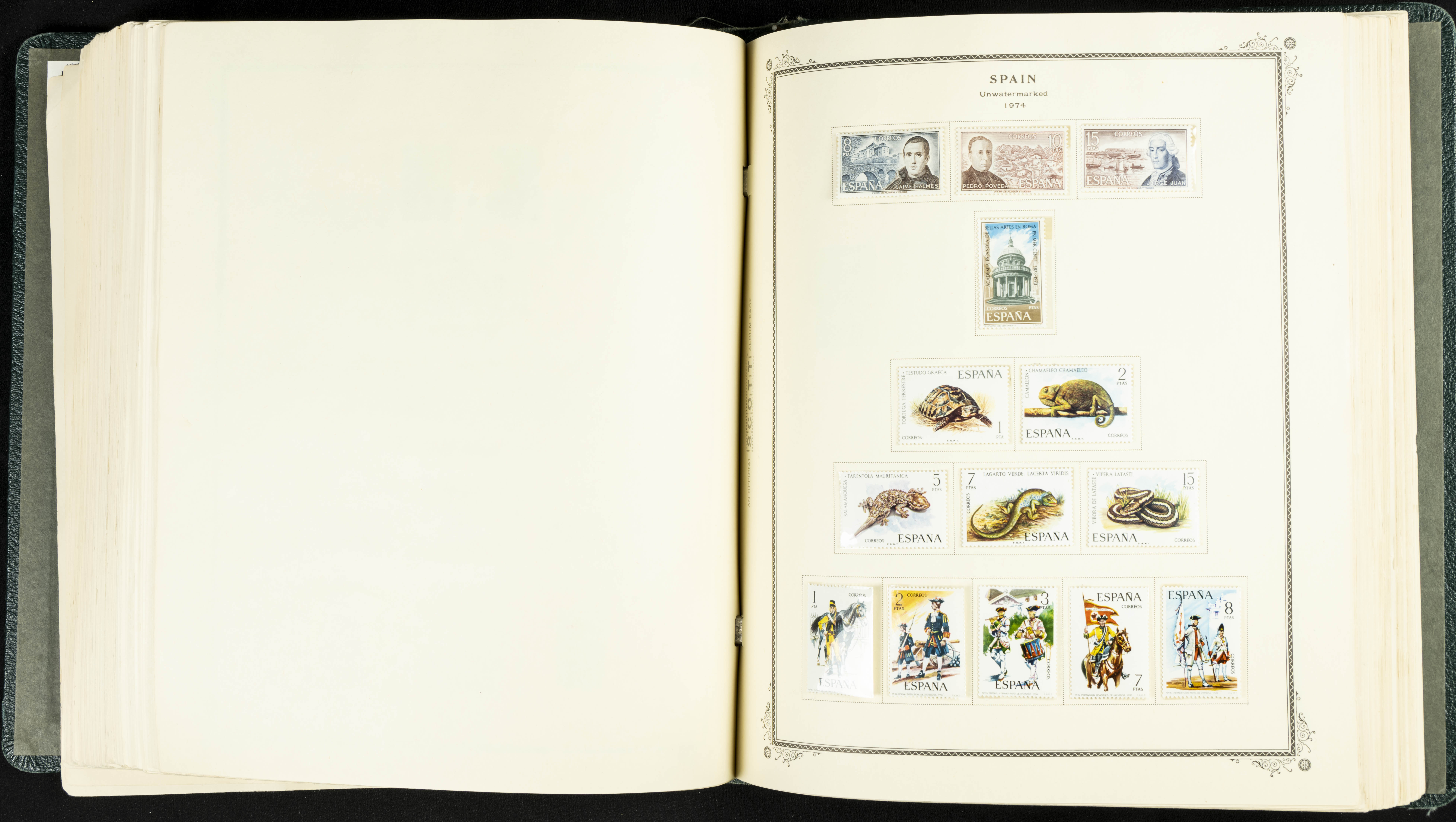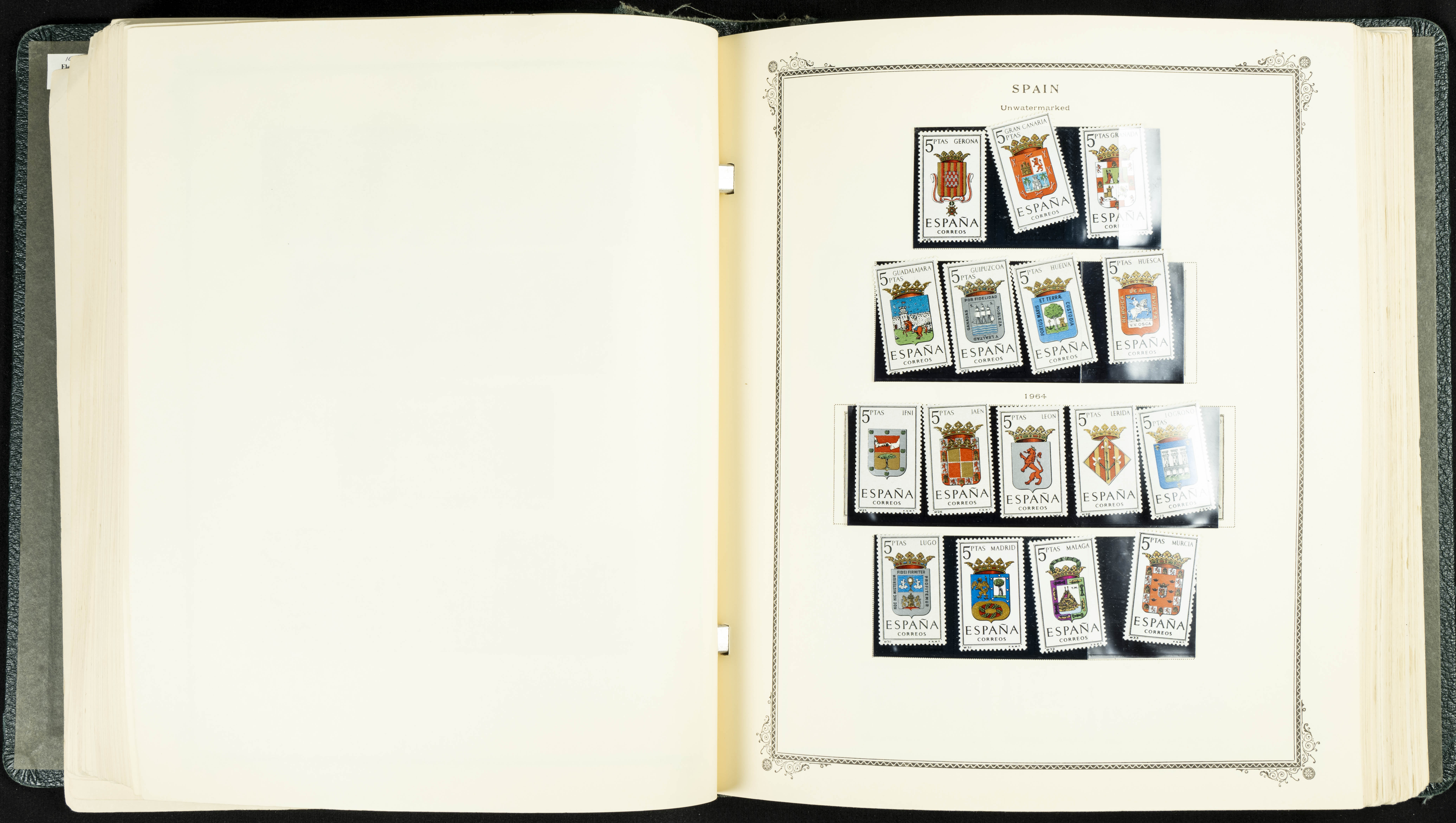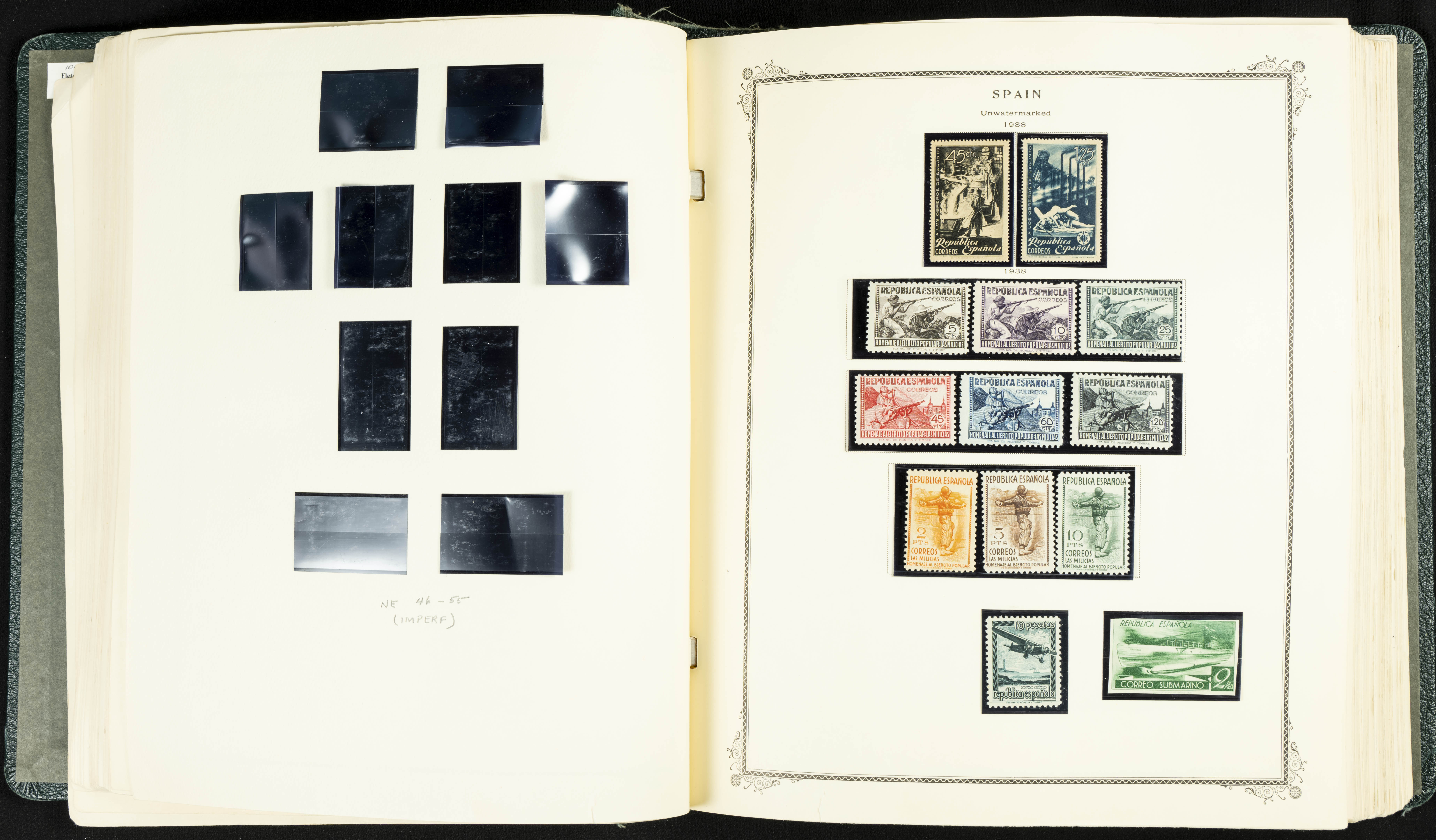 ★/(1850ca). A very interesting collection between 1850 and 1974, in mint and used coins. The classic part is very well represented, and most of the coins are used, including a complete series from 1850, 1851, 1852, and 1853, missing the 2 reales, 2 cuartos (green), and 1 real (blue) coins from 1854. Also included are most of the 19 cuartos, 4 pesetas from Amadeo and the First Republic, and most of the coins from 1876 to 1889. From 1901 onwards, everything is mint, including series such as Cadet, Quixote, Medallion, UPU, Red Cross (all of them), Railways, Montserrat (duplicate with A000000), Personalities, Militia, Granada, Franco (all of them), Pilar, "Falla and Zuloaga", Centenary, etc. It includes numerous varieties, imperforate, color changes, and some Patriotic Issues. EXTREMELY HIGH CATALOG VALUE. MUST BE EXAMINED.