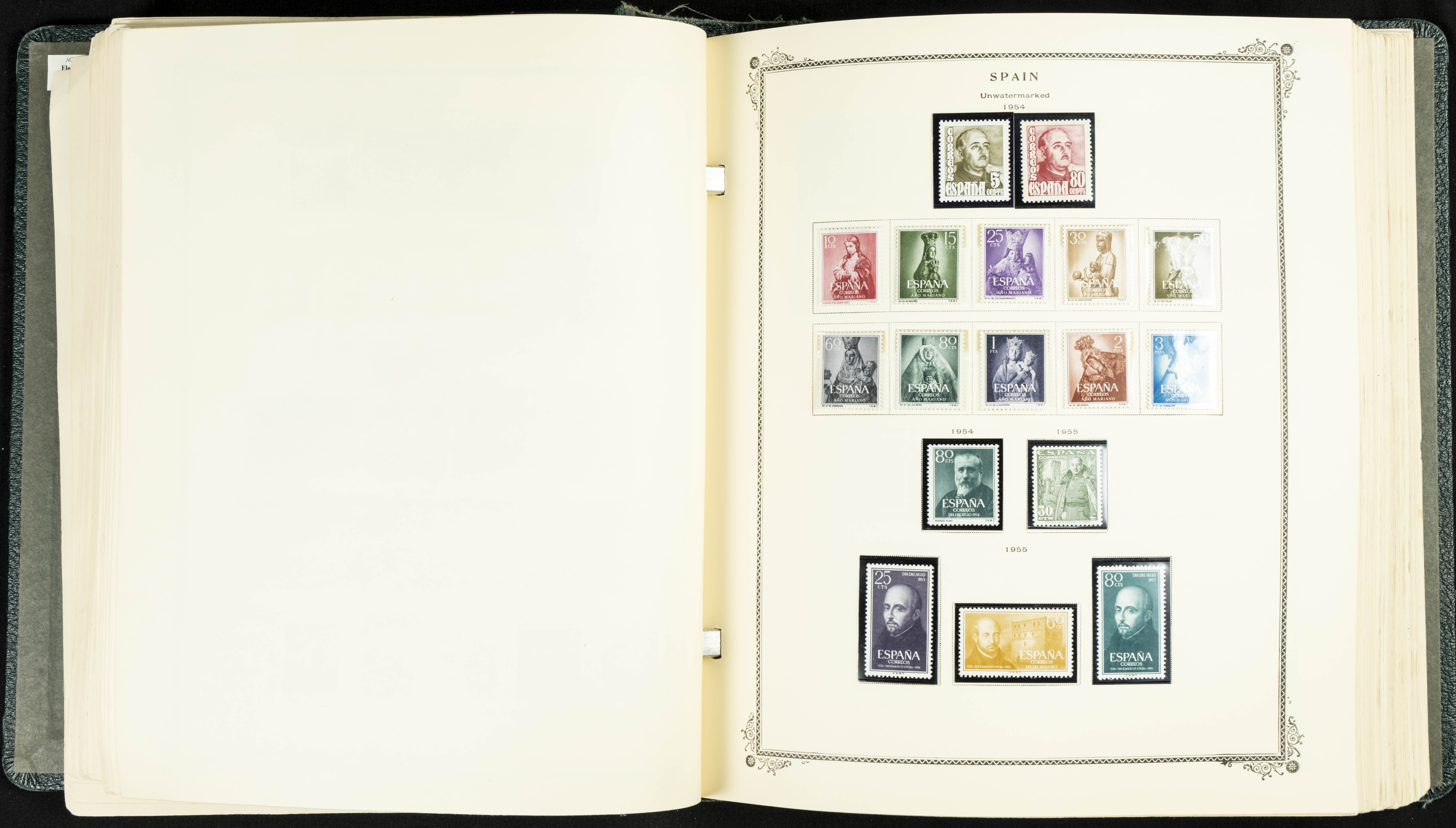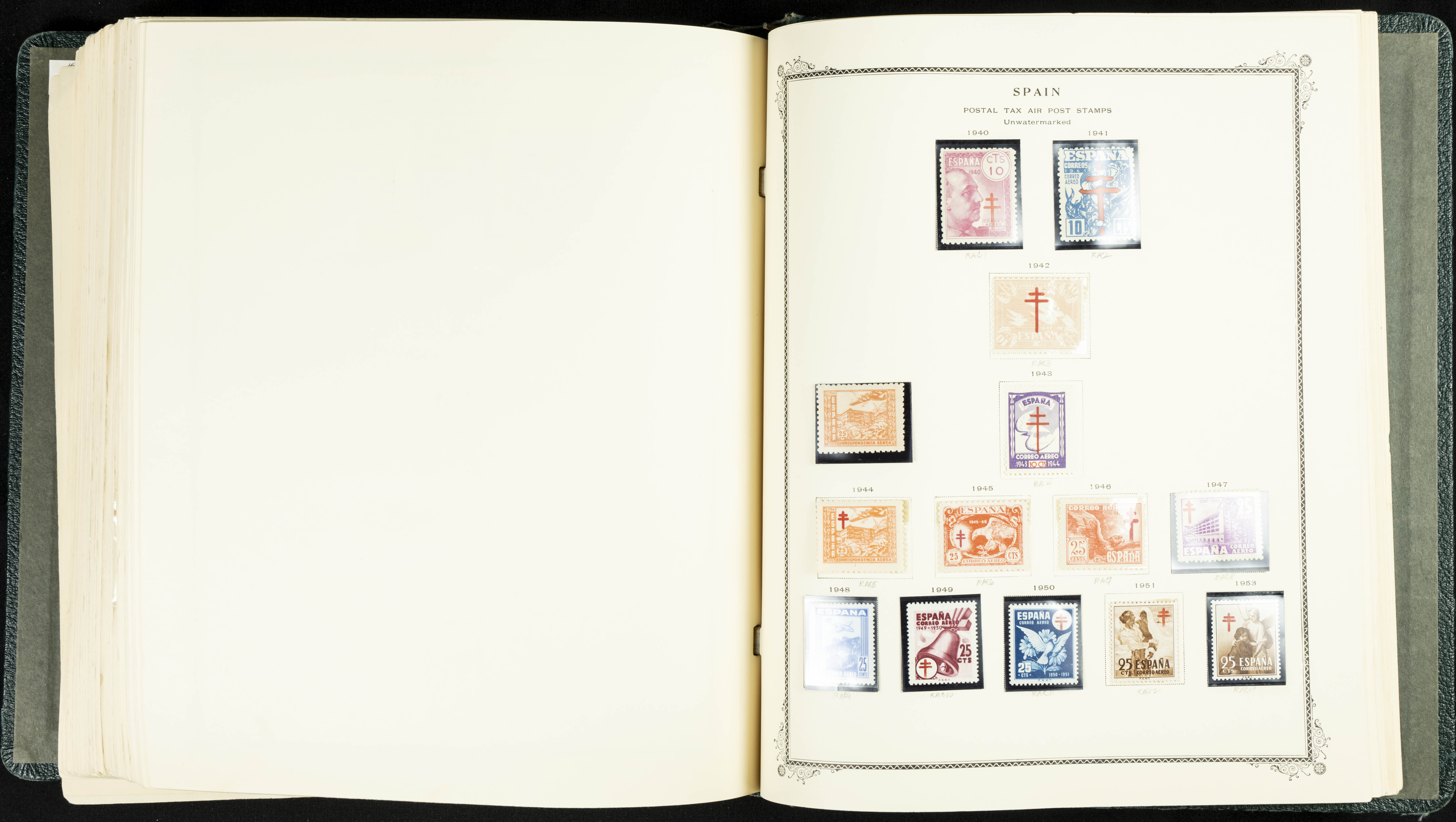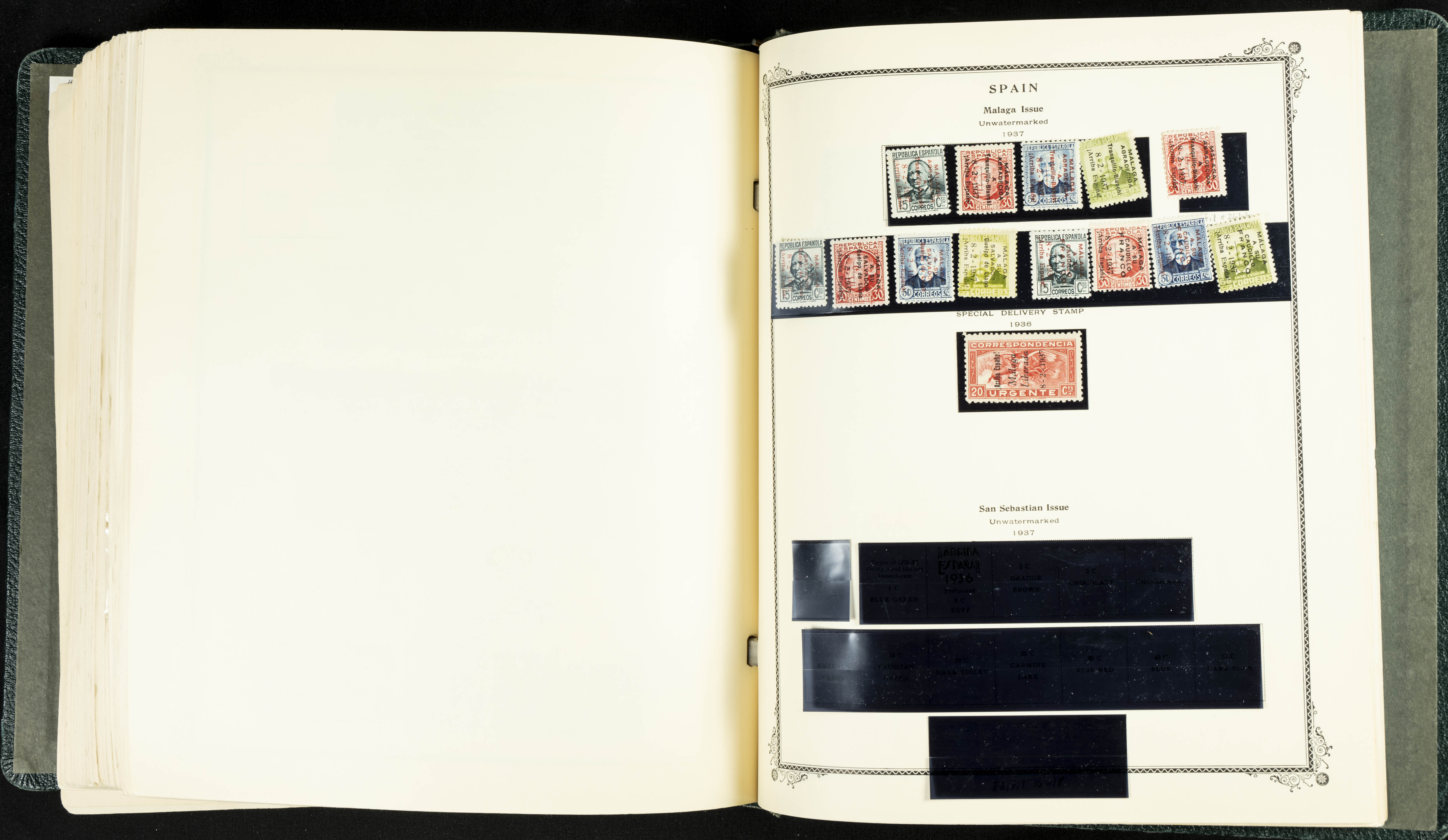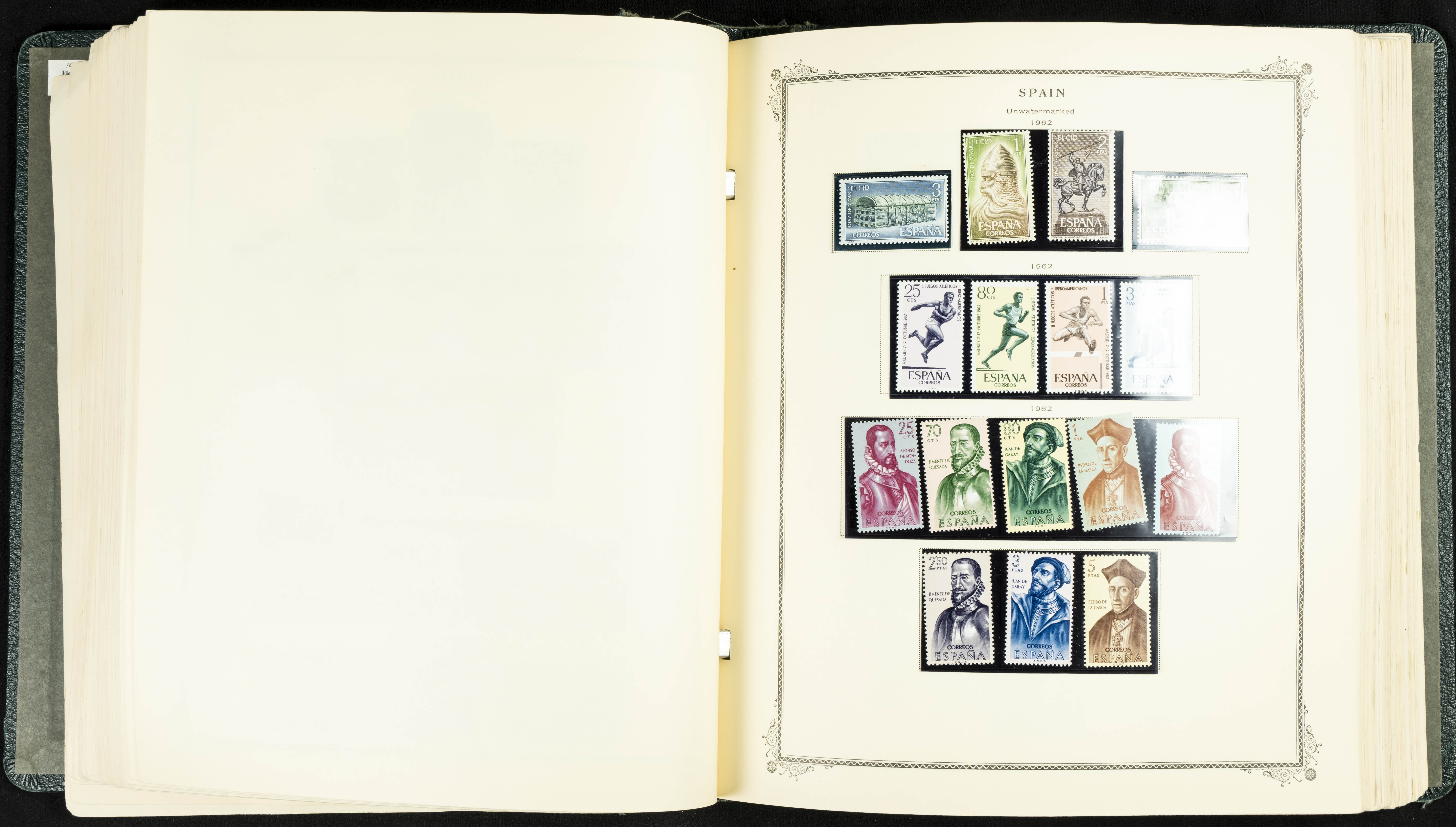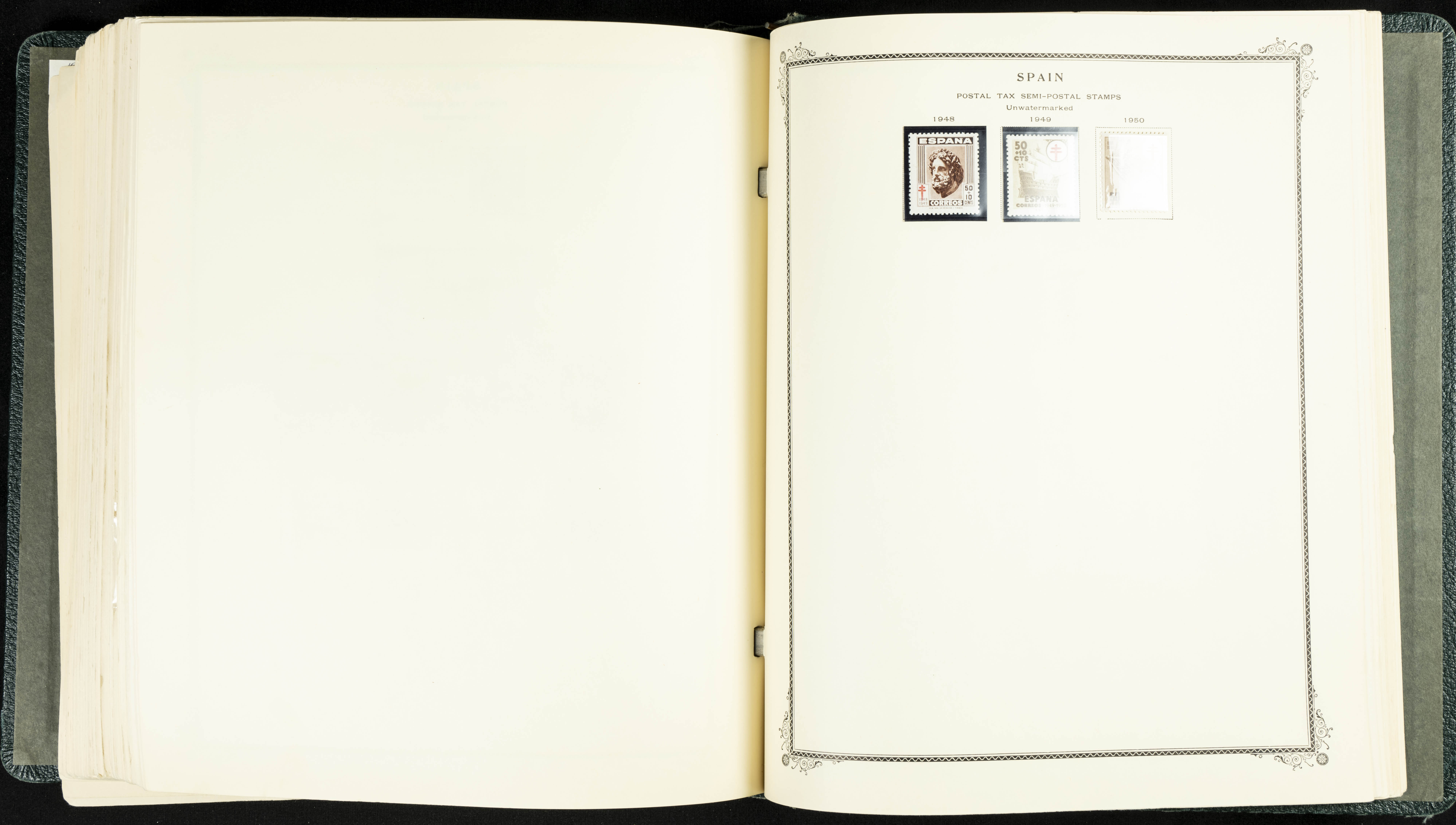 ★/(1850ca). A very interesting collection between 1850 and 1974, in mint and used coins. The classic part is very well represented, and most of the coins are used, including a complete series from 1850, 1851, 1852, and 1853, missing the 2 reales, 2 cuartos (green), and 1 real (blue) coins from 1854. Also included are most of the 19 cuartos, 4 pesetas from Amadeo and the First Republic, and most of the coins from 1876 to 1889. From 1901 onwards, everything is mint, including series such as Cadet, Quixote, Medallion, UPU, Red Cross (all of them), Railways, Montserrat (duplicate with A000000), Personalities, Militia, Granada, Franco (all of them), Pilar, "Falla and Zuloaga", Centenary, etc. It includes numerous varieties, imperforate, color changes, and some Patriotic Issues. EXTREMELY HIGH CATALOG VALUE. MUST BE EXAMINED.