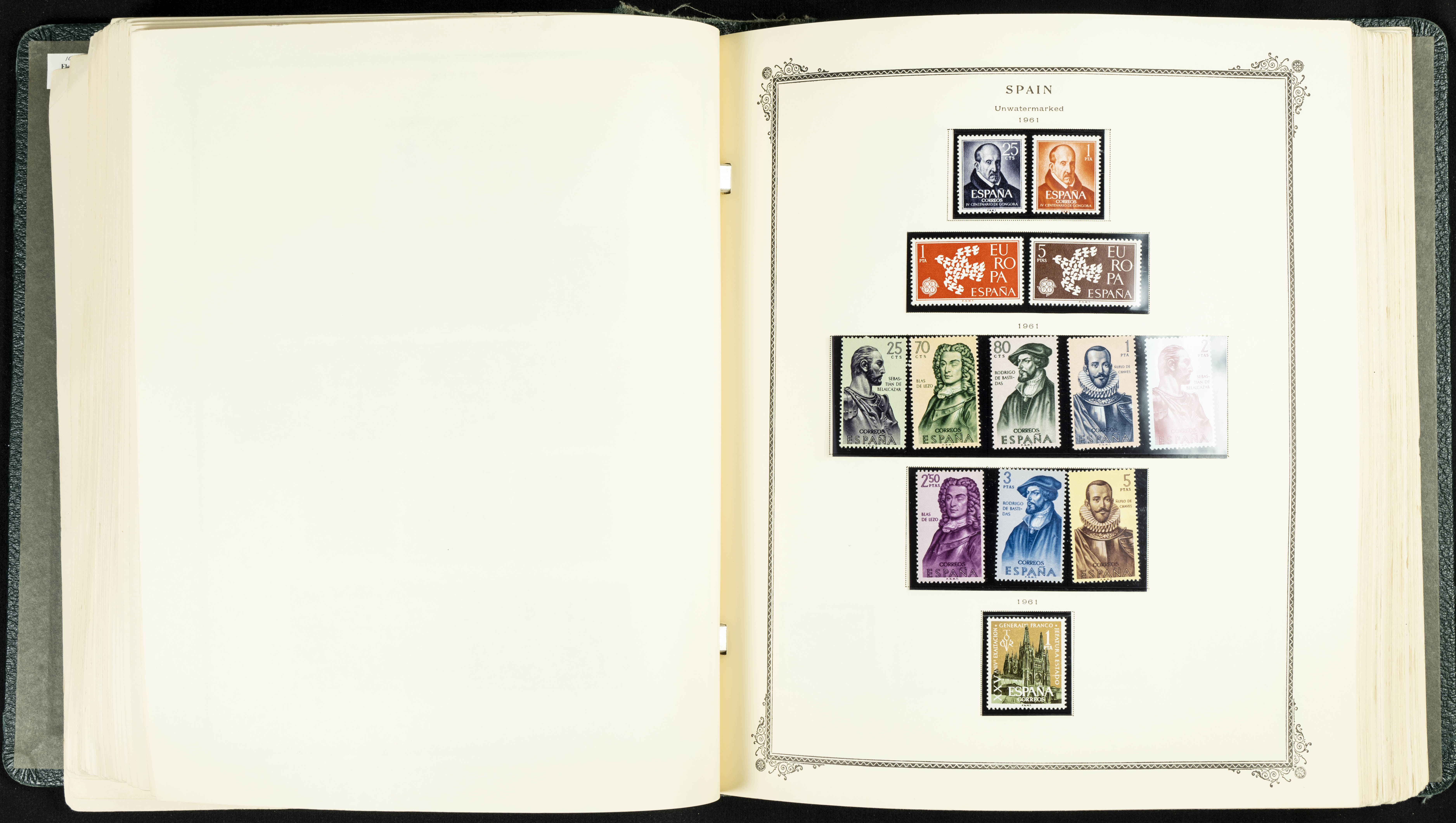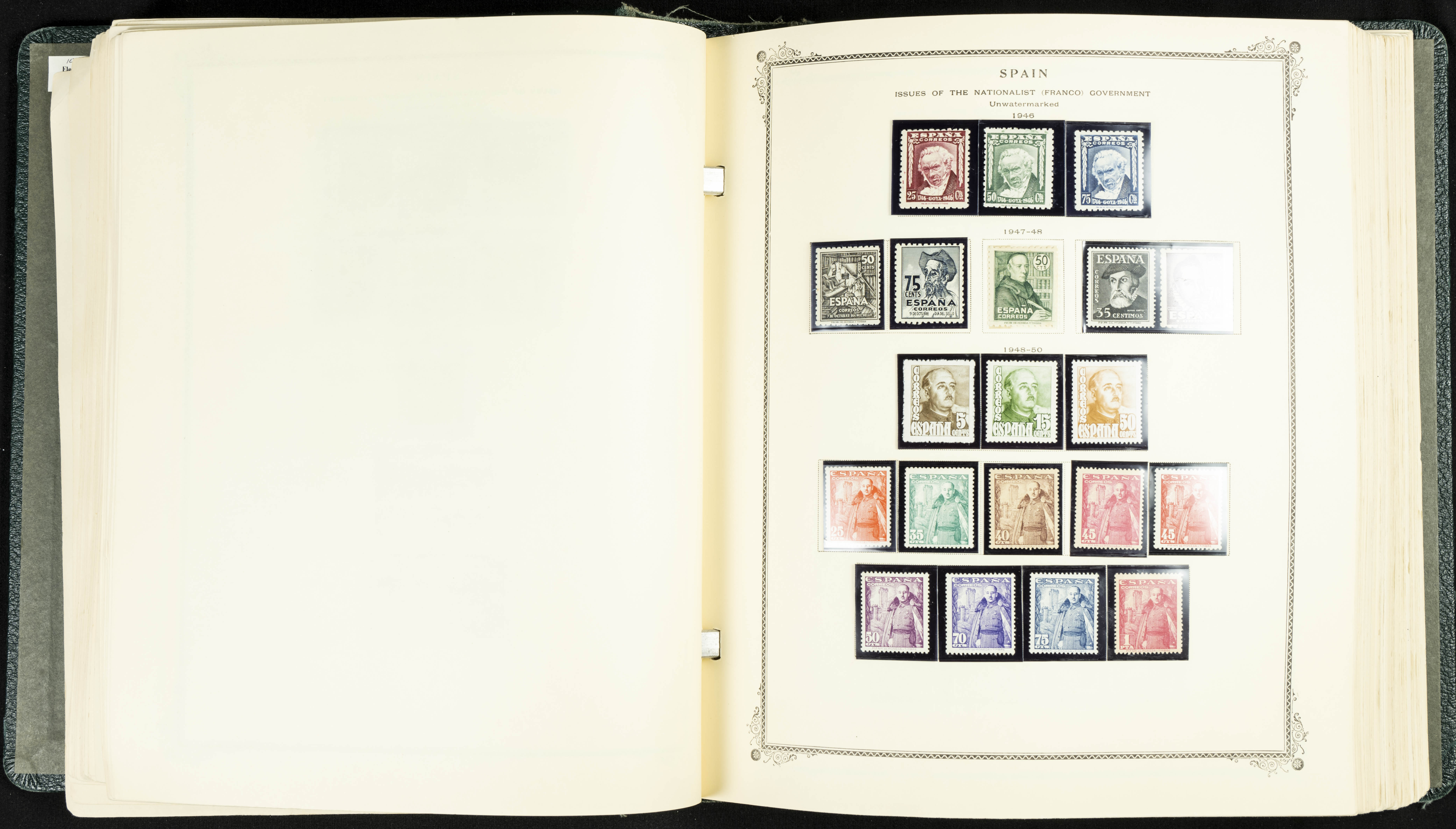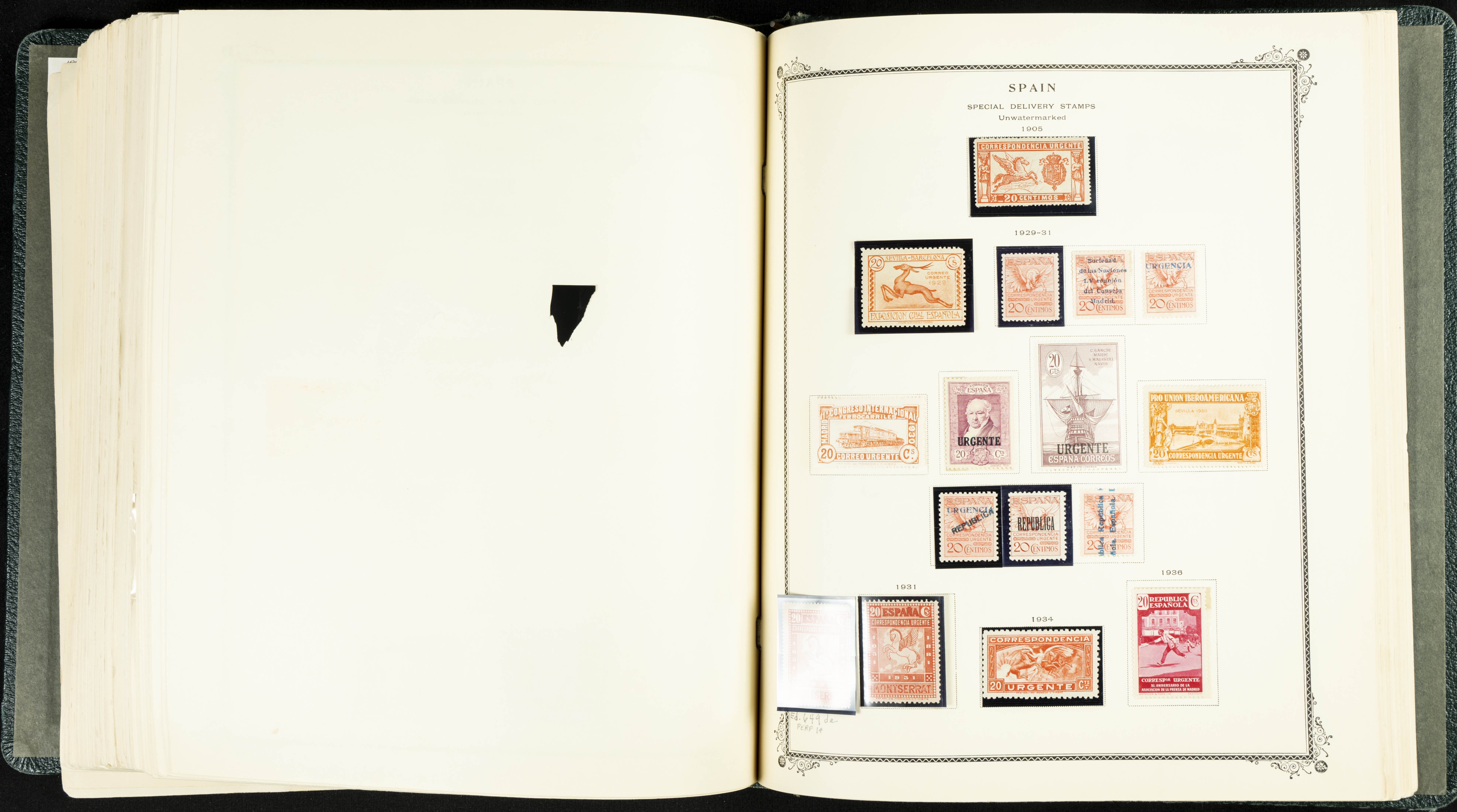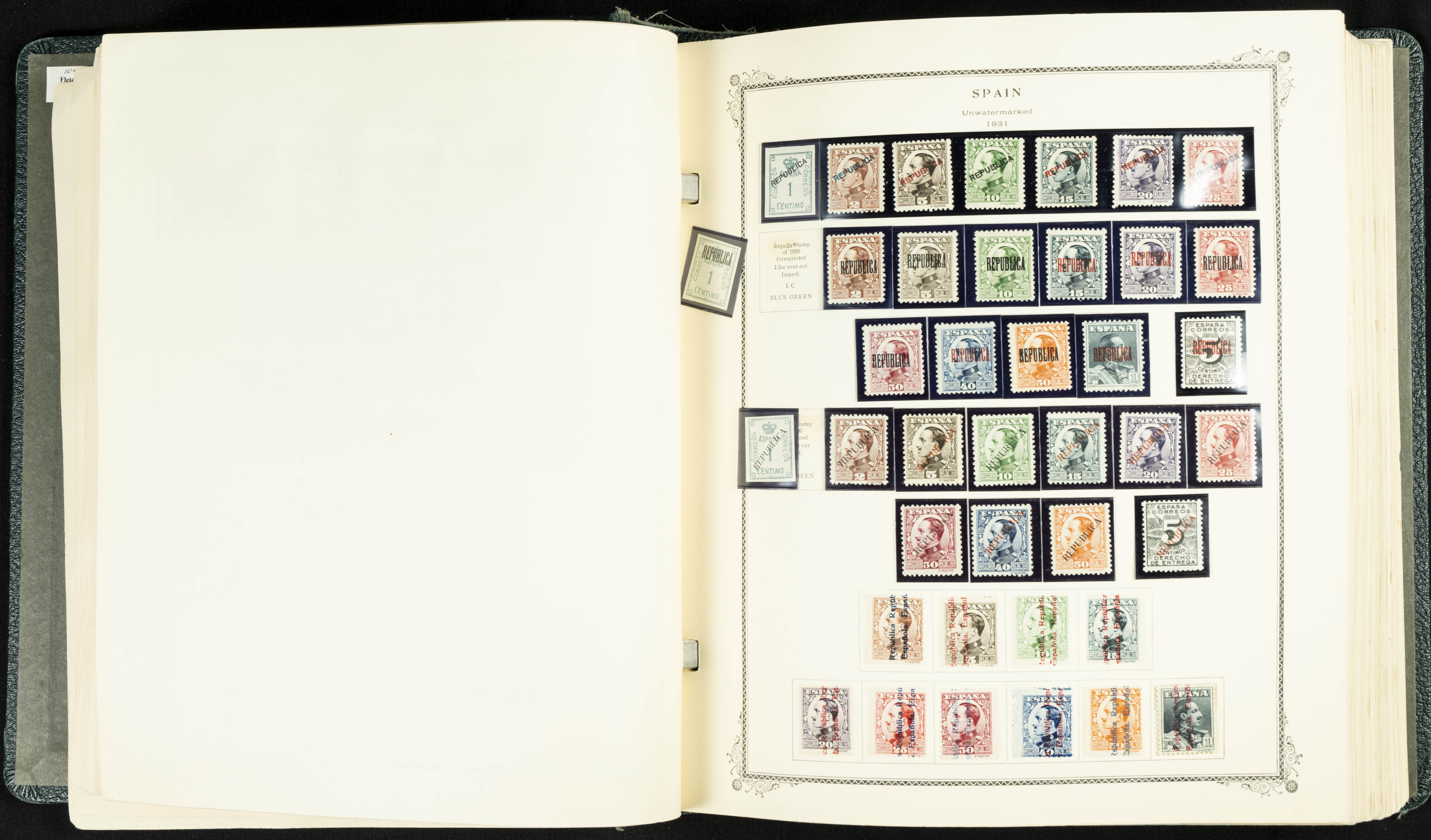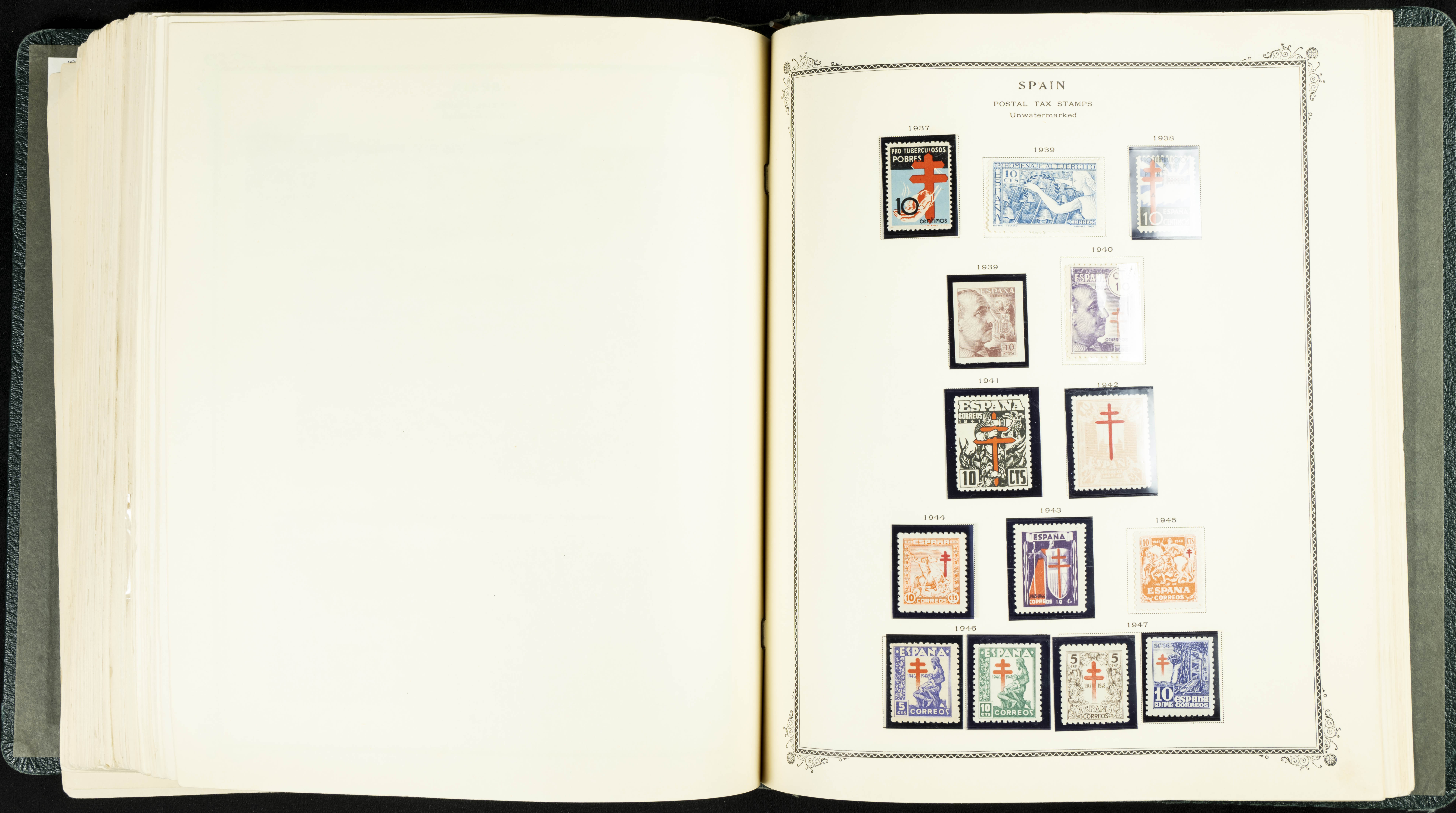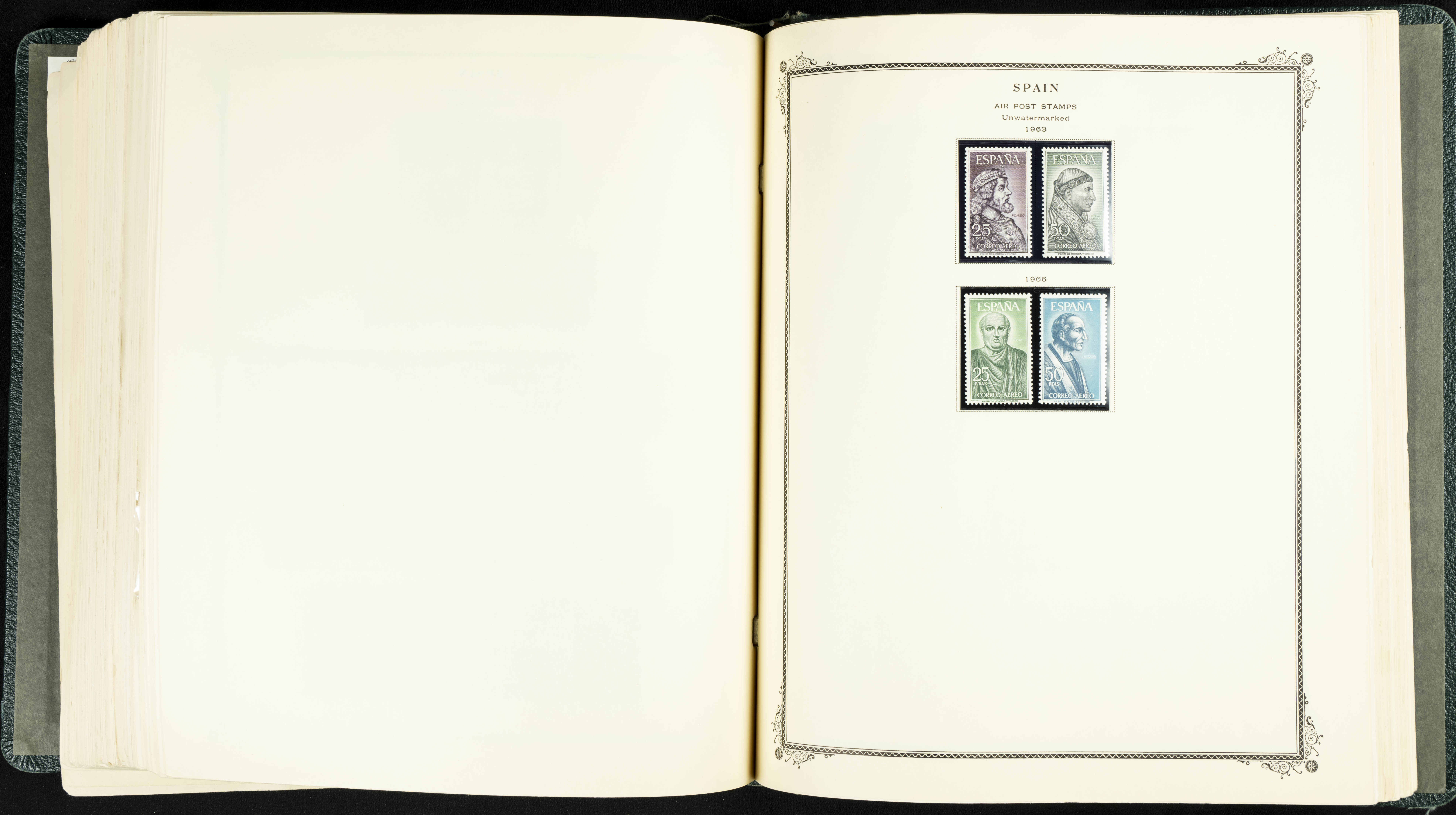 ★/(1850ca). A very interesting collection between 1850 and 1974, in mint and used coins. The classic part is very well represented, and most of the coins are used, including a complete series from 1850, 1851, 1852, and 1853, missing the 2 reales, 2 cuartos (green), and 1 real (blue) coins from 1854. Also included are most of the 19 cuartos, 4 pesetas from Amadeo and the First Republic, and most of the coins from 1876 to 1889. From 1901 onwards, everything is mint, including series such as Cadet, Quixote, Medallion, UPU, Red Cross (all of them), Railways, Montserrat (duplicate with A000000), Personalities, Militia, Granada, Franco (all of them), Pilar, "Falla and Zuloaga", Centenary, etc. It includes numerous varieties, imperforate, color changes, and some Patriotic Issues. EXTREMELY HIGH CATALOG VALUE. MUST BE EXAMINED.