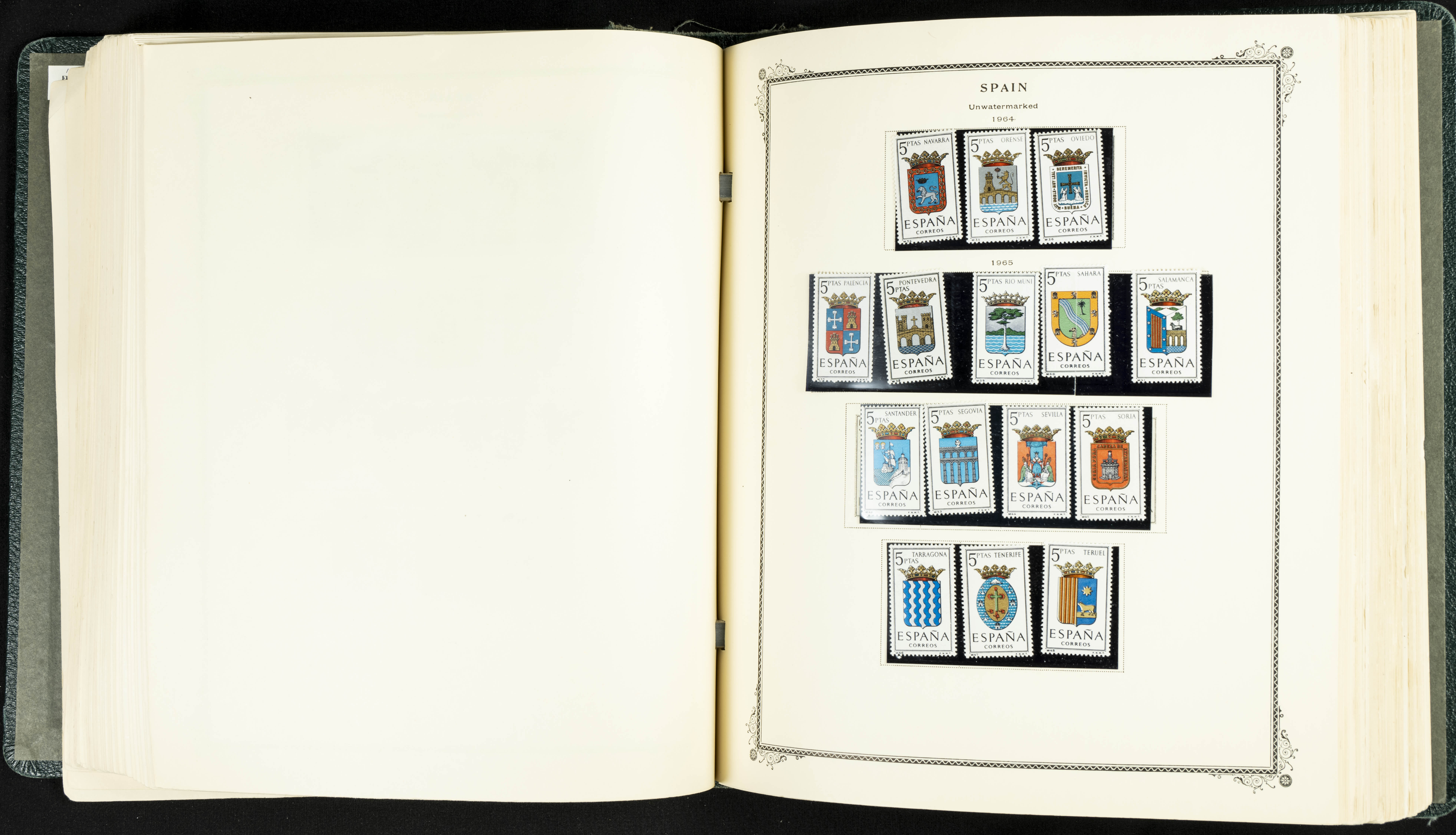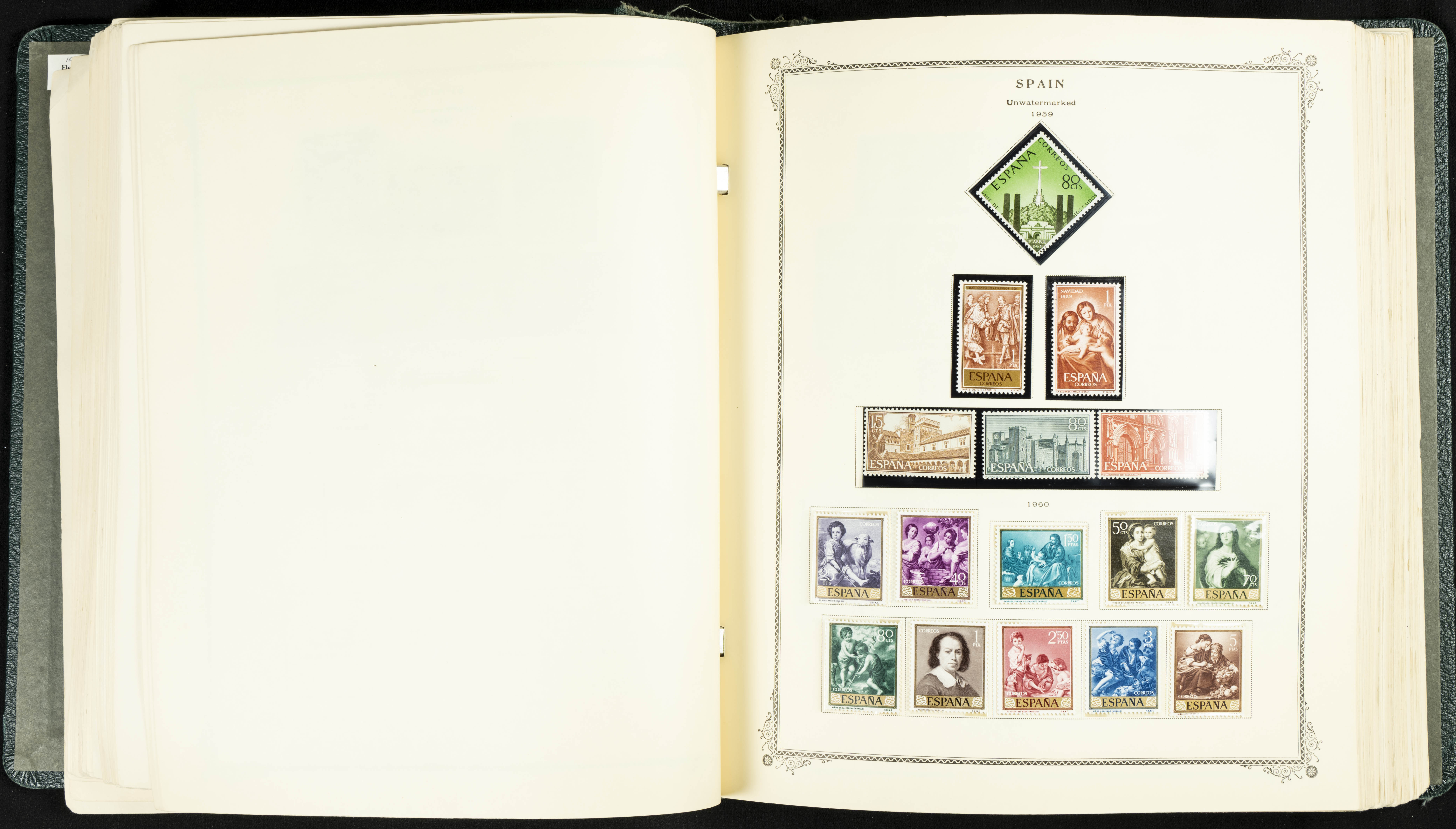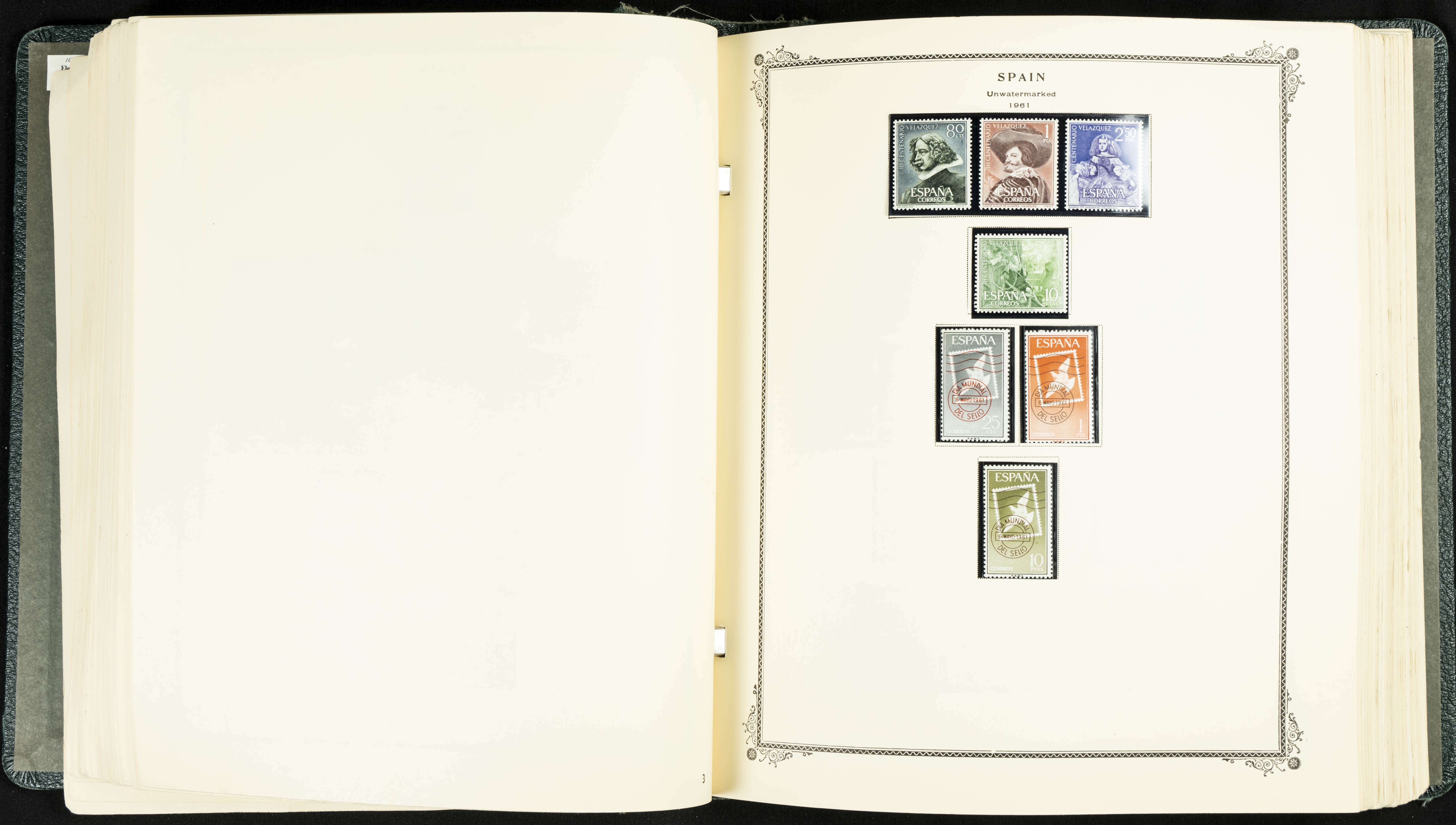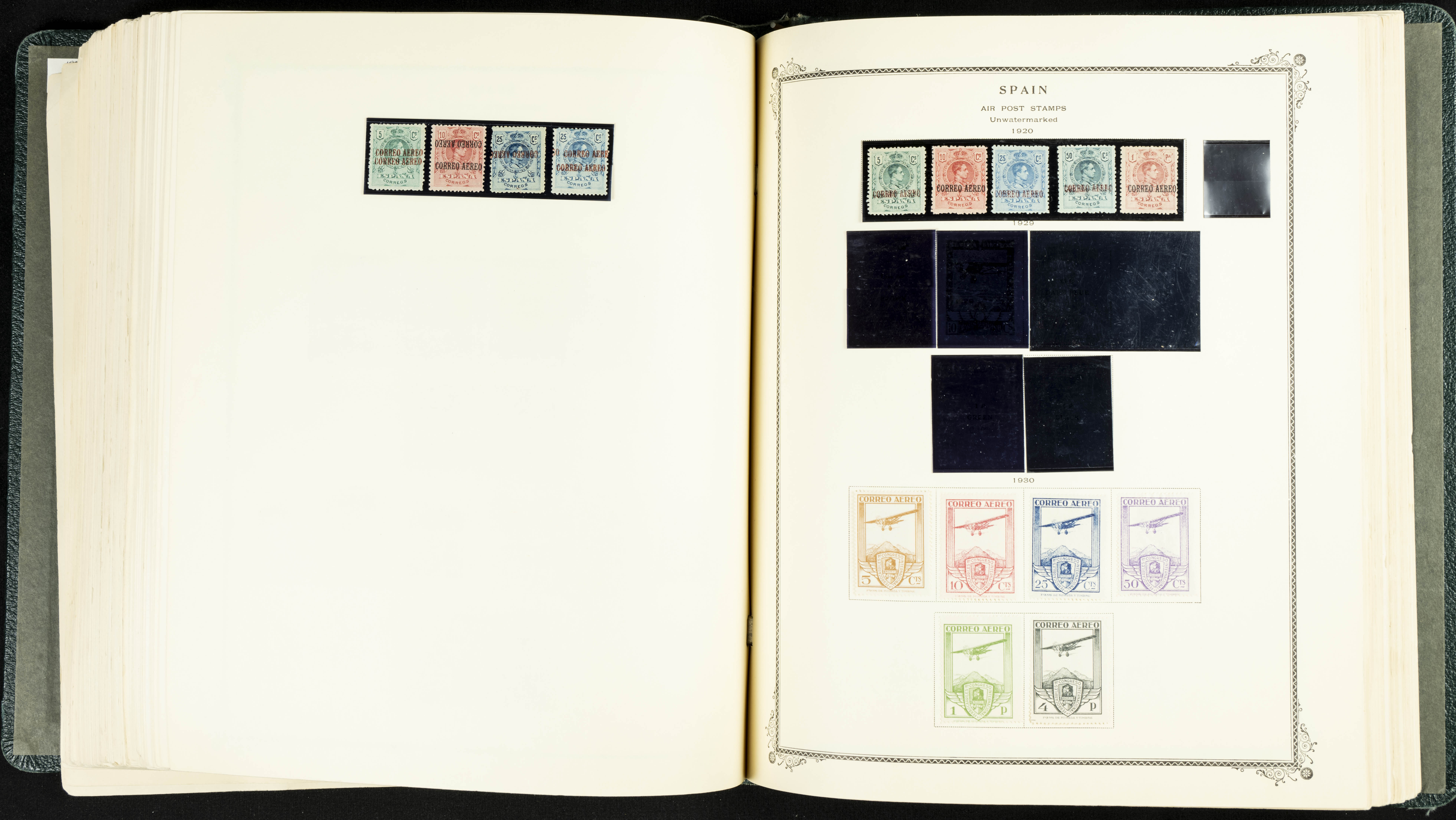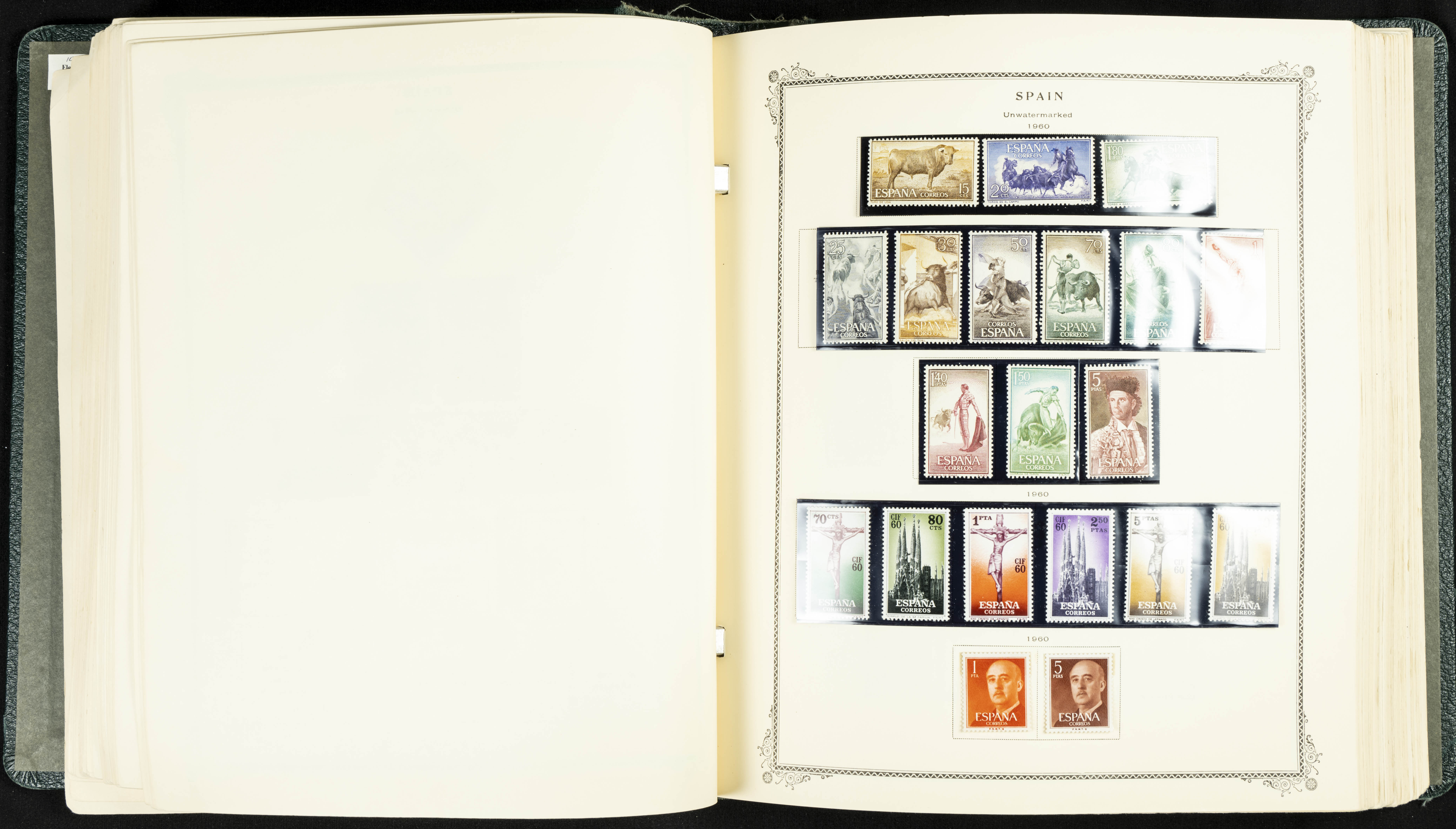 ★/(1850ca). A very interesting collection between 1850 and 1974, in mint and used coins. The classic part is very well represented, and most of the coins are used, including a complete series from 1850, 1851, 1852, and 1853, missing the 2 reales, 2 cuartos (green), and 1 real (blue) coins from 1854. Also included are most of the 19 cuartos, 4 pesetas from Amadeo and the First Republic, and most of the coins from 1876 to 1889. From 1901 onwards, everything is mint, including series such as Cadet, Quixote, Medallion, UPU, Red Cross (all of them), Railways, Montserrat (duplicate with A000000), Personalities, Militia, Granada, Franco (all of them), Pilar, "Falla and Zuloaga", Centenary, etc. It includes numerous varieties, imperforate, color changes, and some Patriotic Issues. EXTREMELY HIGH CATALOG VALUE. MUST BE EXAMINED.